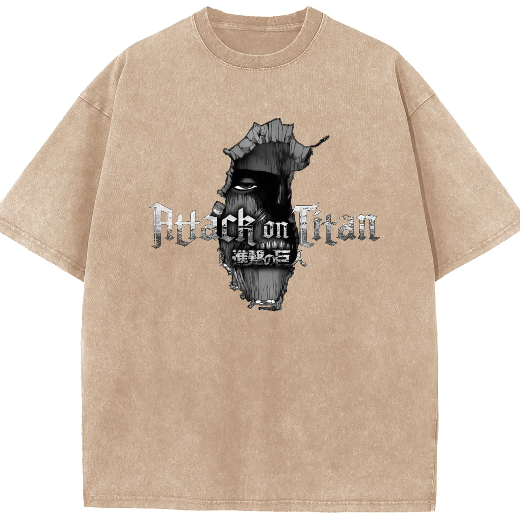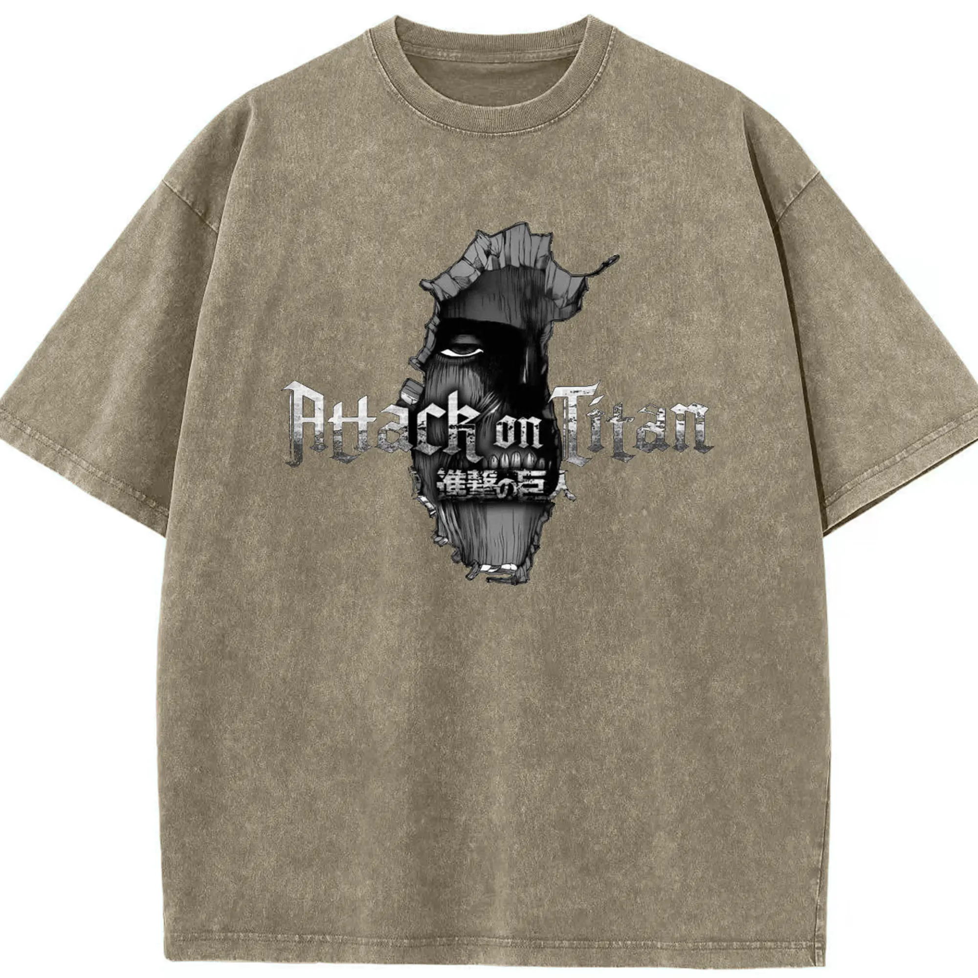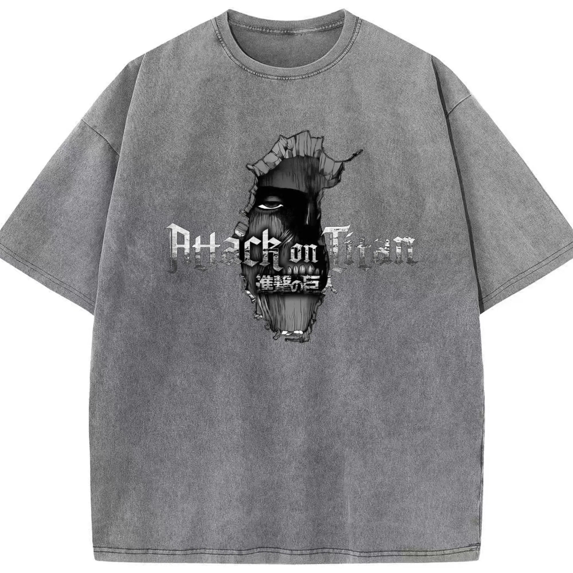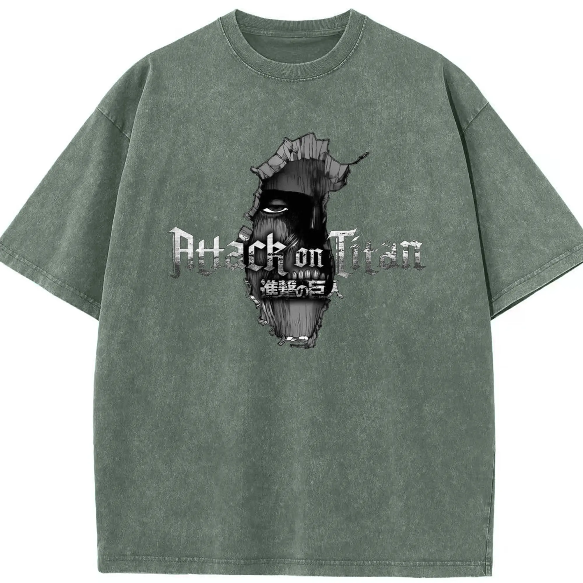 進撃の巨人 超大型巨人ロゴ付く - 綿100% 半袖Tシャツ ・ フロントプリント ・ 快適 通気性 ・ 日常使い 散歩 スポーツ用