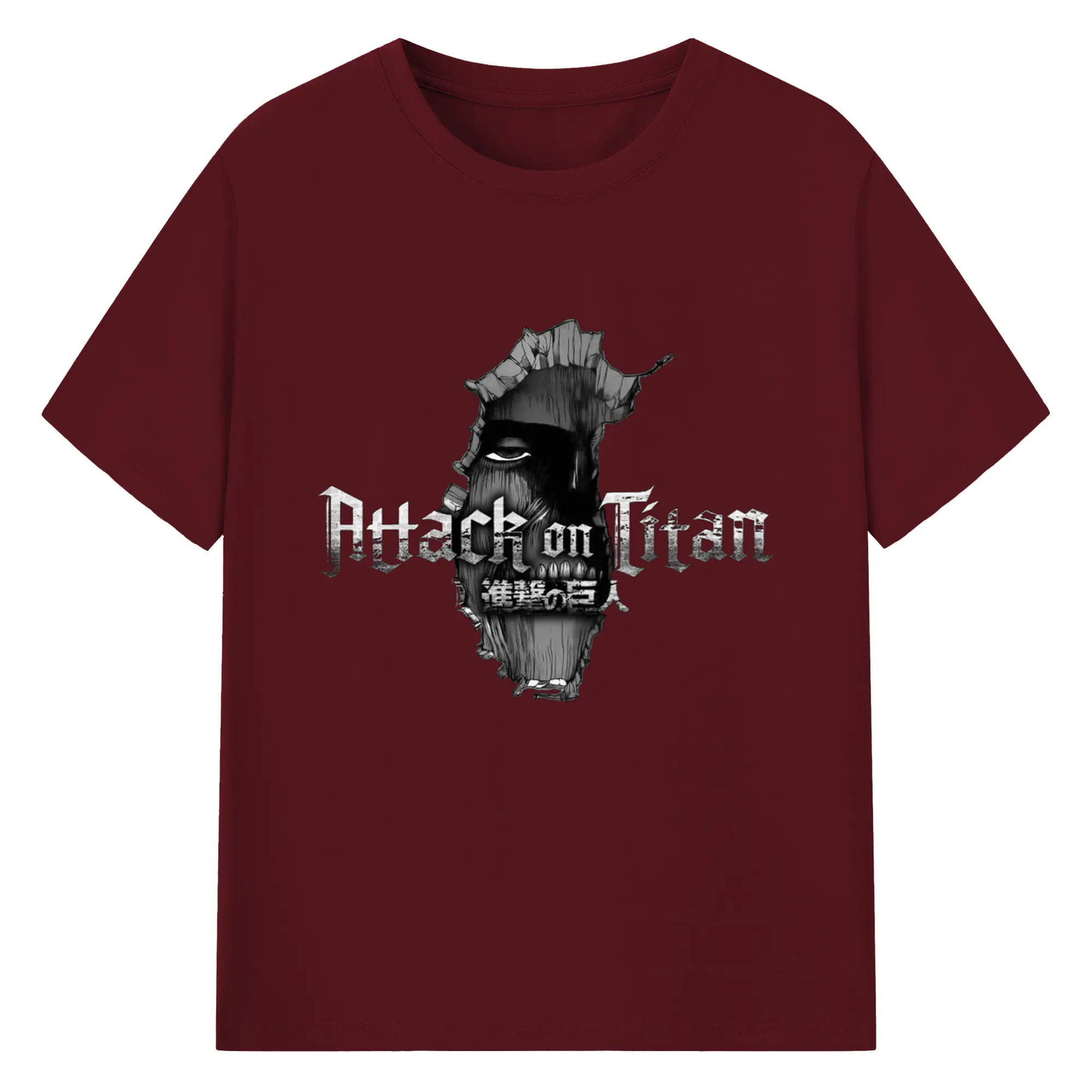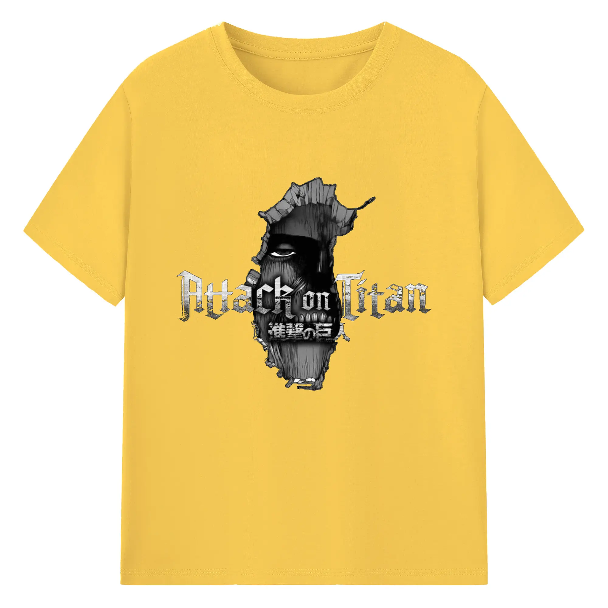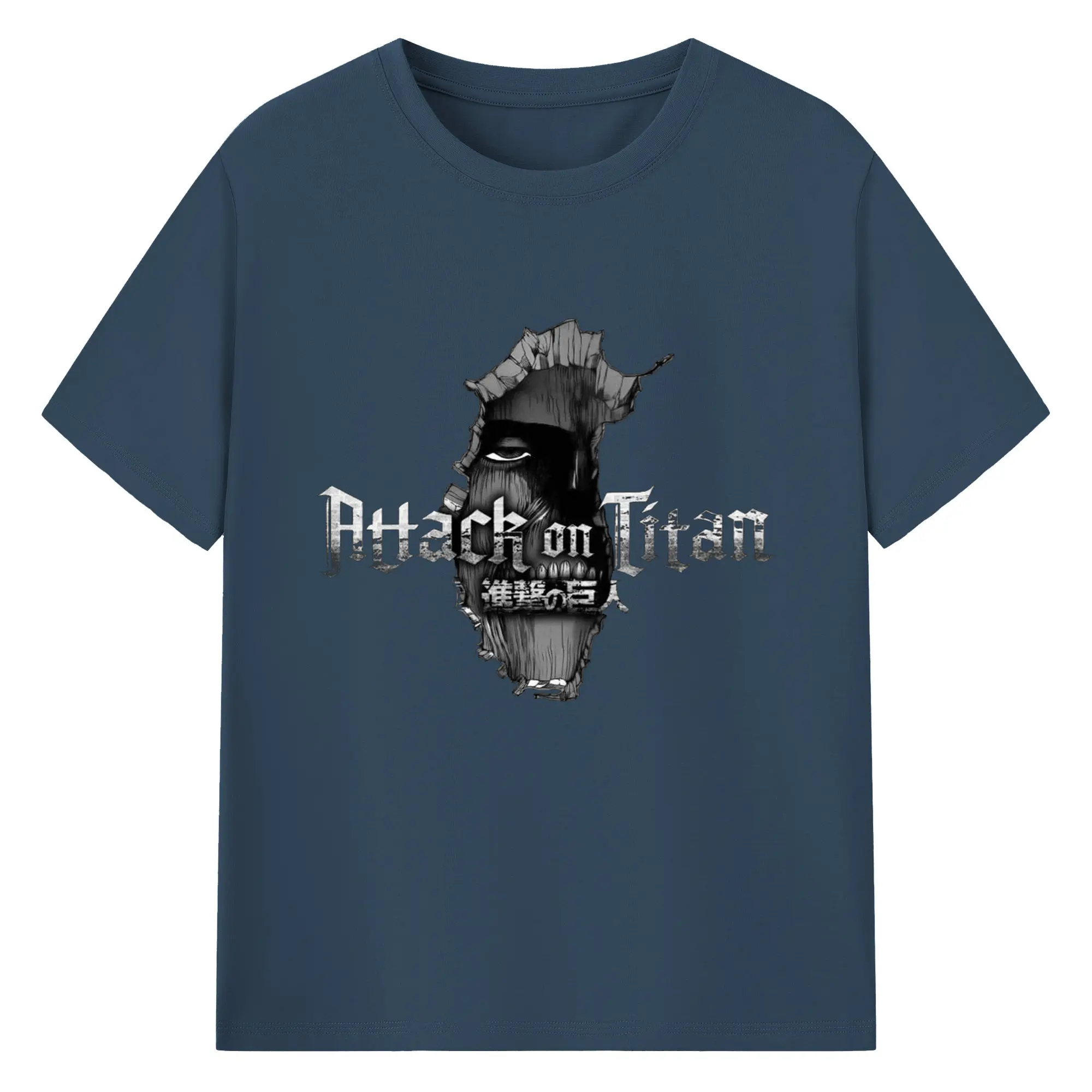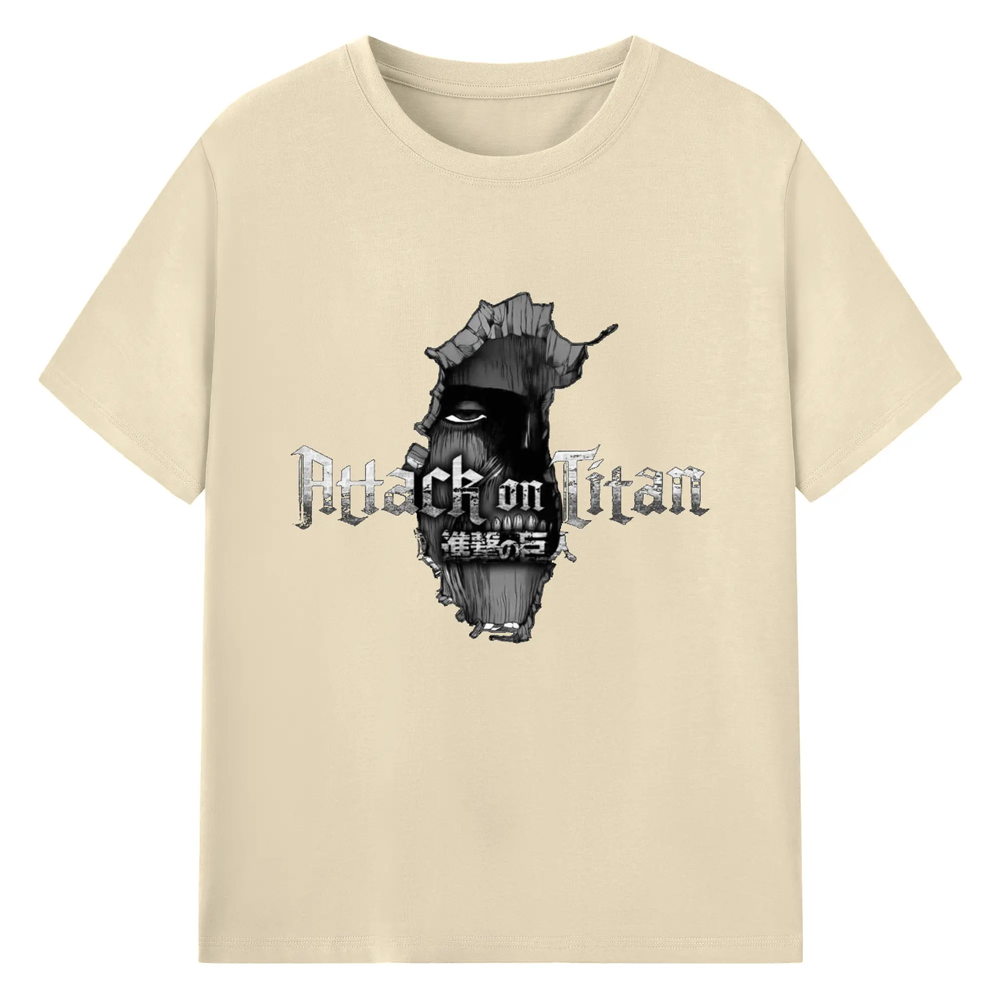 進撃の巨人 超大型巨人ロゴ付く - 綿100% ヴィンテージ風 半袖Tシャツ ・ フロントプリント ・ 柔らか肌触り ・ 通気性 快適 ・ スポーツ カジュアル 外出用