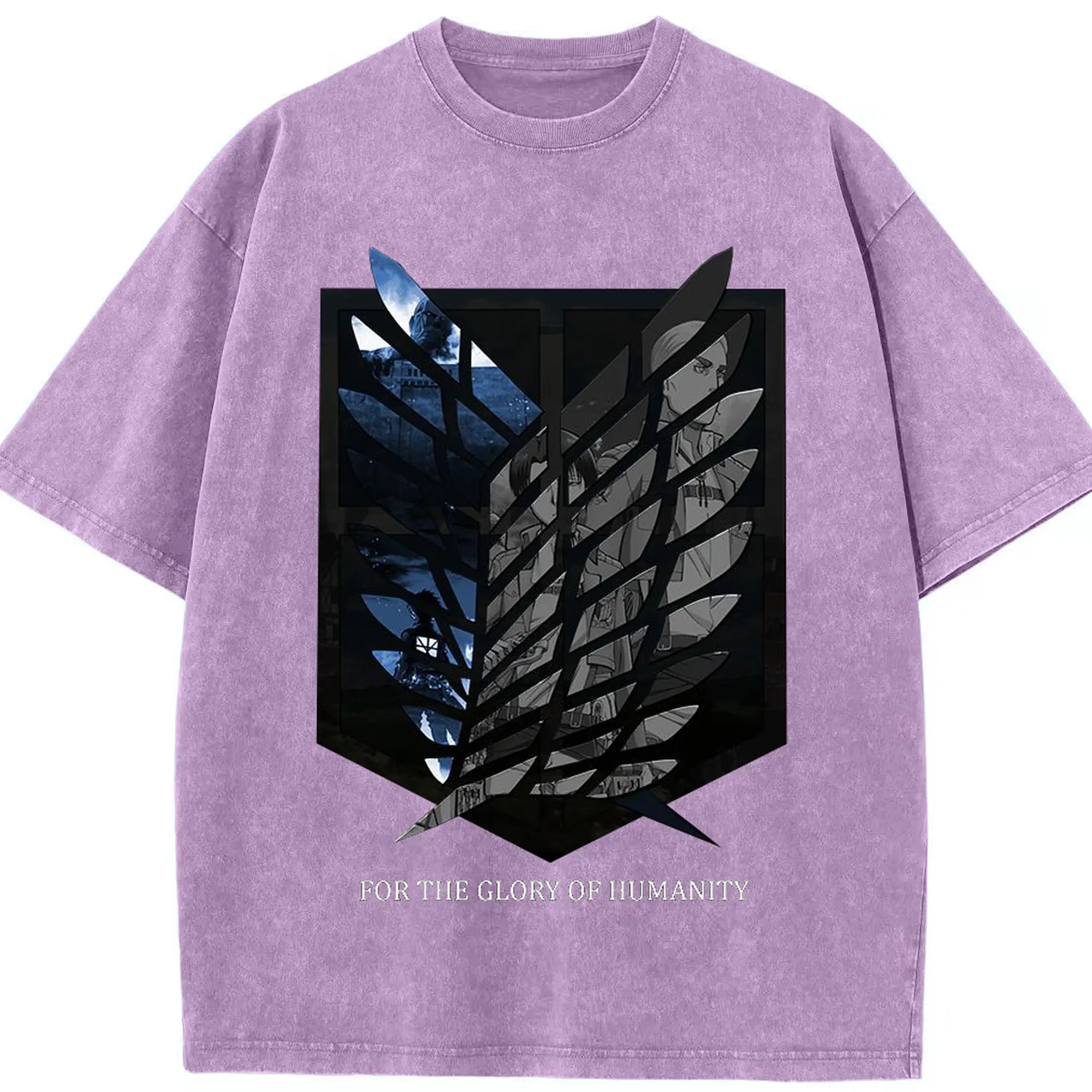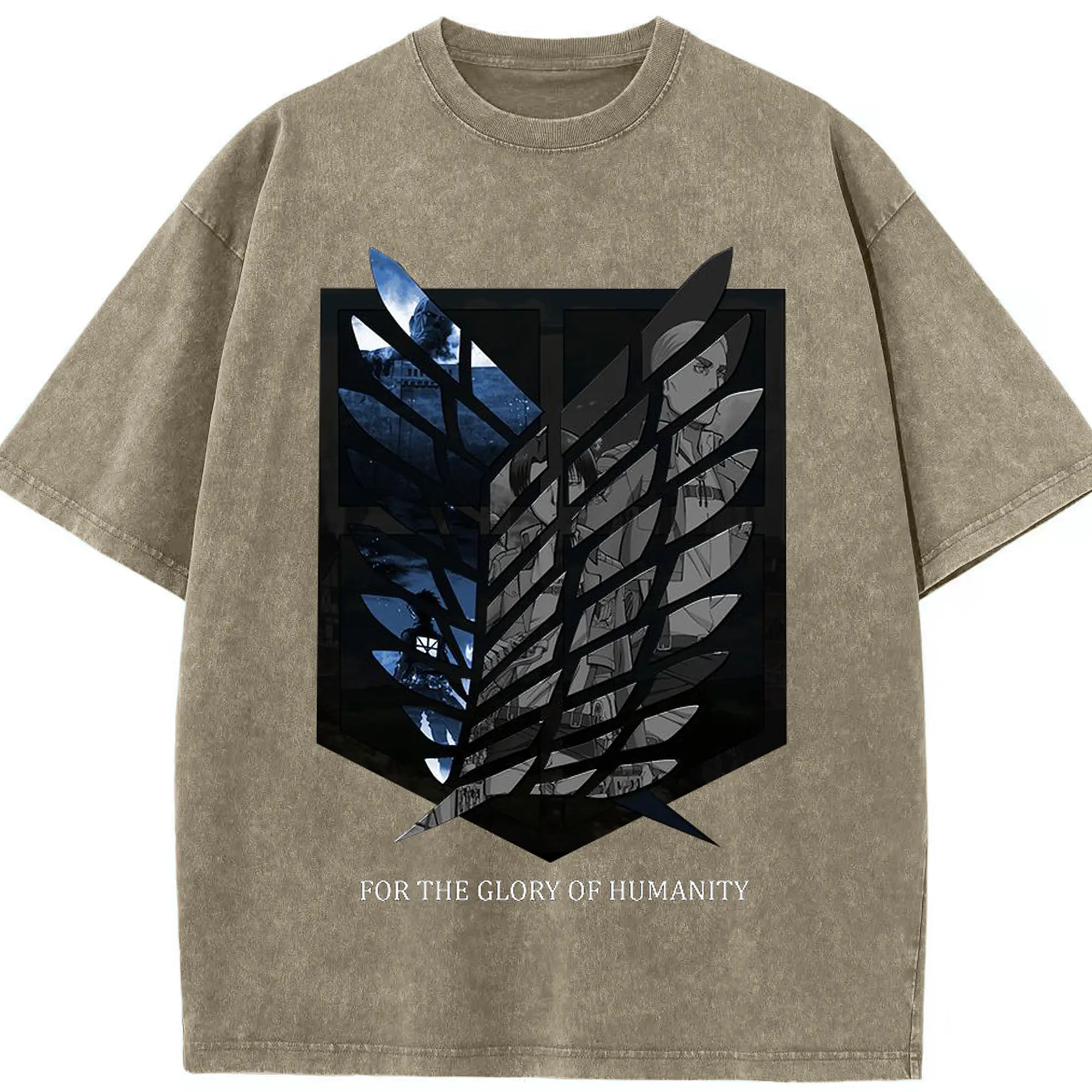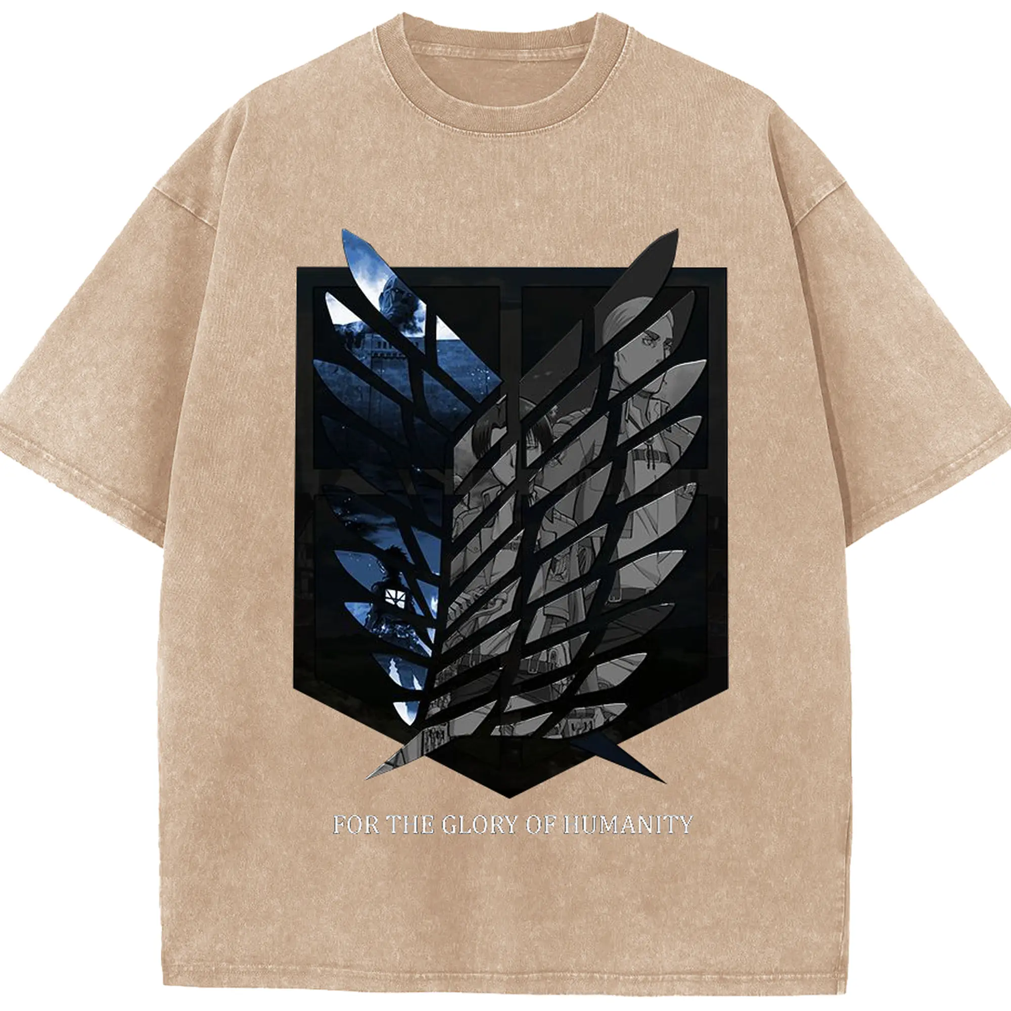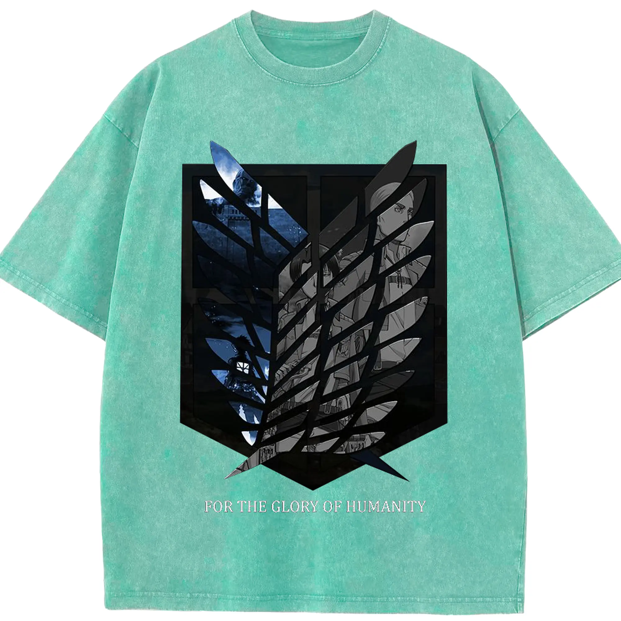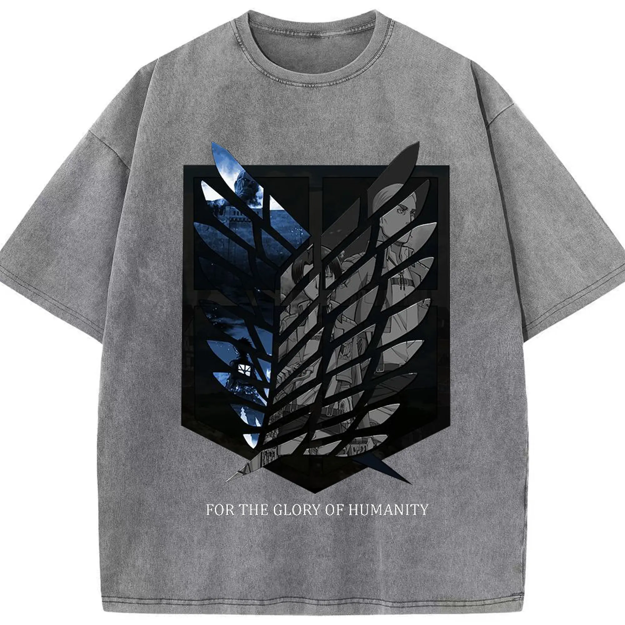 進撃の巨人 - 綿100% ヴィンテージ風 半袖Tシャツ ・ フロントプリント ・ 柔らか肌触り ・ 通気性 快適 ・ スポーツ カジュアル 外出用