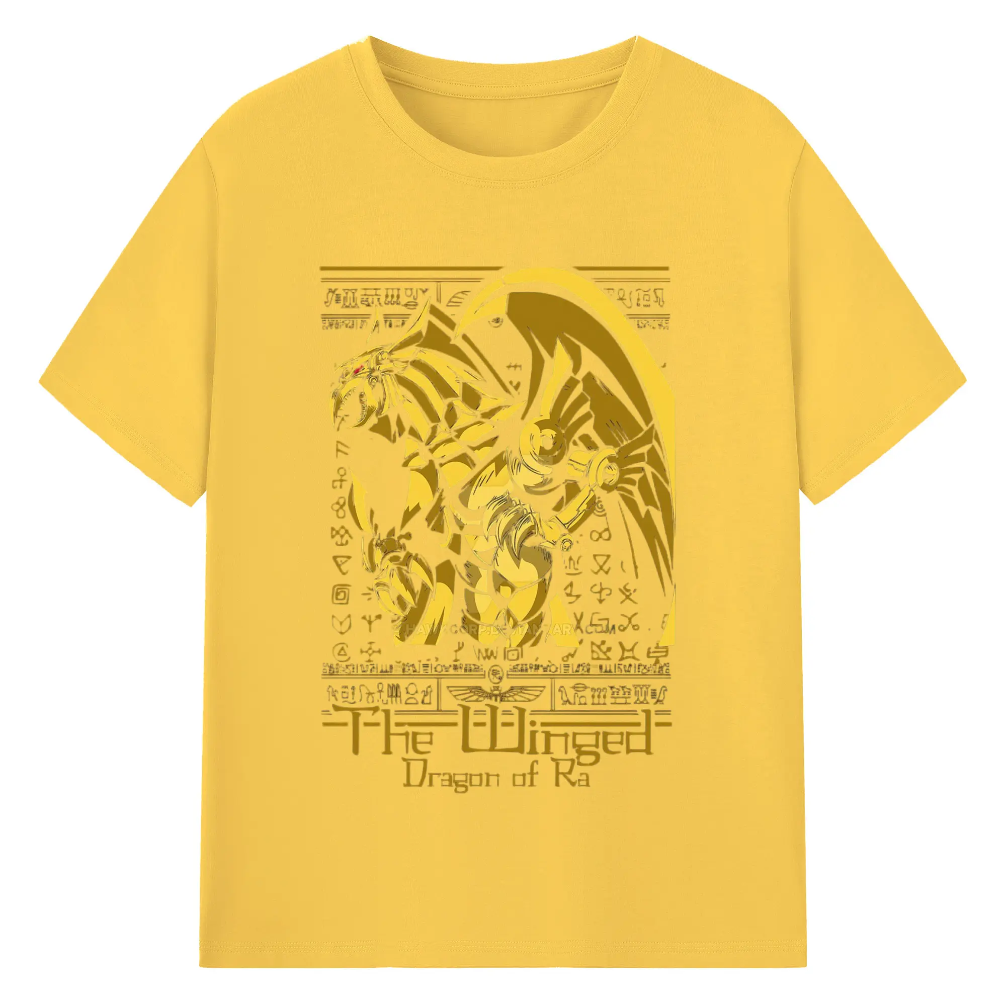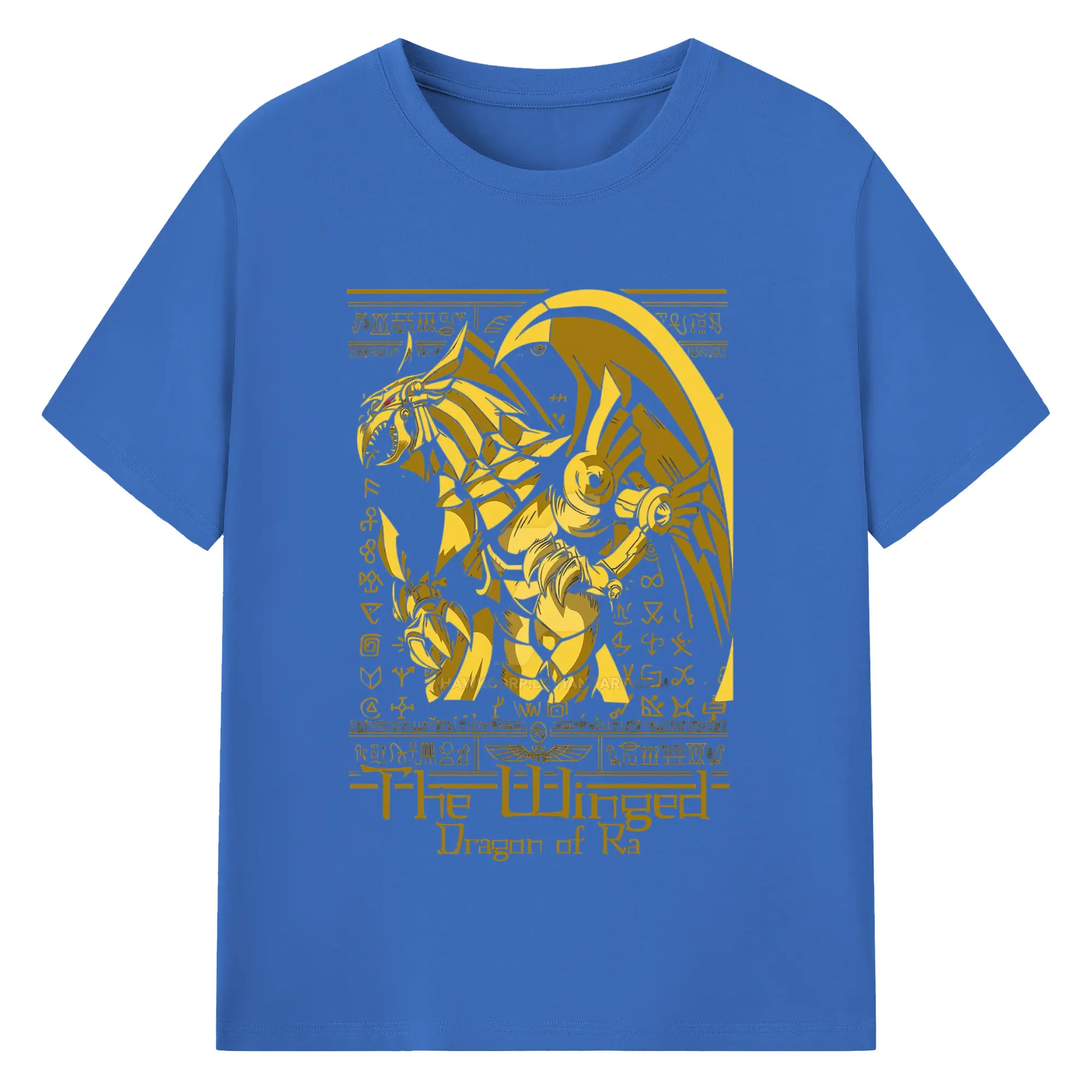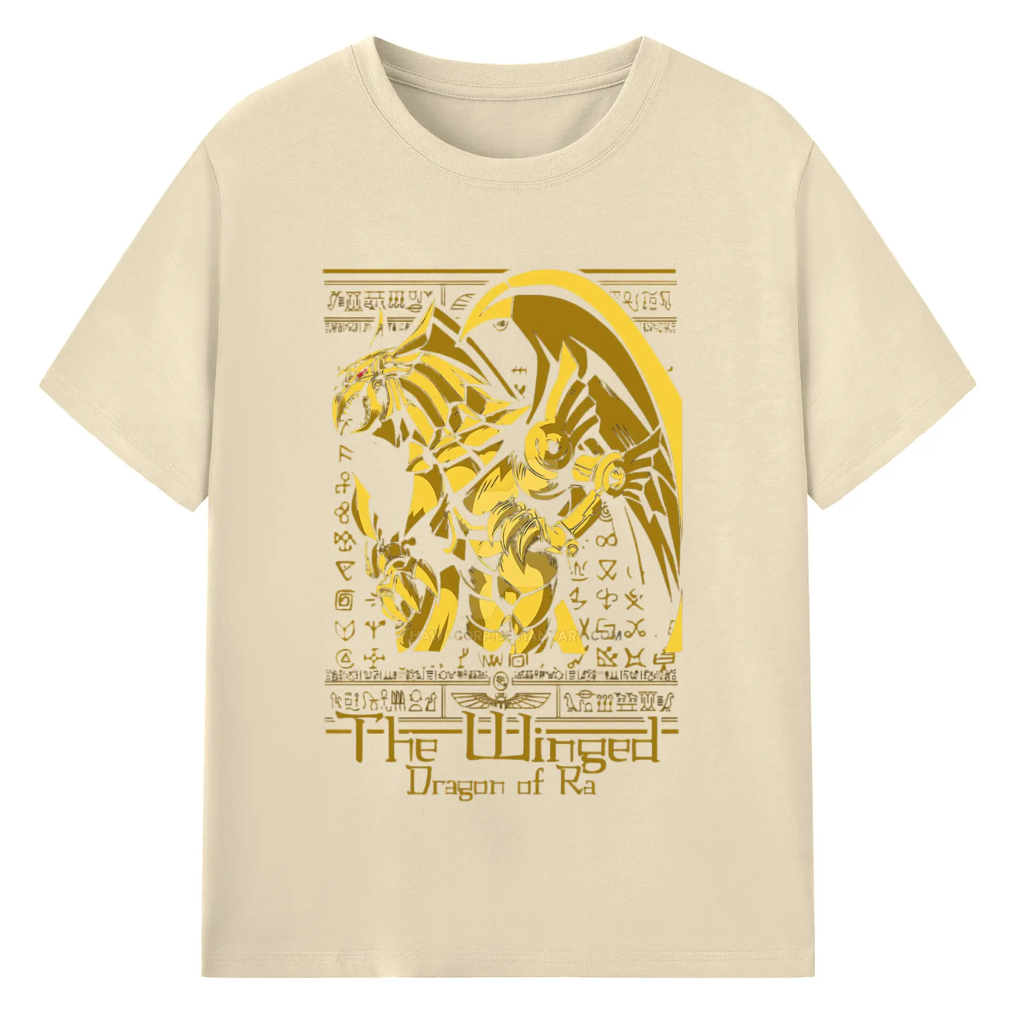 遊戯王 ゴールドブルーアイズホワイトドラゴン - 綿100% ヴィンテージ風 半袖Tシャツ ・ フロントプリント ・ 柔らか肌触り ・ 通気性 快適 ・ スポーツ カジュアル 外出用
