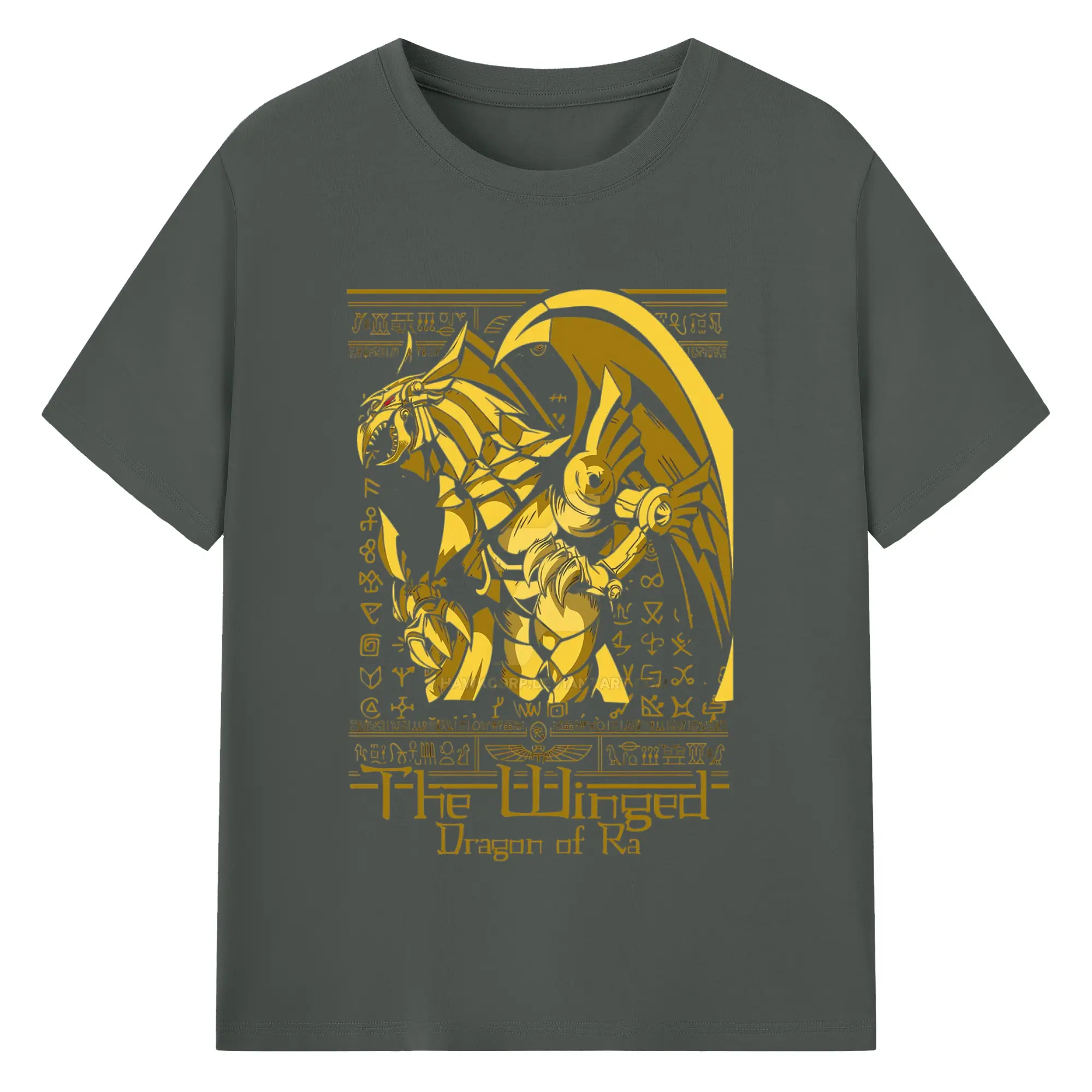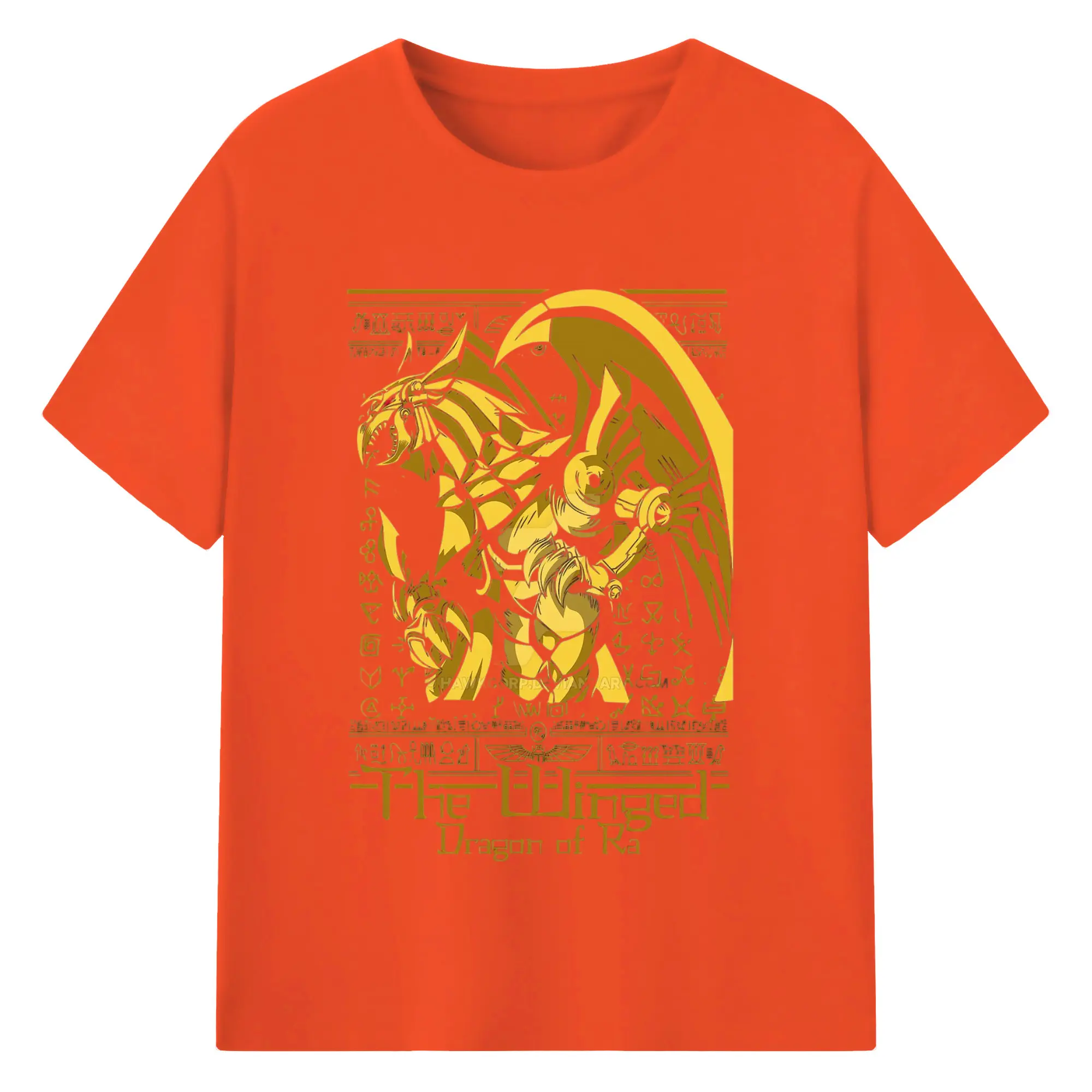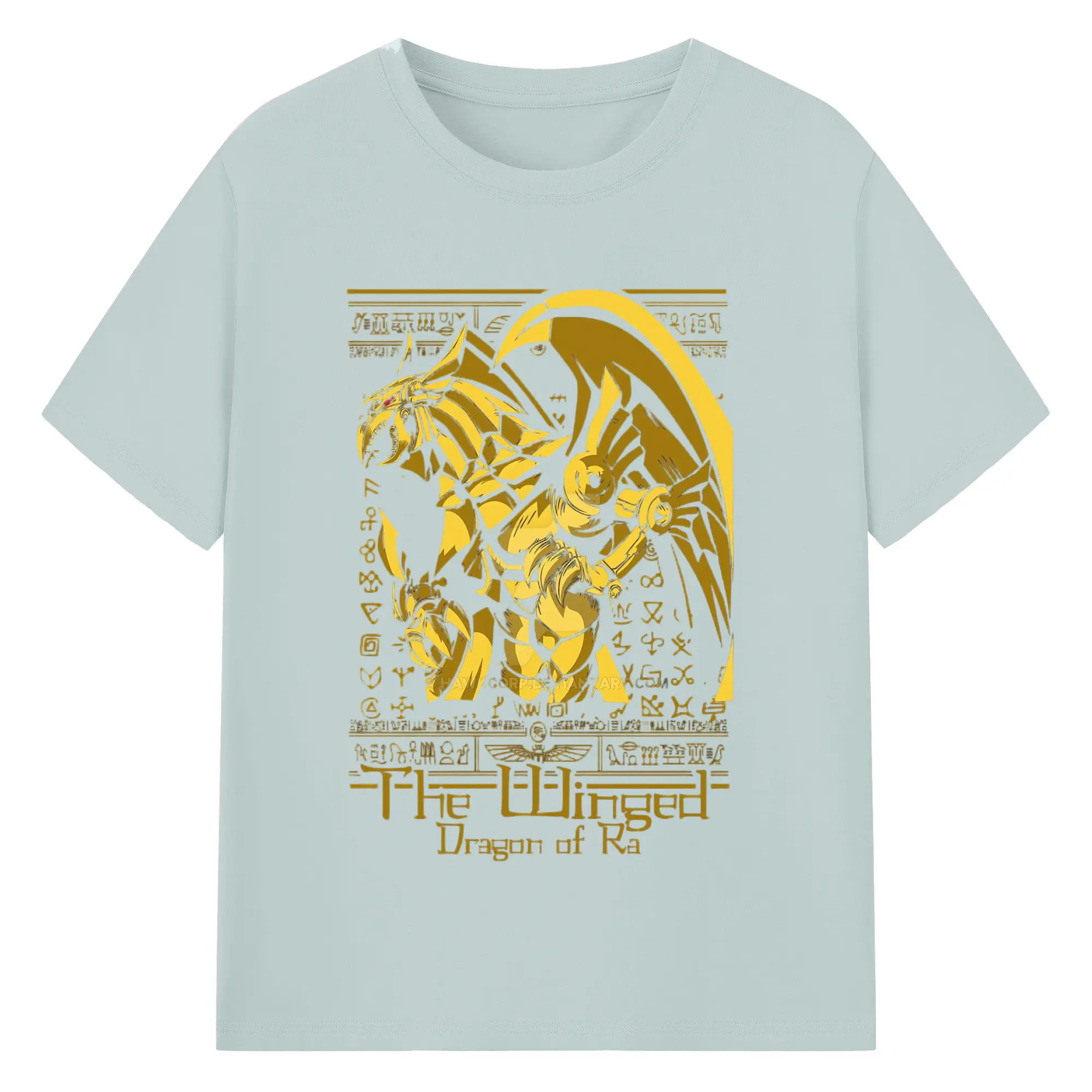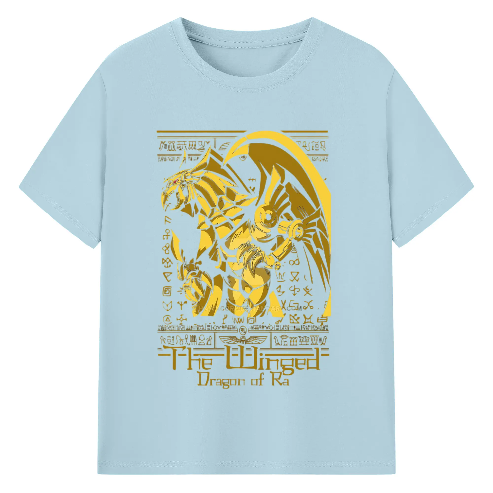 遊戯王 ゴールドブルーアイズホワイトドラゴン - 綿100% ヴィンテージ風 半袖Tシャツ ・ フロントプリント ・ 柔らか肌触り ・ 通気性 快適 ・ スポーツ カジュアル 外出用