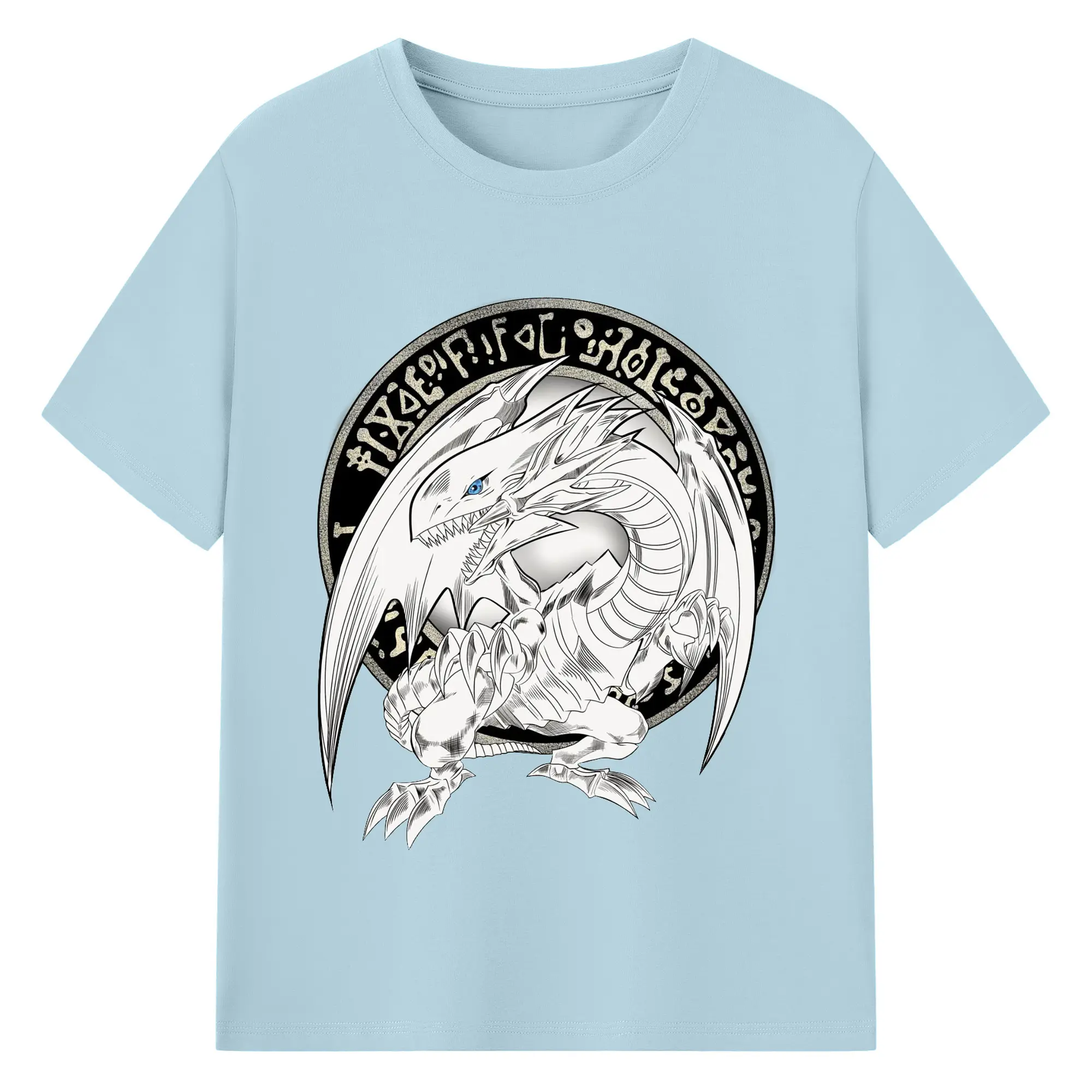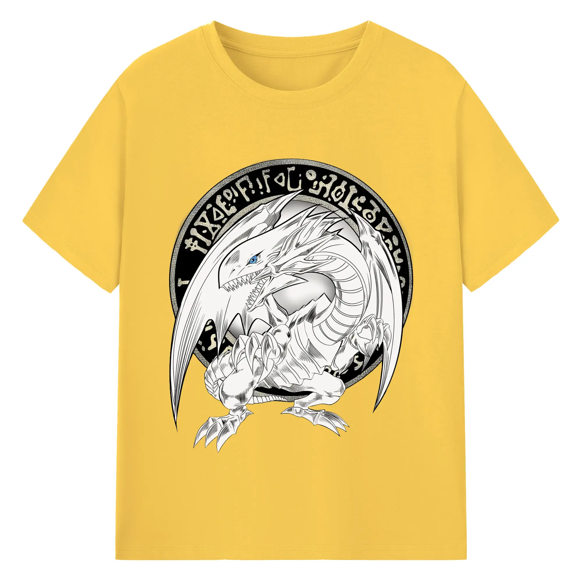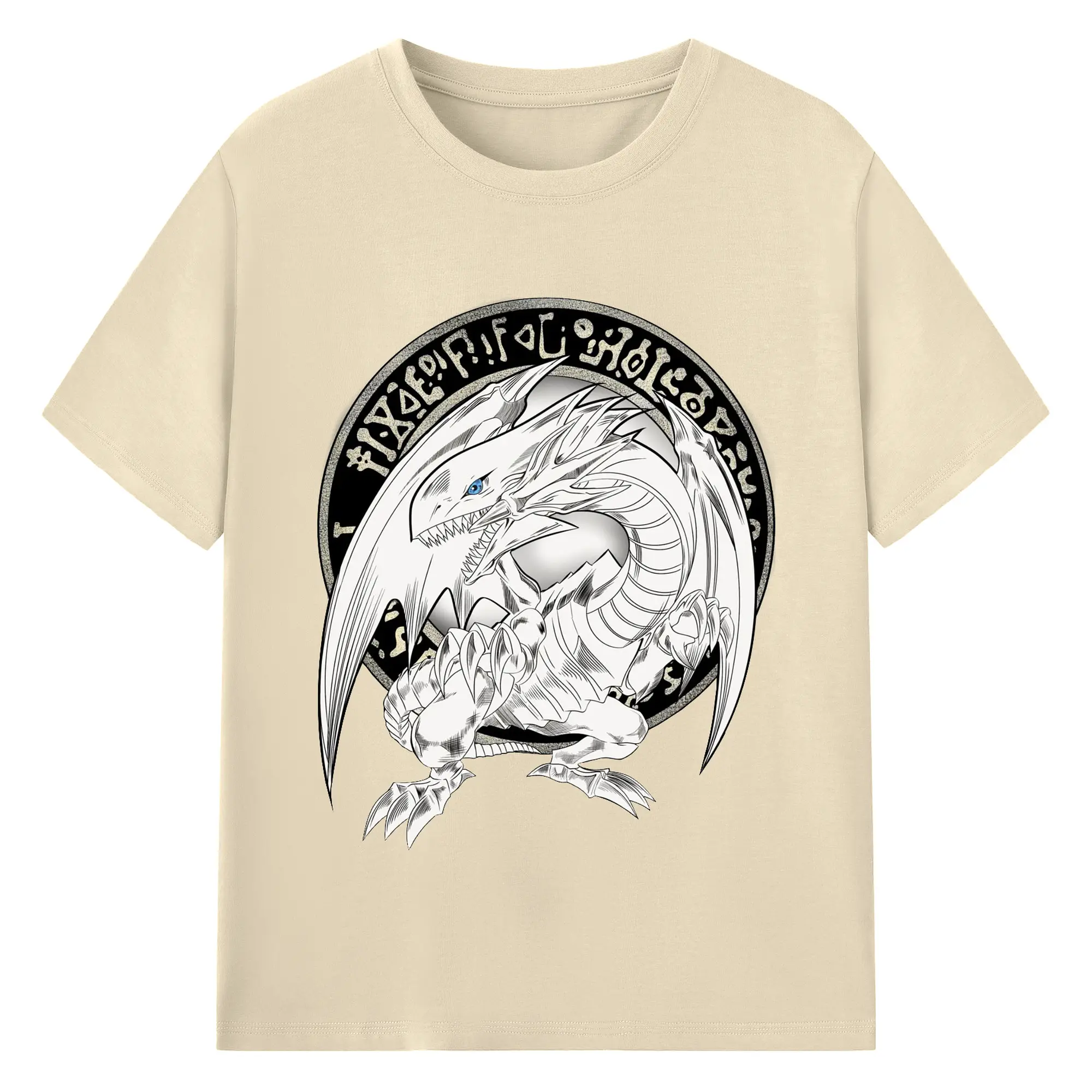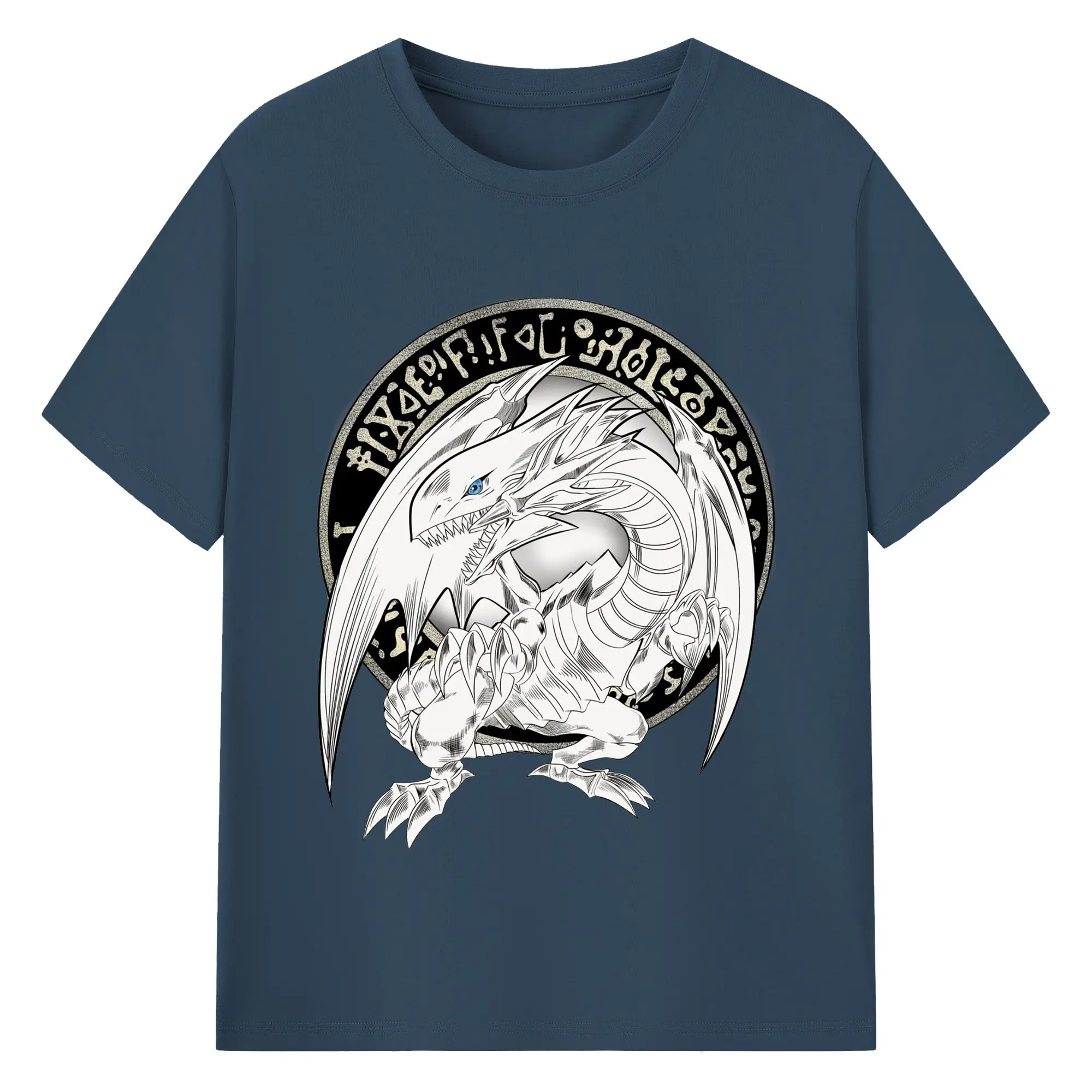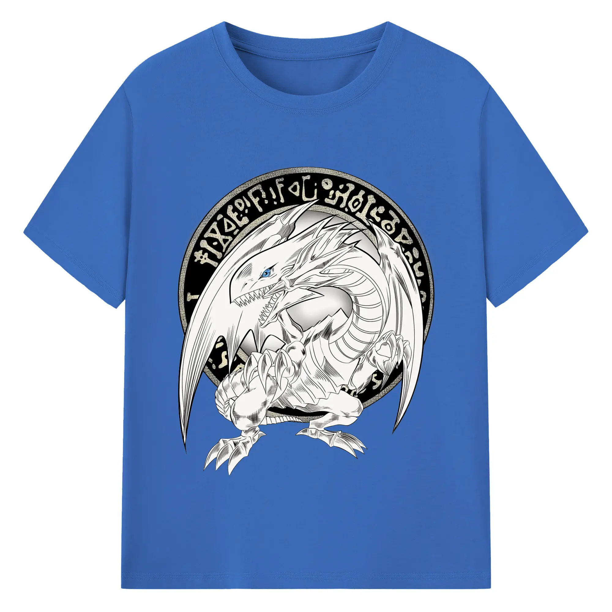 遊戯王 ブルーアイズホワイトドラゴン - 綿100% ヴィンテージ風 半袖Tシャツ ・ フロントプリント ・ 柔らか肌触り ・ 通気性 快適 ・ スポーツ カジュアル 外出用