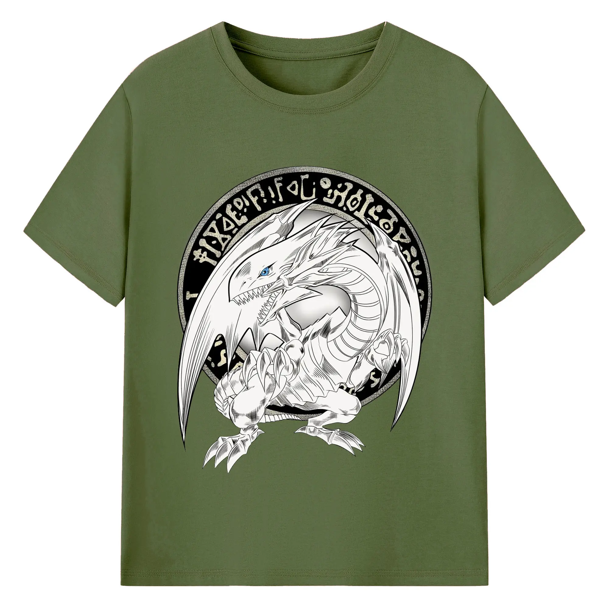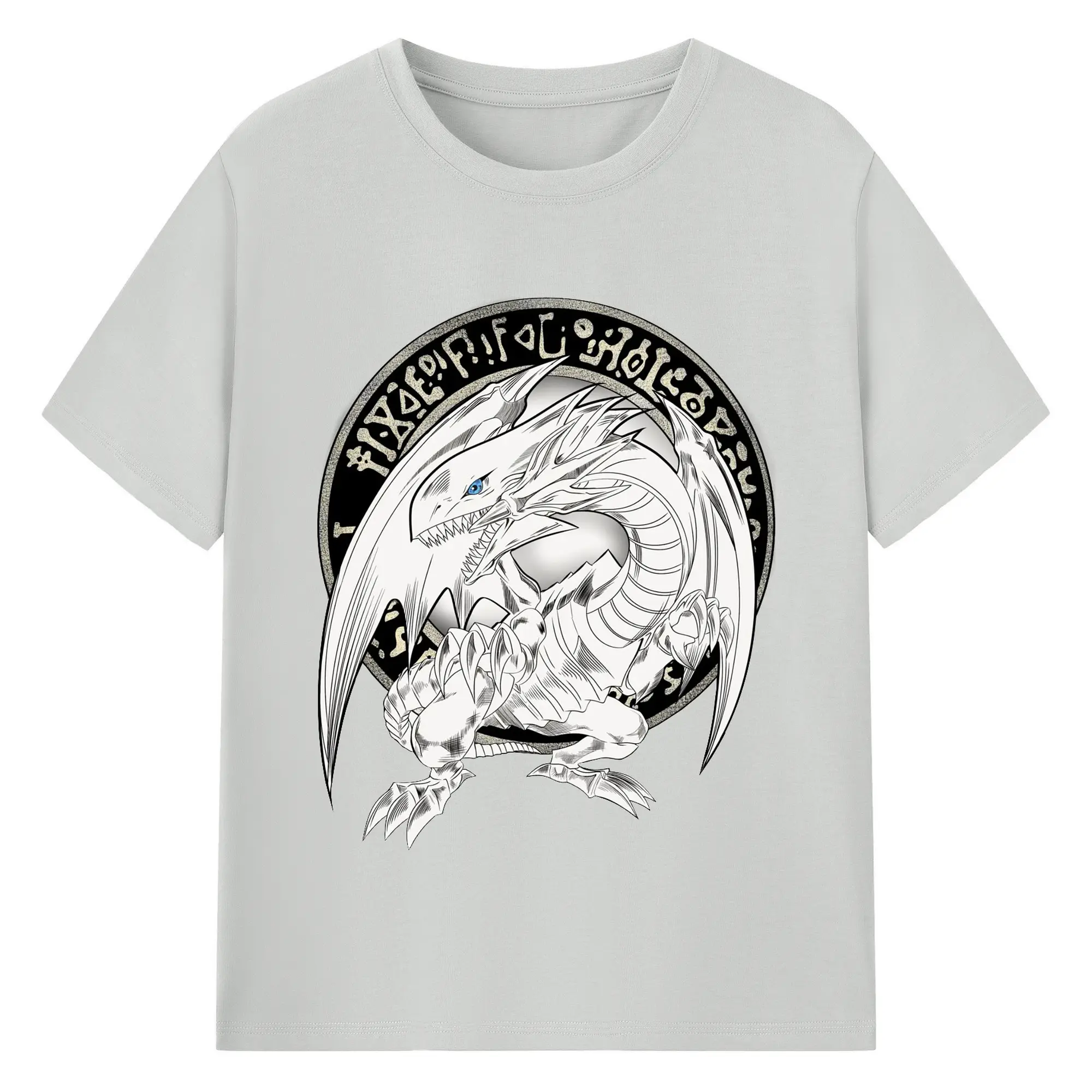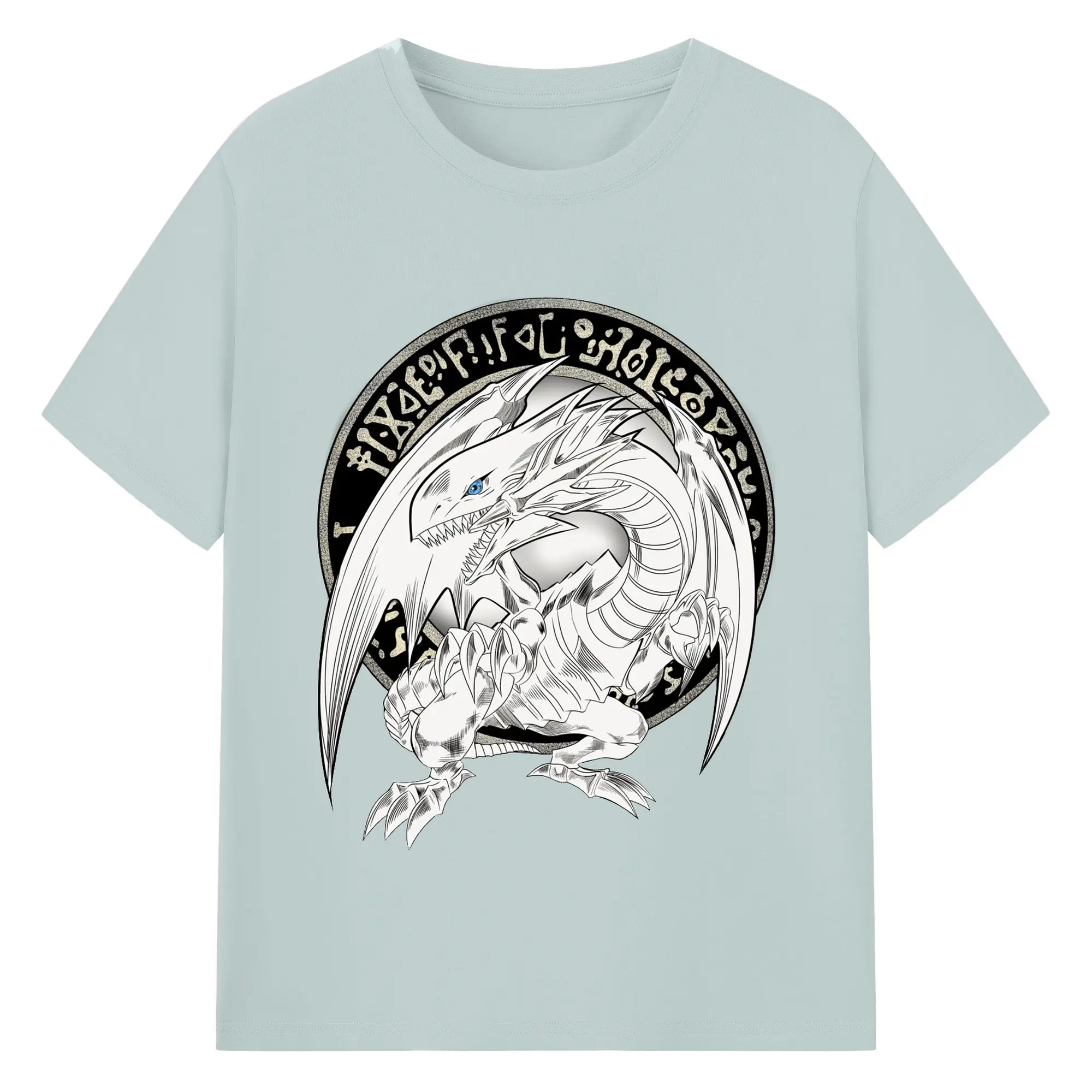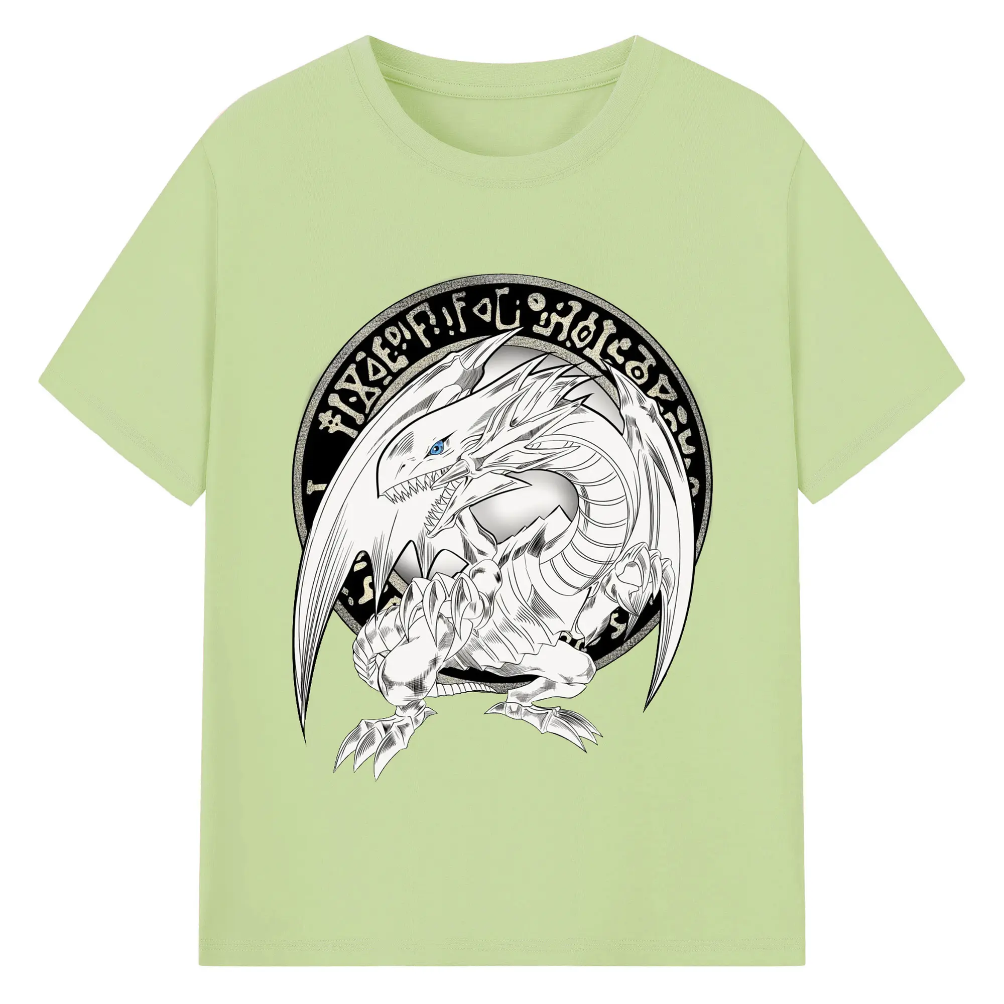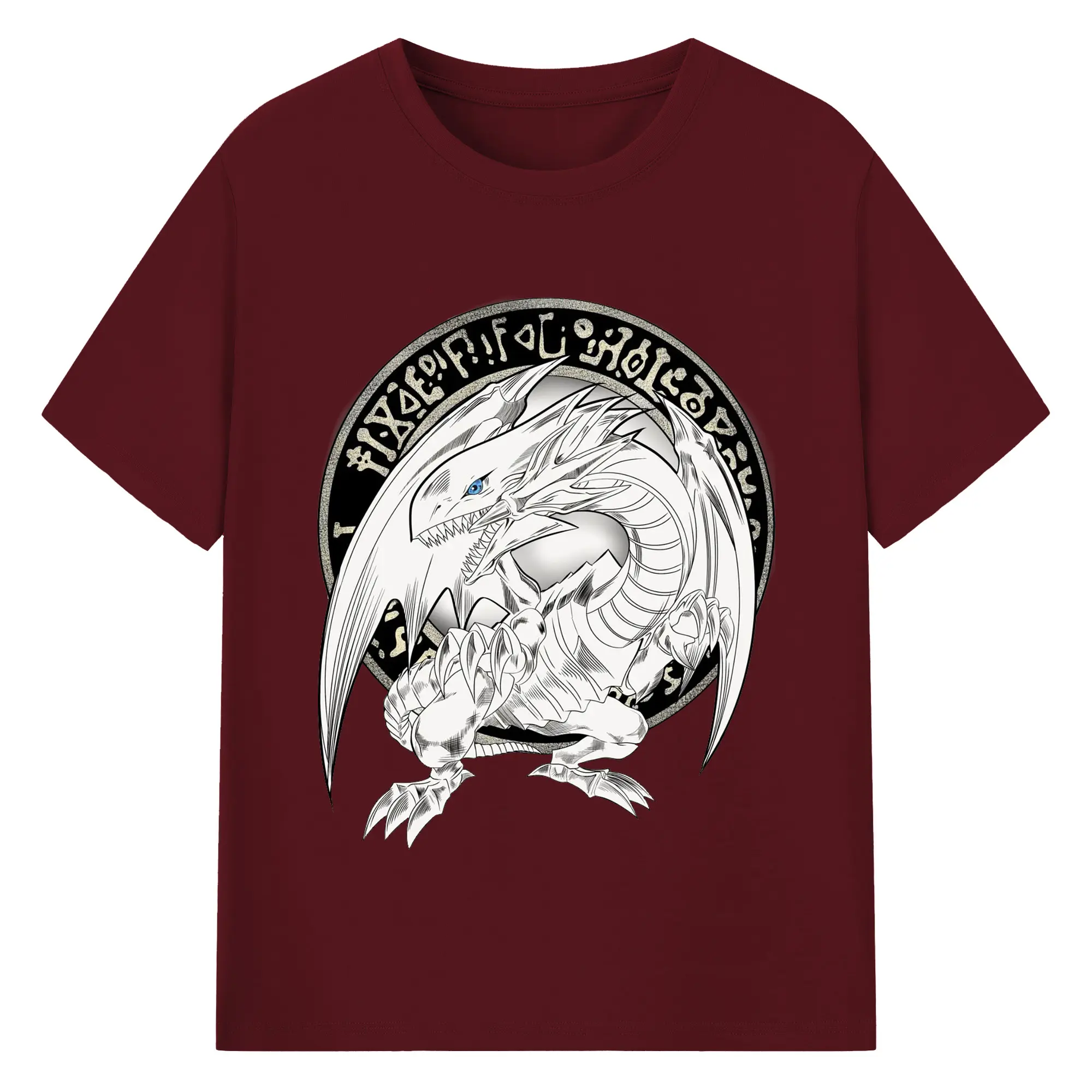 遊戯王 ブルーアイズホワイトドラゴン - 綿100% ヴィンテージ風 半袖Tシャツ ・ フロントプリント ・ 柔らか肌触り ・ 通気性 快適 ・ スポーツ カジュアル 外出用