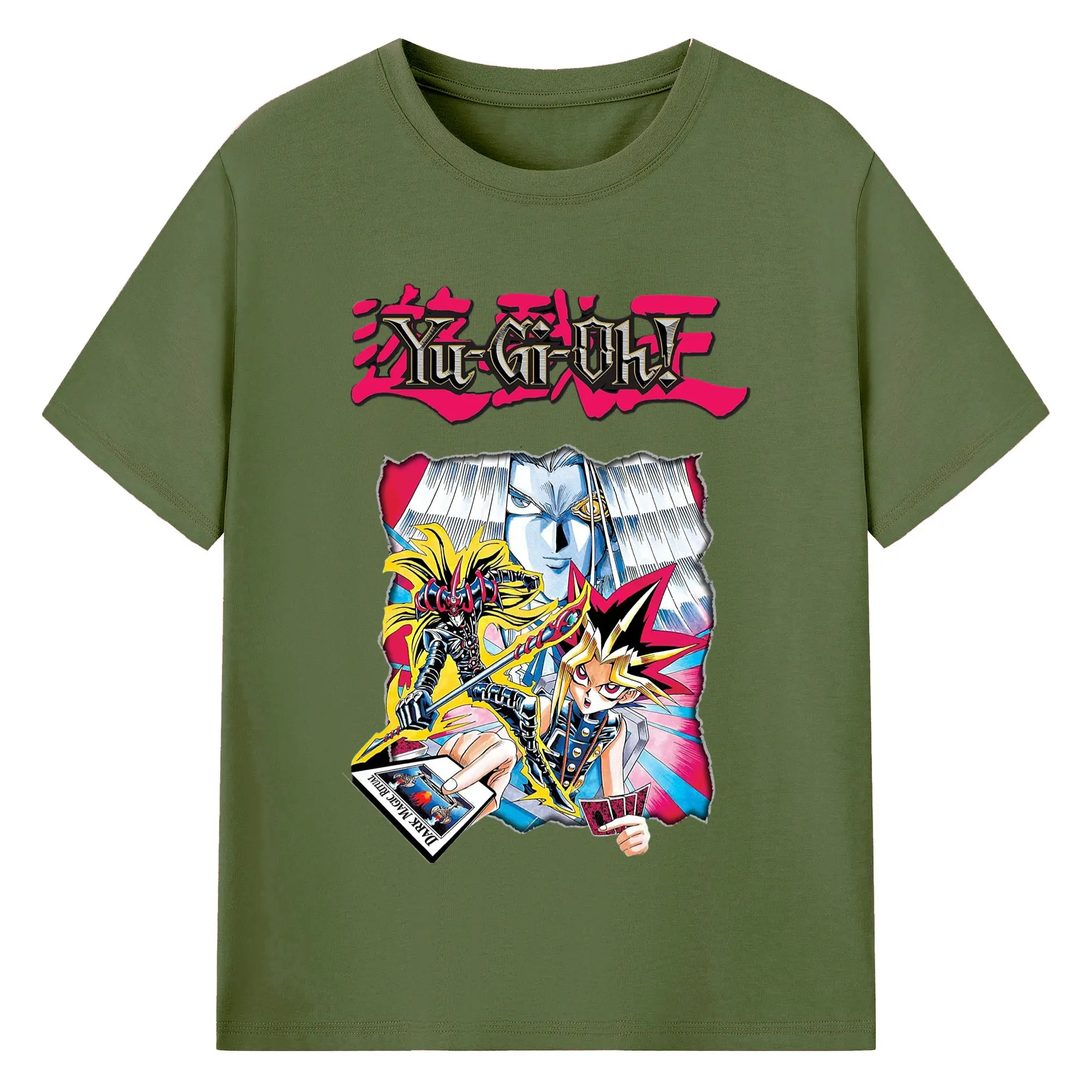 遊戯王 武藤遊戯 アテム - 綿100% ヴィンテージ風 半袖Tシャツ ・ フロントプリント ・ 柔らか肌触り ・ 通気性 快適 ・ スポーツ カジュアル 外出用