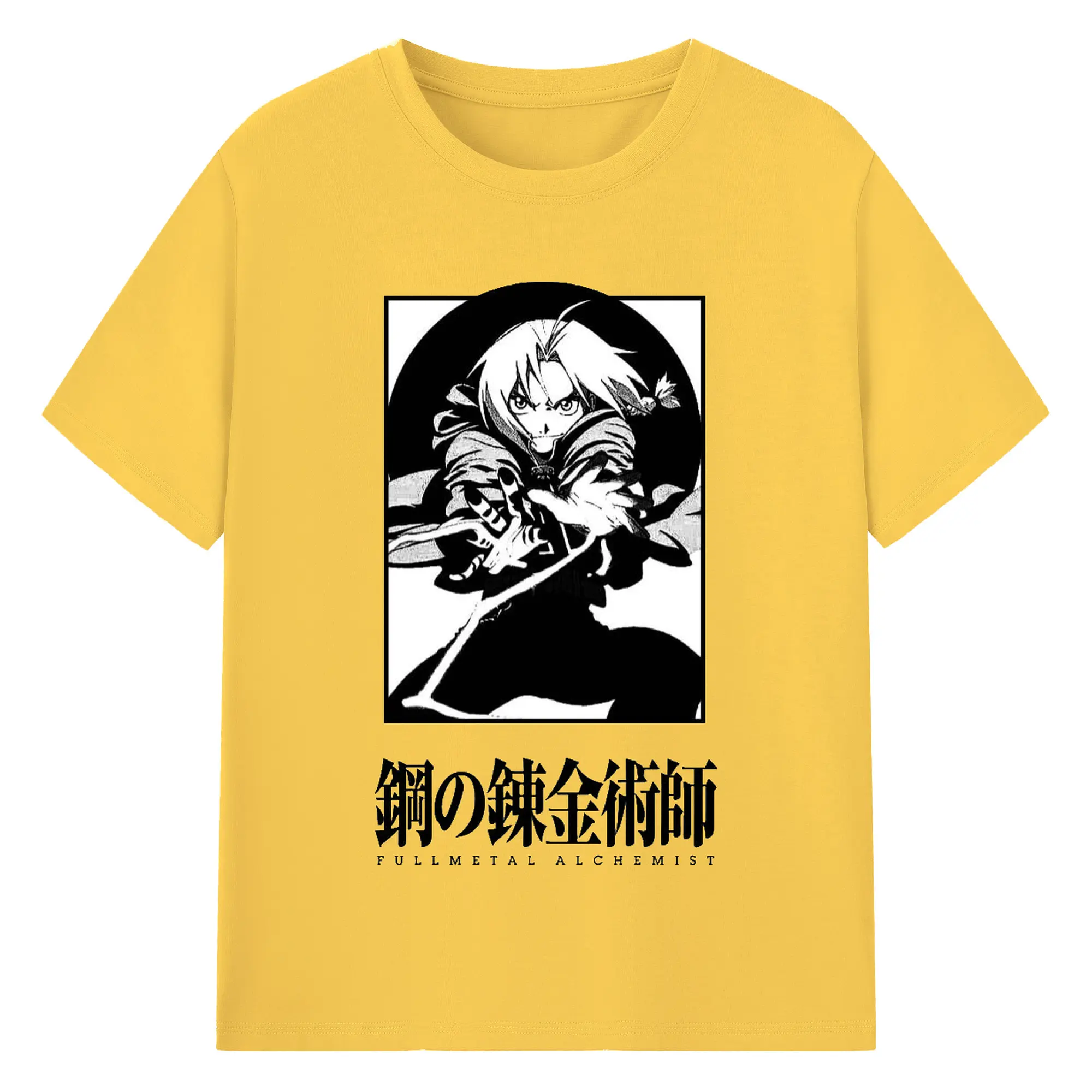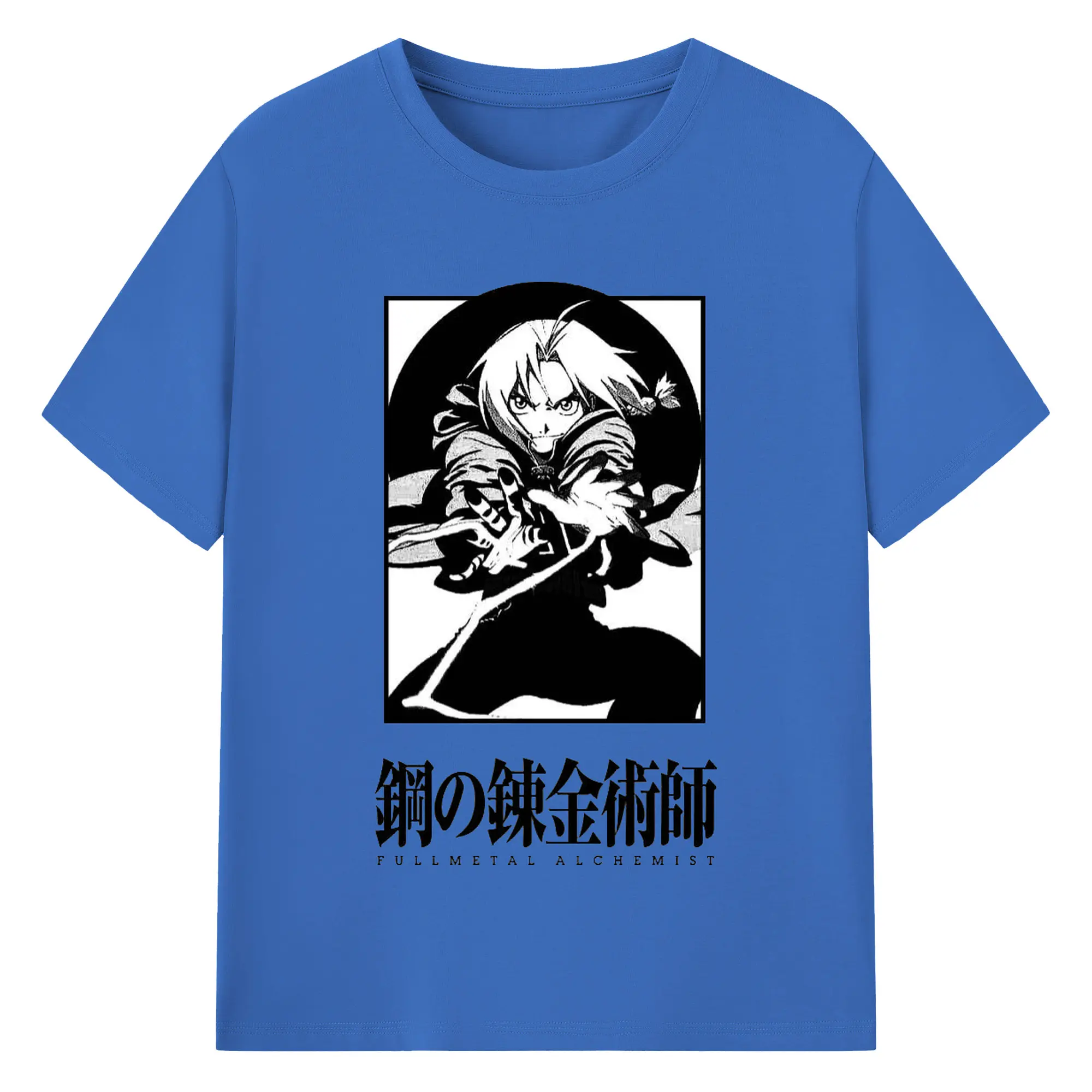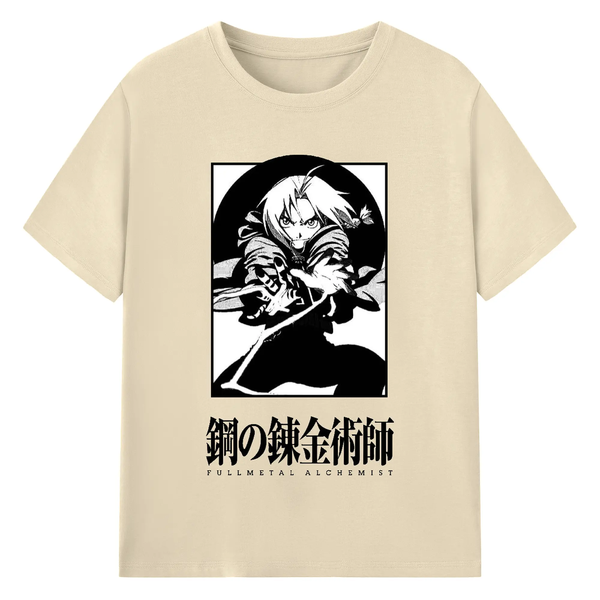 鋼の錬金術師 エドワードエルリック - 綿100% ヴィンテージ風 半袖Tシャツ ・ フロントプリント ・ 柔らか肌触り ・ 通気性 快適 ・ スポーツ カジュアル 外出用