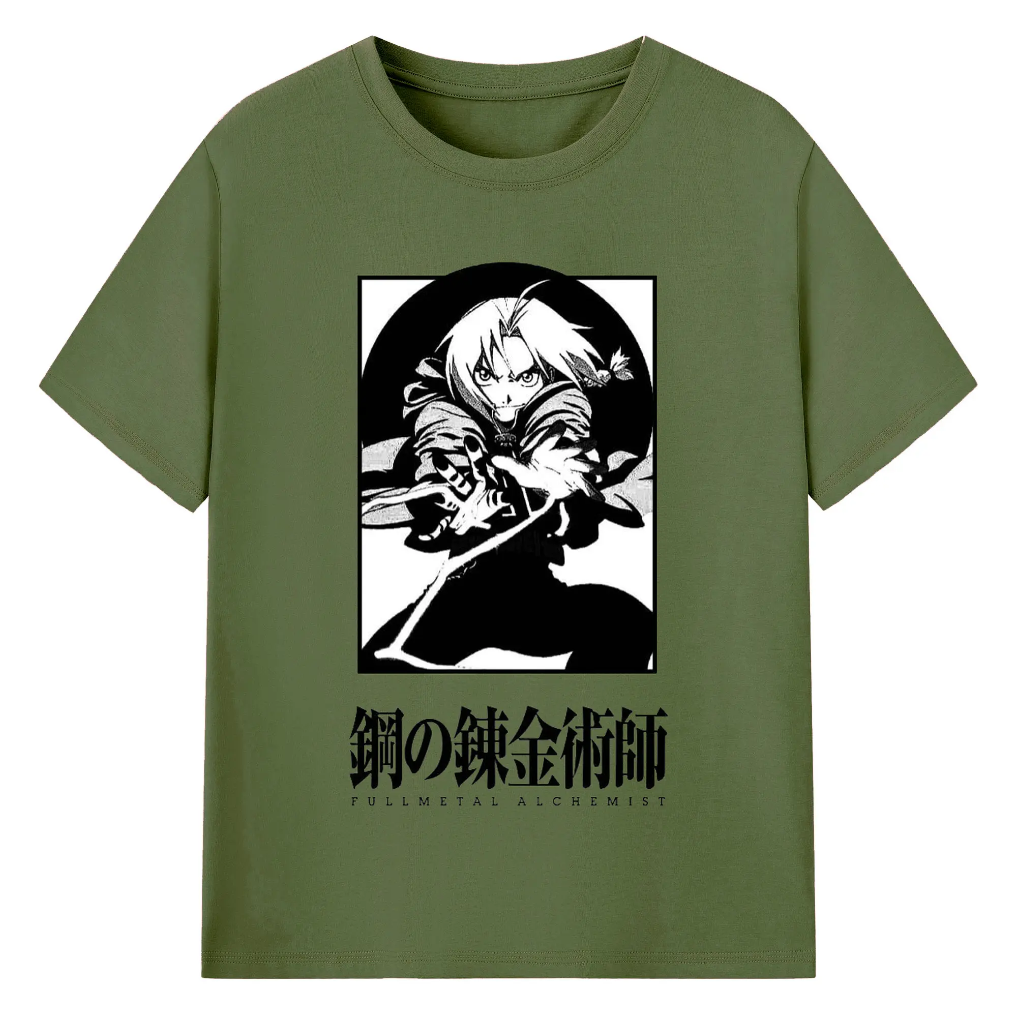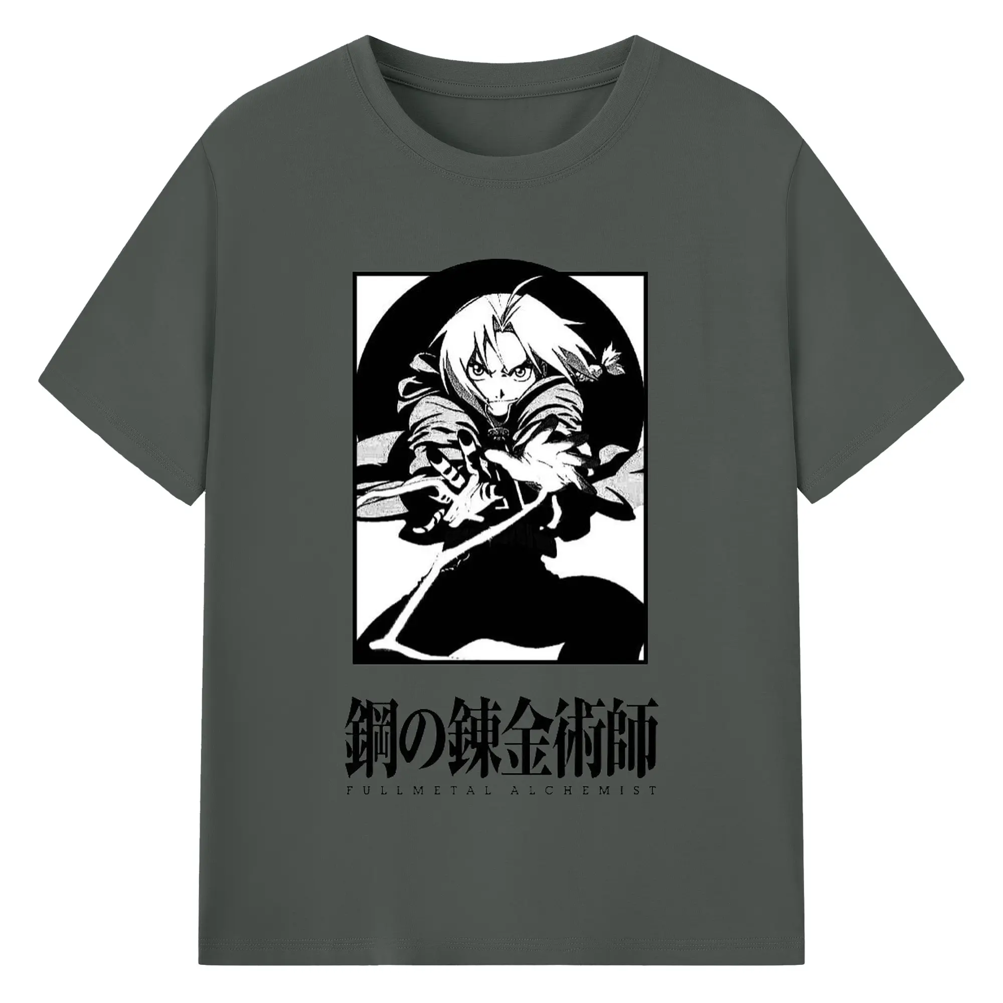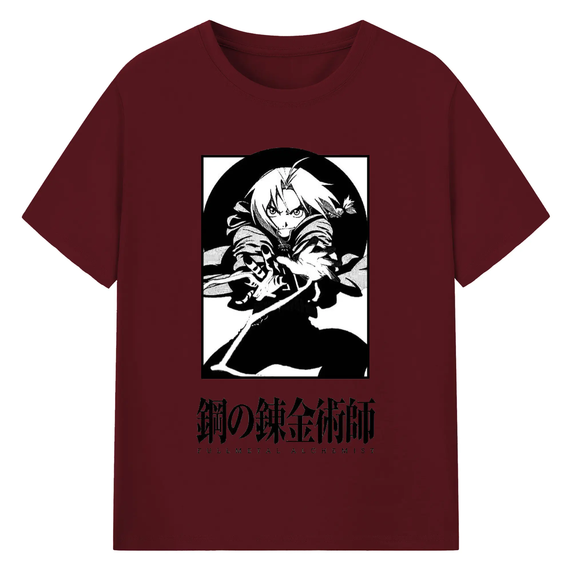 鋼の錬金術師 エドワードエルリック - 綿100% ヴィンテージ風 半袖Tシャツ ・ フロントプリント ・ 柔らか肌触り ・ 通気性 快適 ・ スポーツ カジュアル 外出用