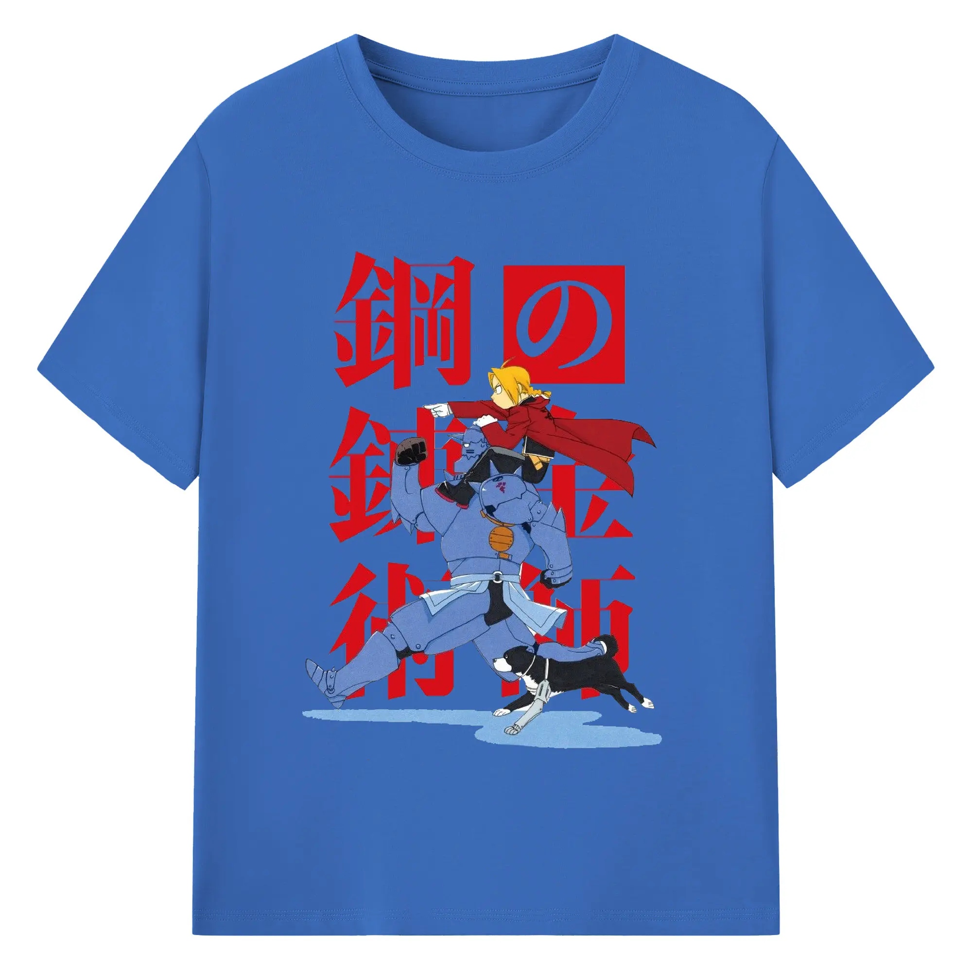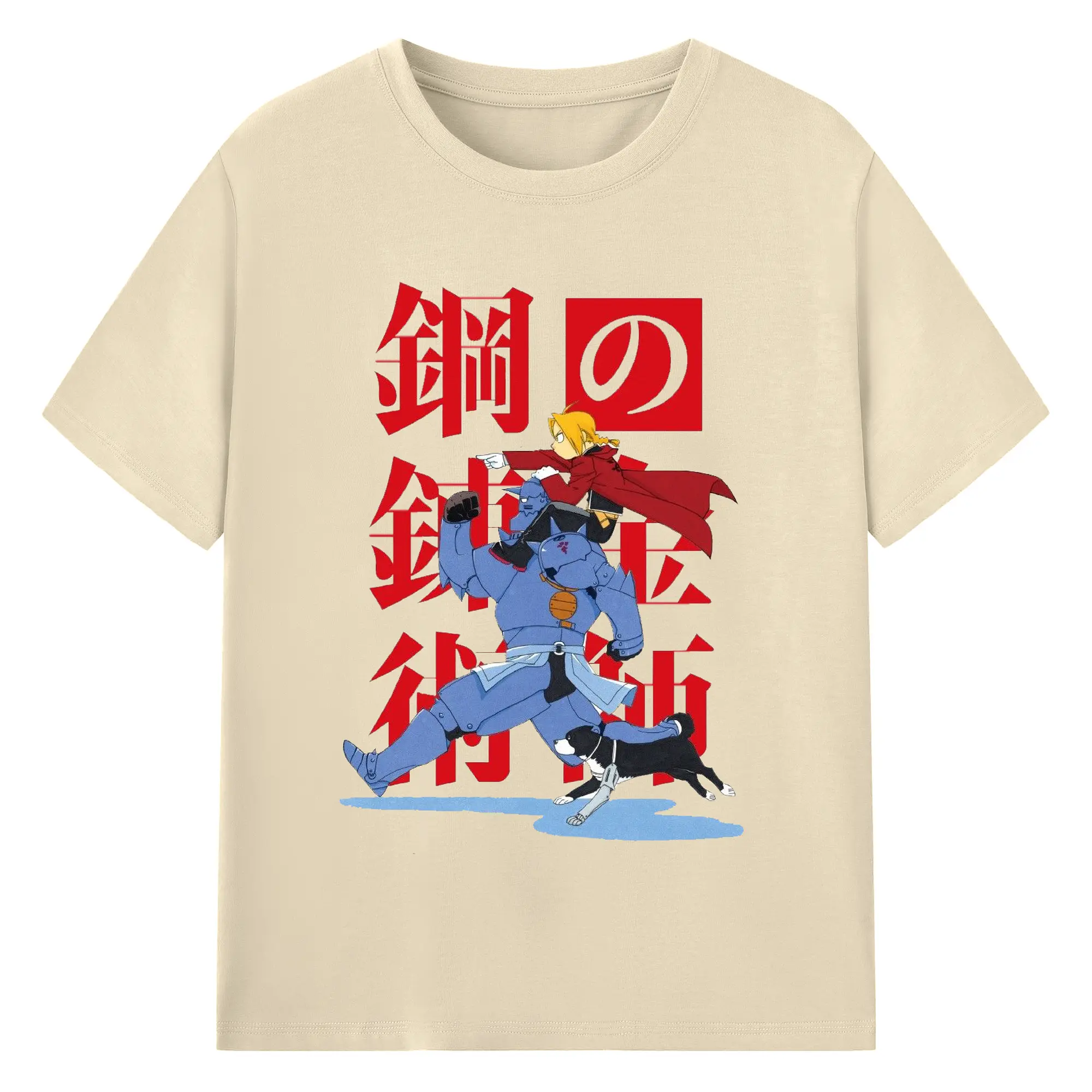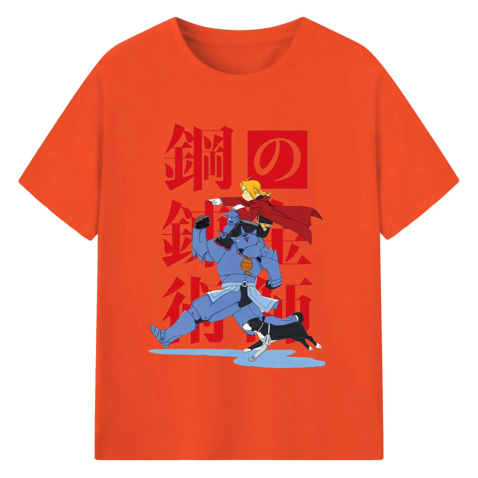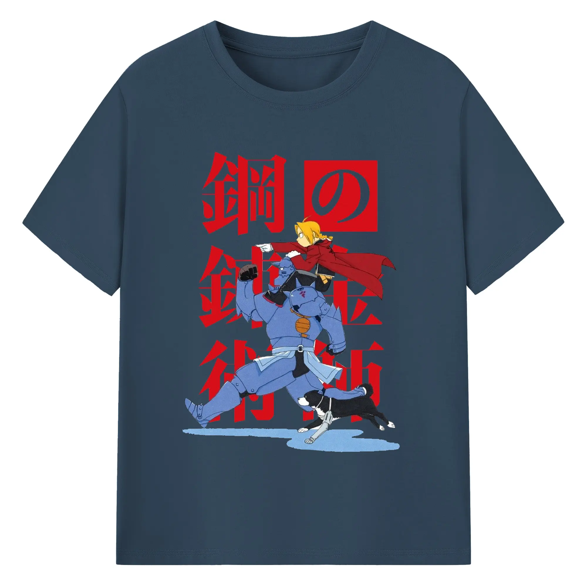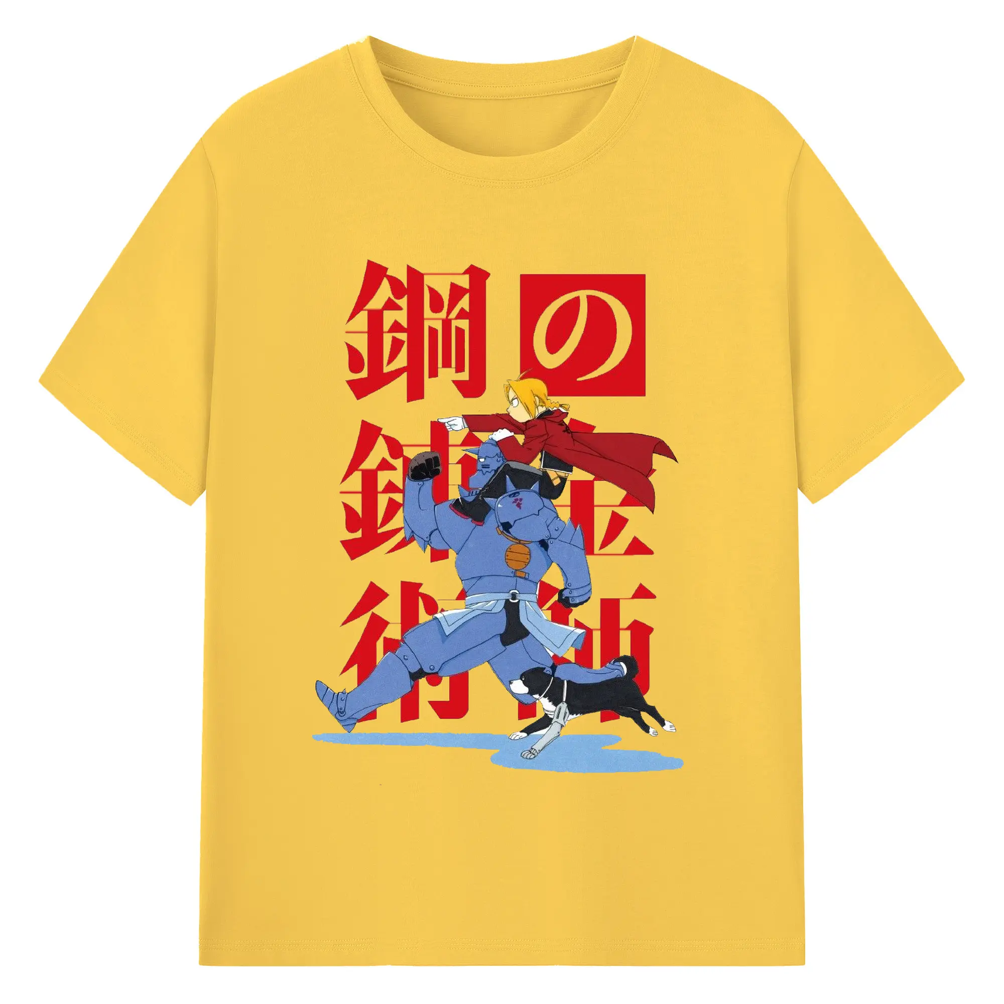 鋼の錬金術師 エドとアル兄弟 - 綿100% ヴィンテージ風 半袖Tシャツ ・ フロントプリント ・ 柔らか肌触り ・ 通気性 快適 ・ スポーツ カジュアル 外出用