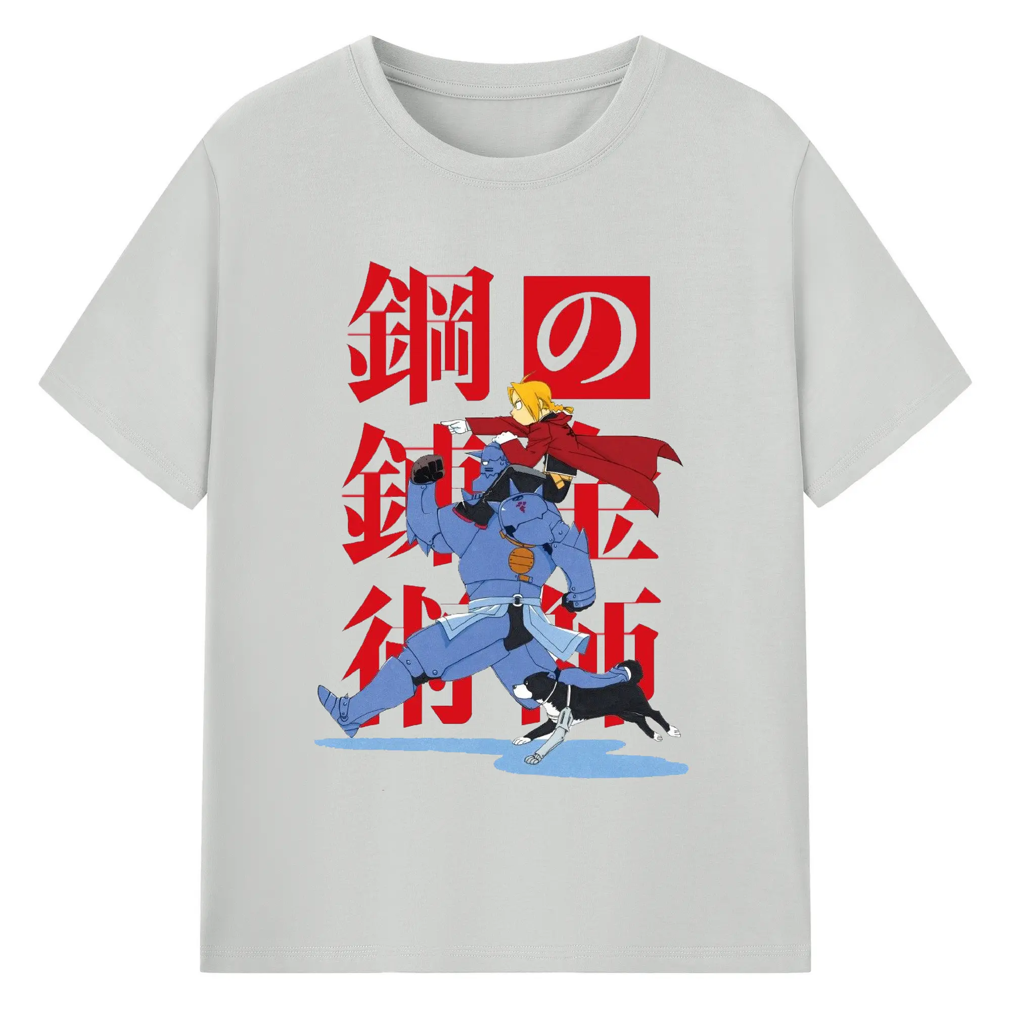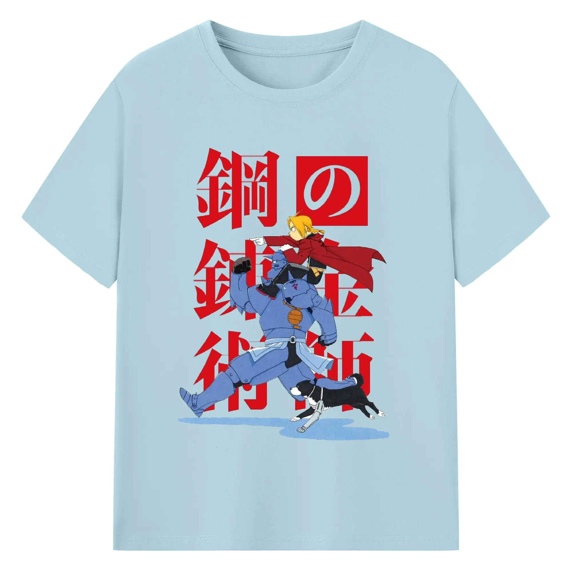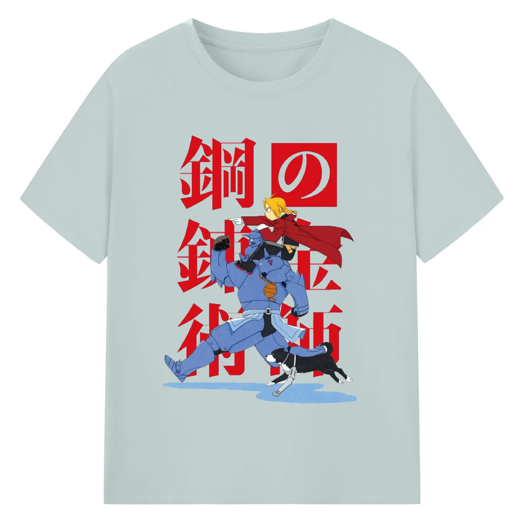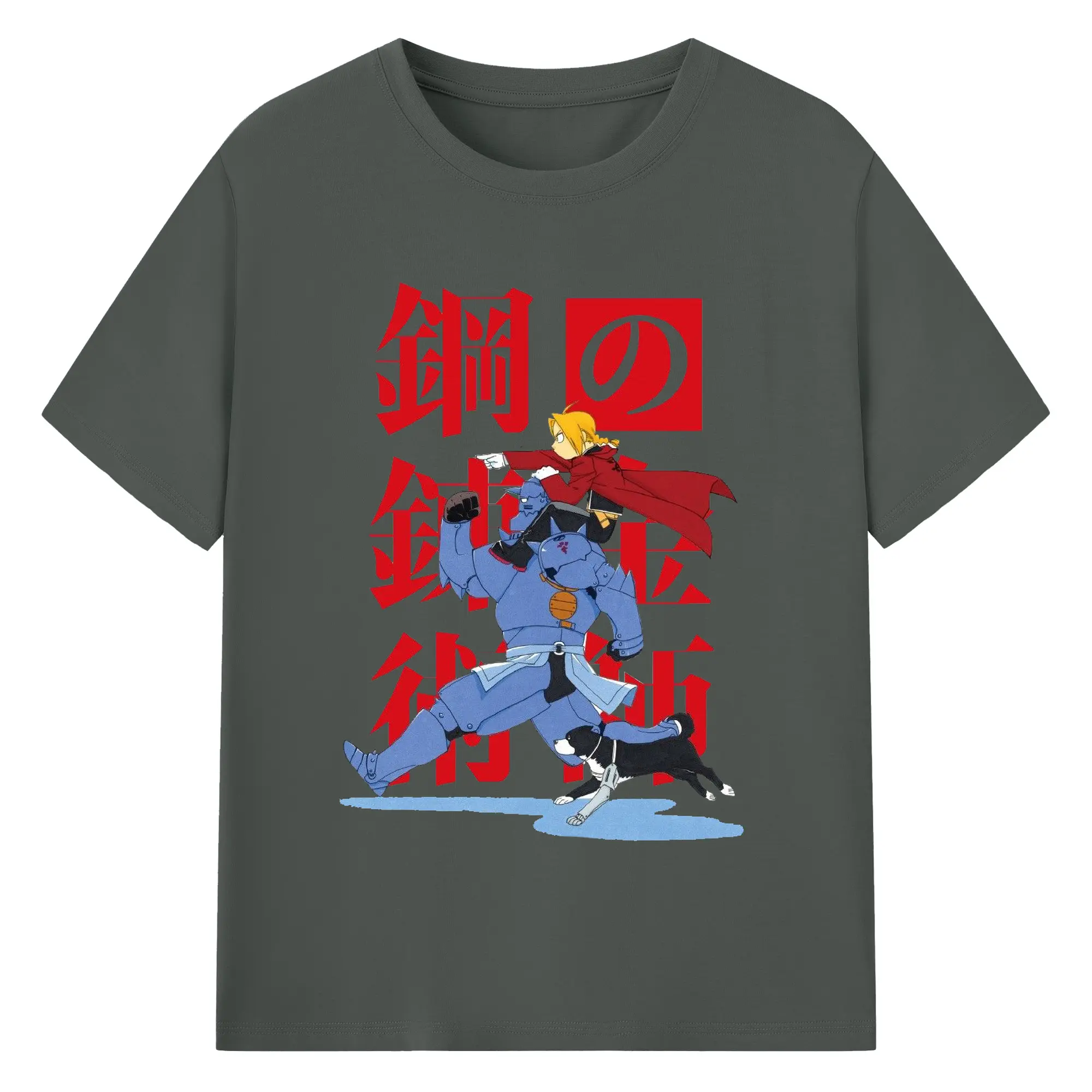 鋼の錬金術師 エドとアル兄弟 - 綿100% ヴィンテージ風 半袖Tシャツ ・ フロントプリント ・ 柔らか肌触り ・ 通気性 快適 ・ スポーツ カジュアル 外出用