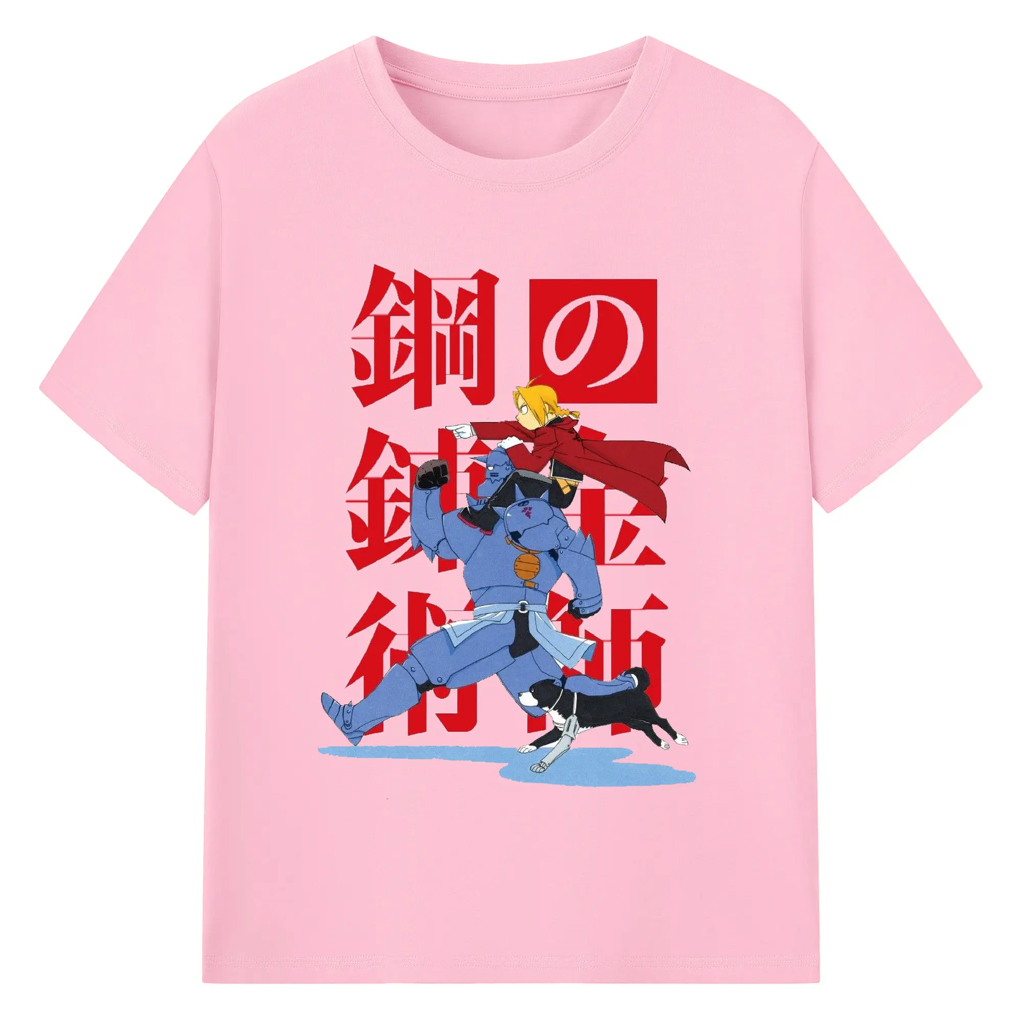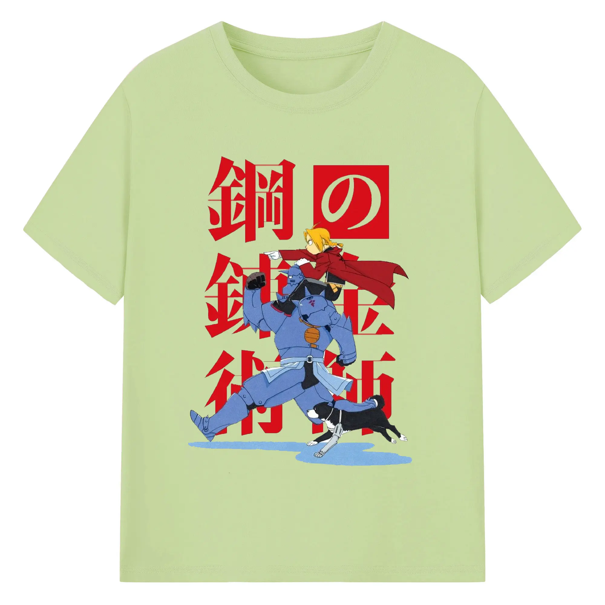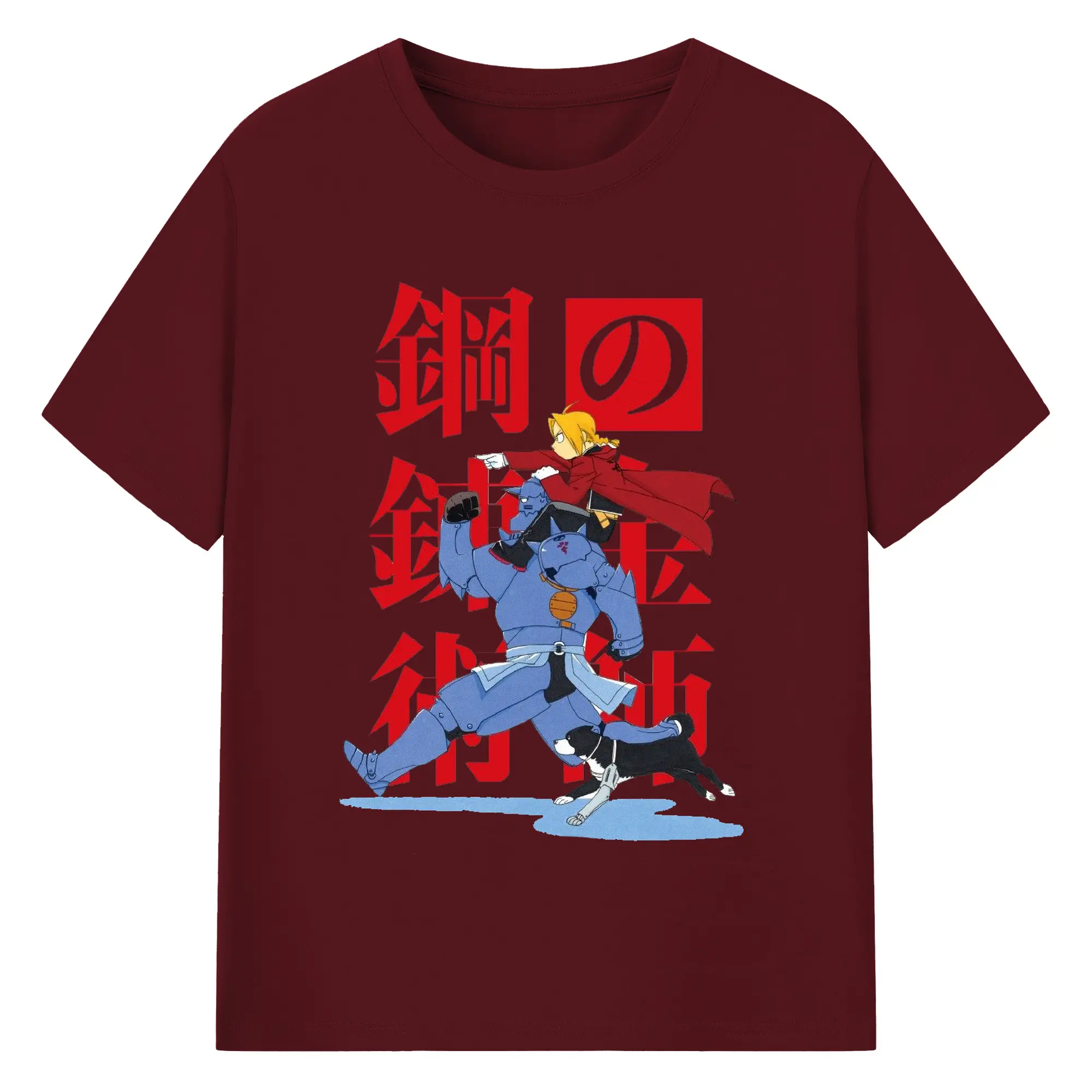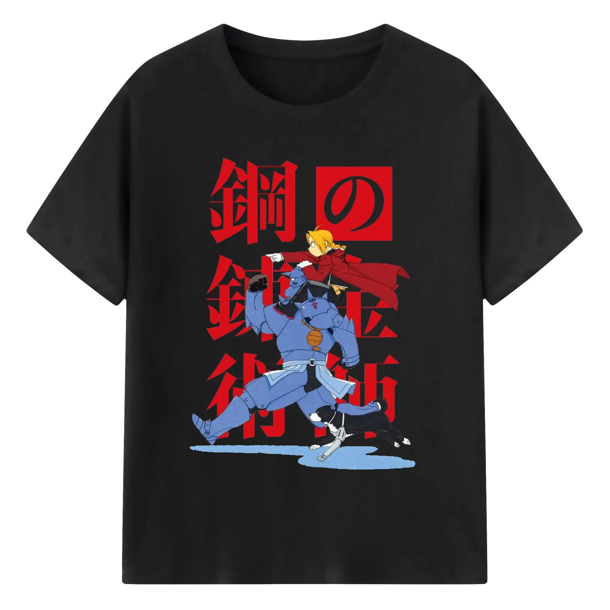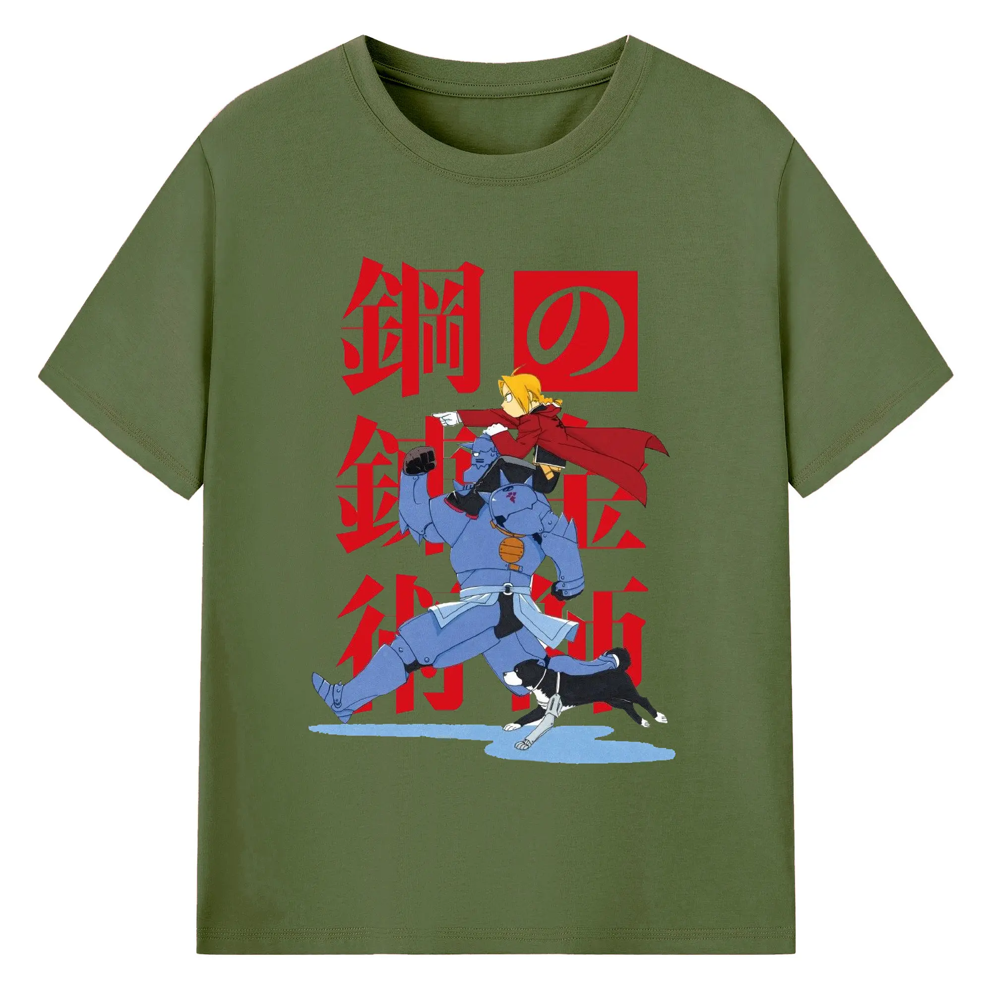 鋼の錬金術師 エドとアル兄弟 - 綿100% ヴィンテージ風 半袖Tシャツ ・ フロントプリント ・ 柔らか肌触り ・ 通気性 快適 ・ スポーツ カジュアル 外出用