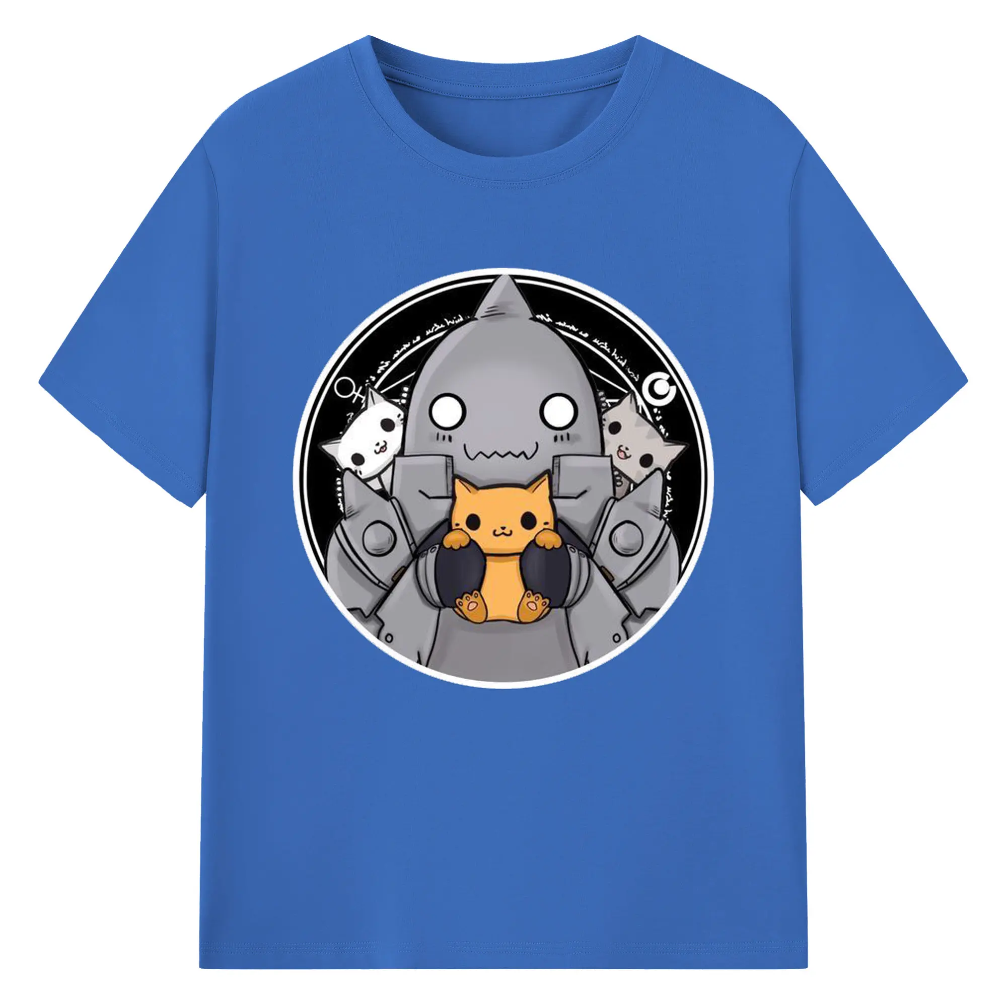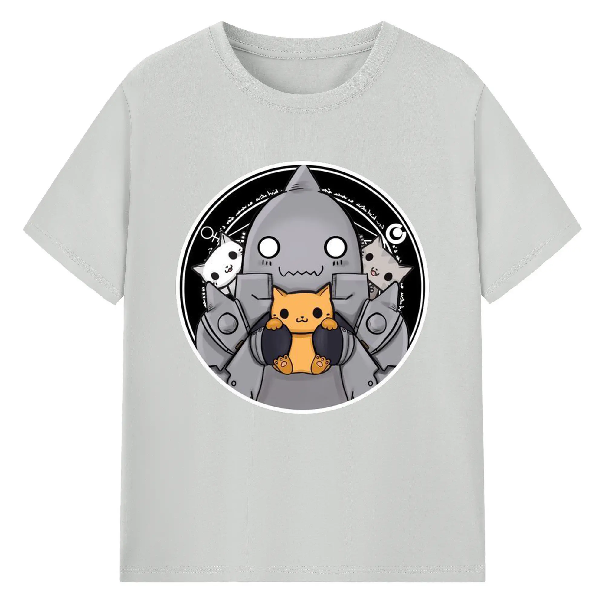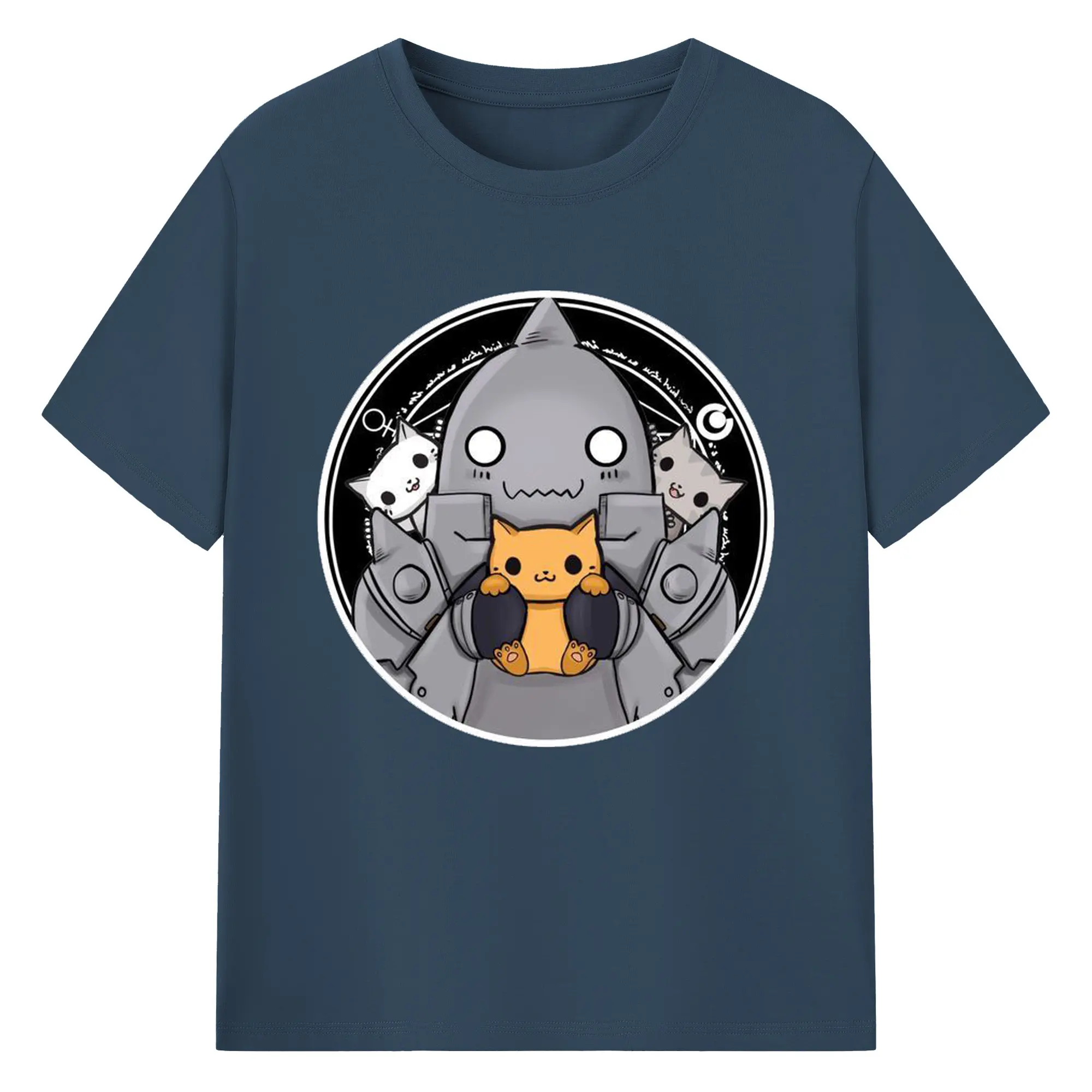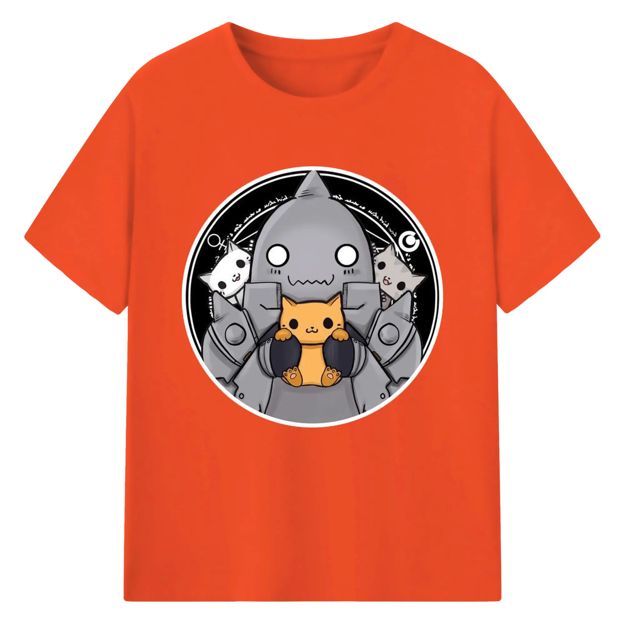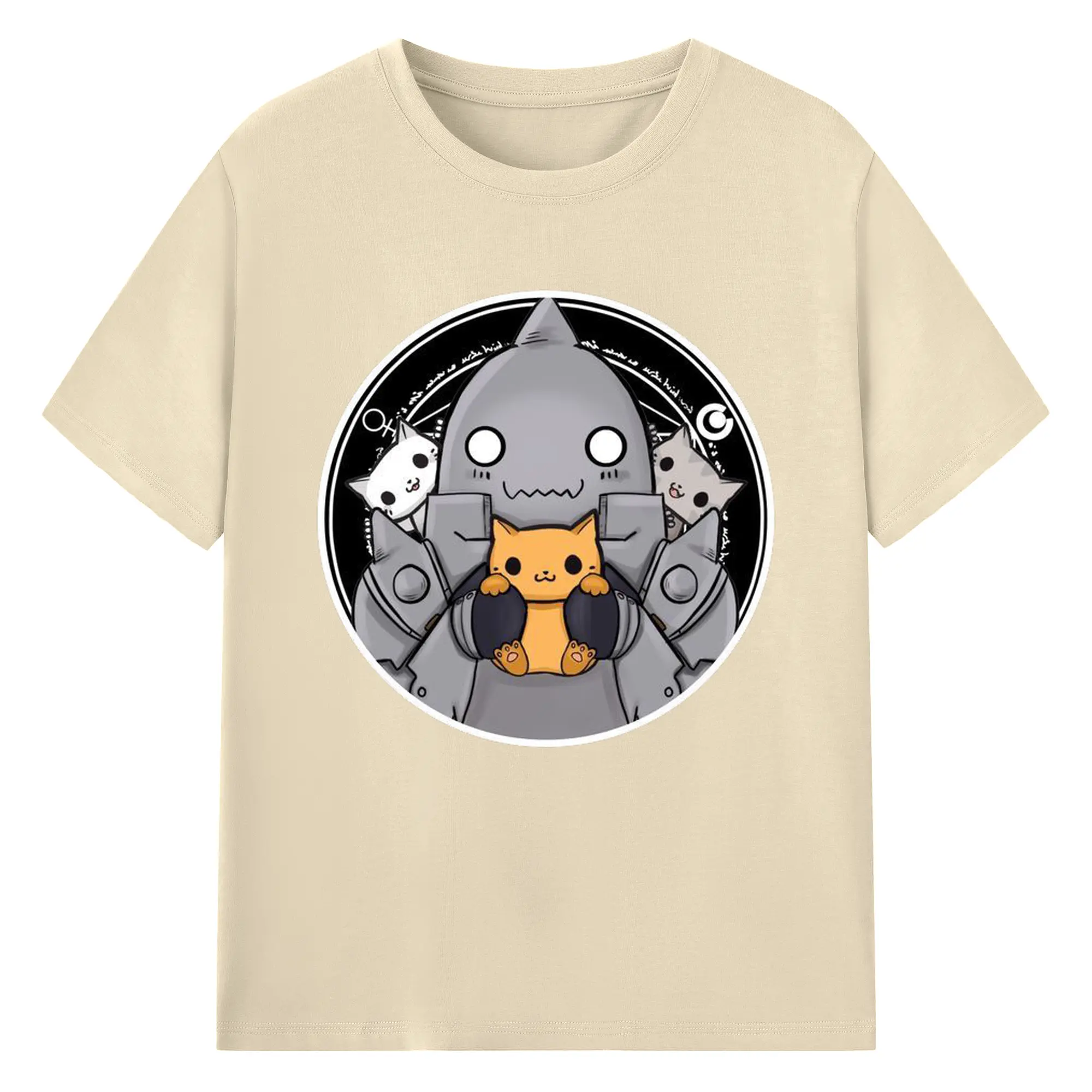 鋼の錬金術師 デフォルトアルフォンス猫まおまお - 綿100% ヴィンテージ風 半袖Tシャツ ・ フロントプリント ・ 柔らか肌触り ・ 通気性 快適 ・ スポーツ カジュアル 外出用