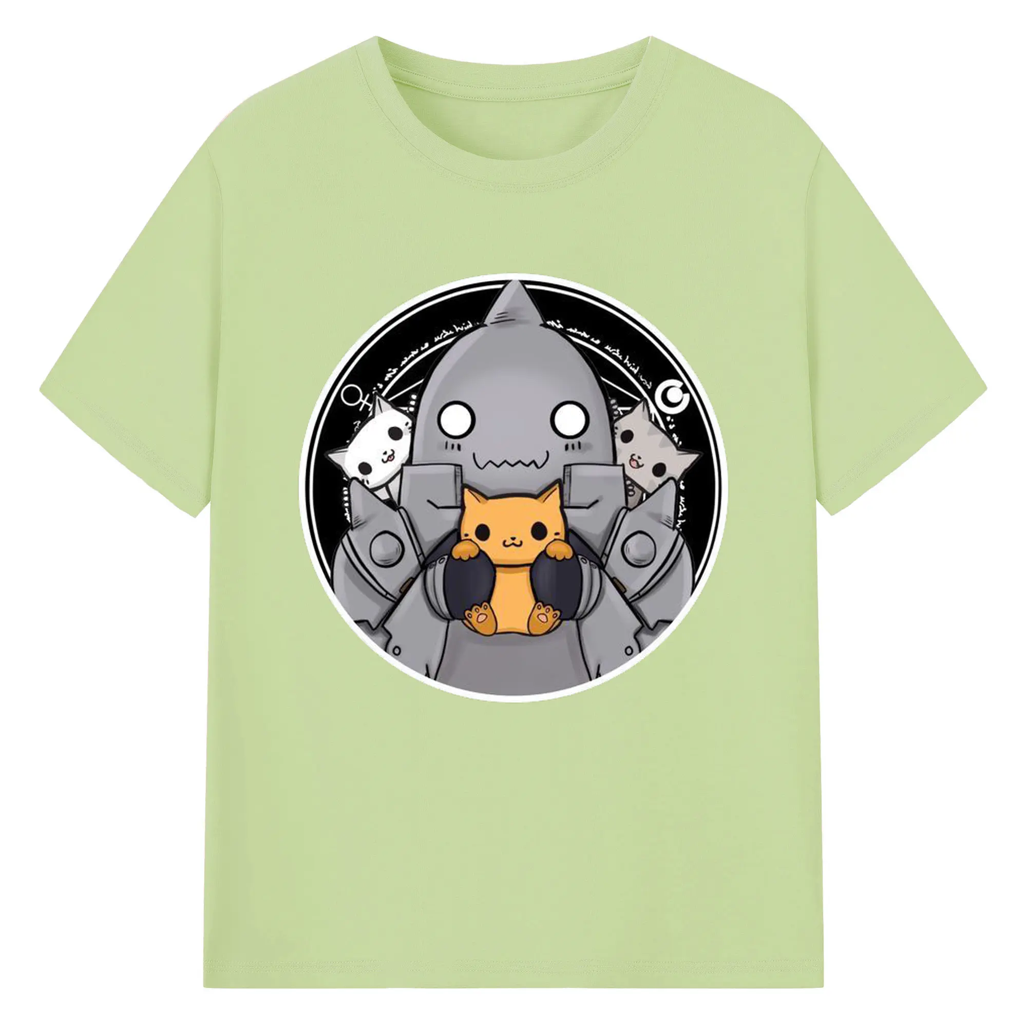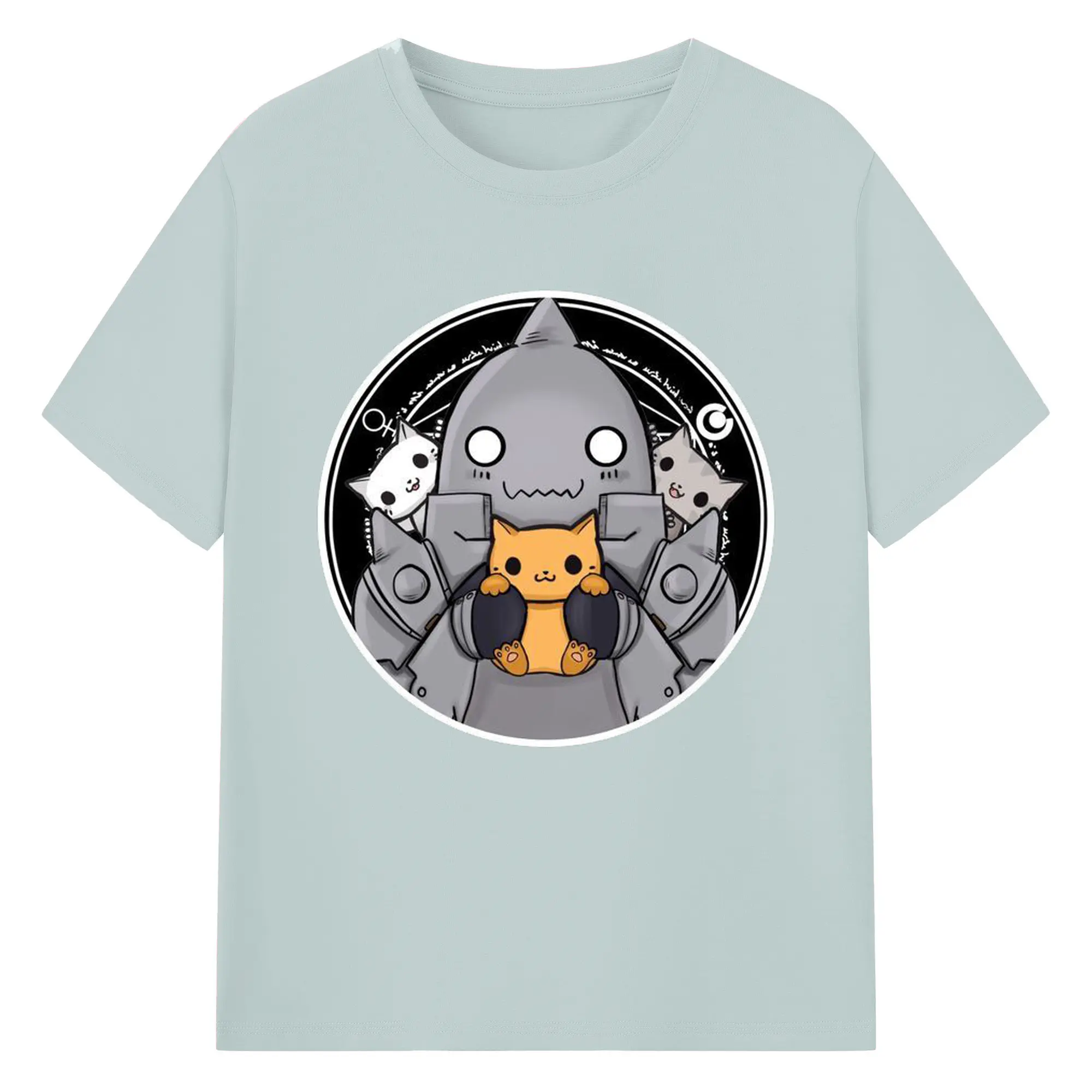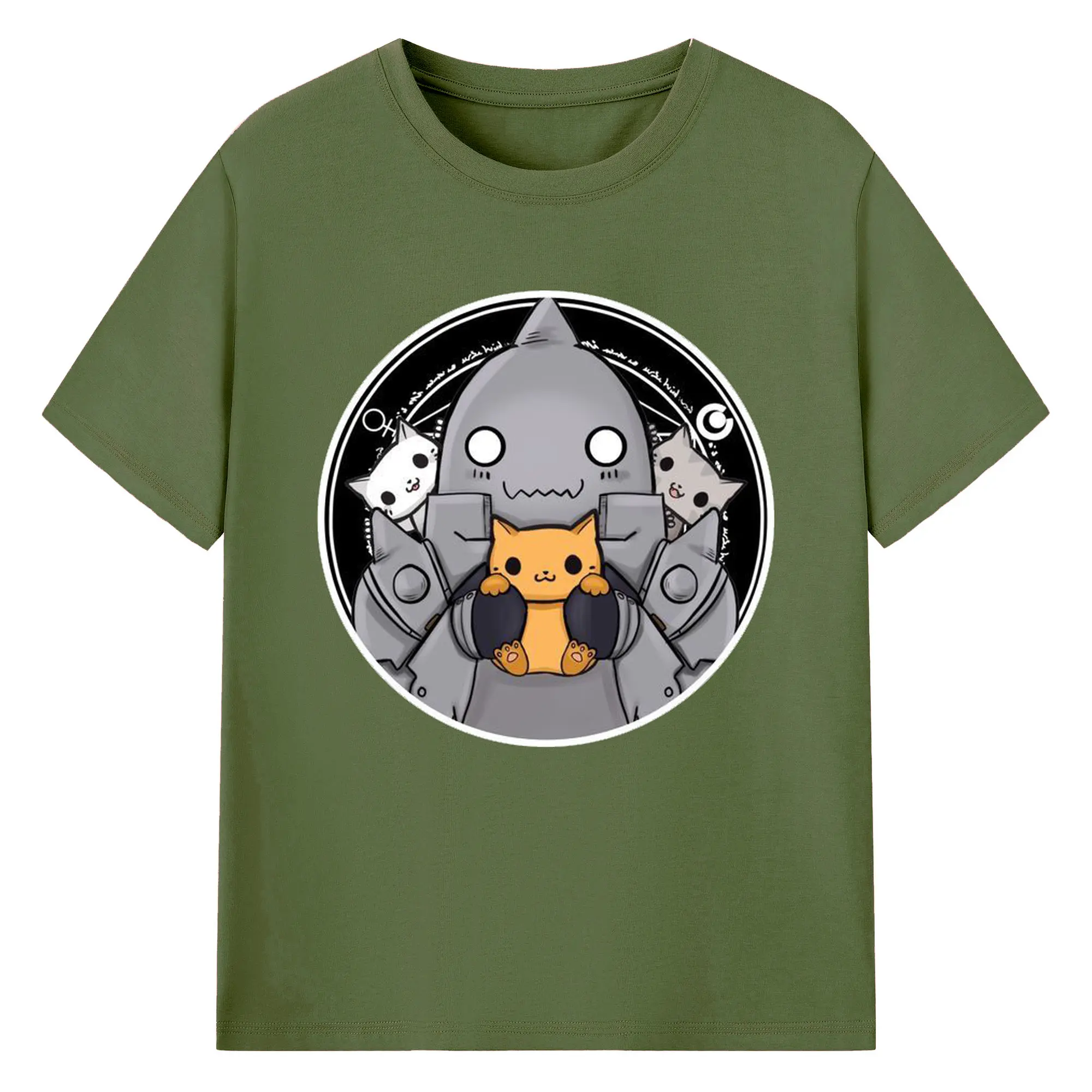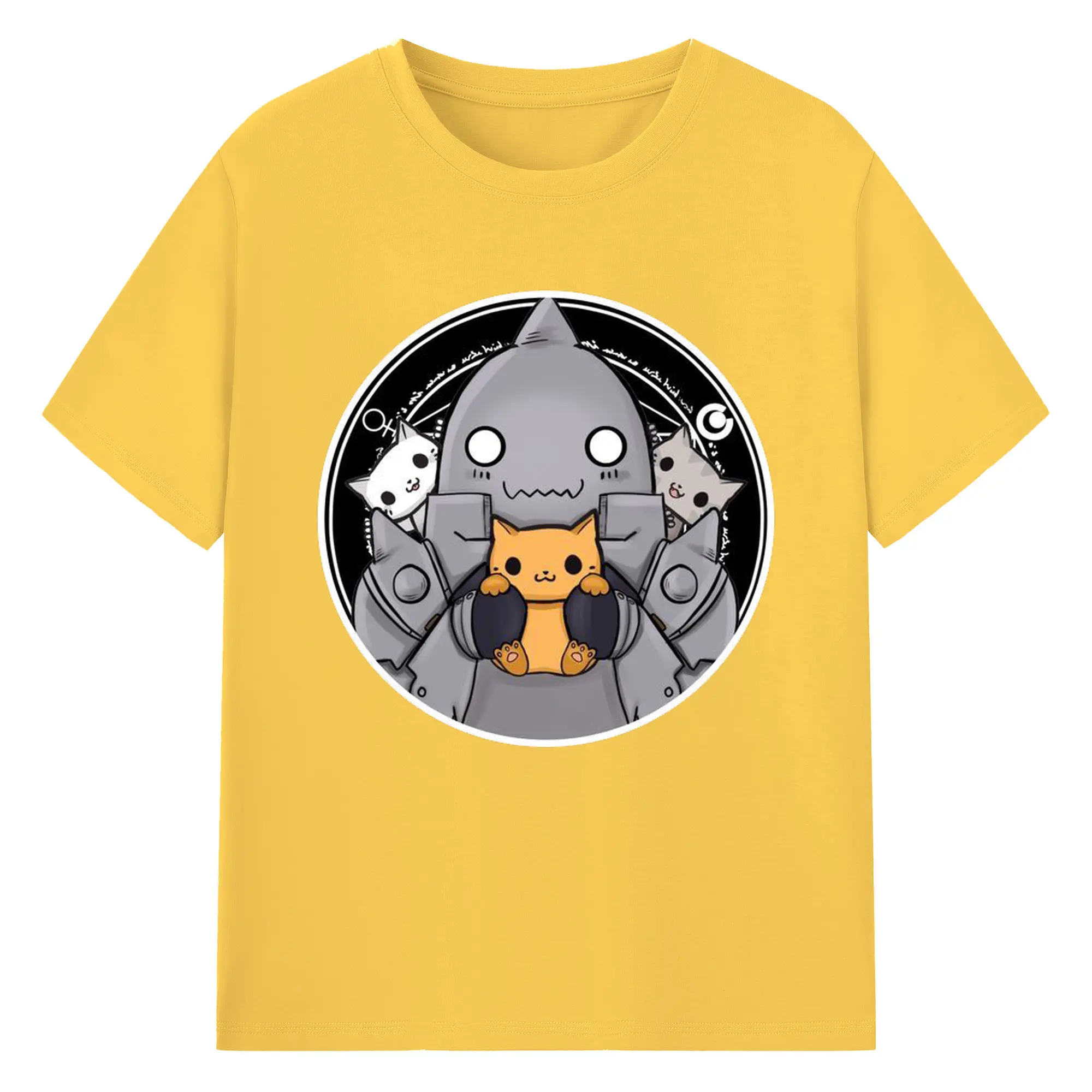 鋼の錬金術師 デフォルトアルフォンス猫まおまお - 綿100% ヴィンテージ風 半袖Tシャツ ・ フロントプリント ・ 柔らか肌触り ・ 通気性 快適 ・ スポーツ カジュアル 外出用