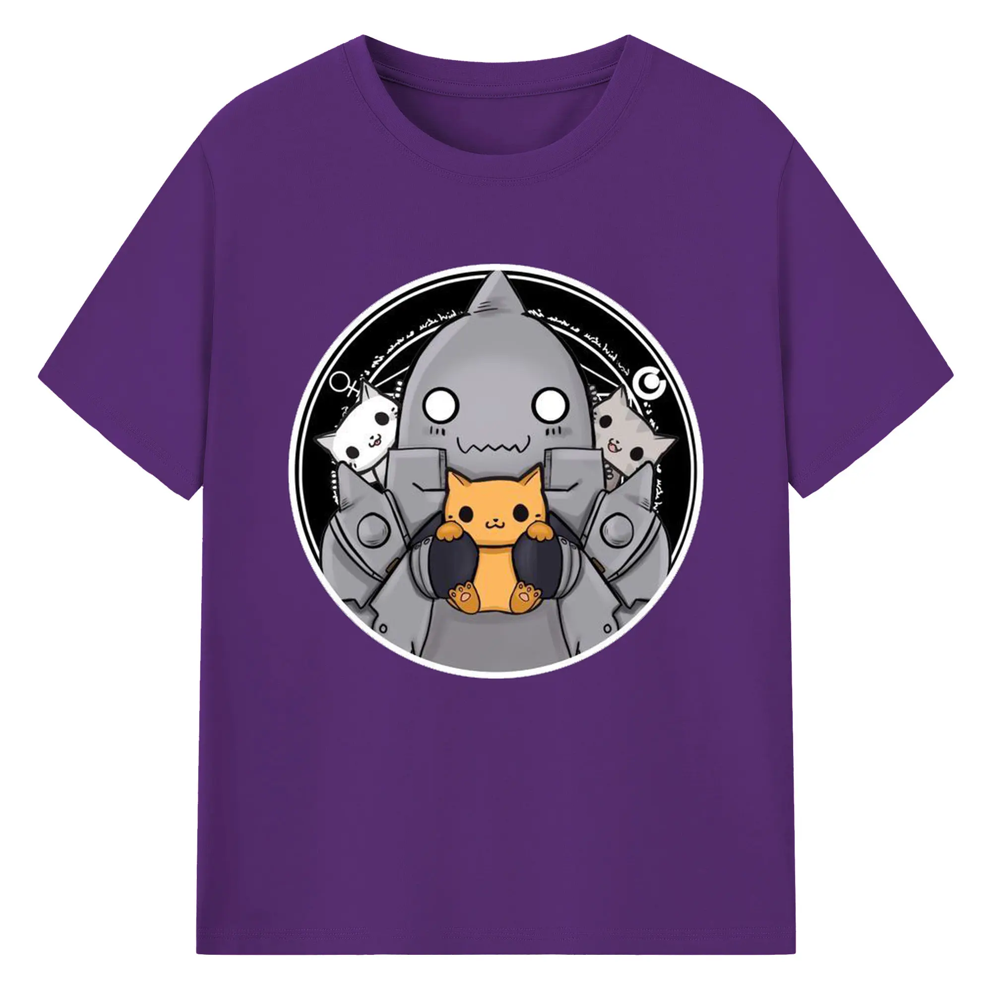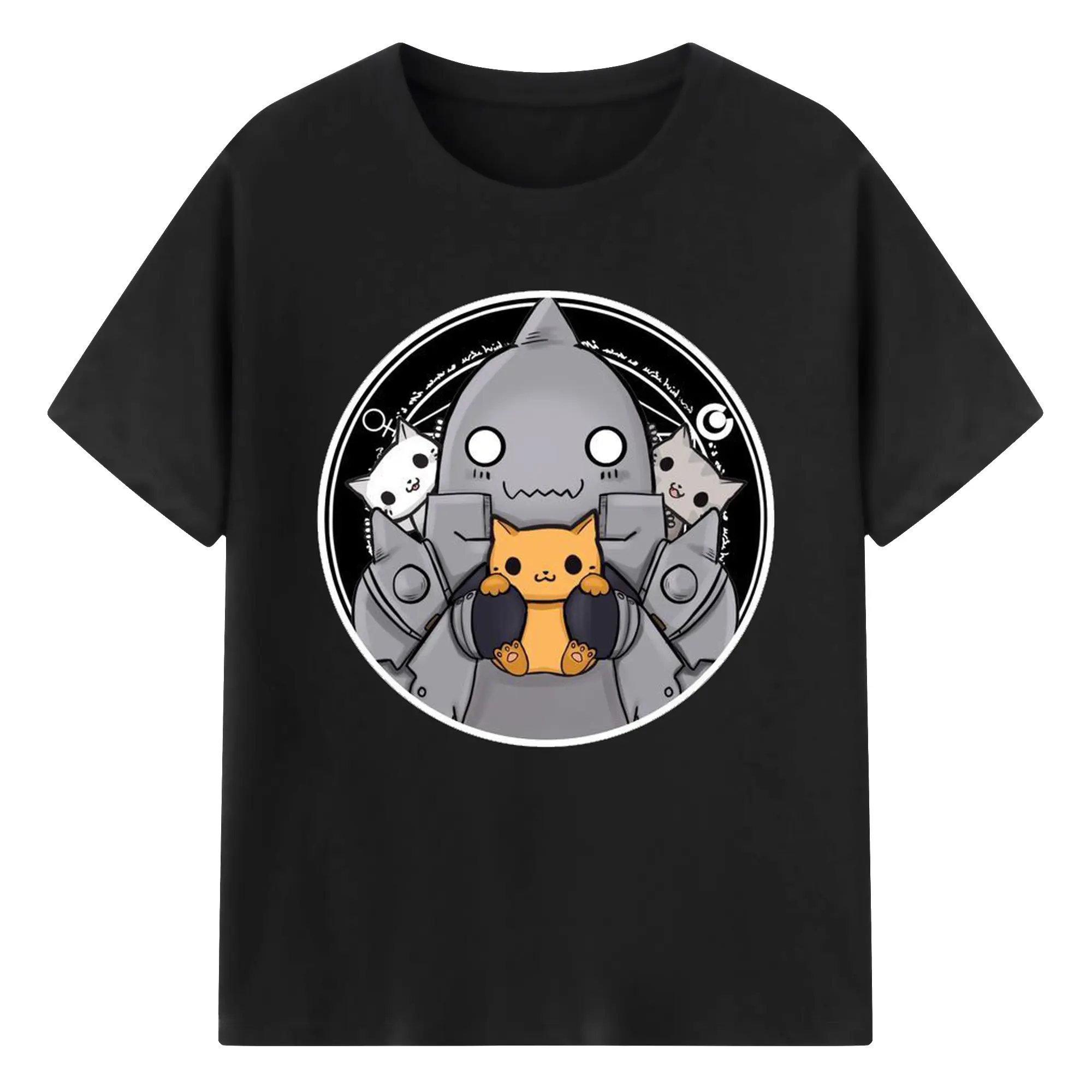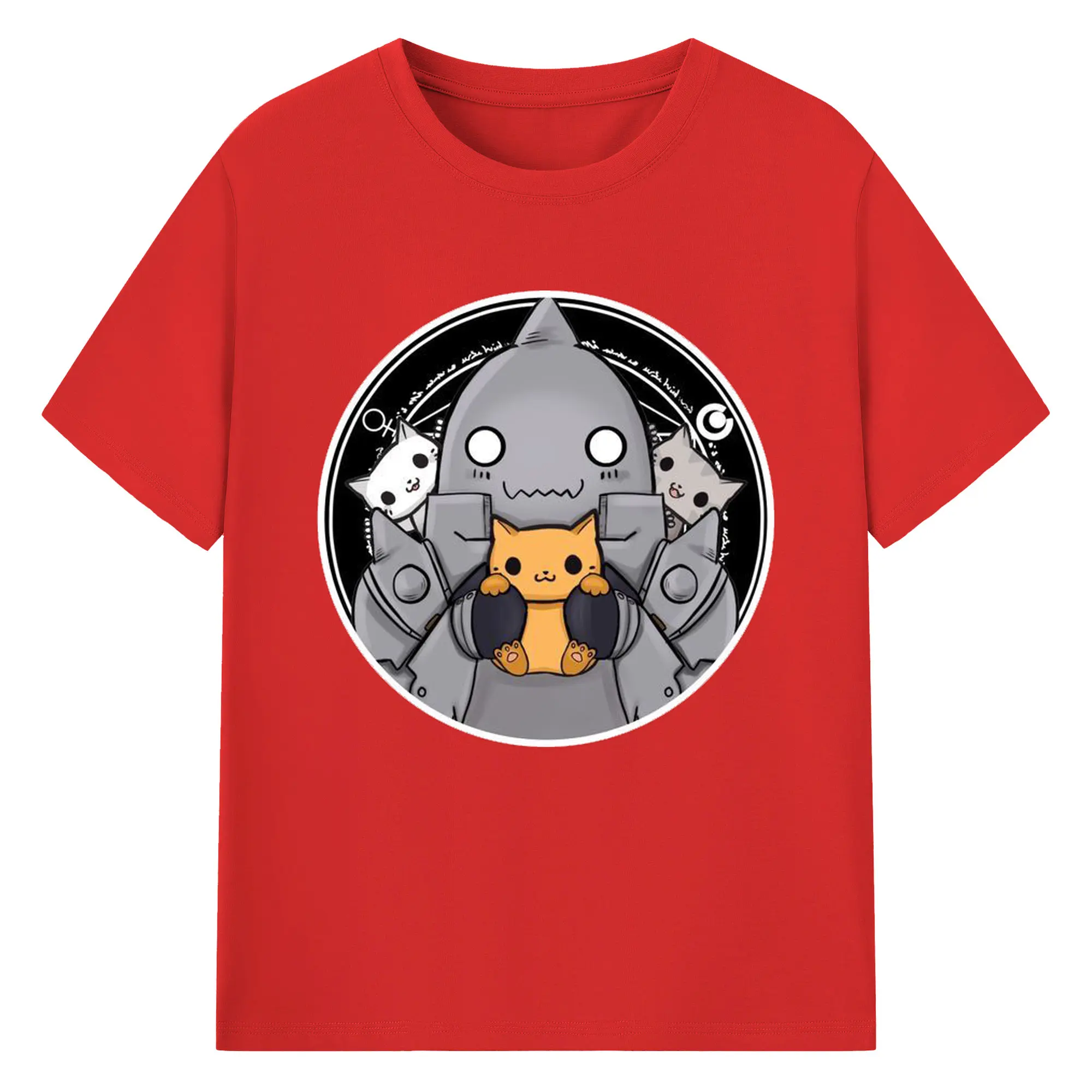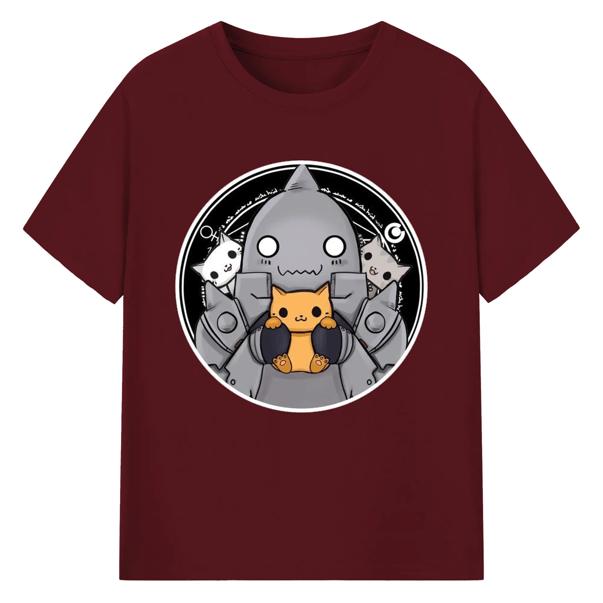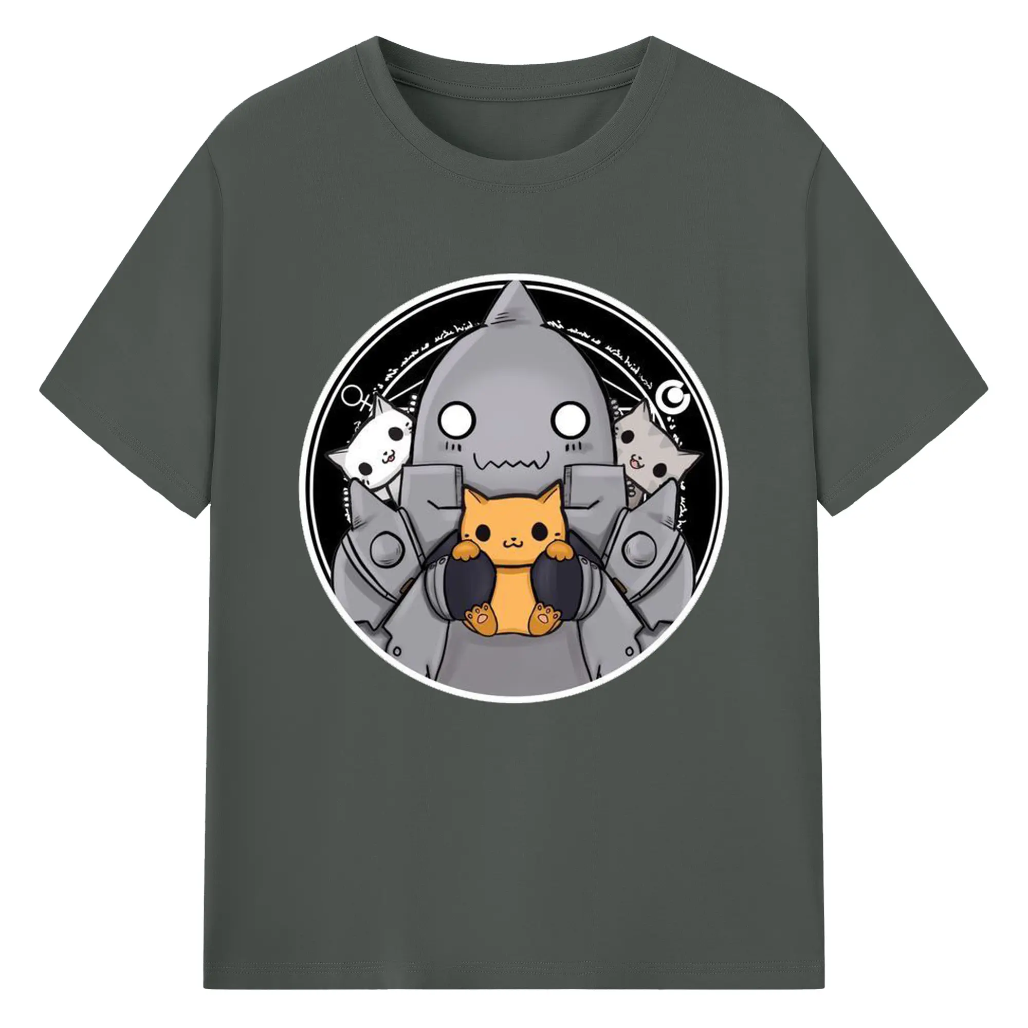 鋼の錬金術師 デフォルトアルフォンス猫まおまお - 綿100% ヴィンテージ風 半袖Tシャツ ・ フロントプリント ・ 柔らか肌触り ・ 通気性 快適 ・ スポーツ カジュアル 外出用