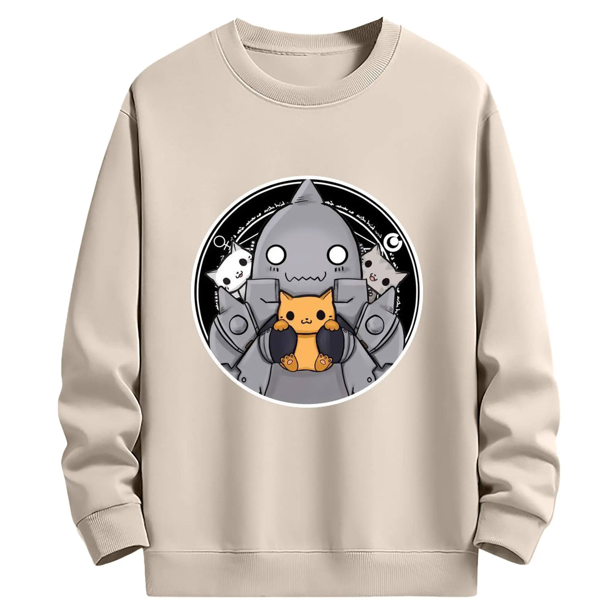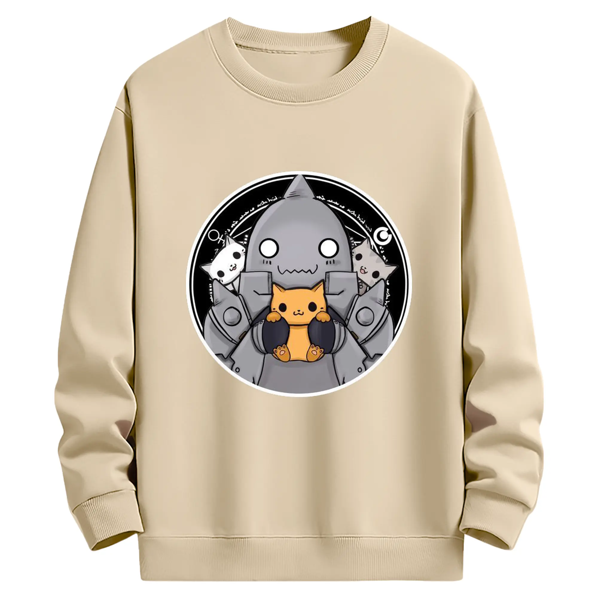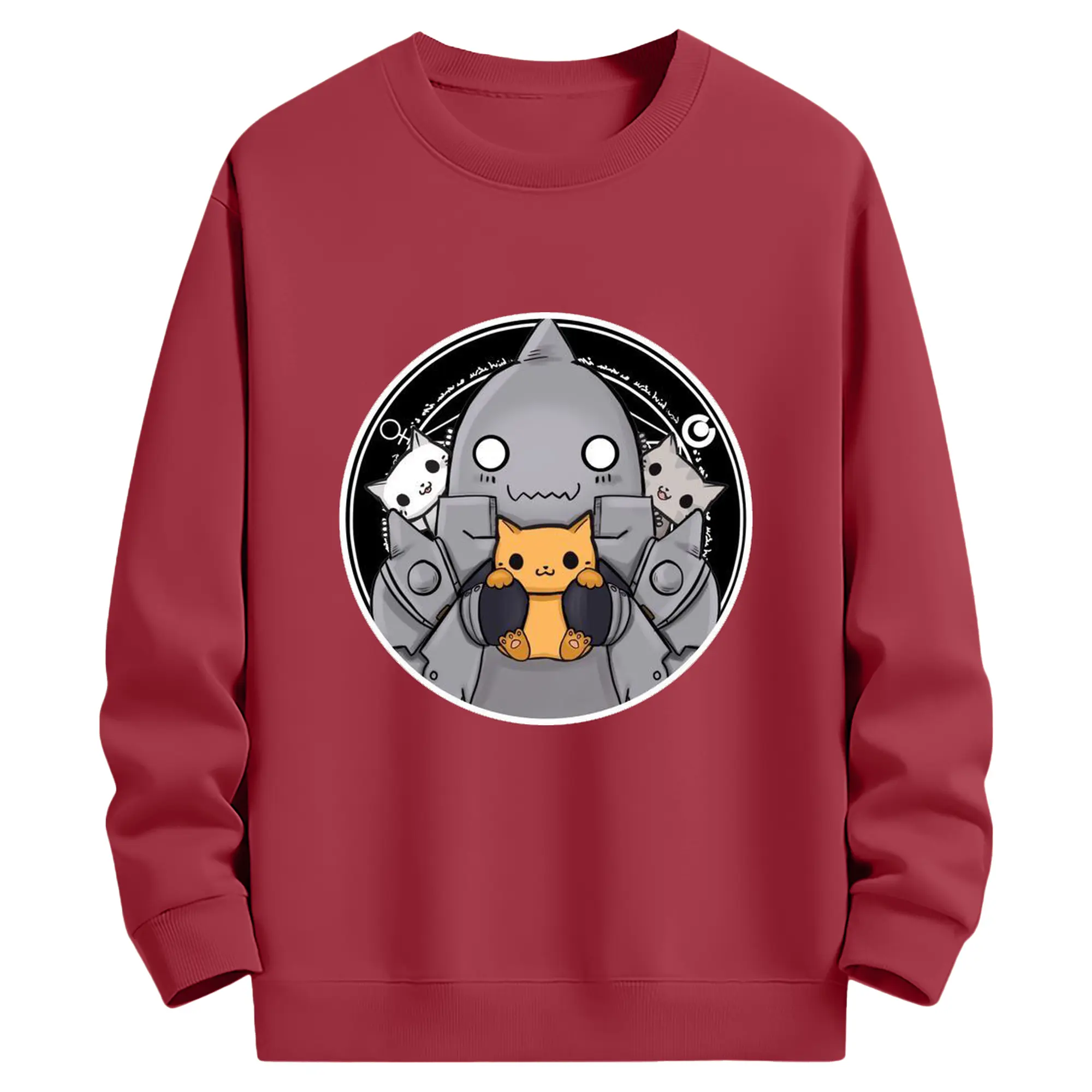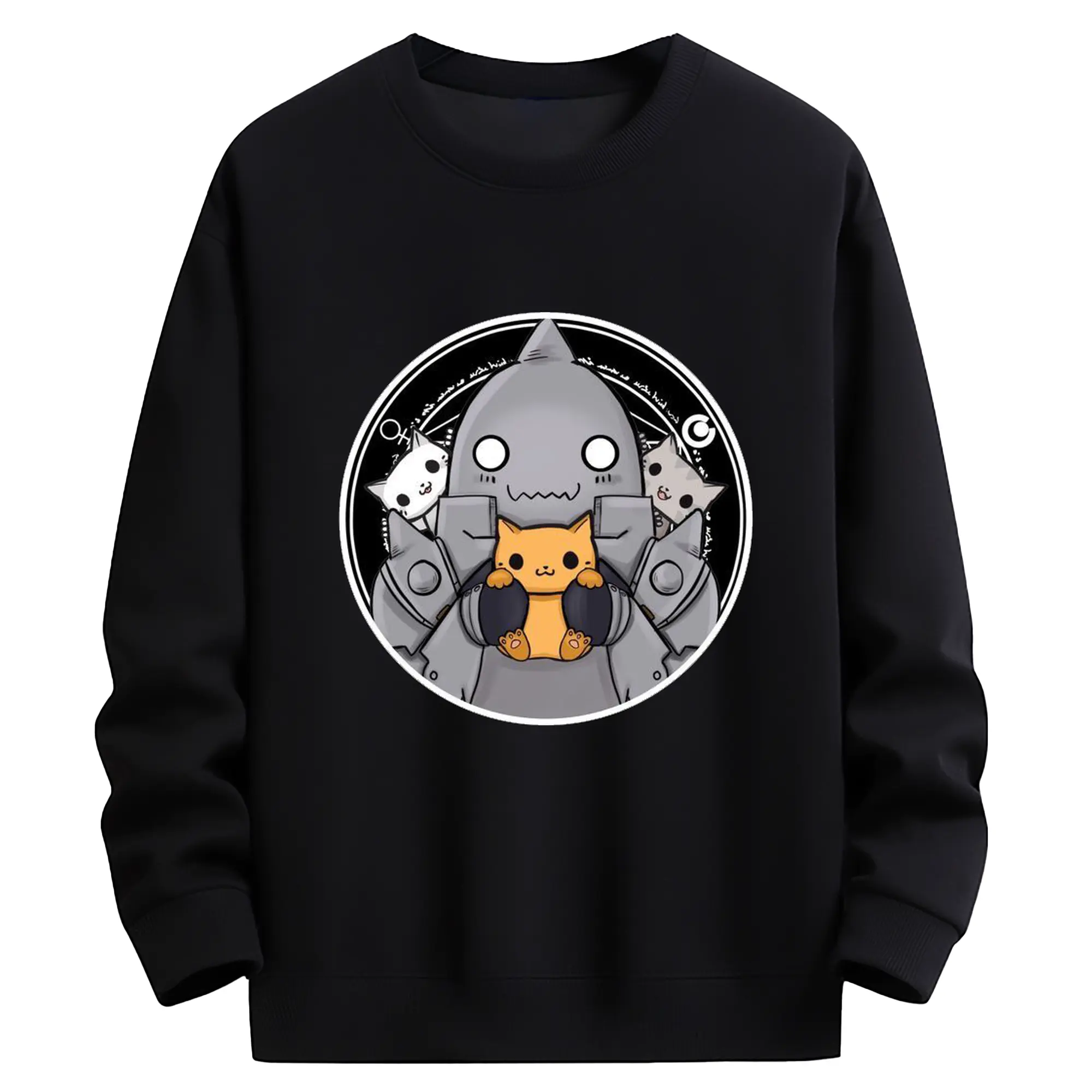 鋼の錬金術師 デフォルトアルフォンス猫まおまお - 綿100% 半袖Tシャツ ・ フロントプリント ・ 快適 通気性 ・ 日常使い 散歩 スポーツ用