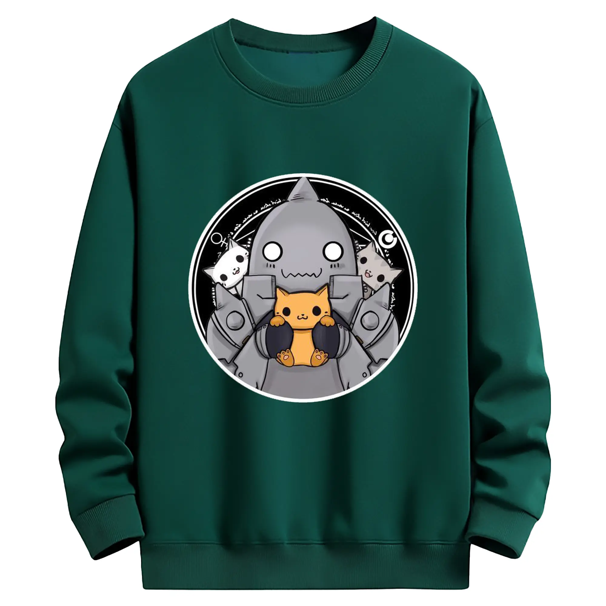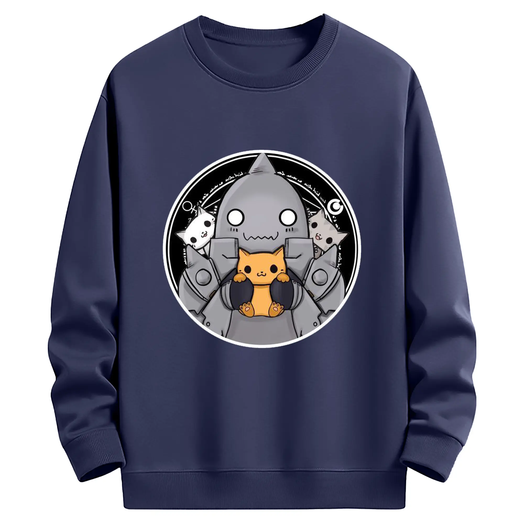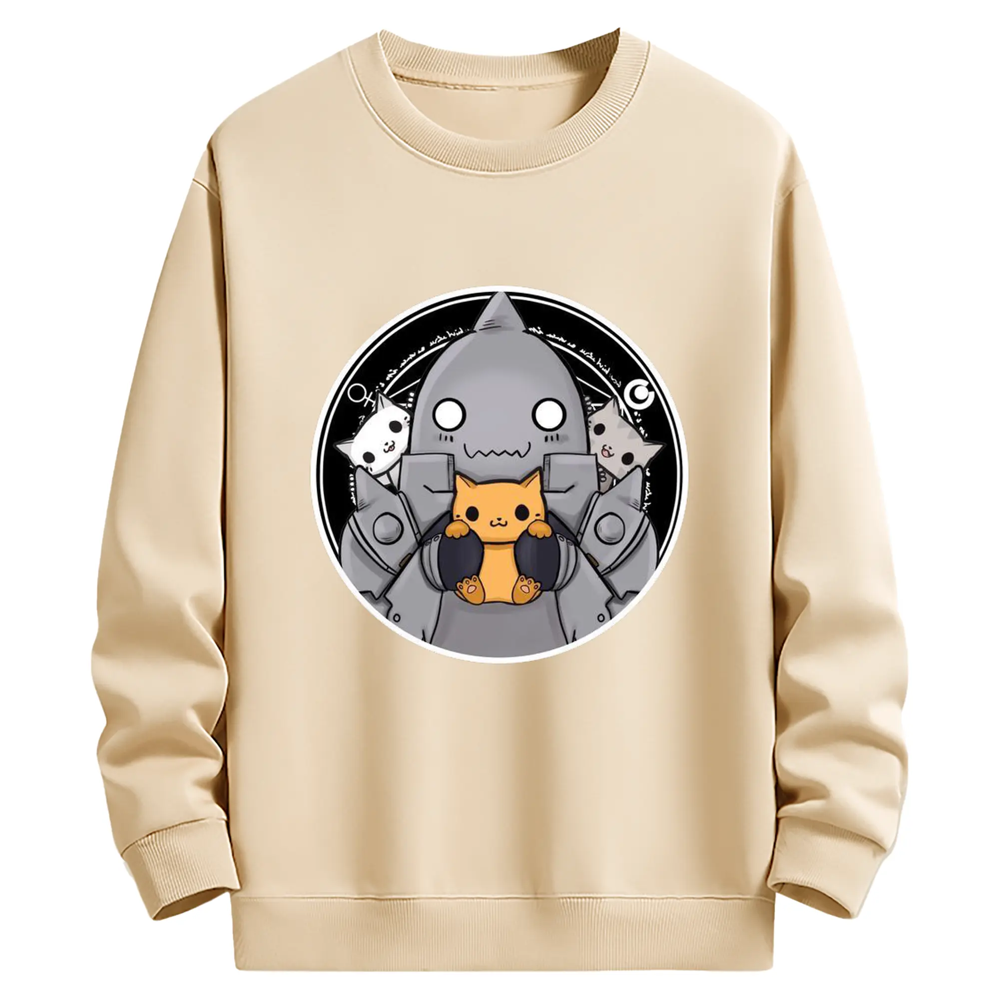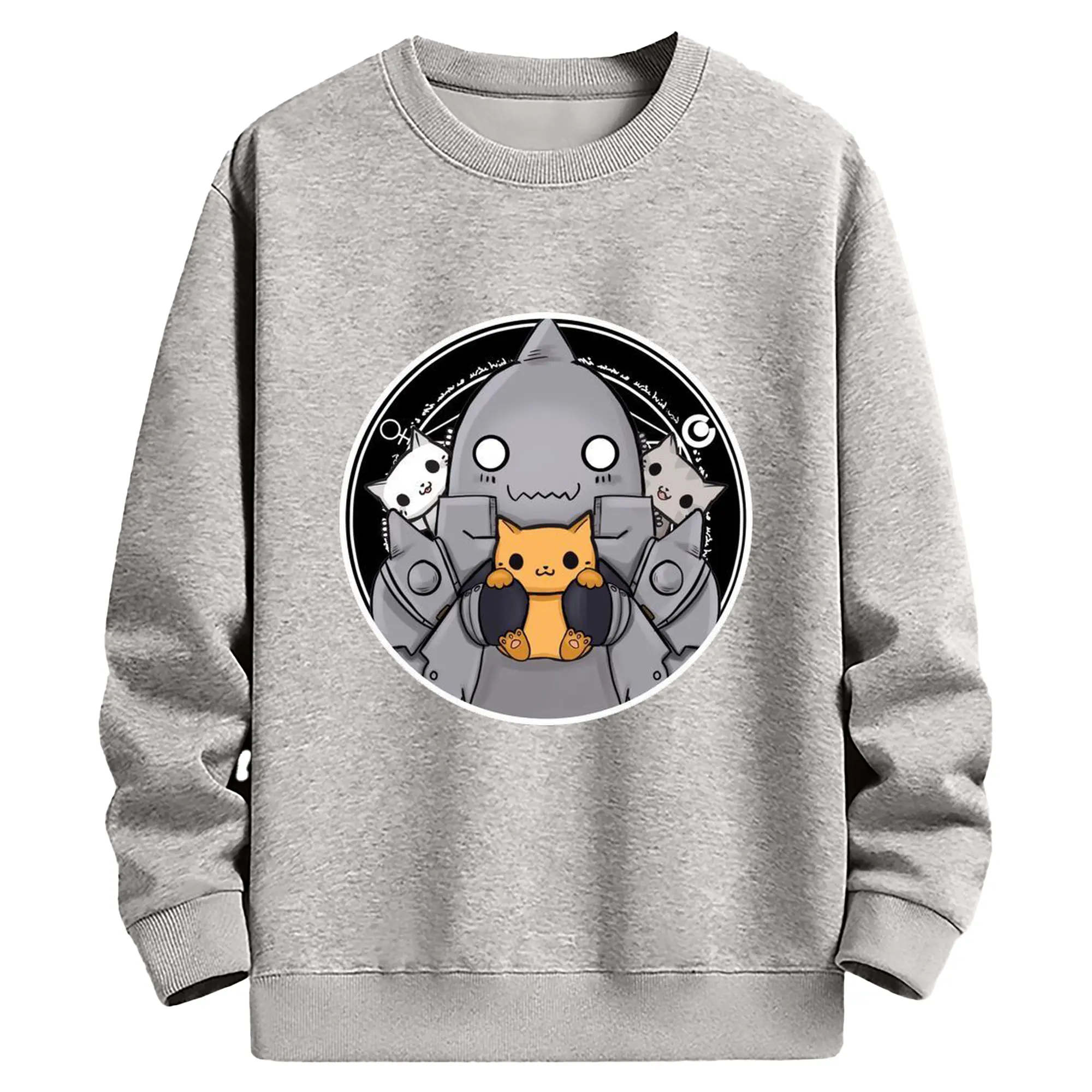 鋼の錬金術師 デフォルトアルフォンス猫まおまお - 綿100% 半袖Tシャツ ・ フロントプリント ・ 快適 通気性 ・ 日常使い 散歩 スポーツ用