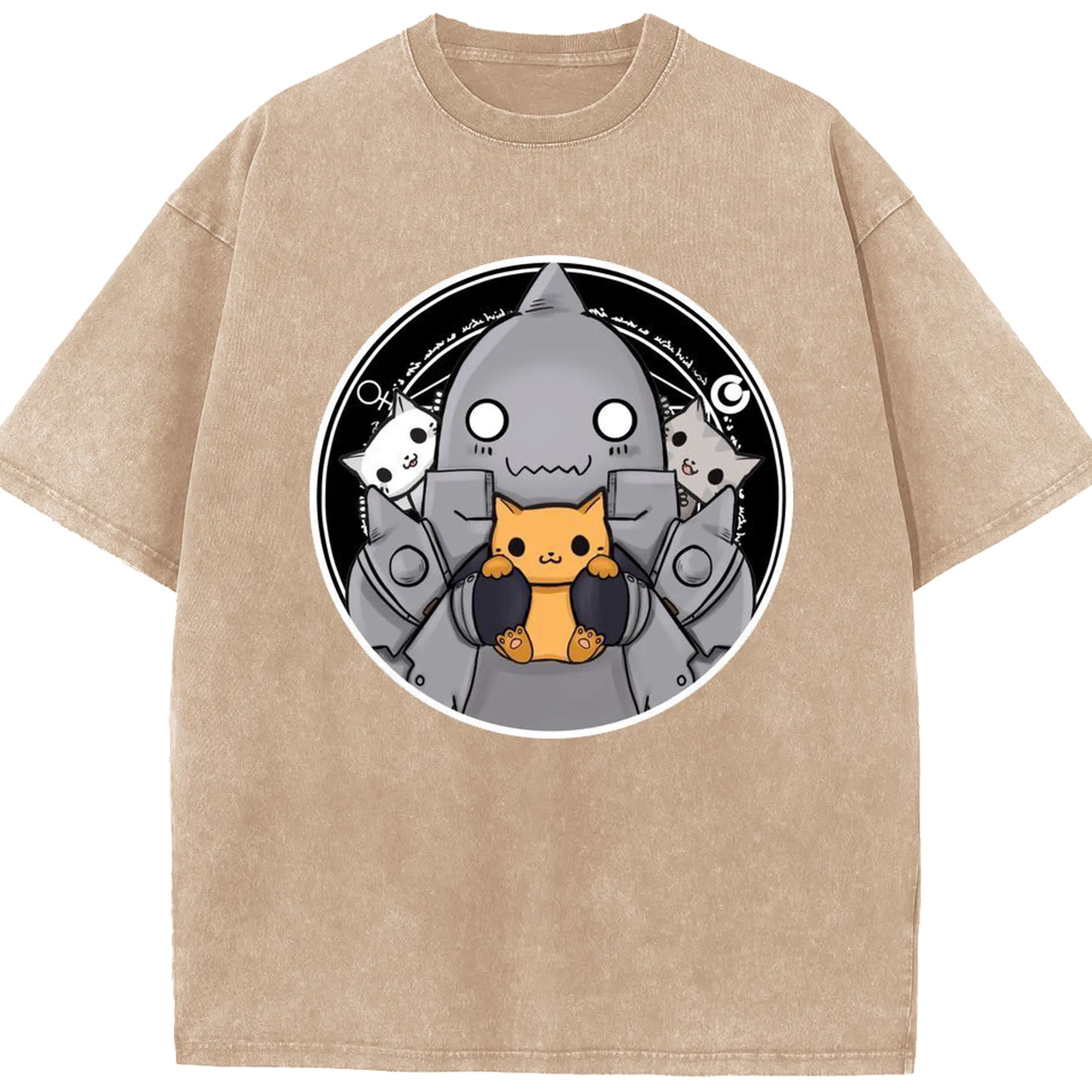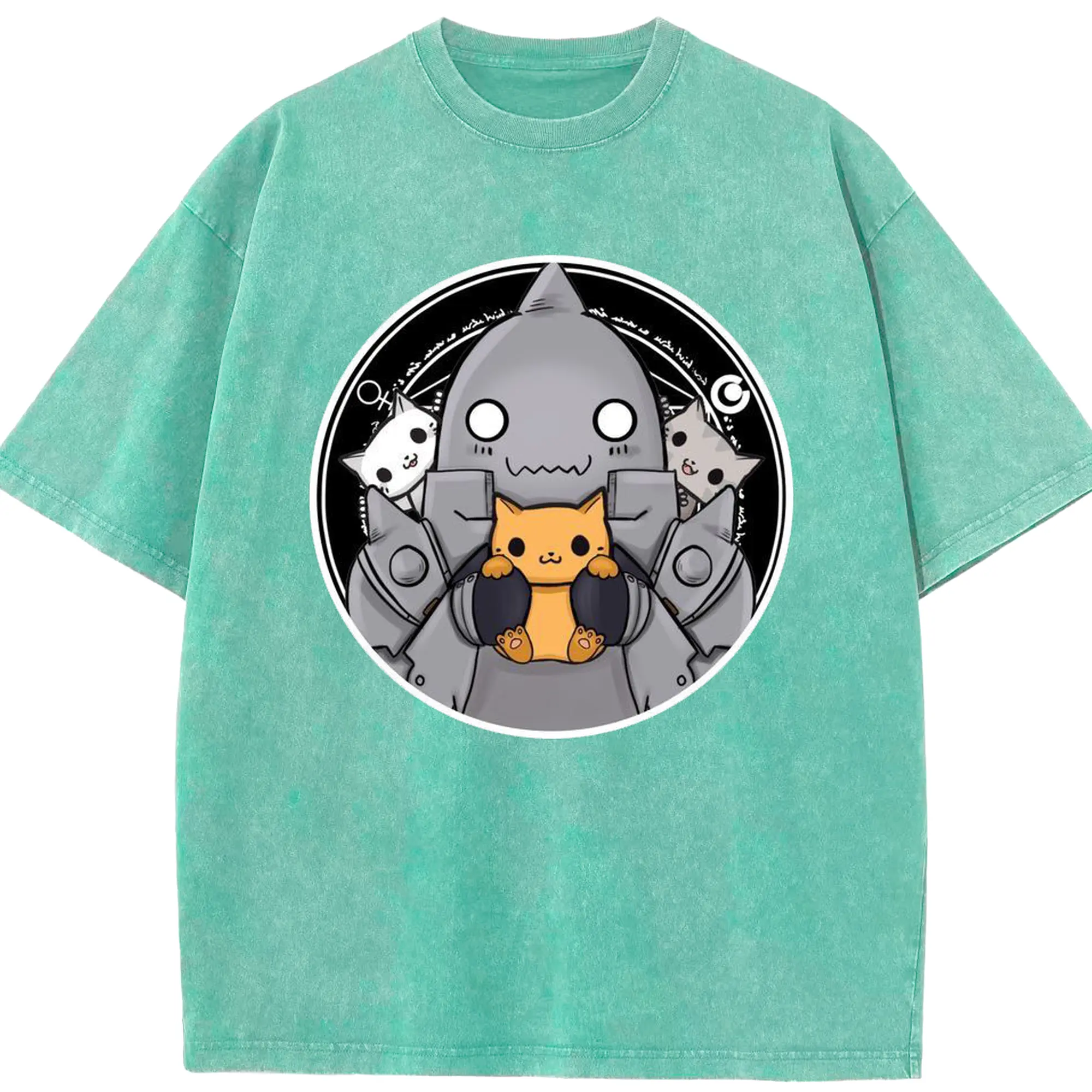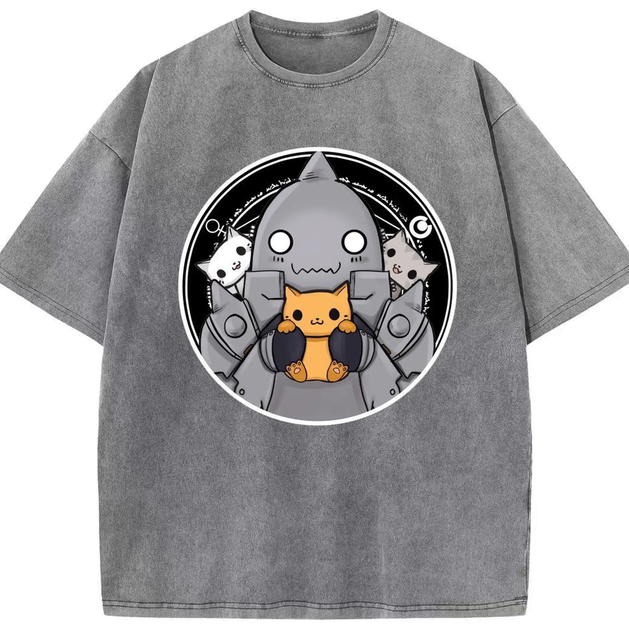 鋼の錬金術師 デフォルトアルフォンス猫まおまお - 綿100% 半袖Tシャツ ・ フロントプリント ・ 快適 通気性 ・ 日常使い 散歩 スポーツ用