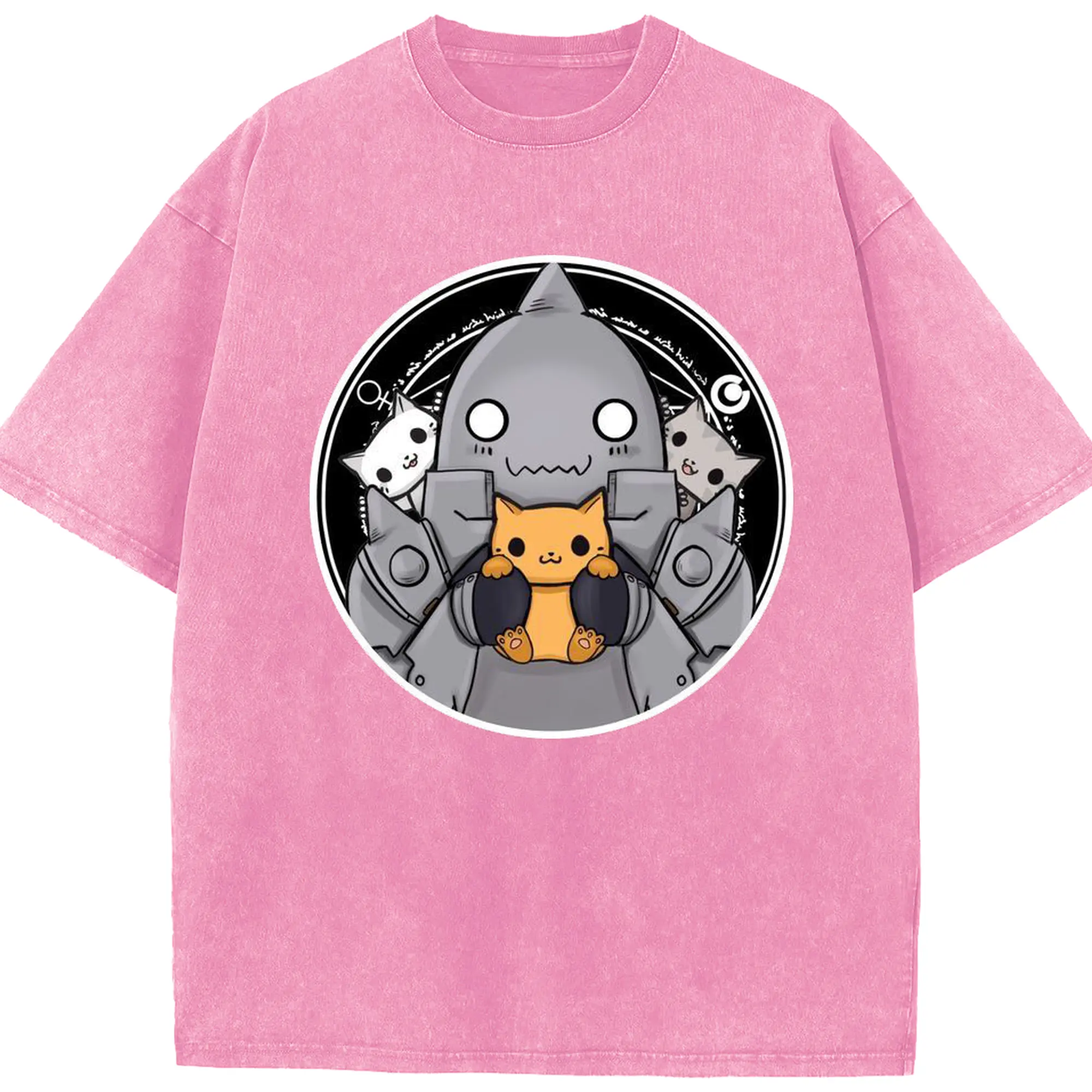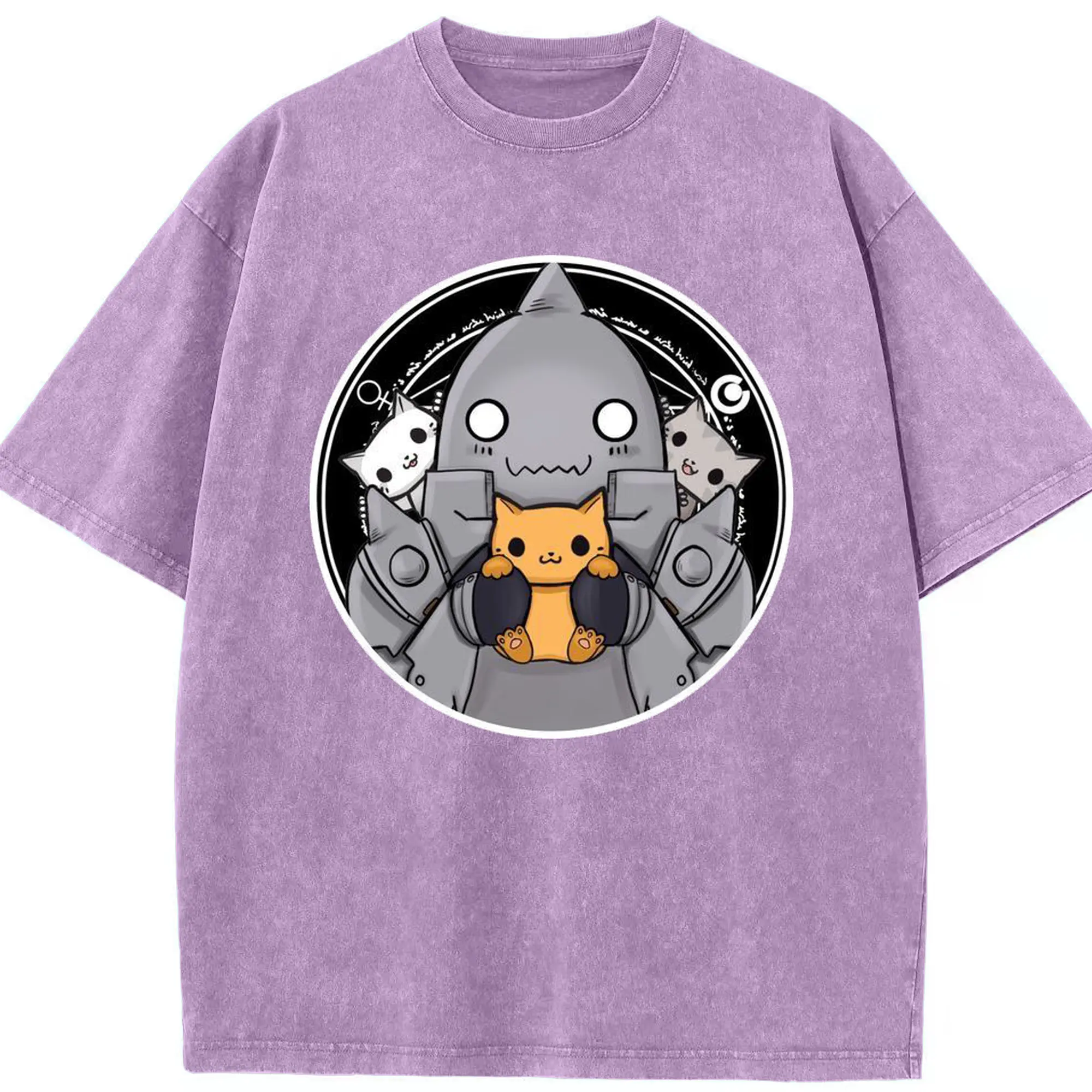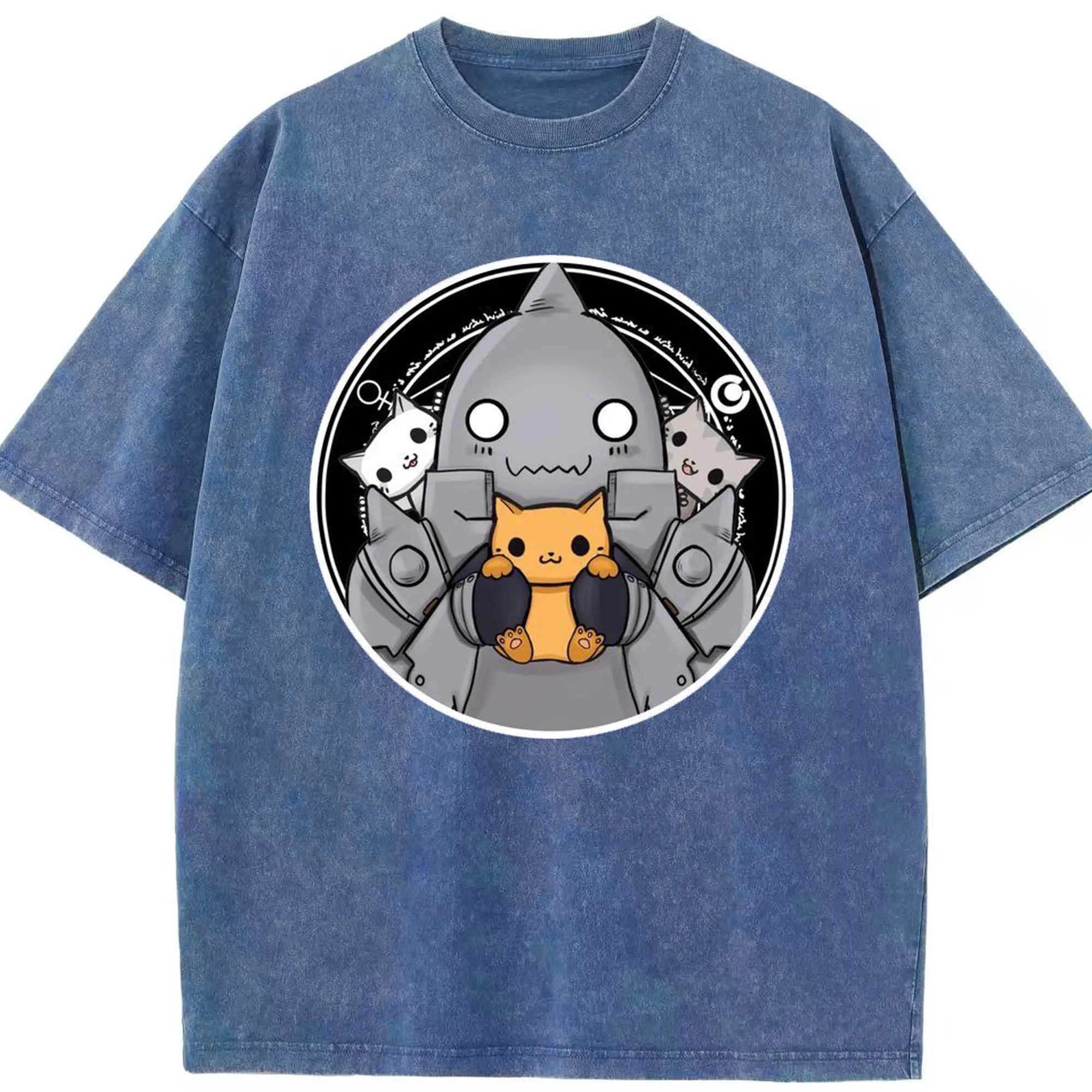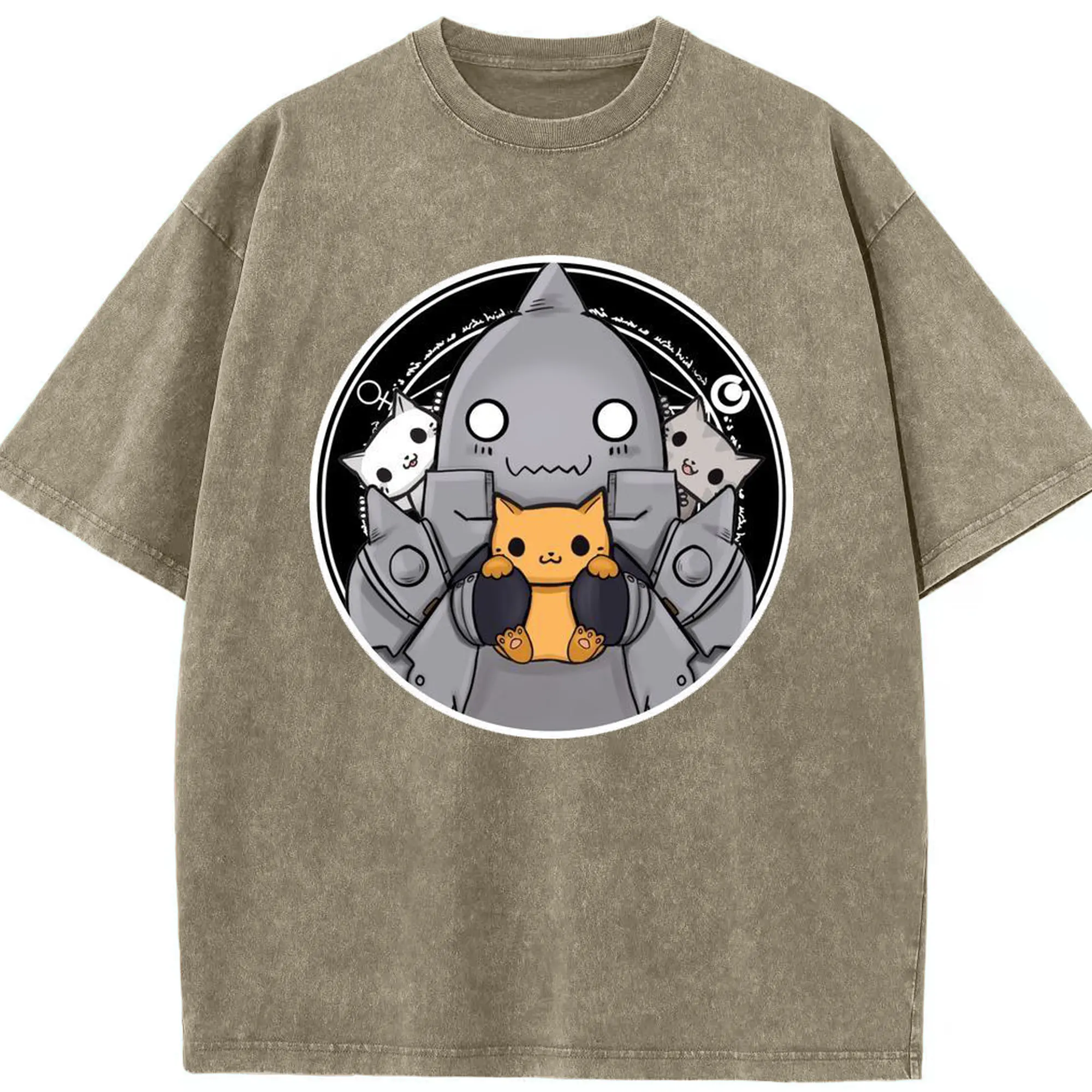 鋼の錬金術師 デフォルトアルフォンス猫まおまお - 綿100% 半袖Tシャツ ・ フロントプリント ・ 快適 通気性 ・ 日常使い 散歩 スポーツ用