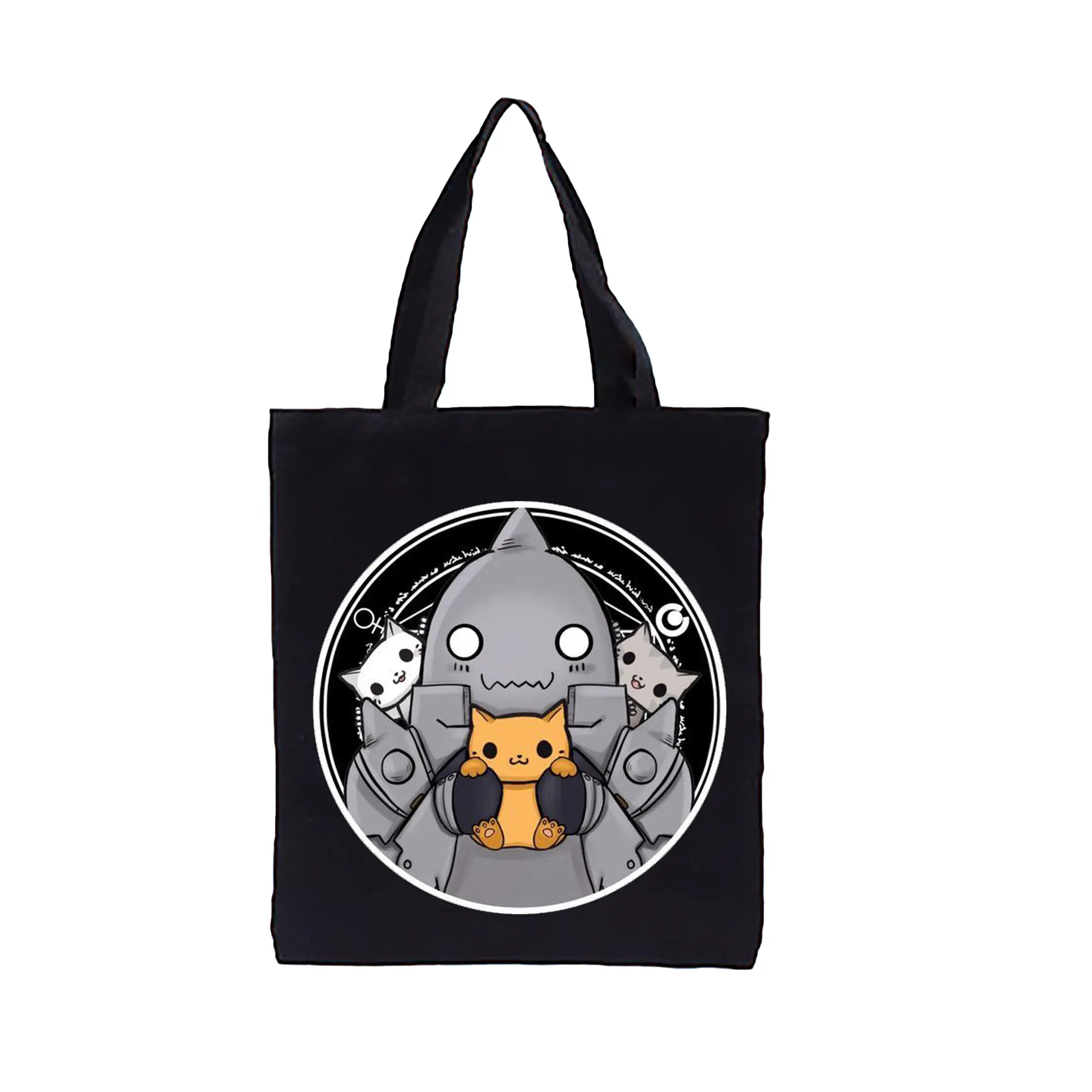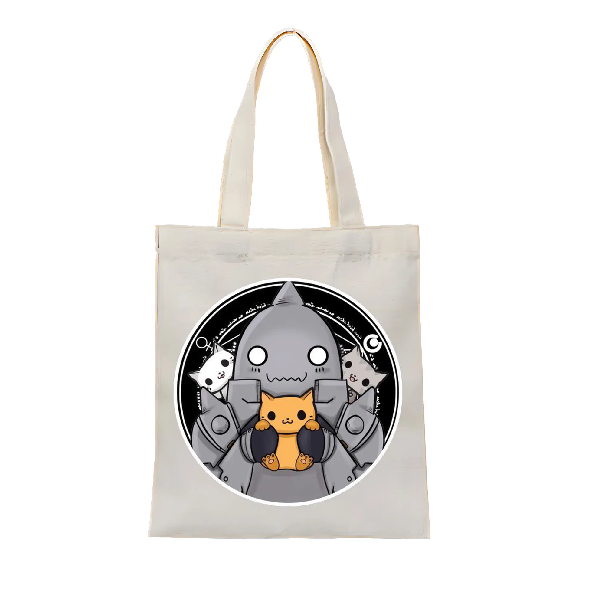 鋼の錬金術師 デフォルトアルフォンス猫まおまお - 縦型キャンバス手提げバッグ(トートバッグ) ・ キャンバス素材 ・ ショッピング用 ・ 軽量 丈夫 お手入れ簡単