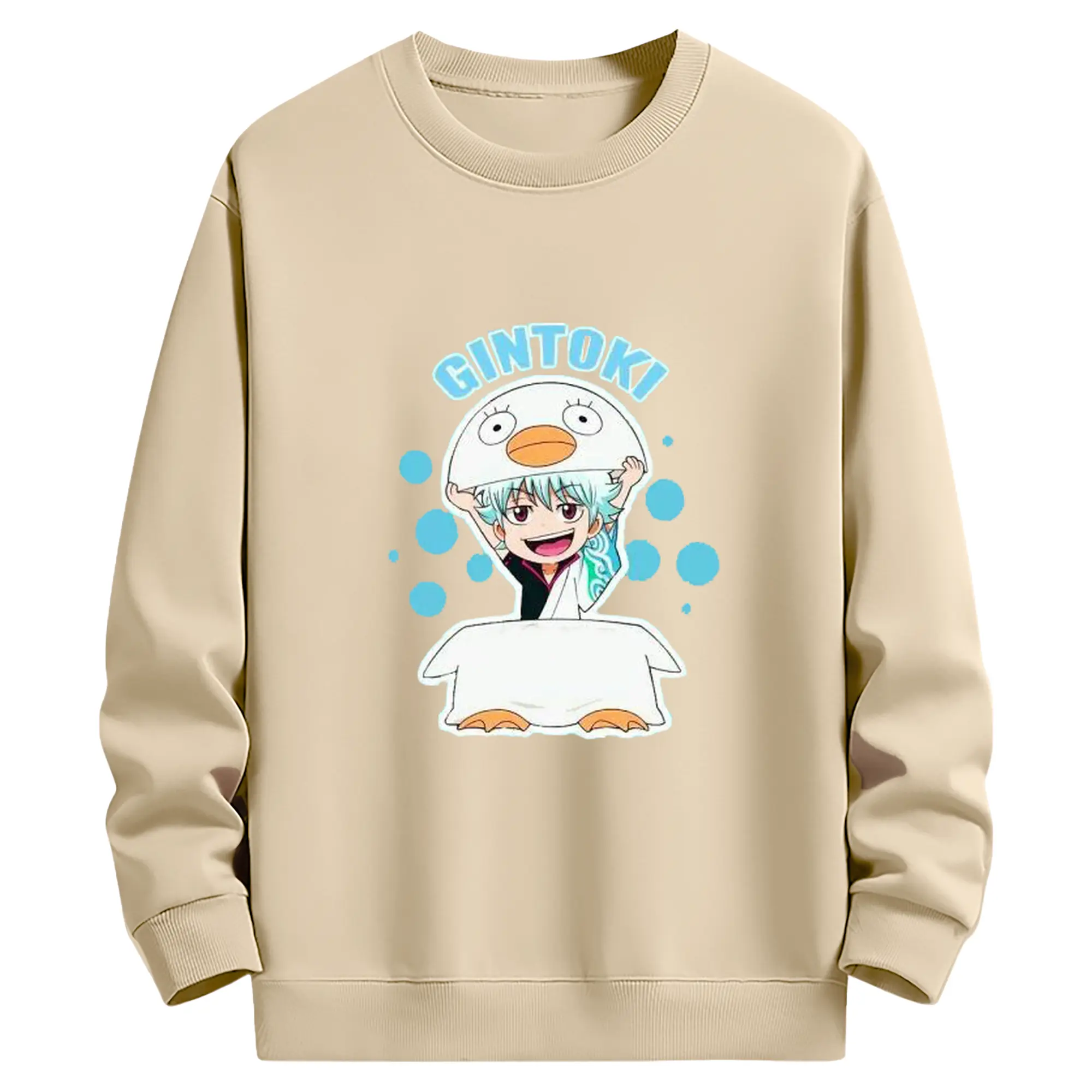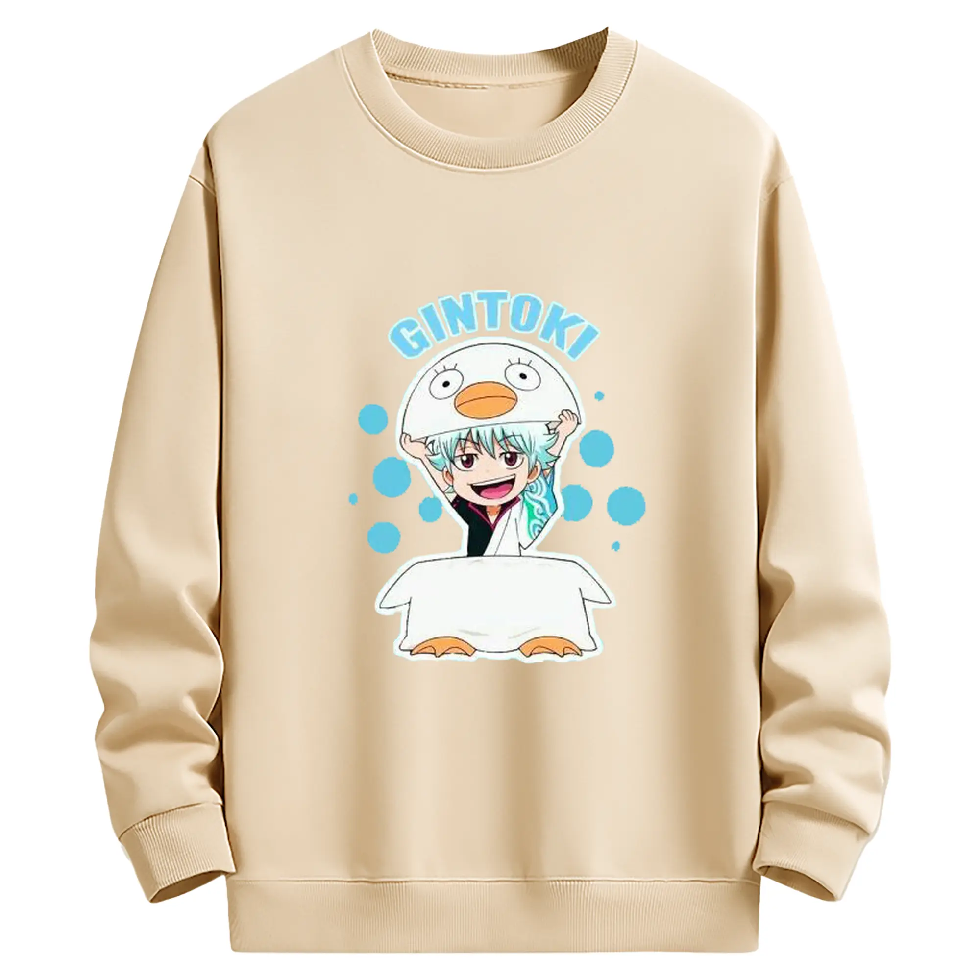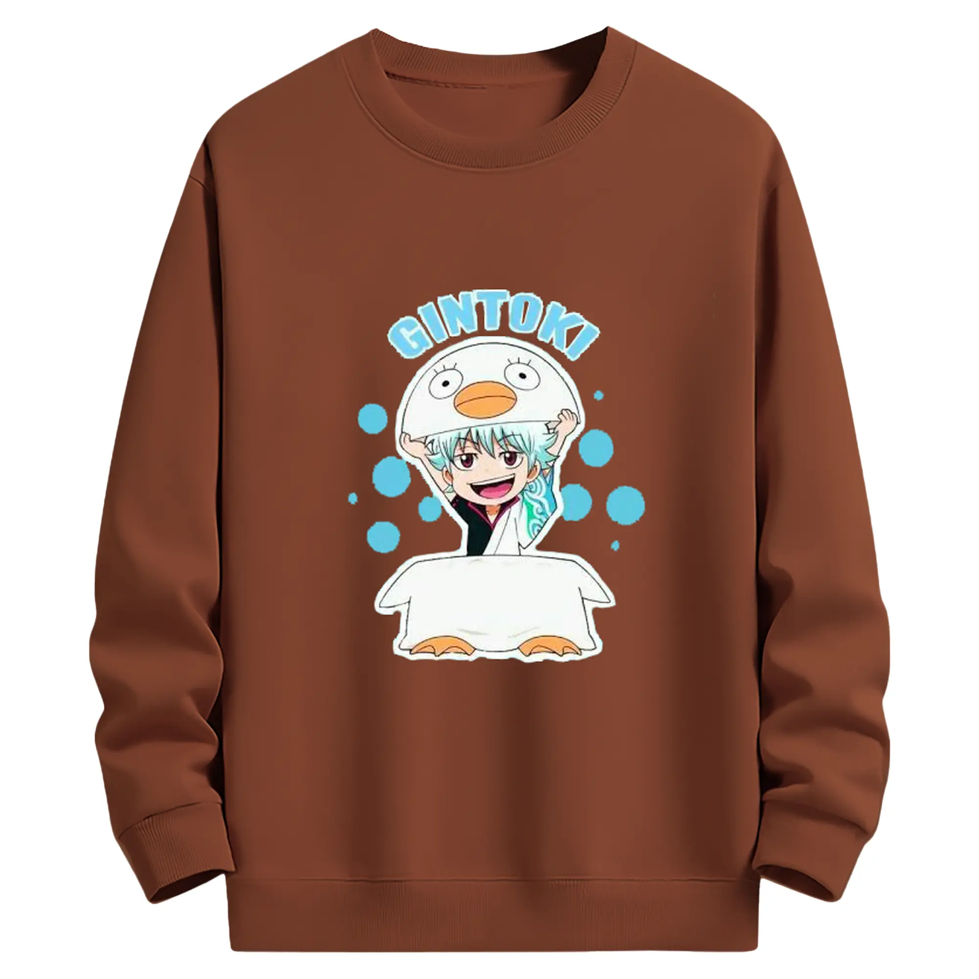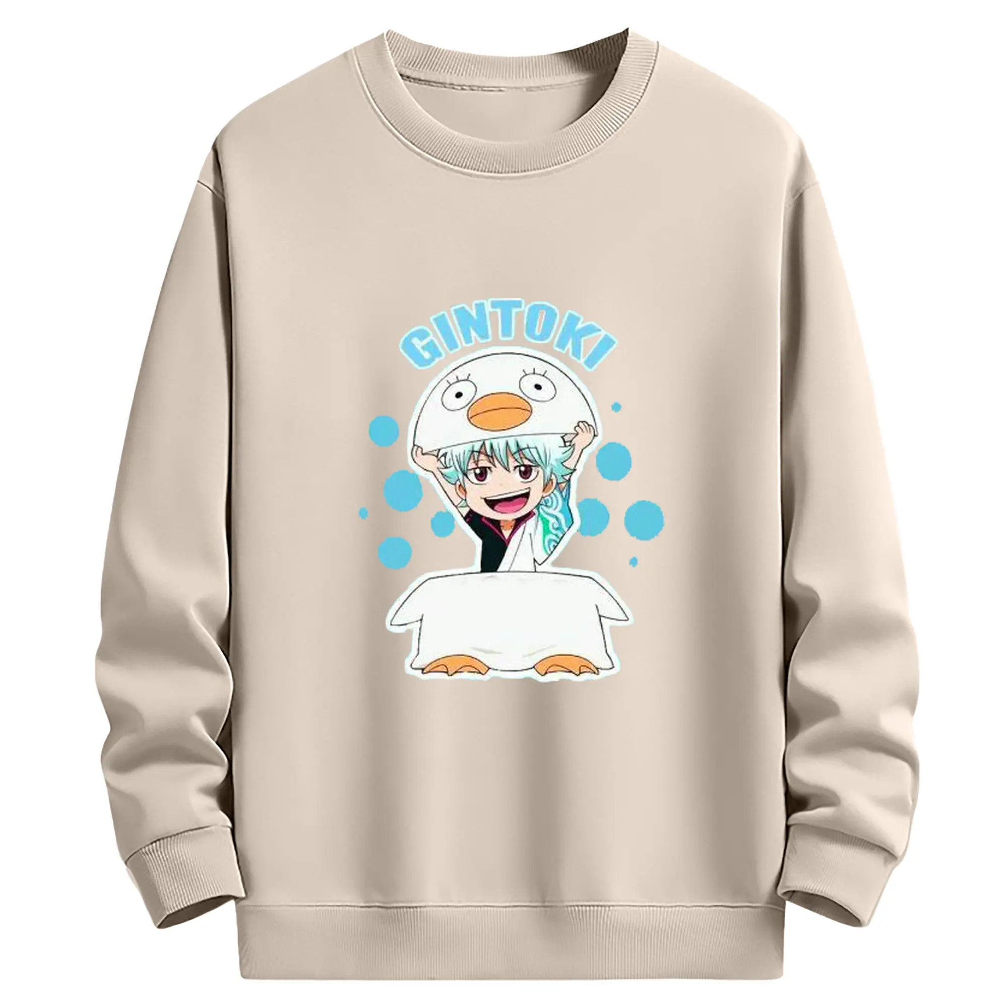 银魂エリザベス もふもふ銀時 - 綿100% ヴィンテージ風 半袖Tシャツ ・ フロントプリント ・ 柔らか肌触り ・ 通気性 快適 ・ スポーツ カジュアル 外出用