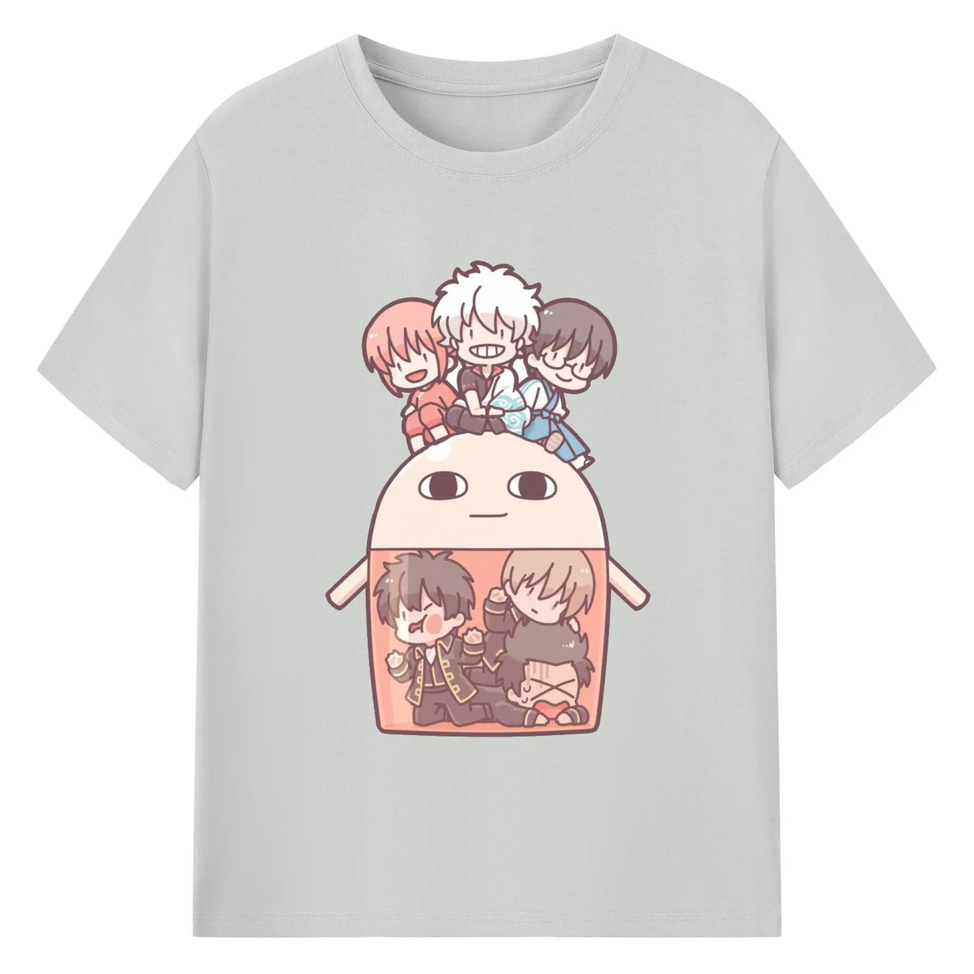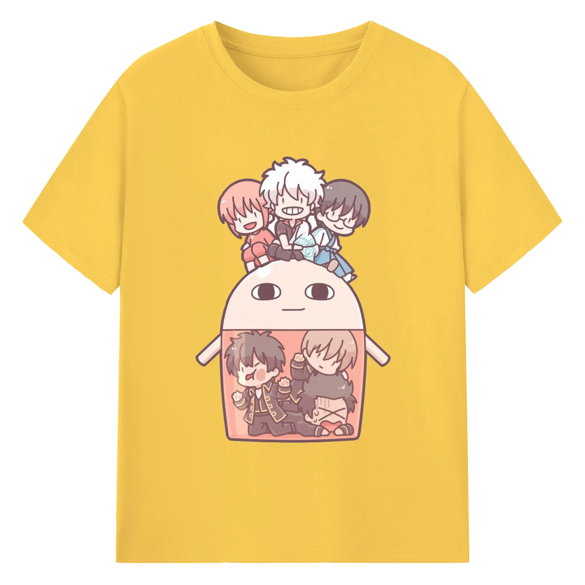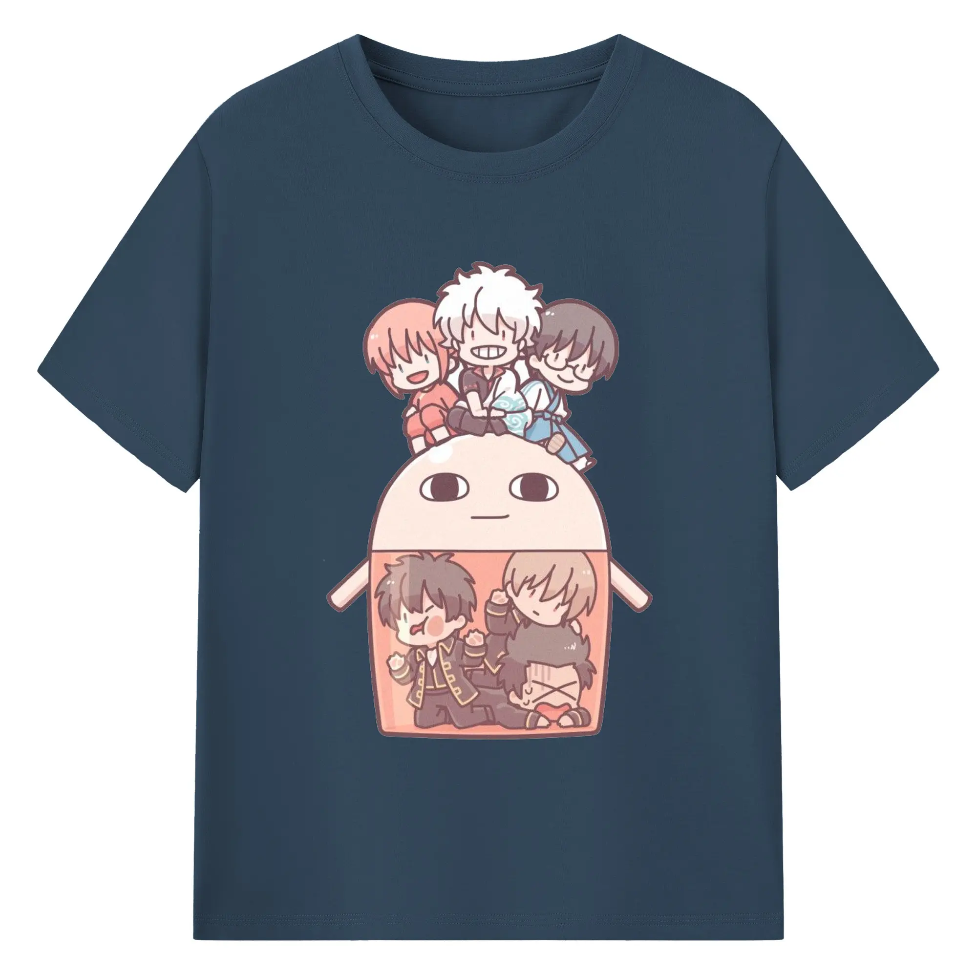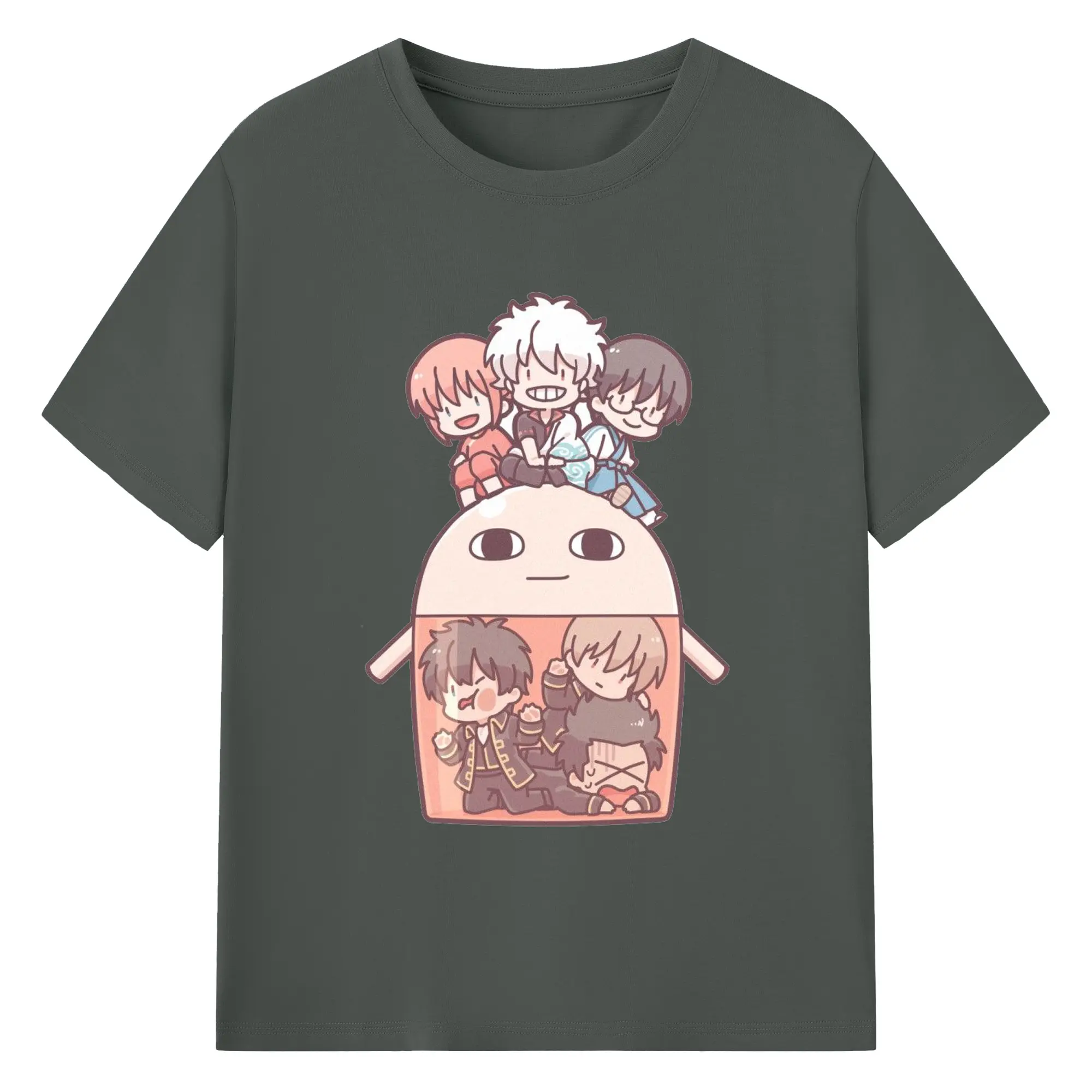 银魂 ほっこり銀魂タイム - 綿100% ヴィンテージ風 半袖Tシャツ ・ フロントプリント ・ 柔らか肌触り ・ 通気性 快適 ・ スポーツ カジュアル 外出用