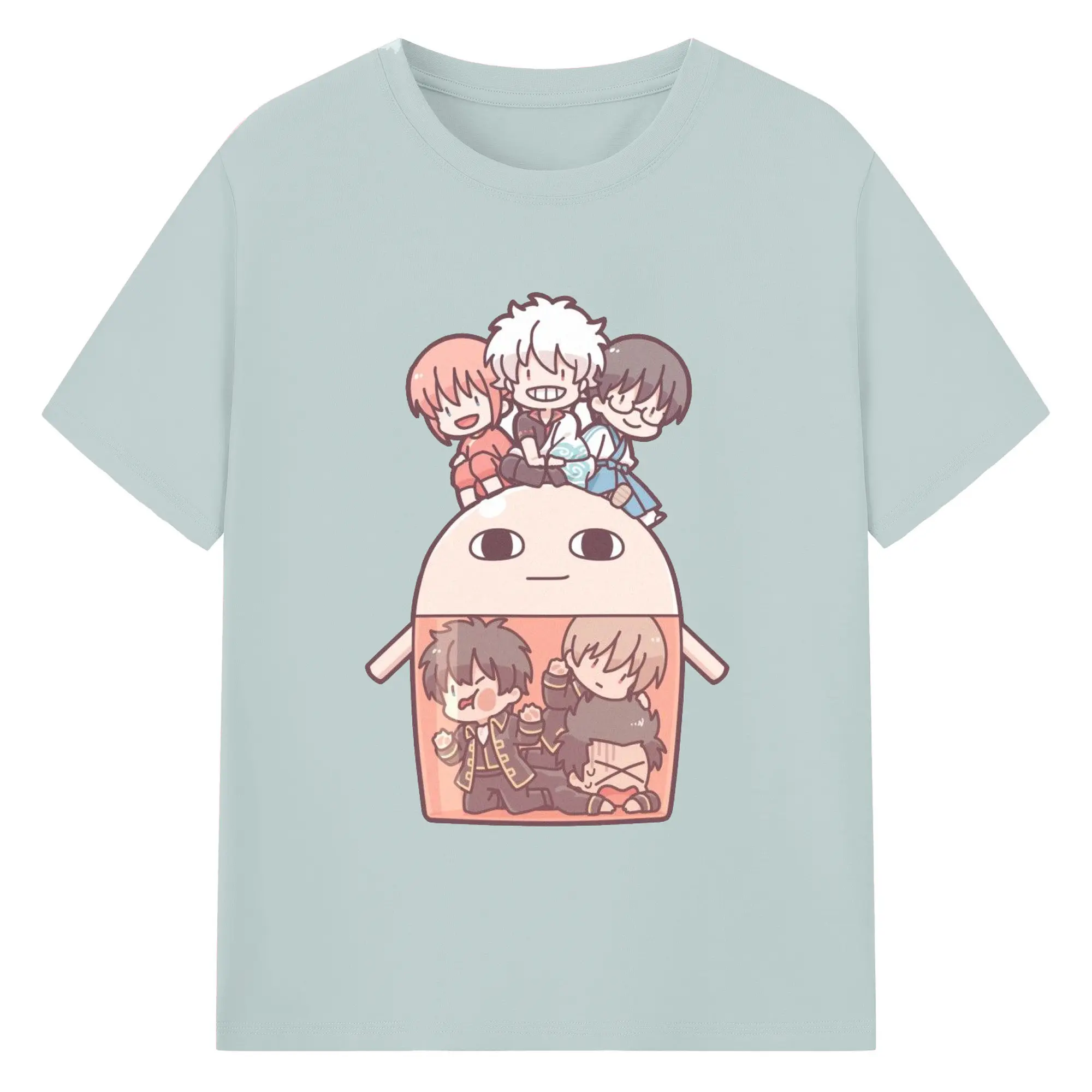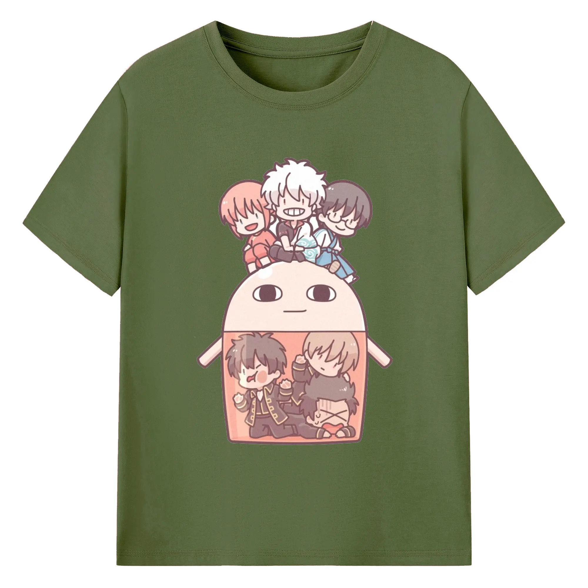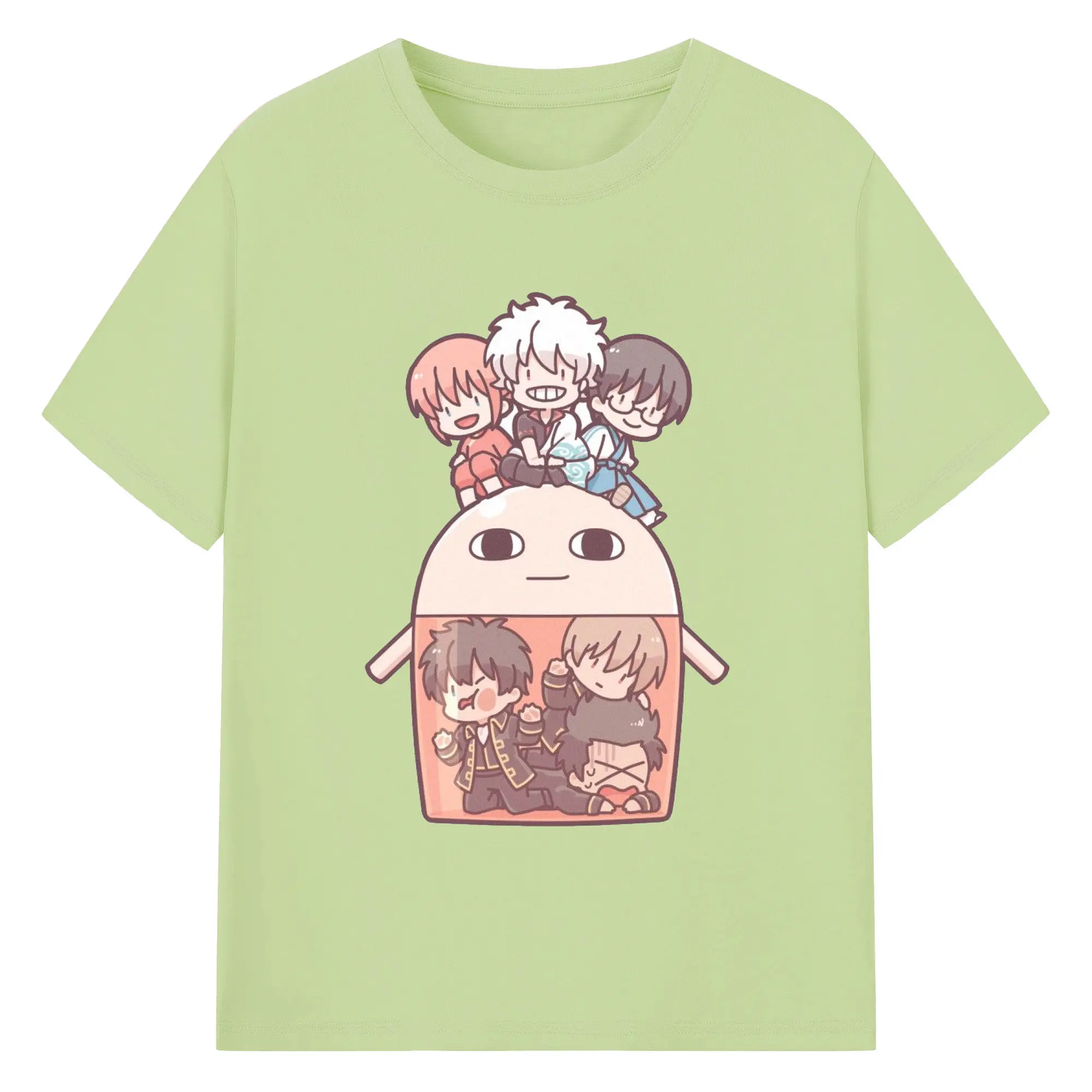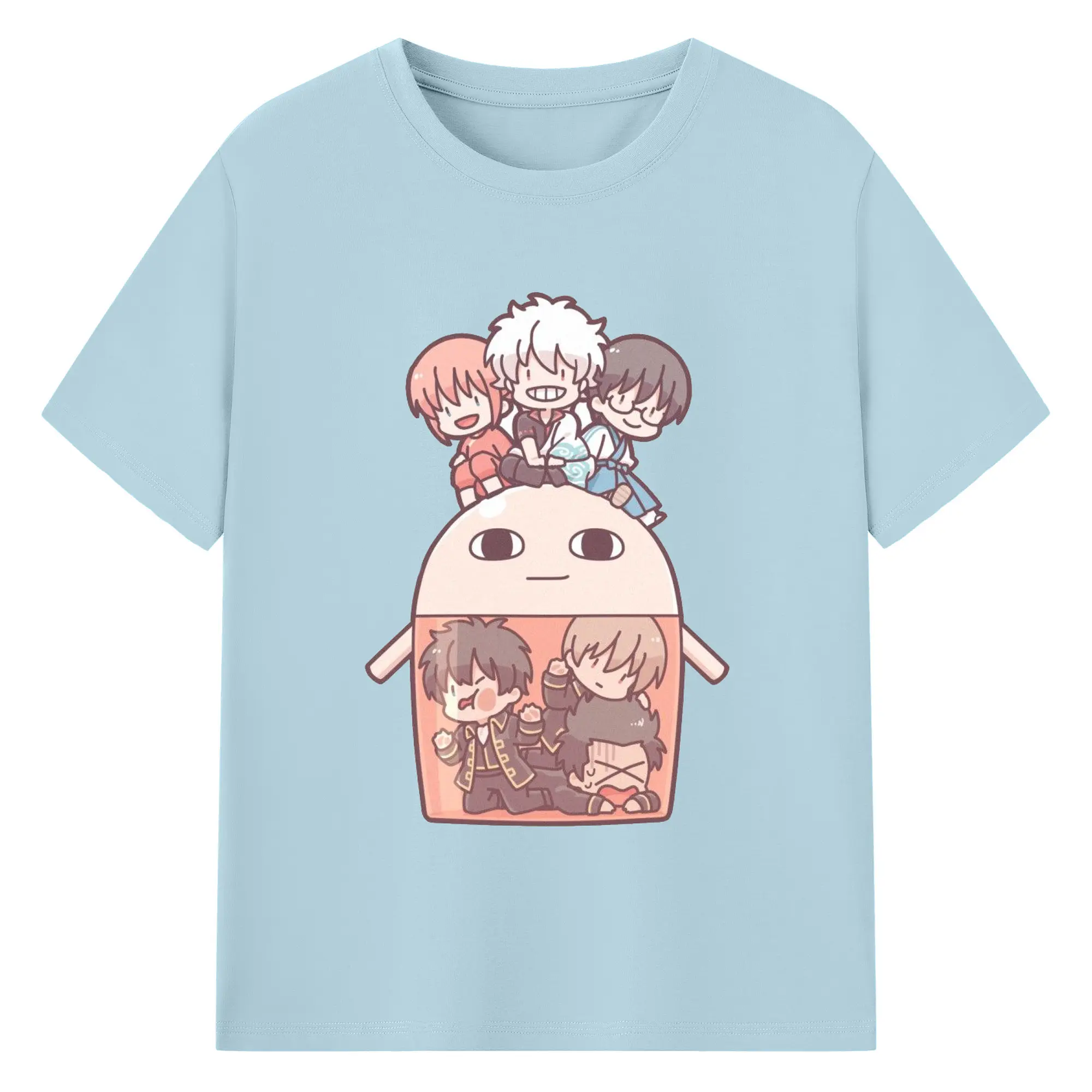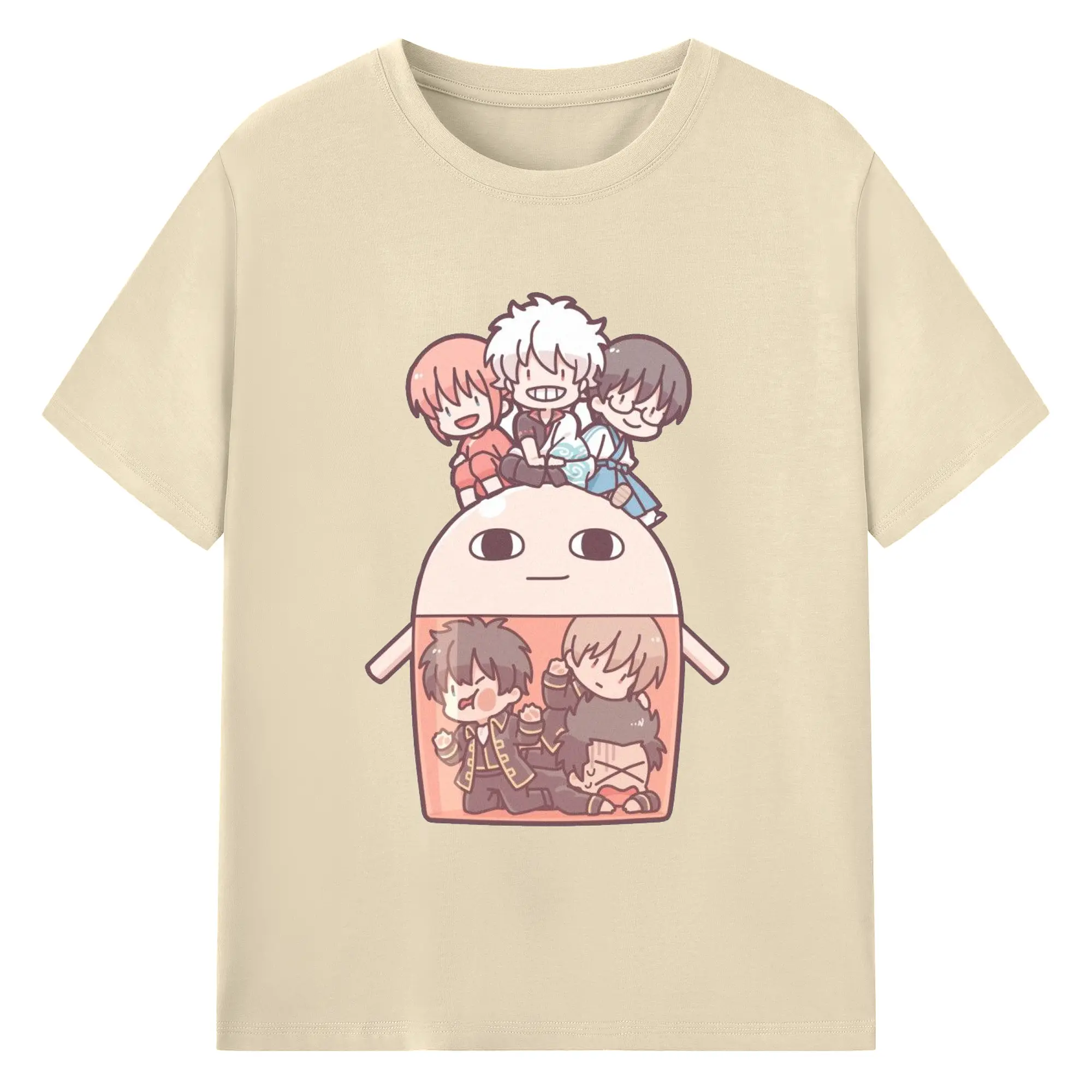 银魂 ほっこり銀魂タイム - 綿100% ヴィンテージ風 半袖Tシャツ ・ フロントプリント ・ 柔らか肌触り ・ 通気性 快適 ・ スポーツ カジュアル 外出用