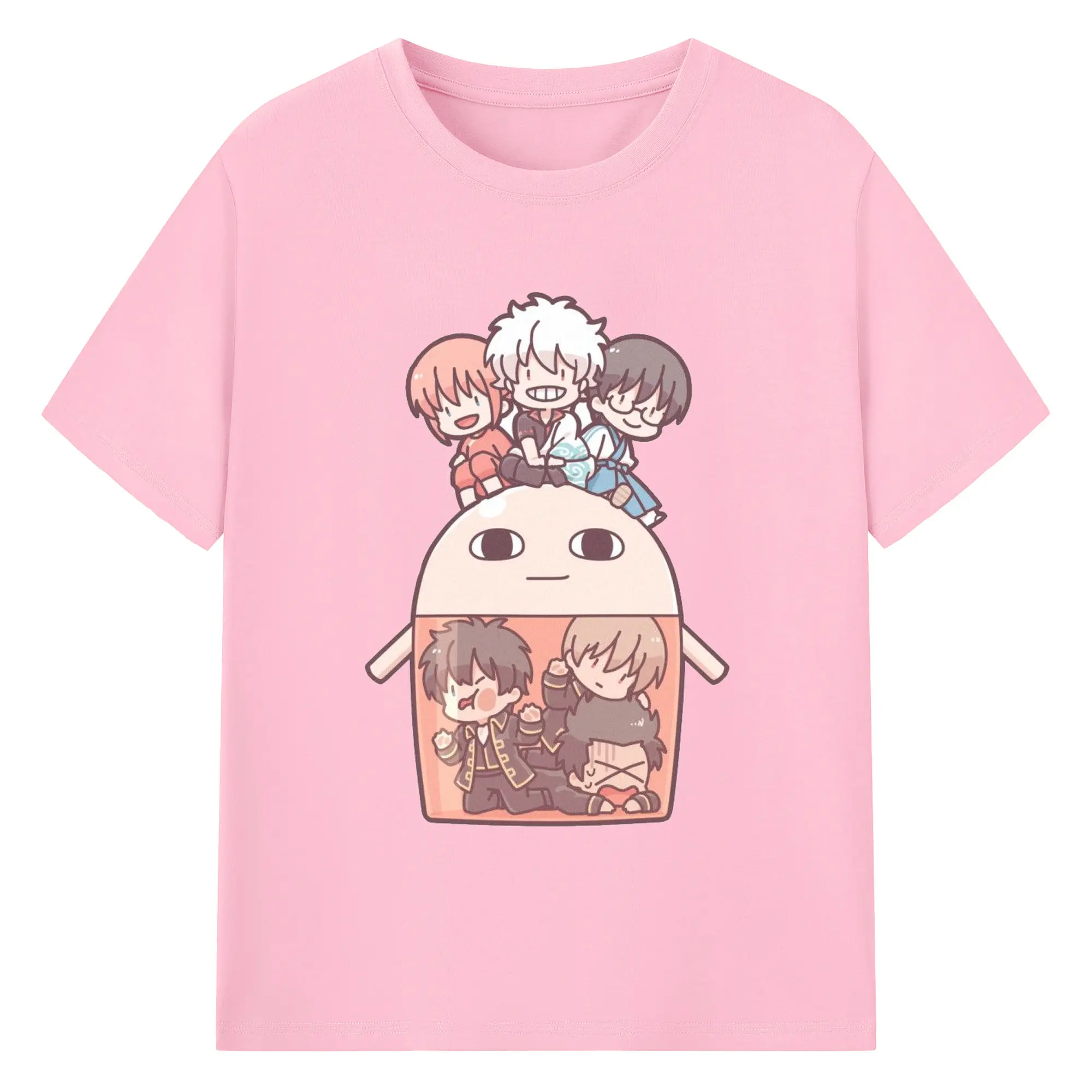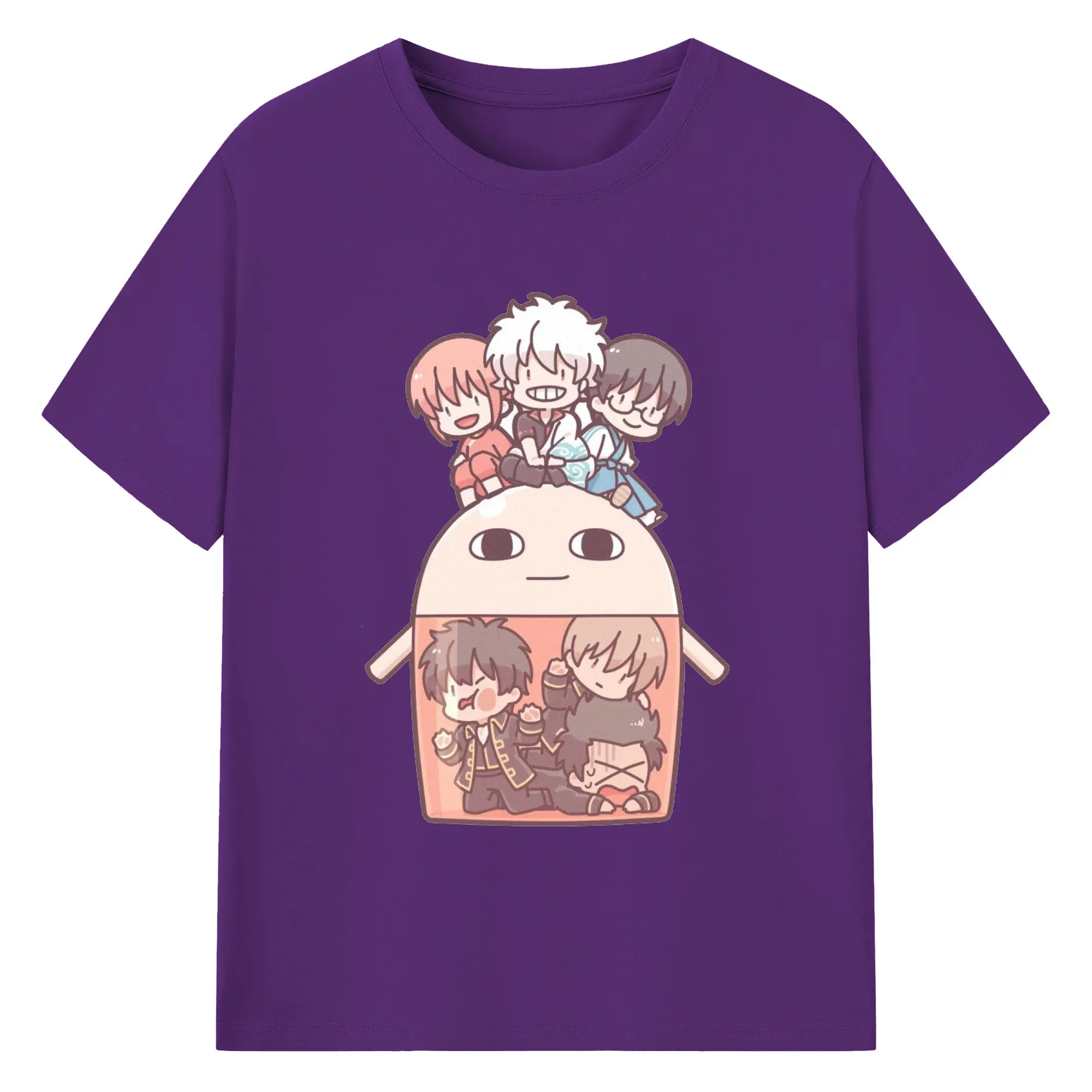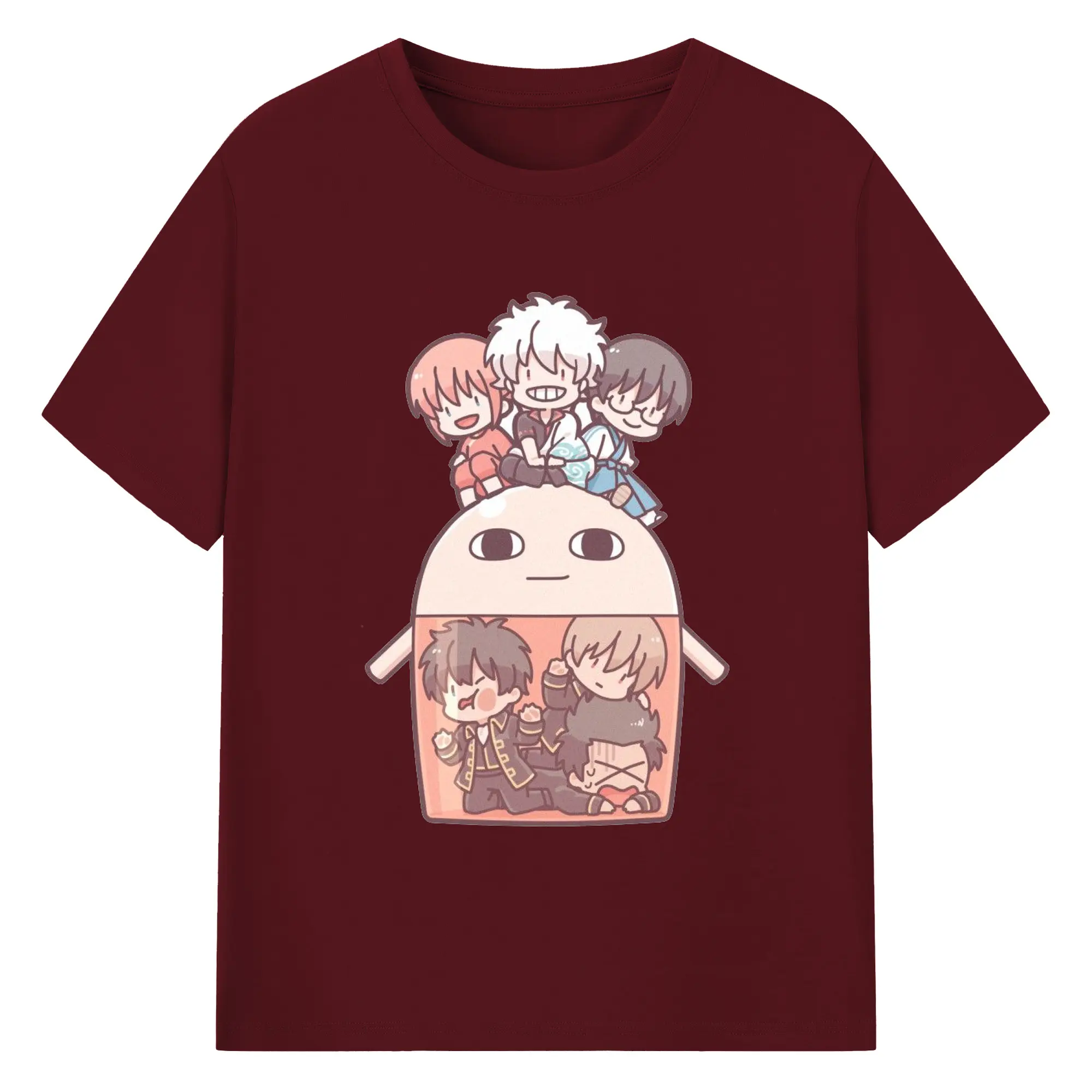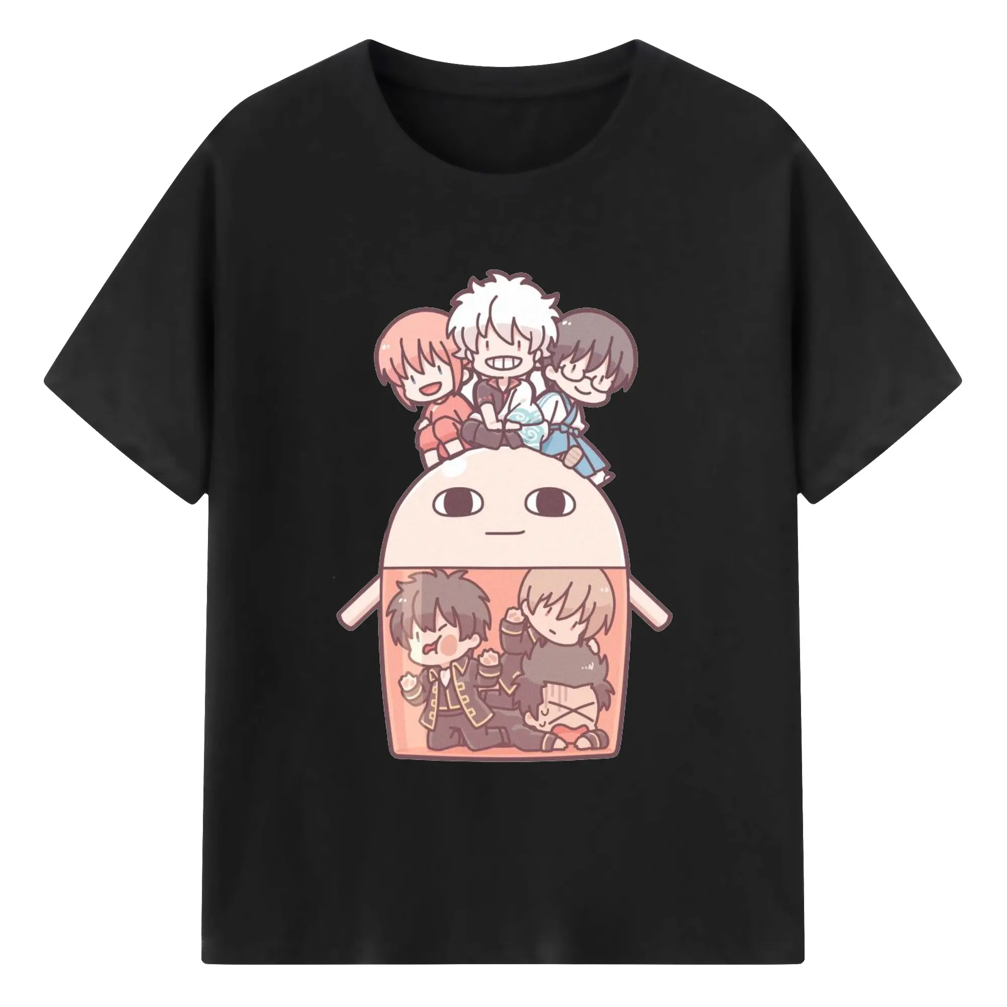 银魂 ほっこり銀魂タイム - 綿100% ヴィンテージ風 半袖Tシャツ ・ フロントプリント ・ 柔らか肌触り ・ 通気性 快適 ・ スポーツ カジュアル 外出用