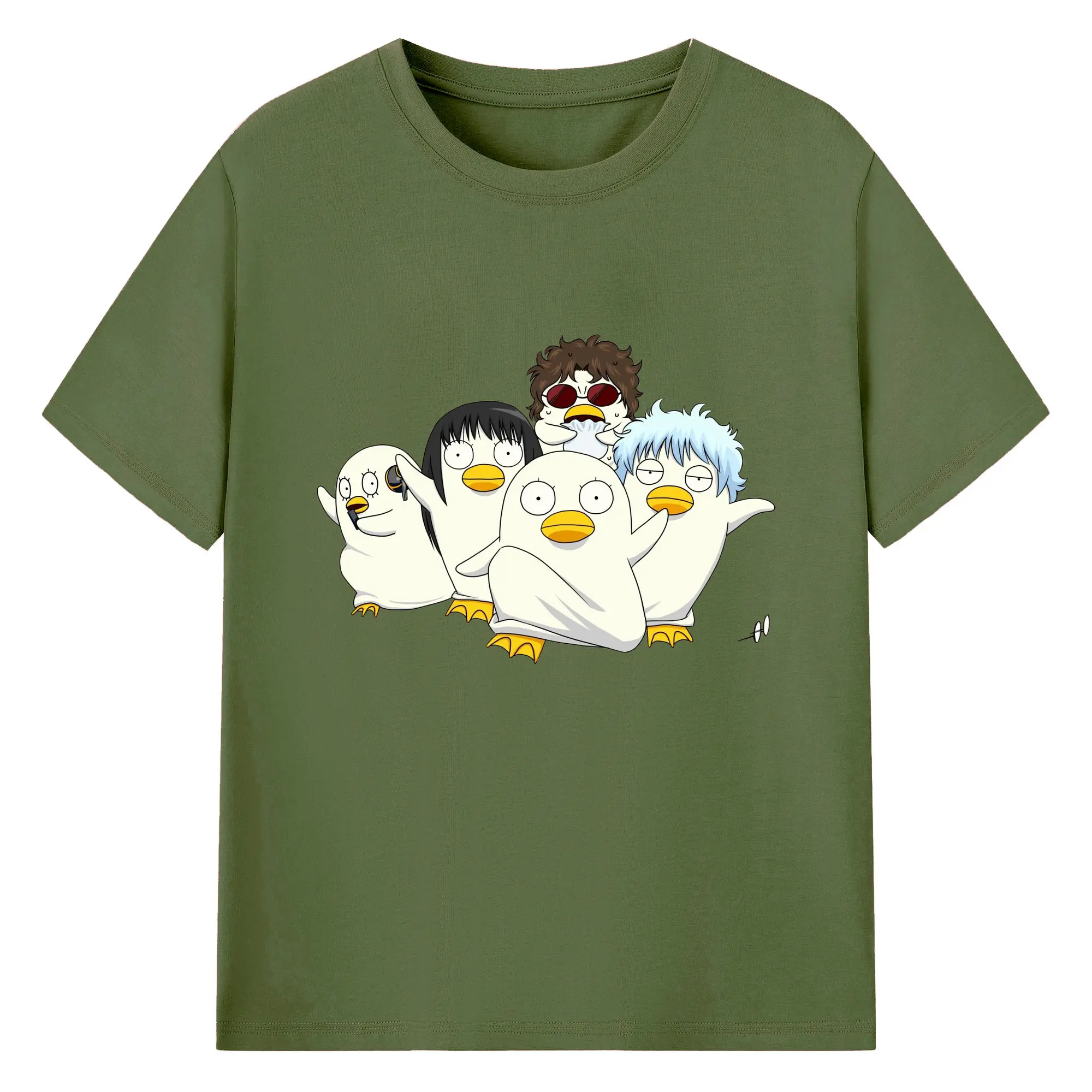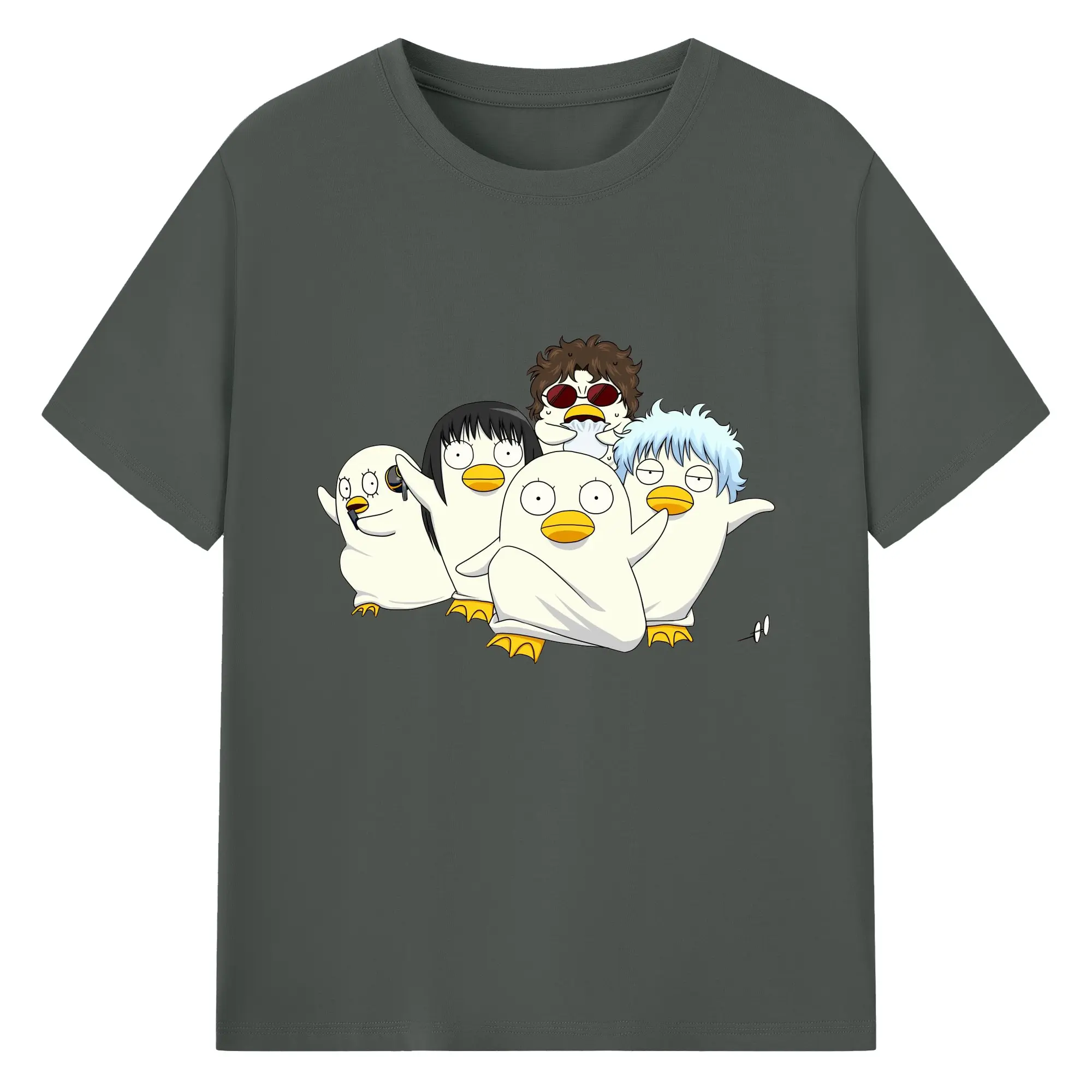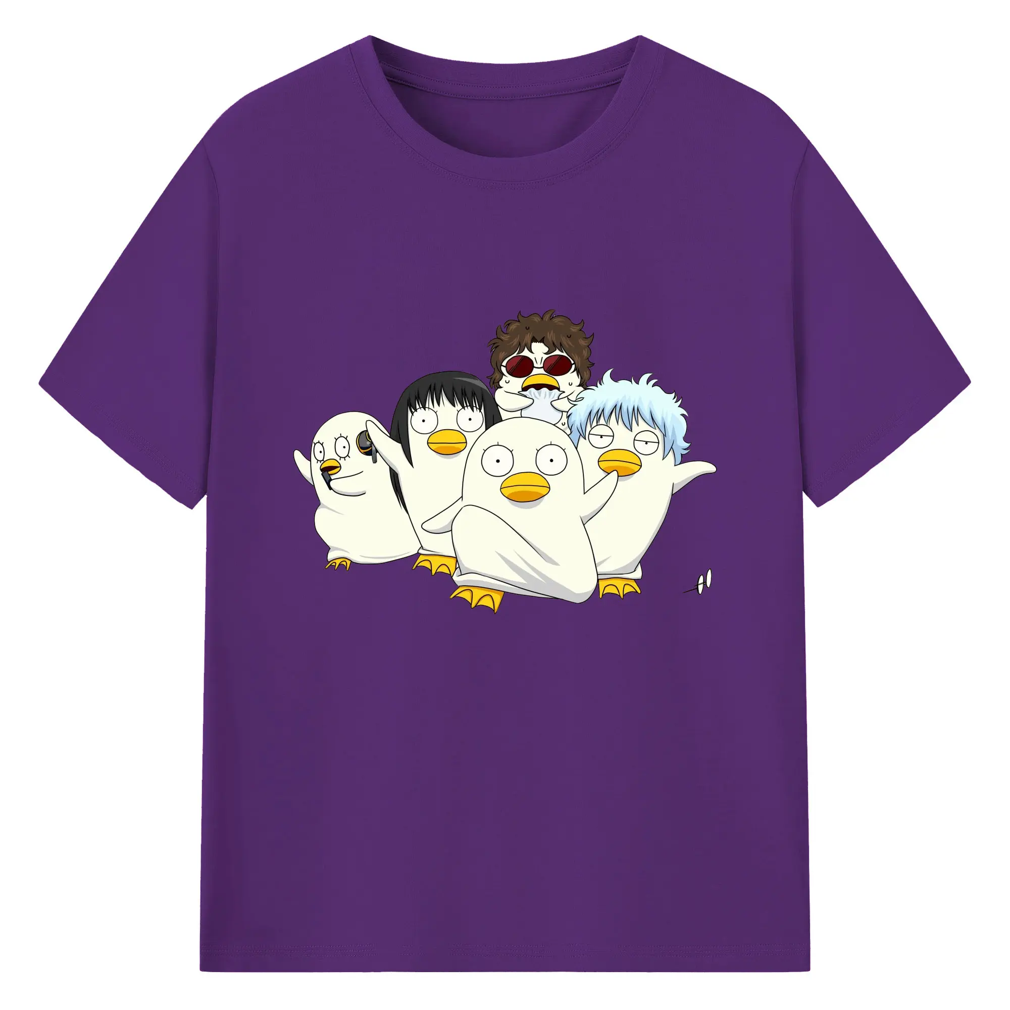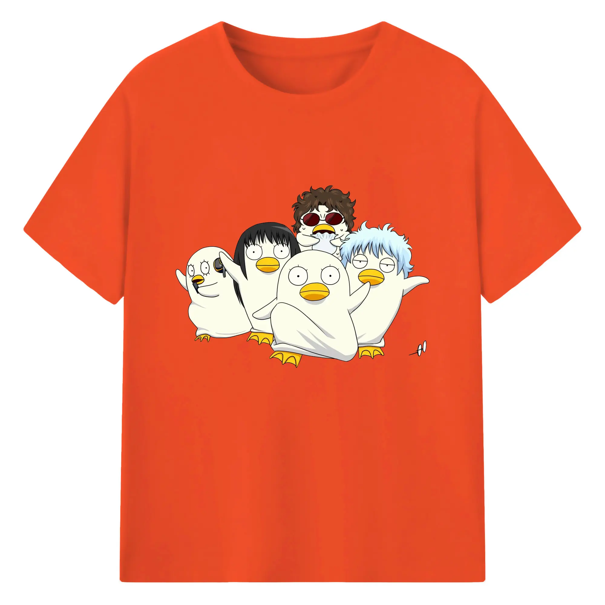 银魂 エリザベスみんなでぽかぽか - 綿100% ヴィンテージ風 半袖Tシャツ ・ フロントプリント ・ 柔らか肌触り ・ 通気性 快適 ・ スポーツ カジュアル 外出用