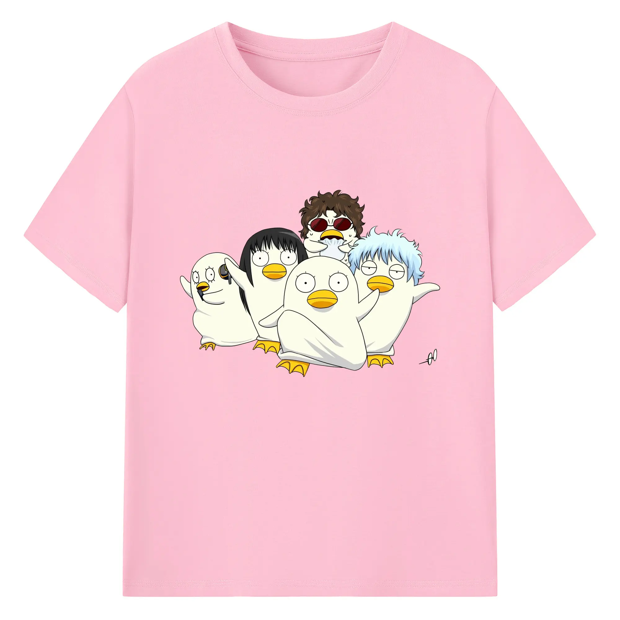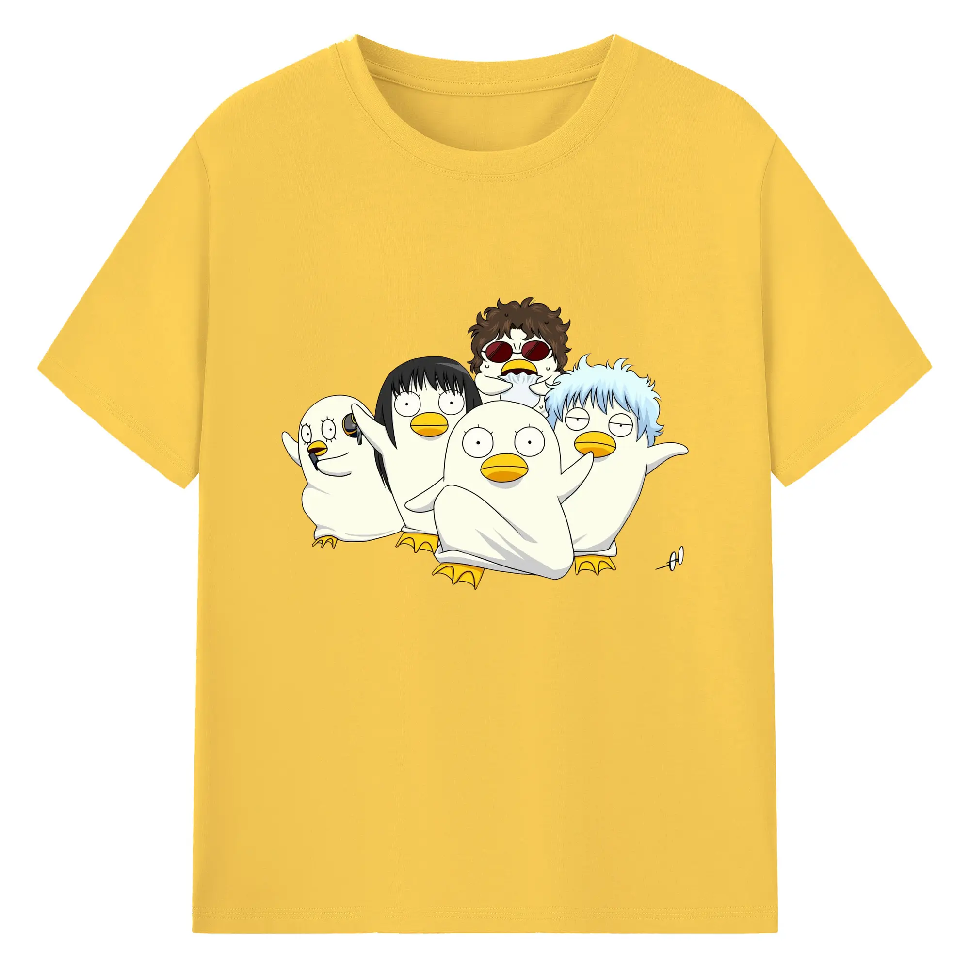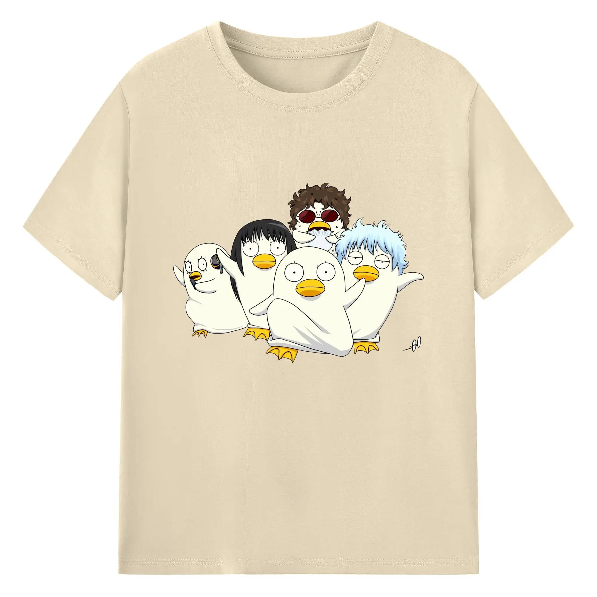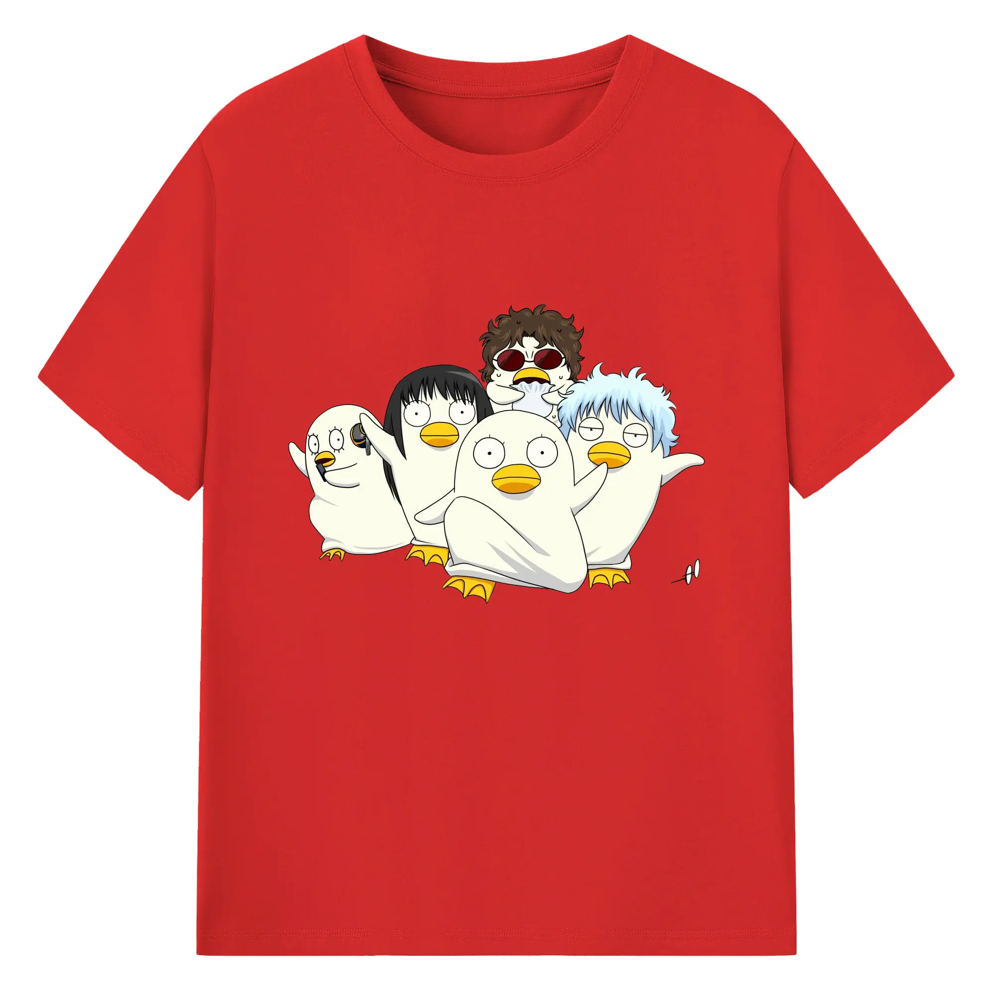 银魂 エリザベスみんなでぽかぽか - 綿100% ヴィンテージ風 半袖Tシャツ ・ フロントプリント ・ 柔らか肌触り ・ 通気性 快適 ・ スポーツ カジュアル 外出用