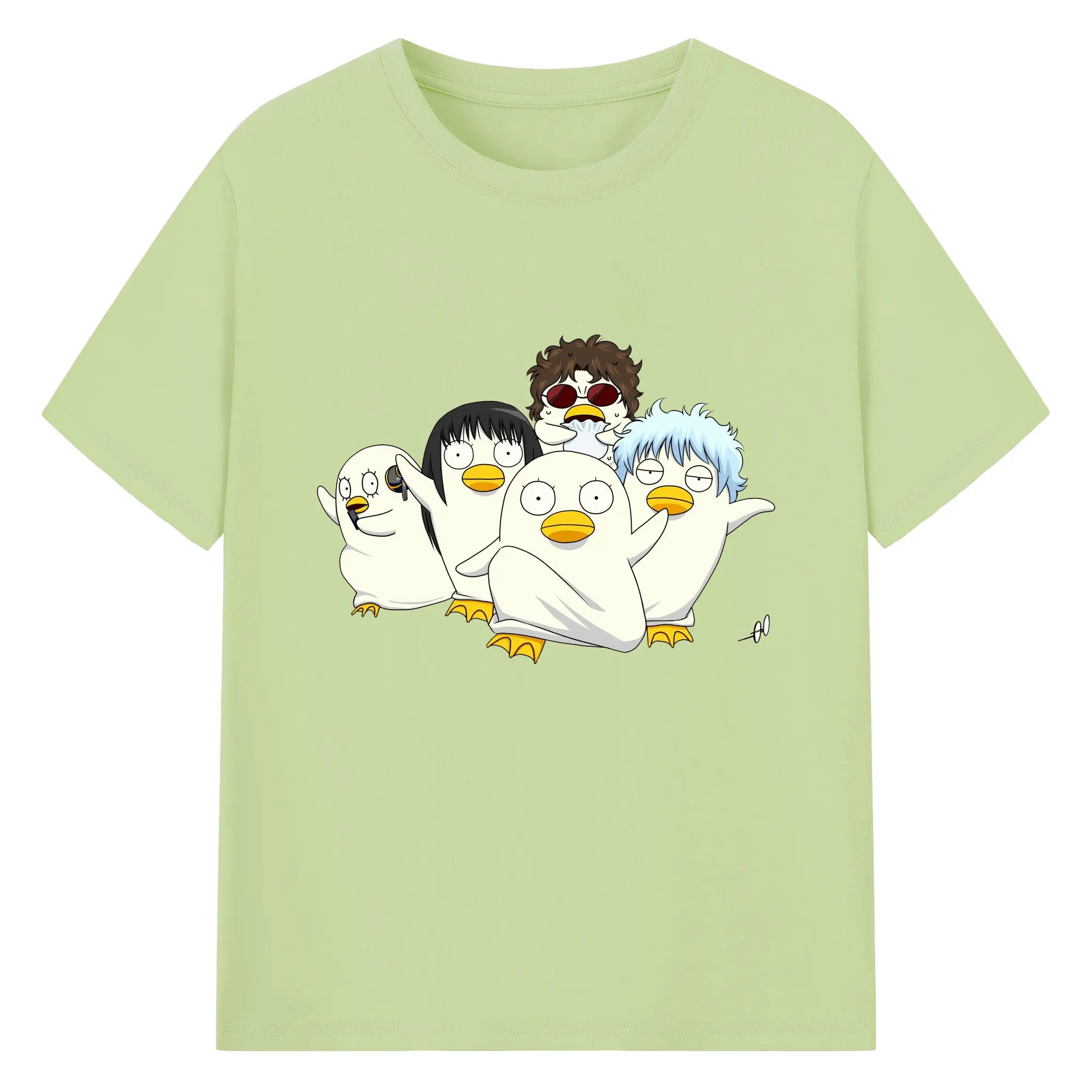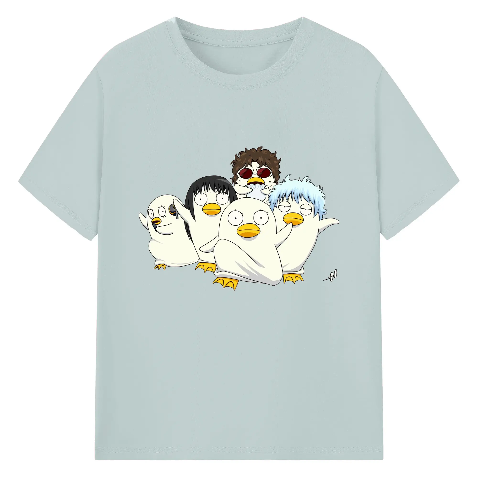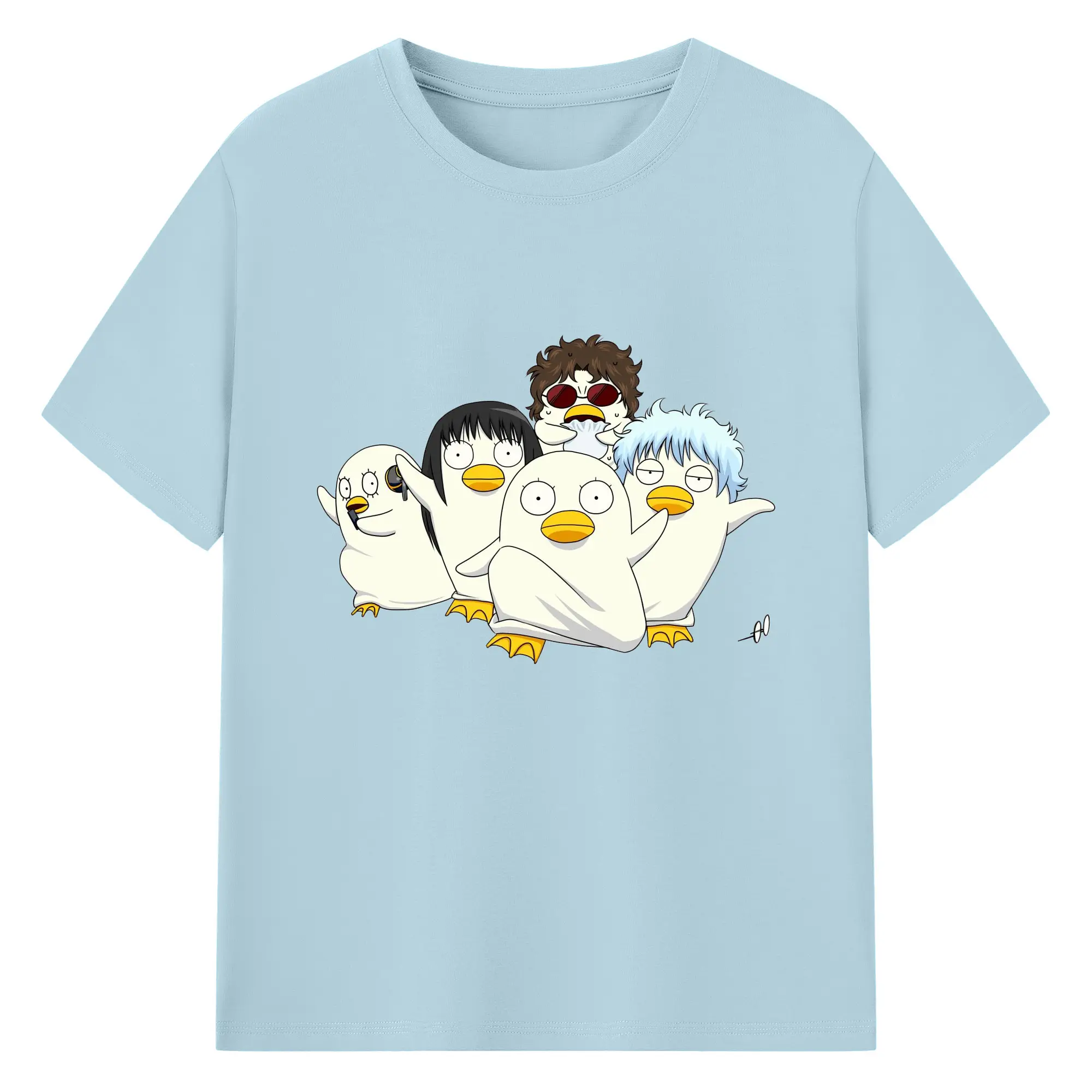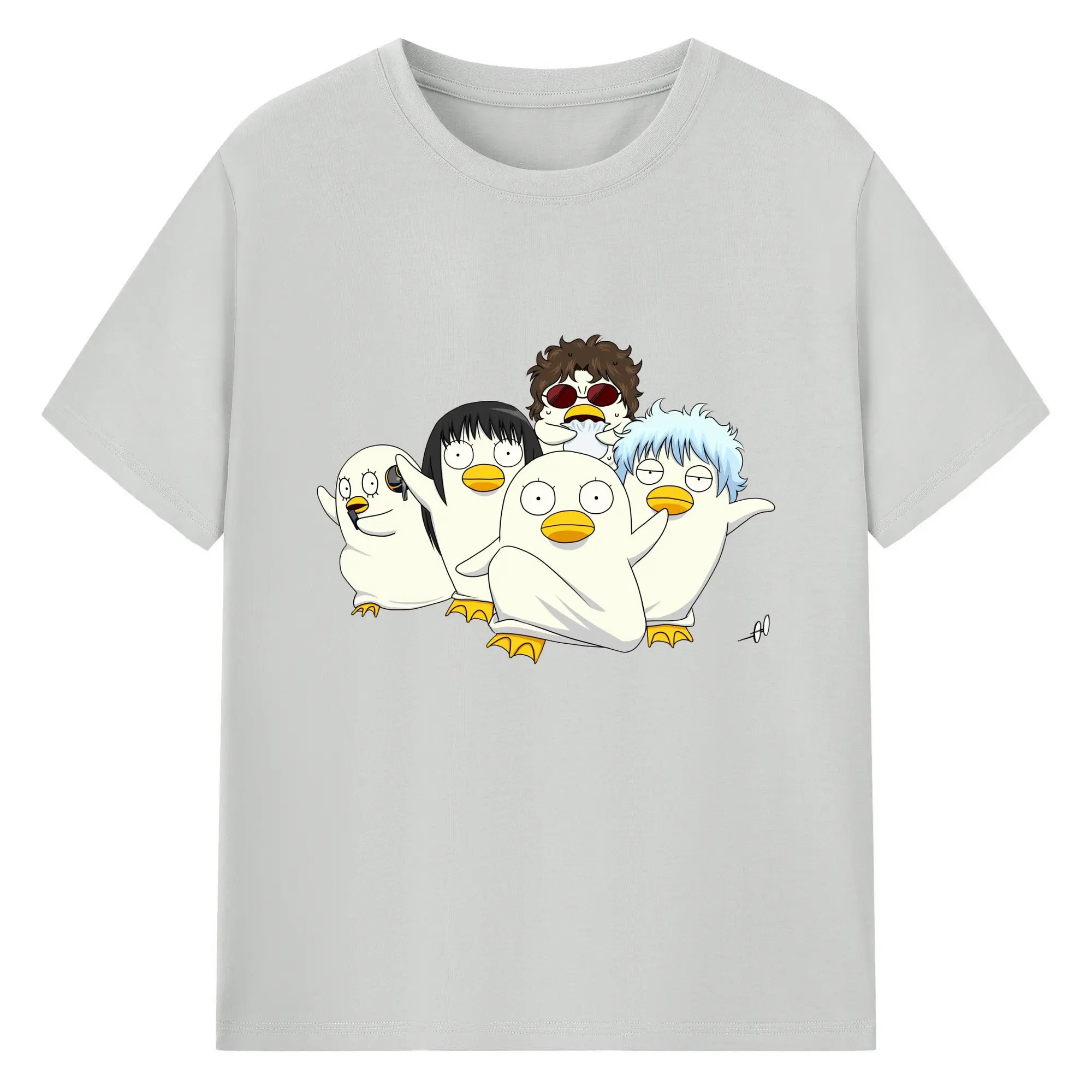 银魂 エリザベスみんなでぽかぽか - 綿100% ヴィンテージ風 半袖Tシャツ ・ フロントプリント ・ 柔らか肌触り ・ 通気性 快適 ・ スポーツ カジュアル 外出用