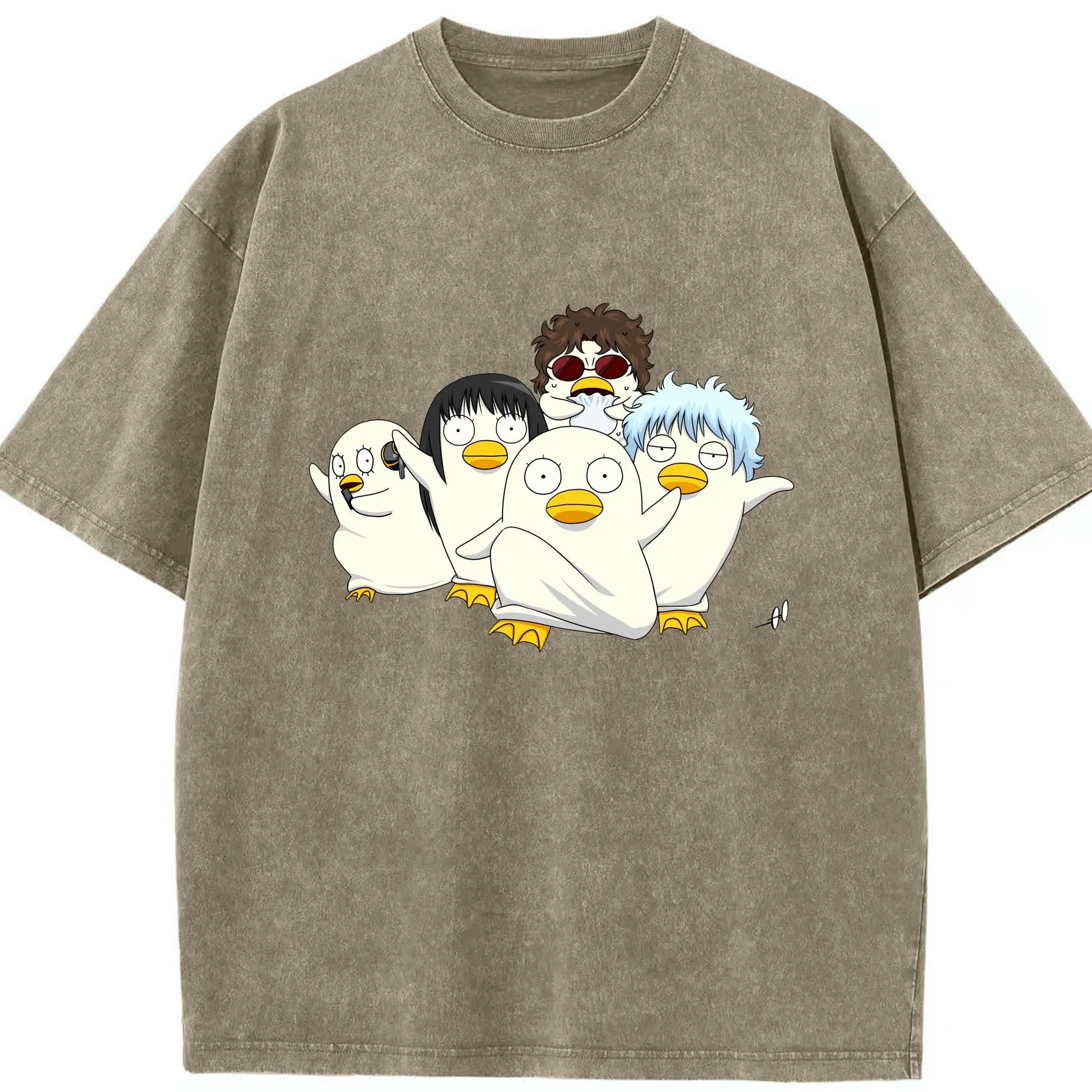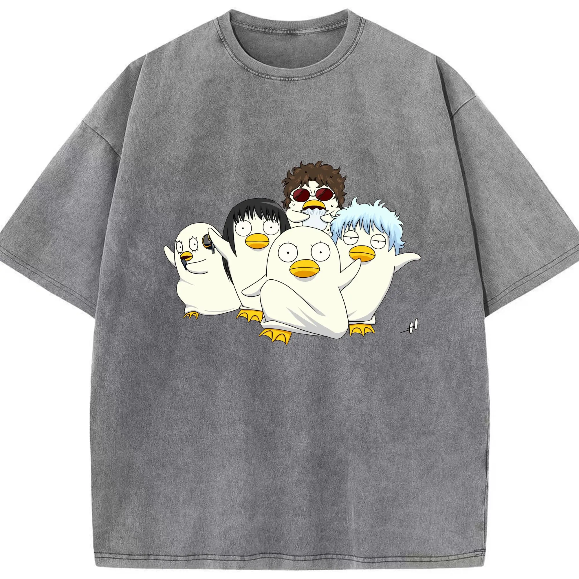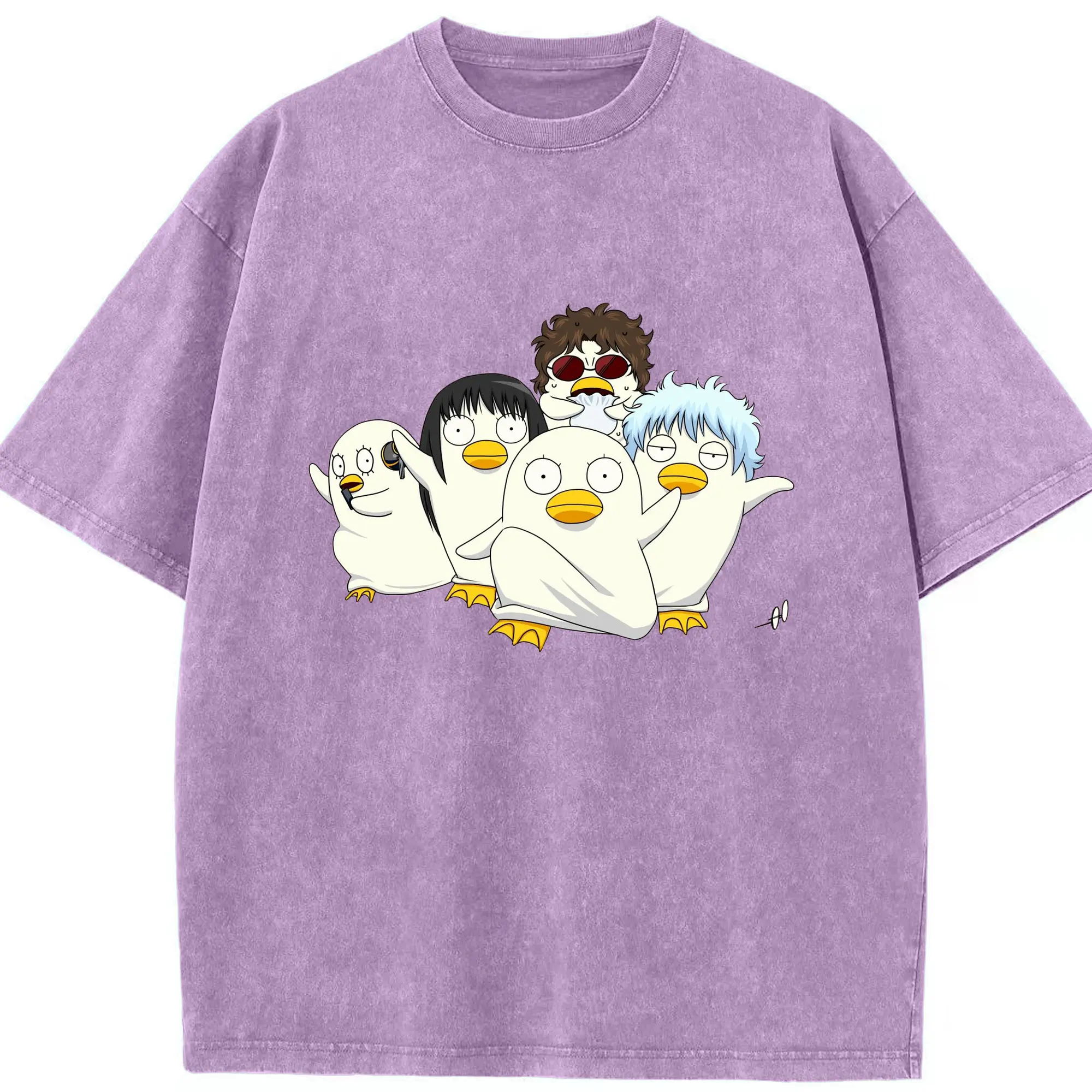 银魂 エリザベスみんなでぽかぽか - 綿100% 半袖Tシャツ ・ フロントプリント ・ 快適 通気性 ・ 日常使い 散歩 スポーツ用
