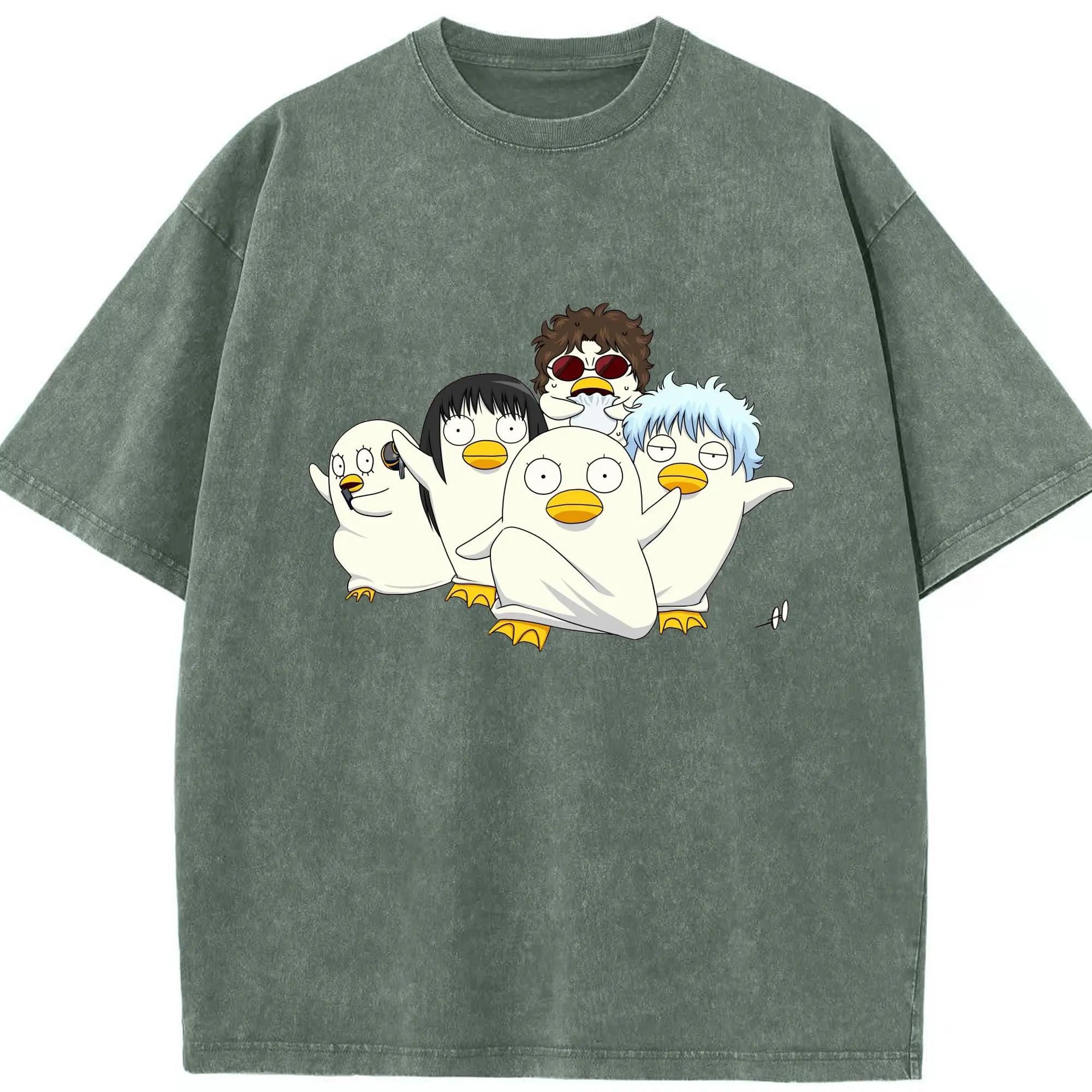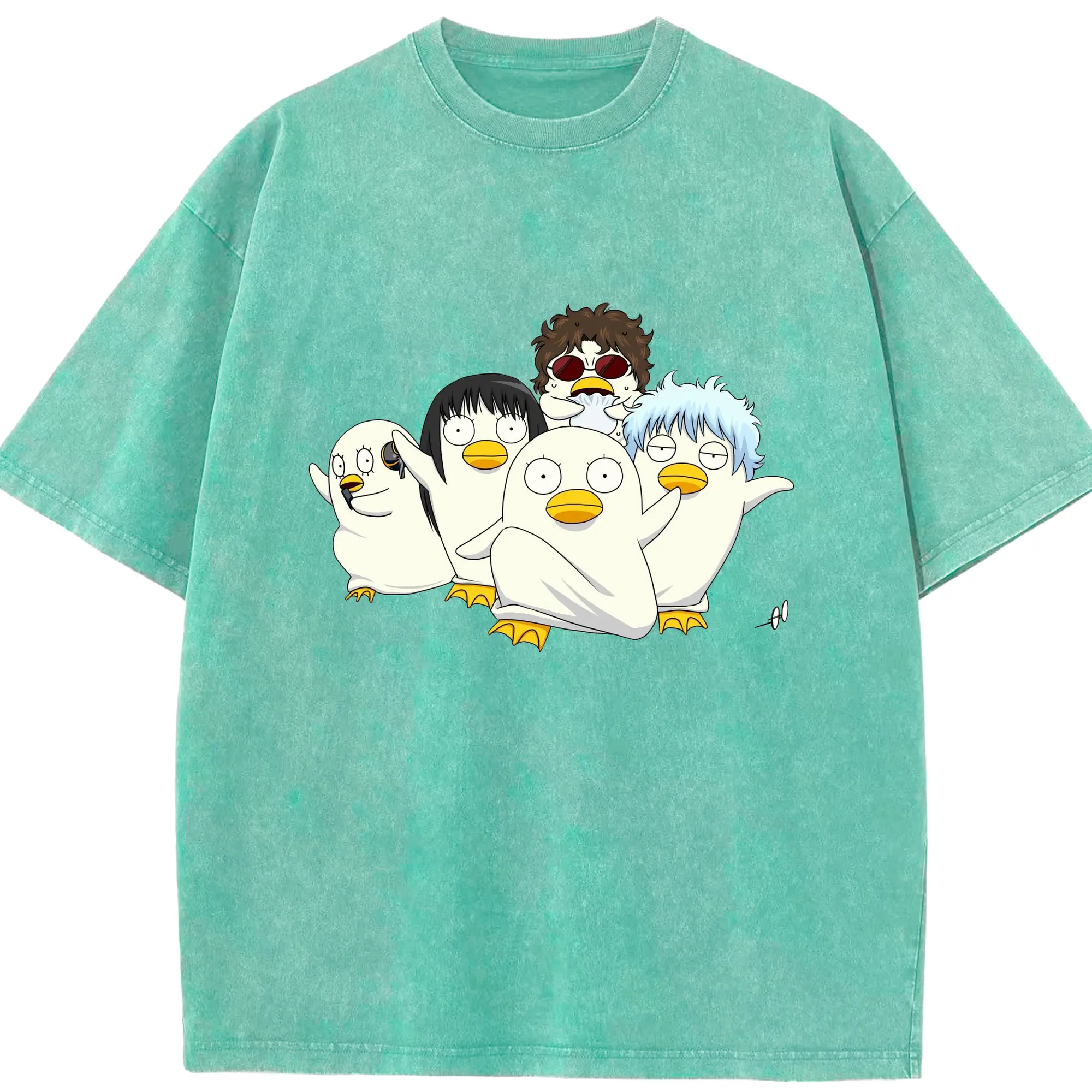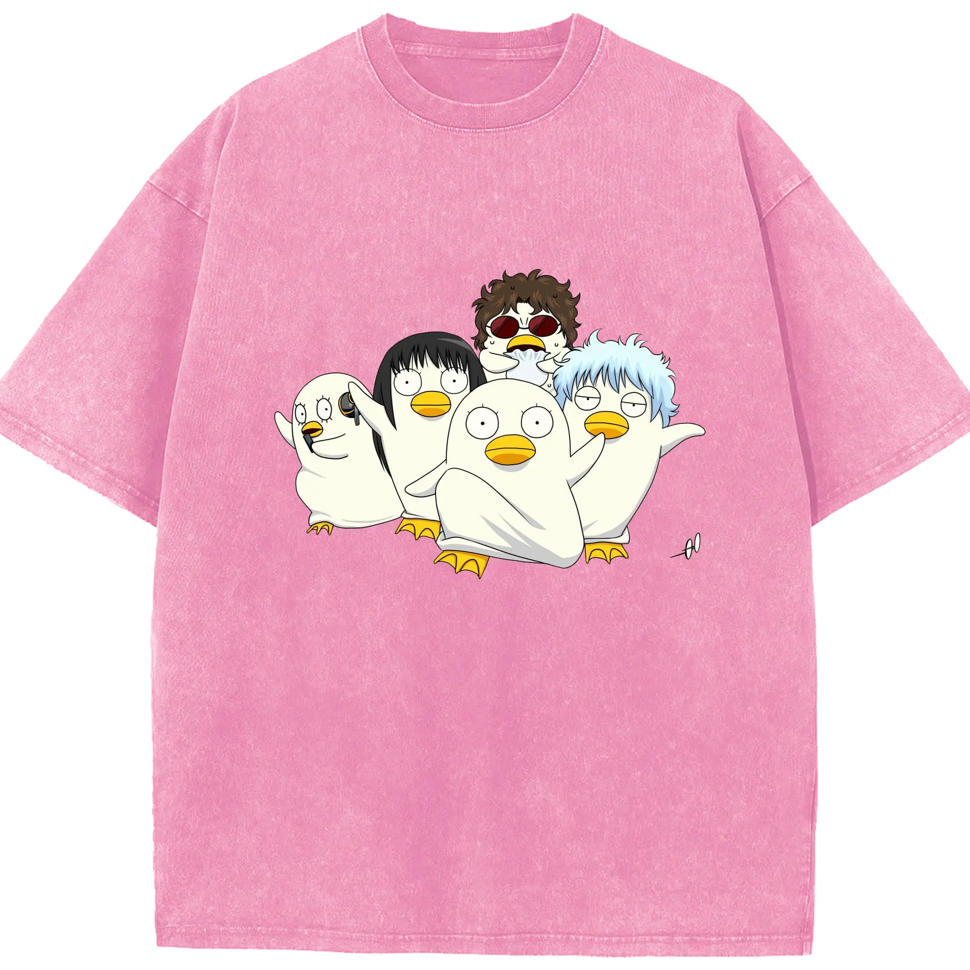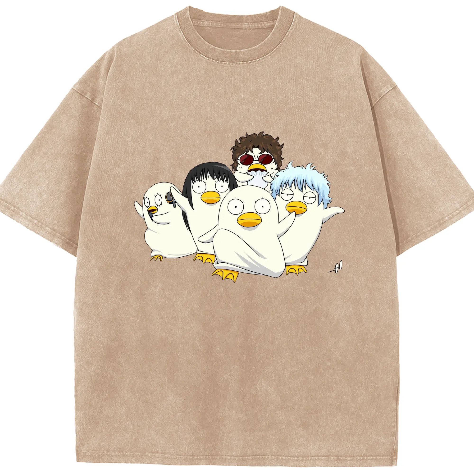 银魂 エリザベスみんなでぽかぽか - 綿100% 半袖Tシャツ ・ フロントプリント ・ 快適 通気性 ・ 日常使い 散歩 スポーツ用