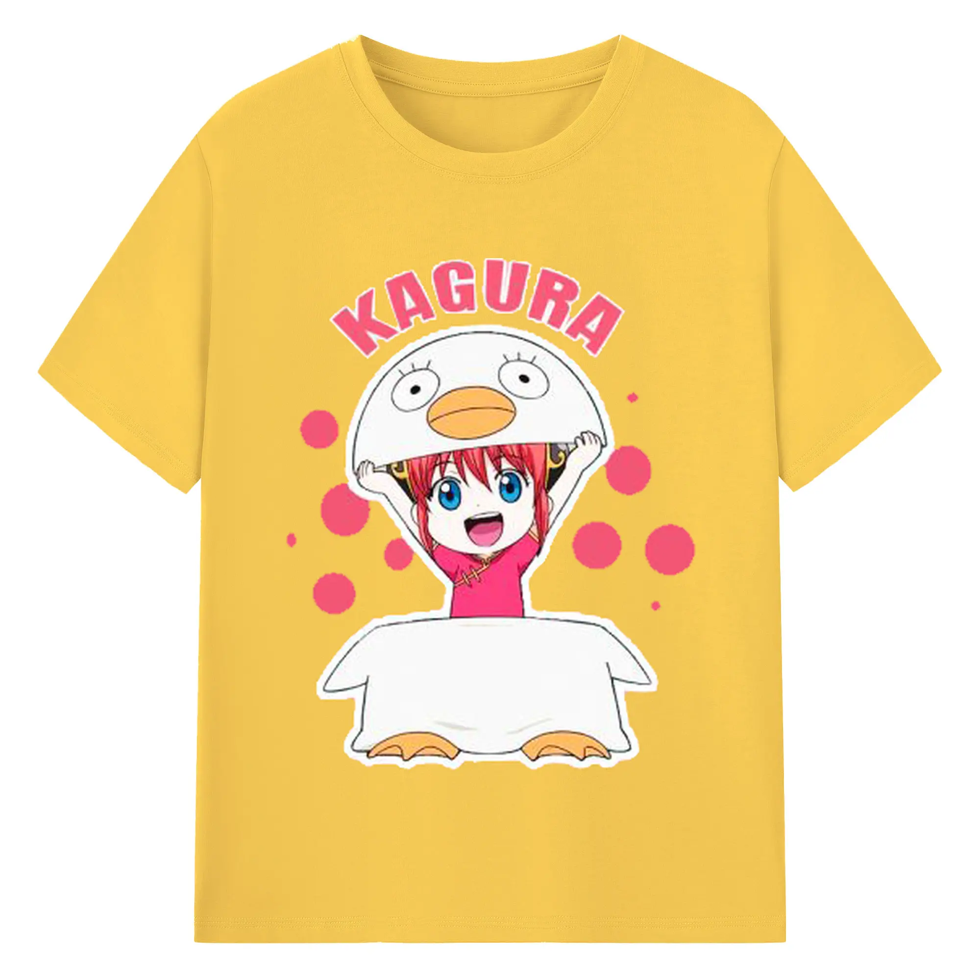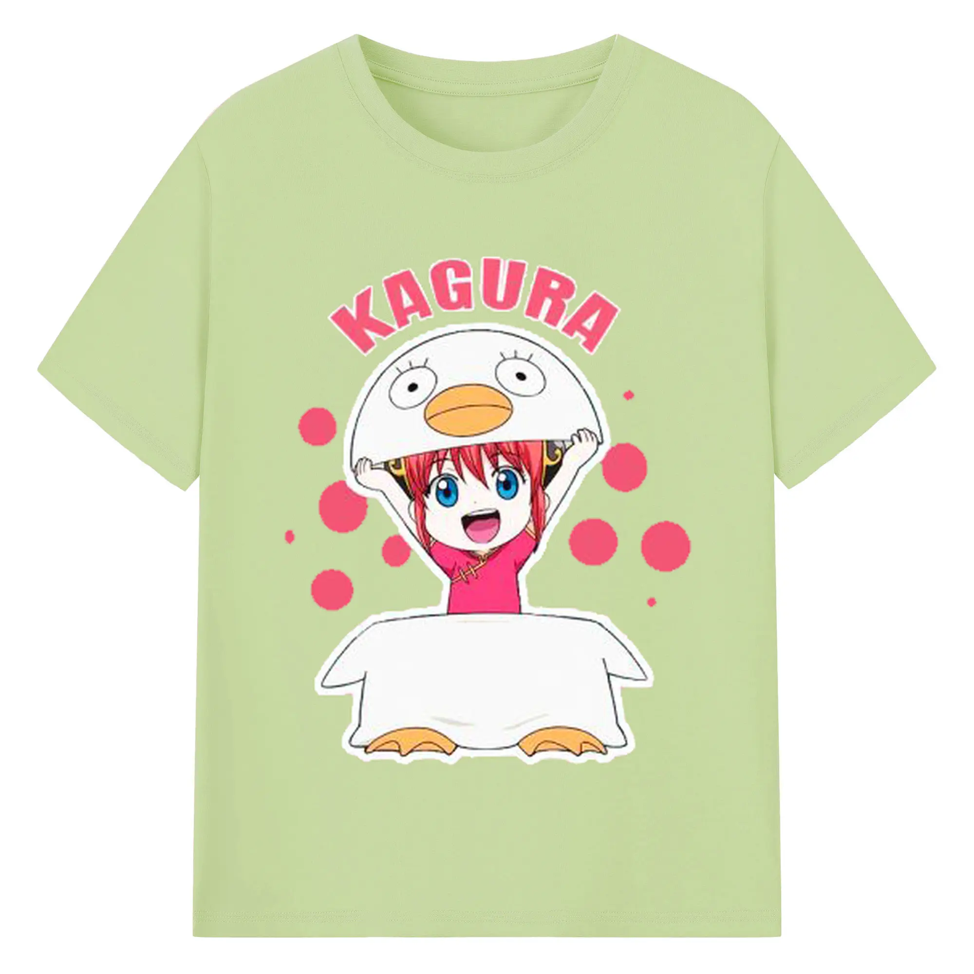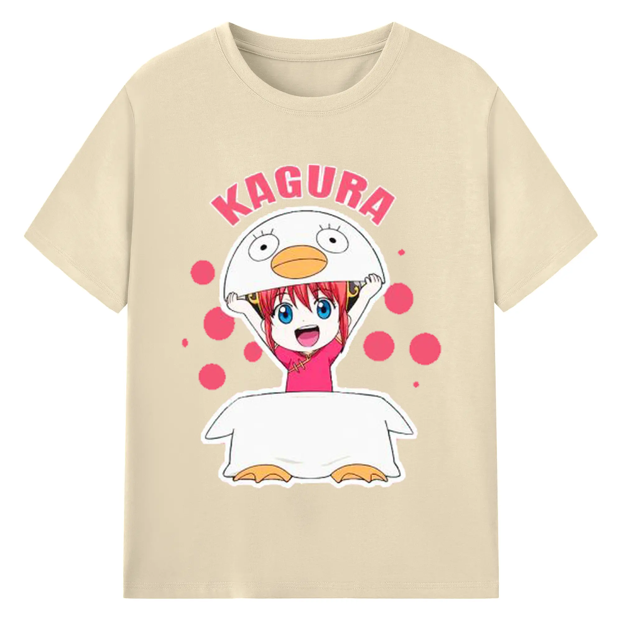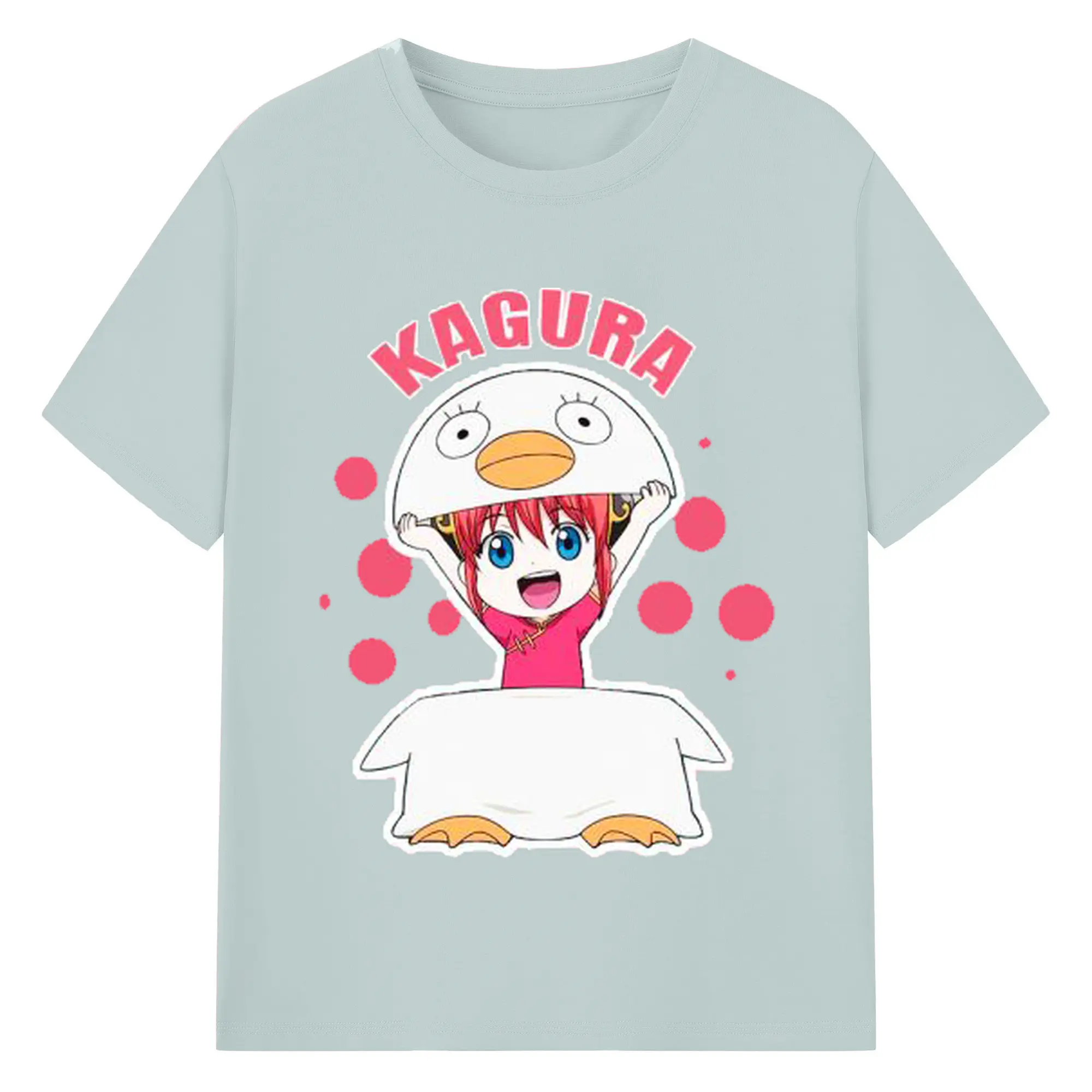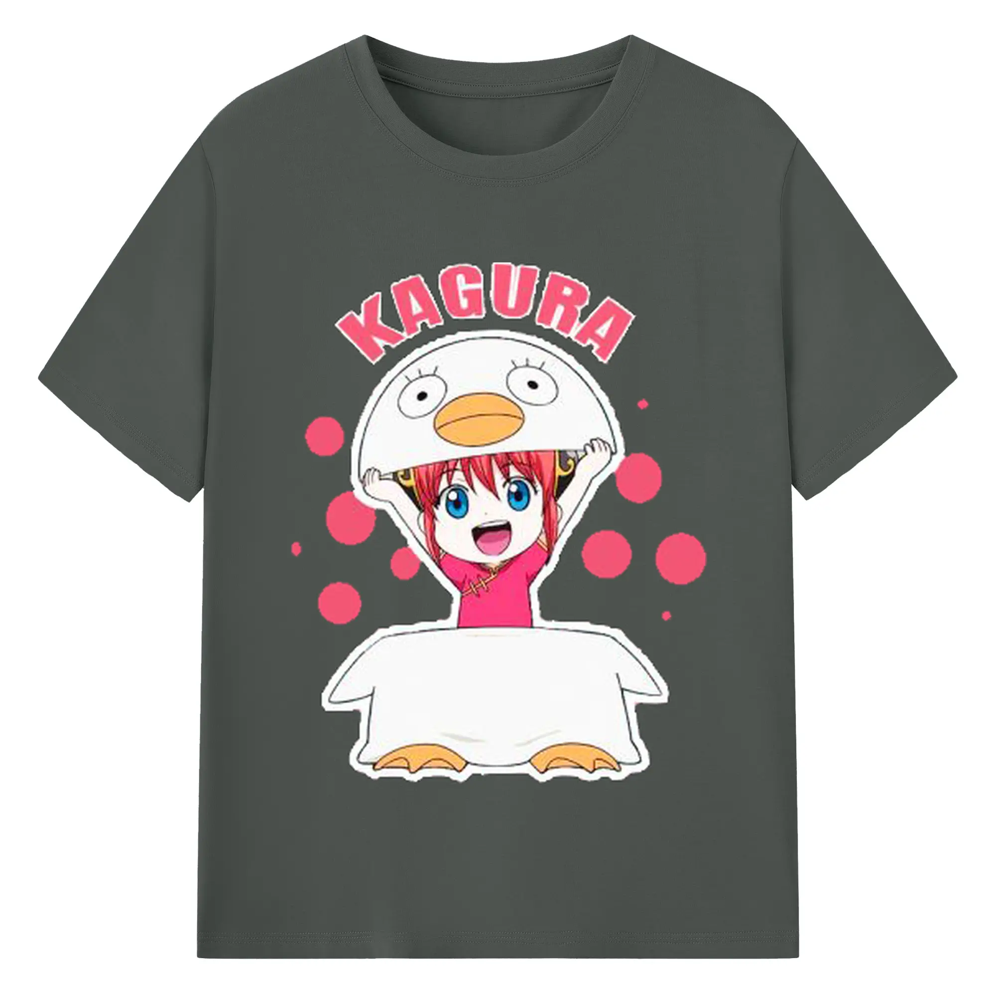 银魂 エリザベス神楽カワイイ日記 - 綿100% ヴィンテージ風 半袖Tシャツ ・ フロントプリント ・ 柔らか肌触り ・ 通気性 快適 ・ スポーツ カジュアル 外出用