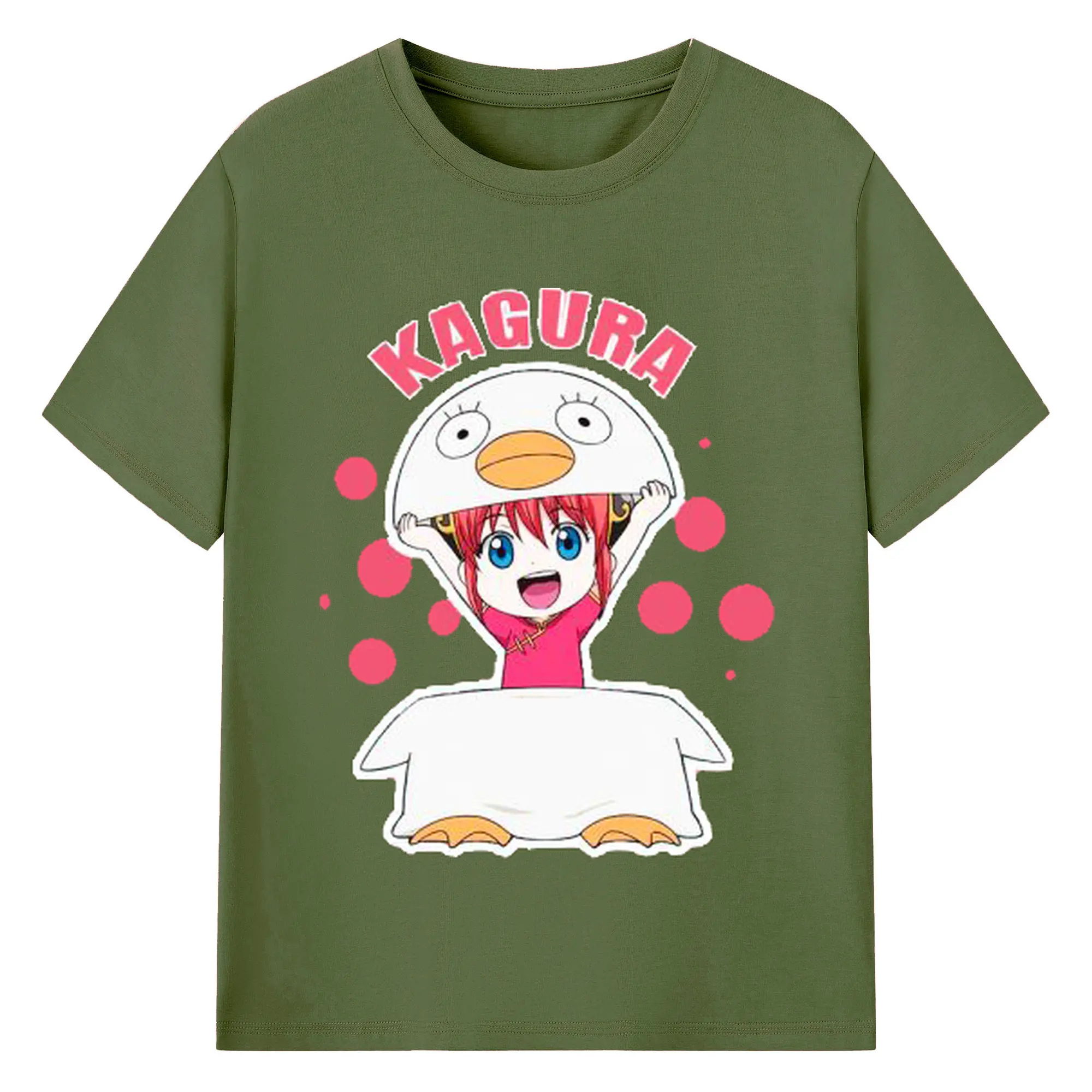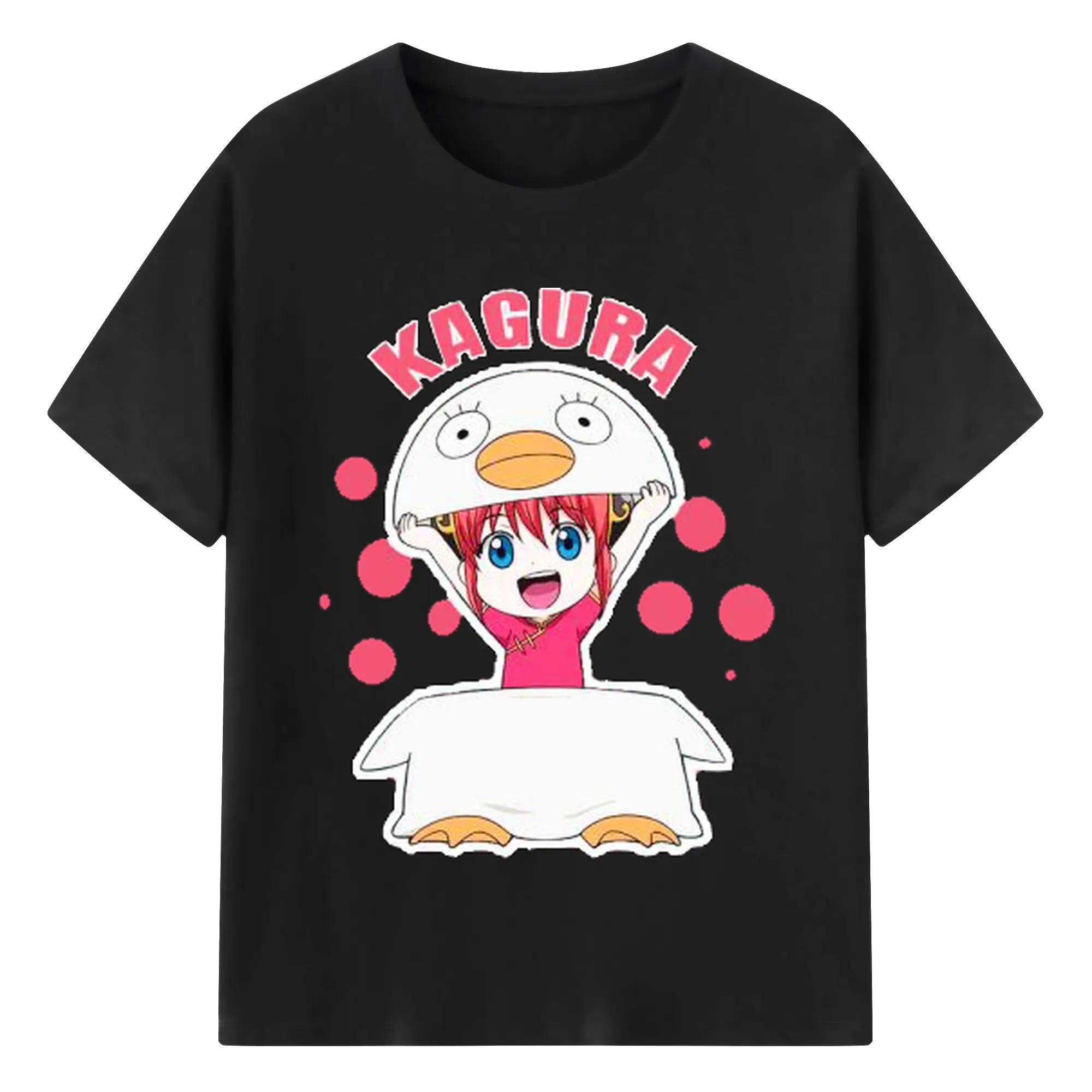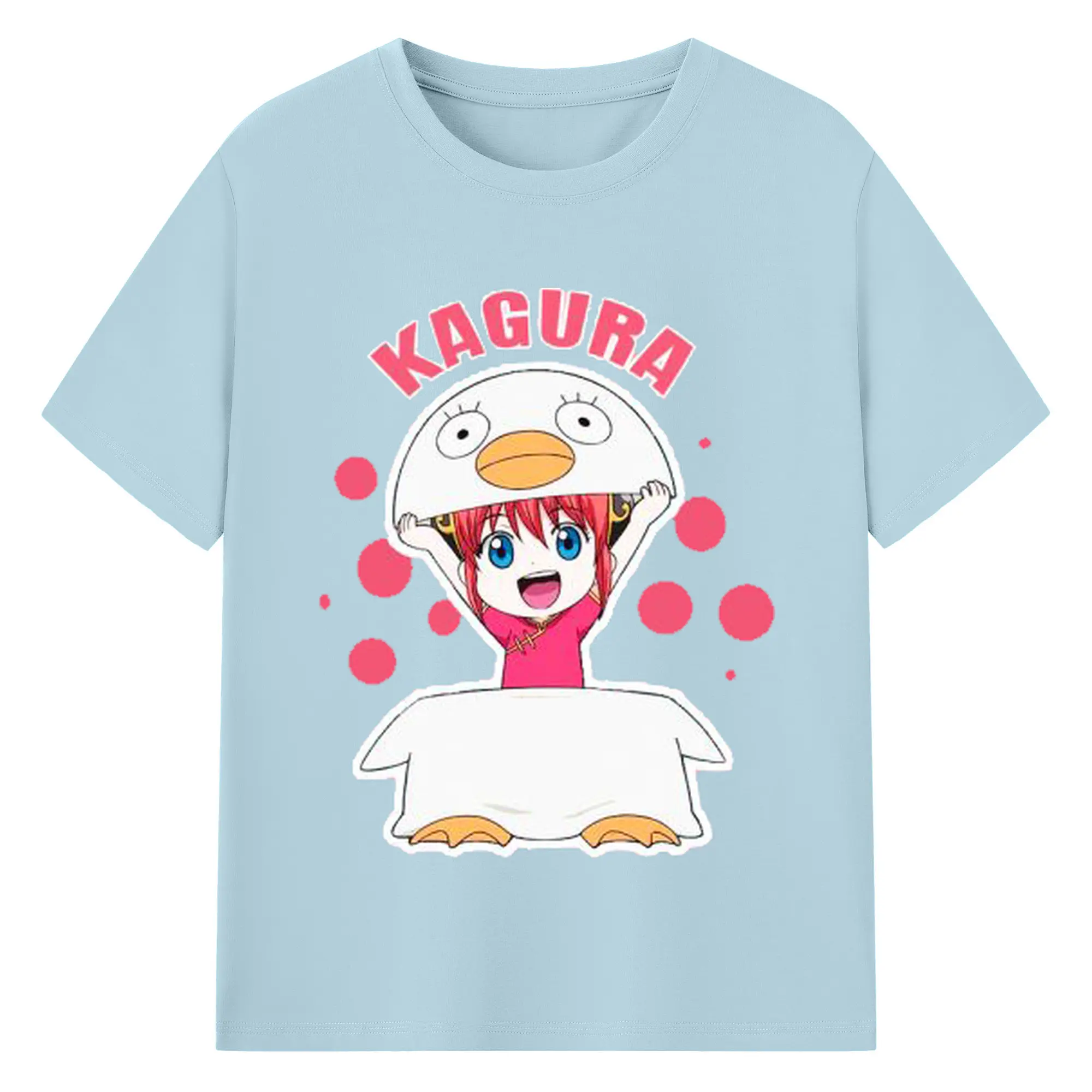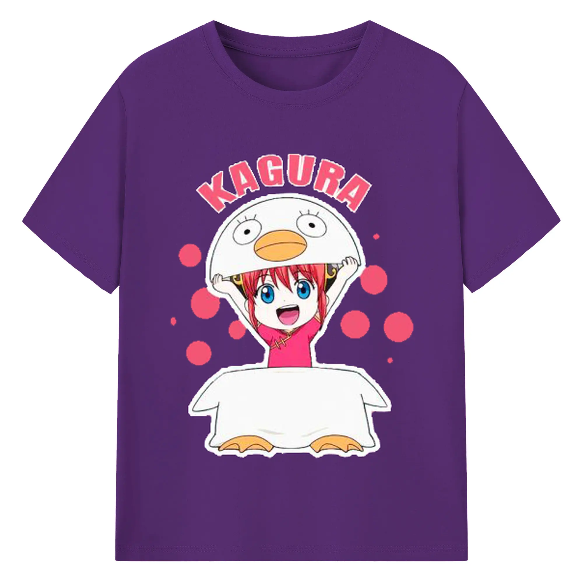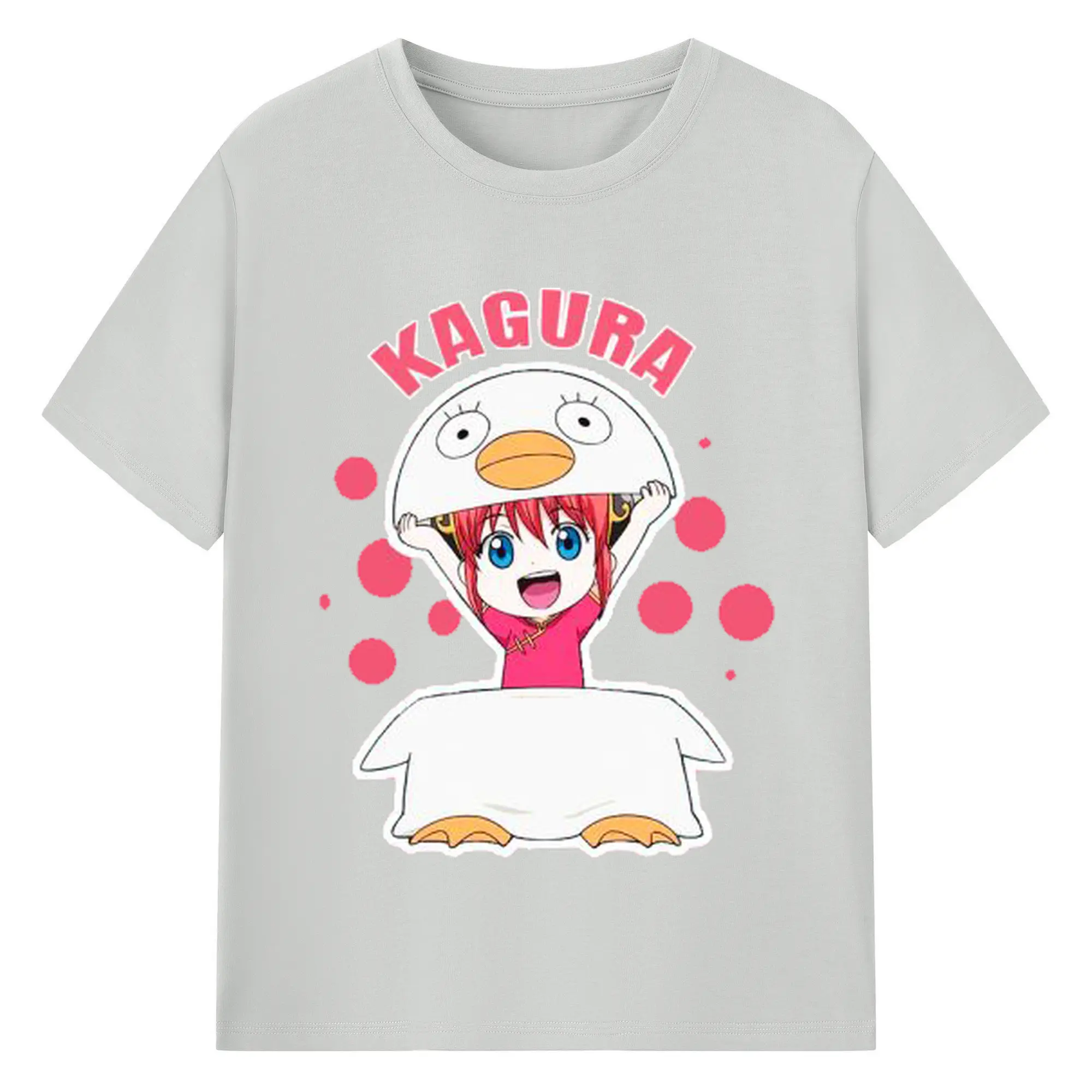 银魂 エリザベス神楽カワイイ日記 - 綿100% ヴィンテージ風 半袖Tシャツ ・ フロントプリント ・ 柔らか肌触り ・ 通気性 快適 ・ スポーツ カジュアル 外出用