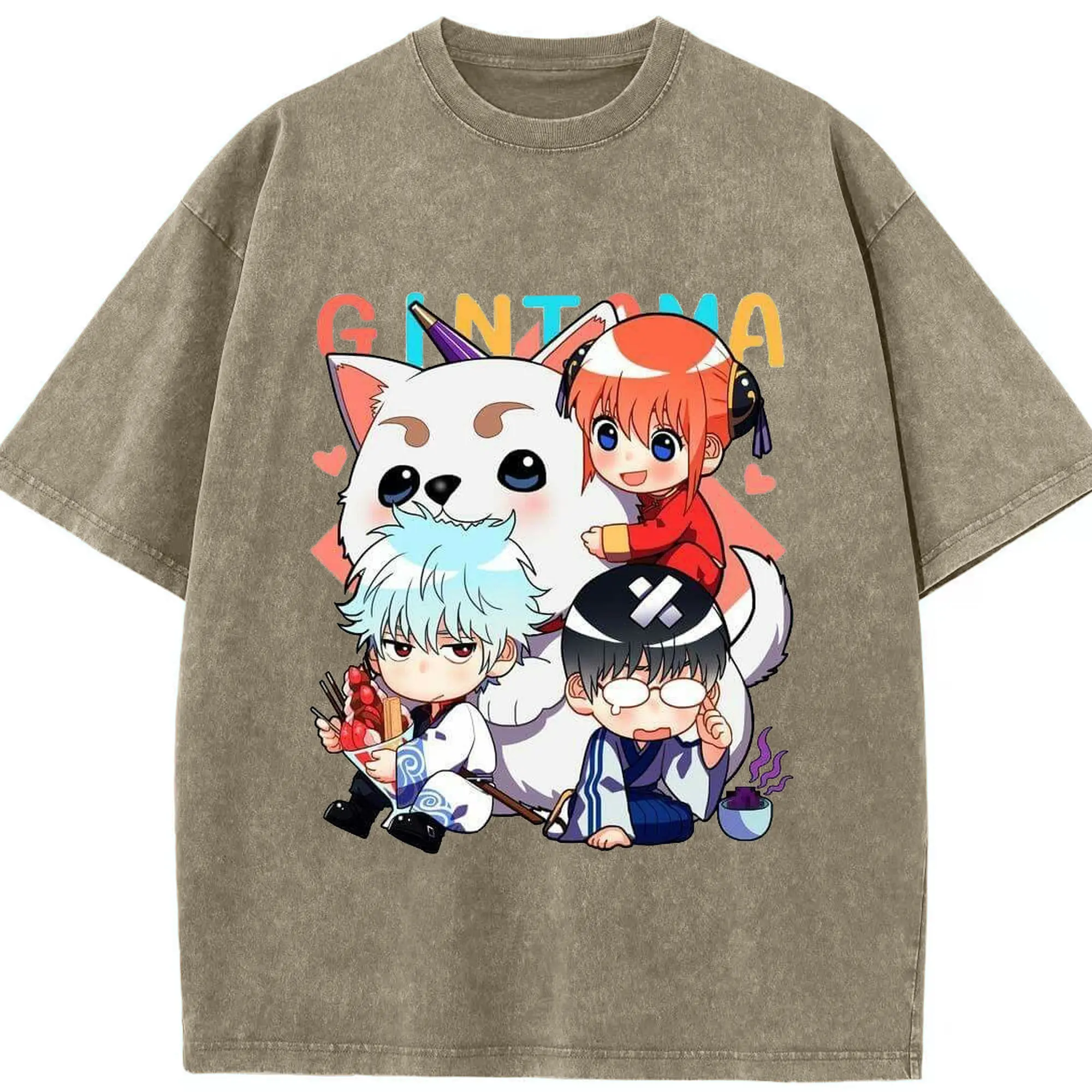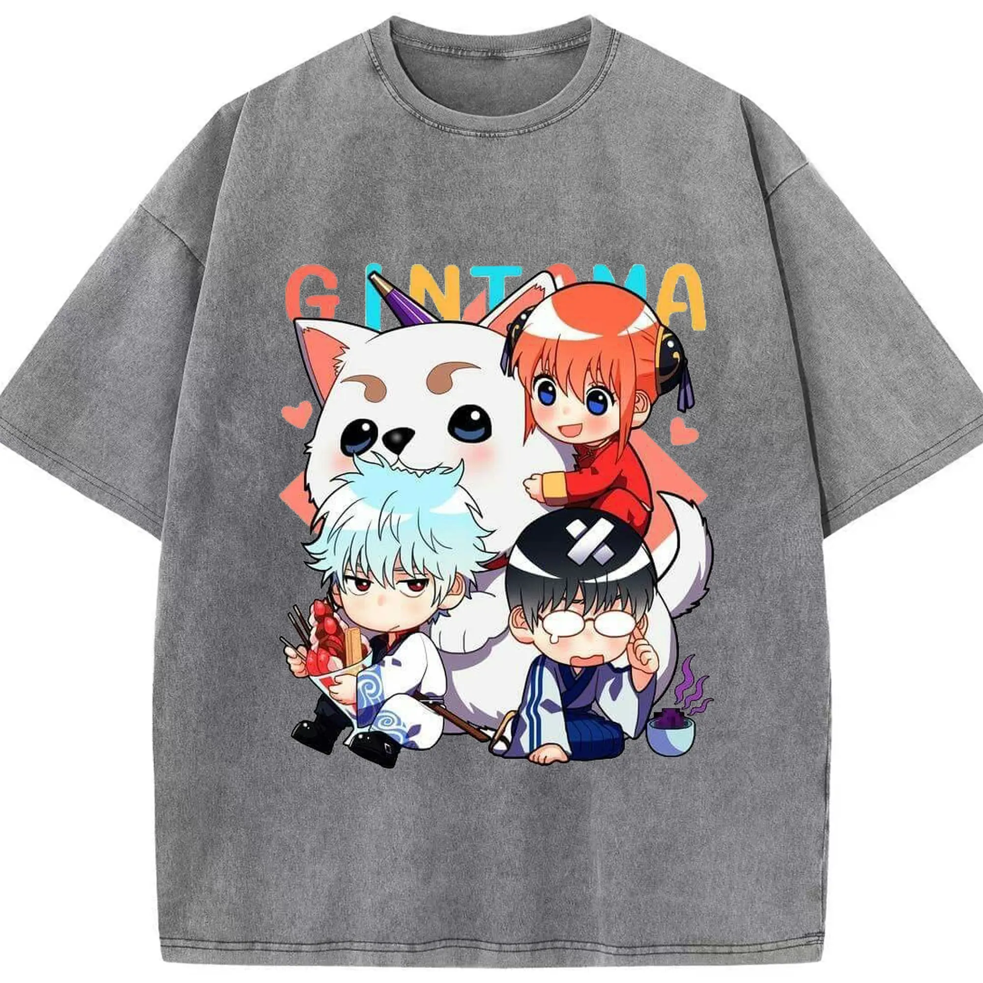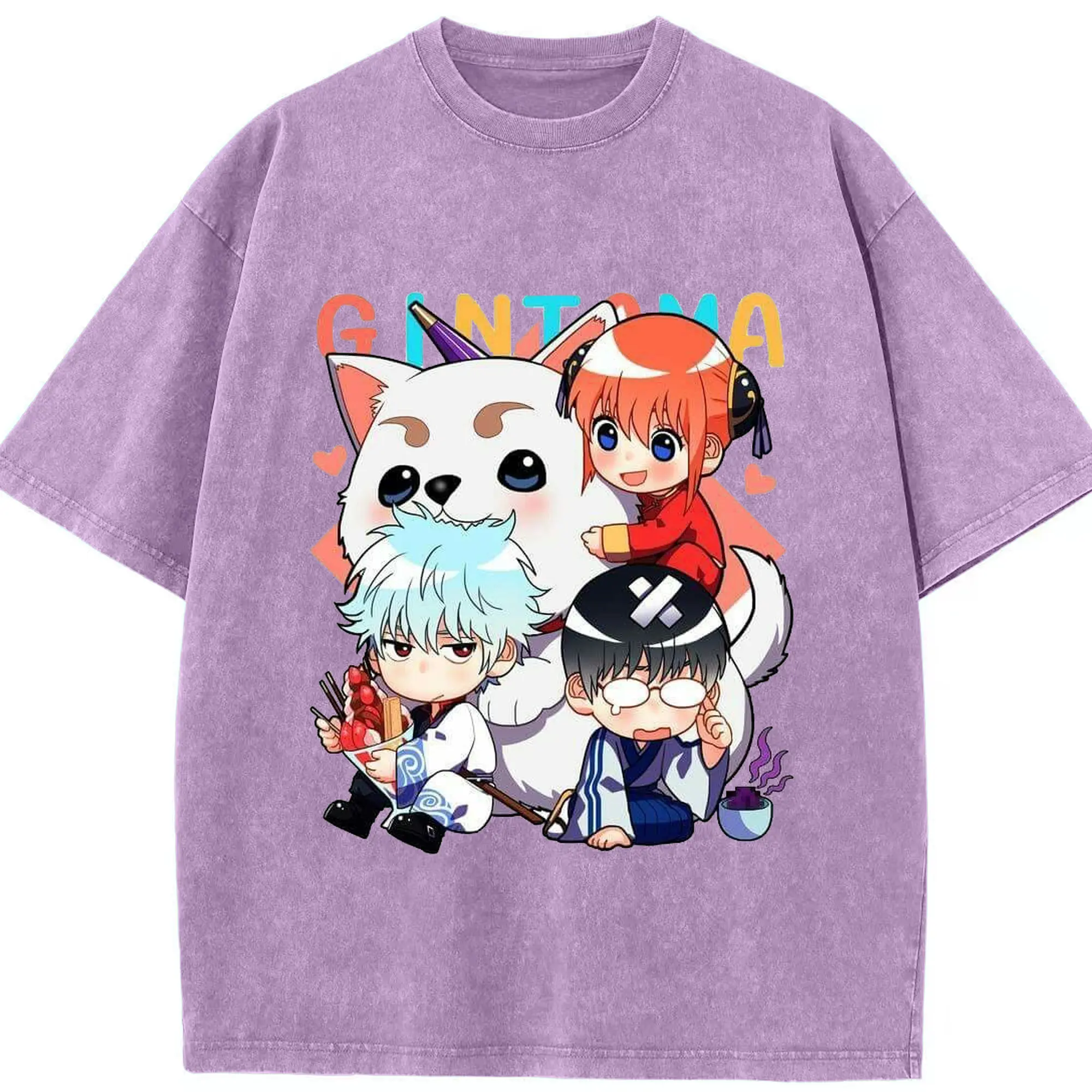 银魂 万事屋のもふもふ日記 - 綿100% 半袖Tシャツ ・ フロントプリント ・ 快適 通気性 ・ 日常使い 散歩 スポーツ用