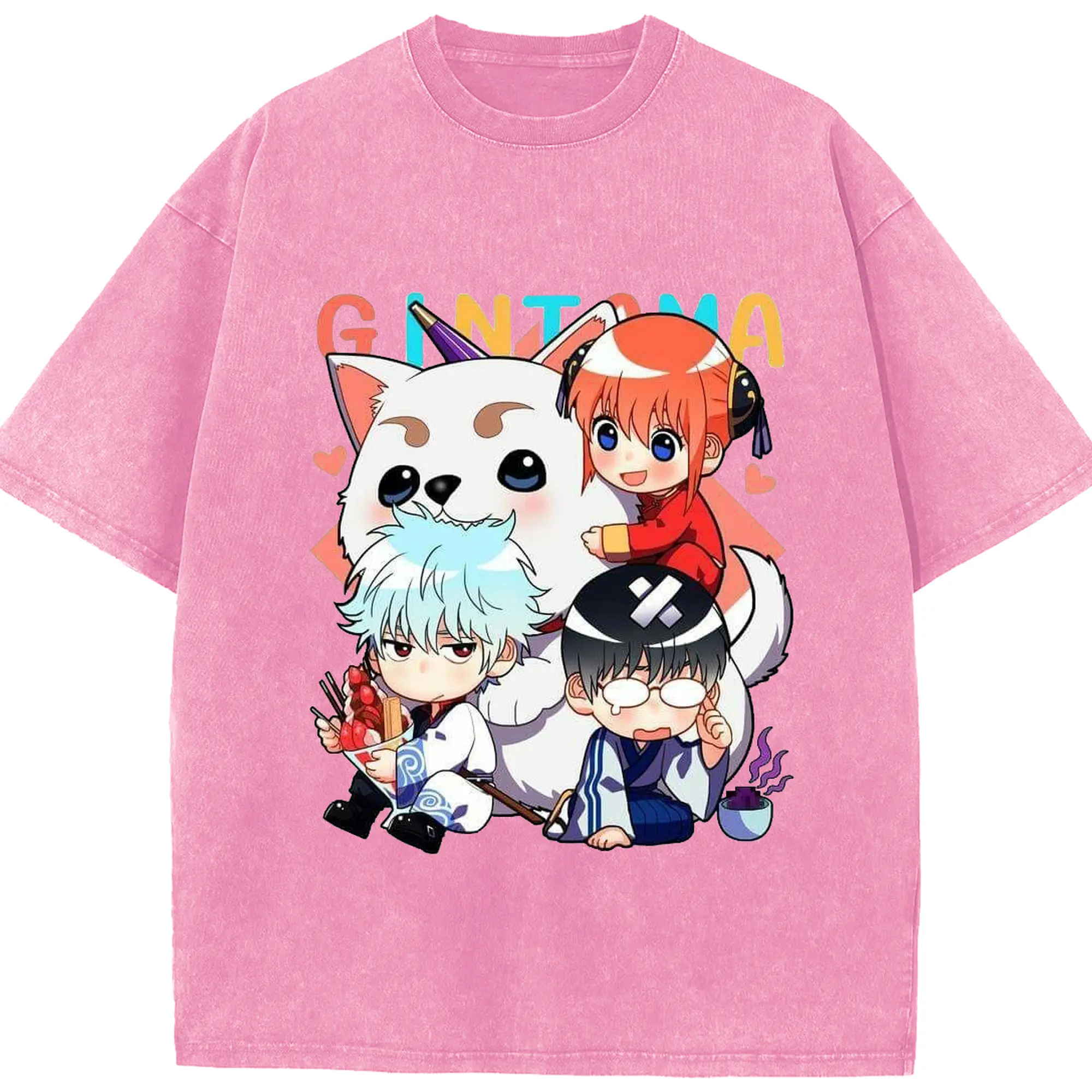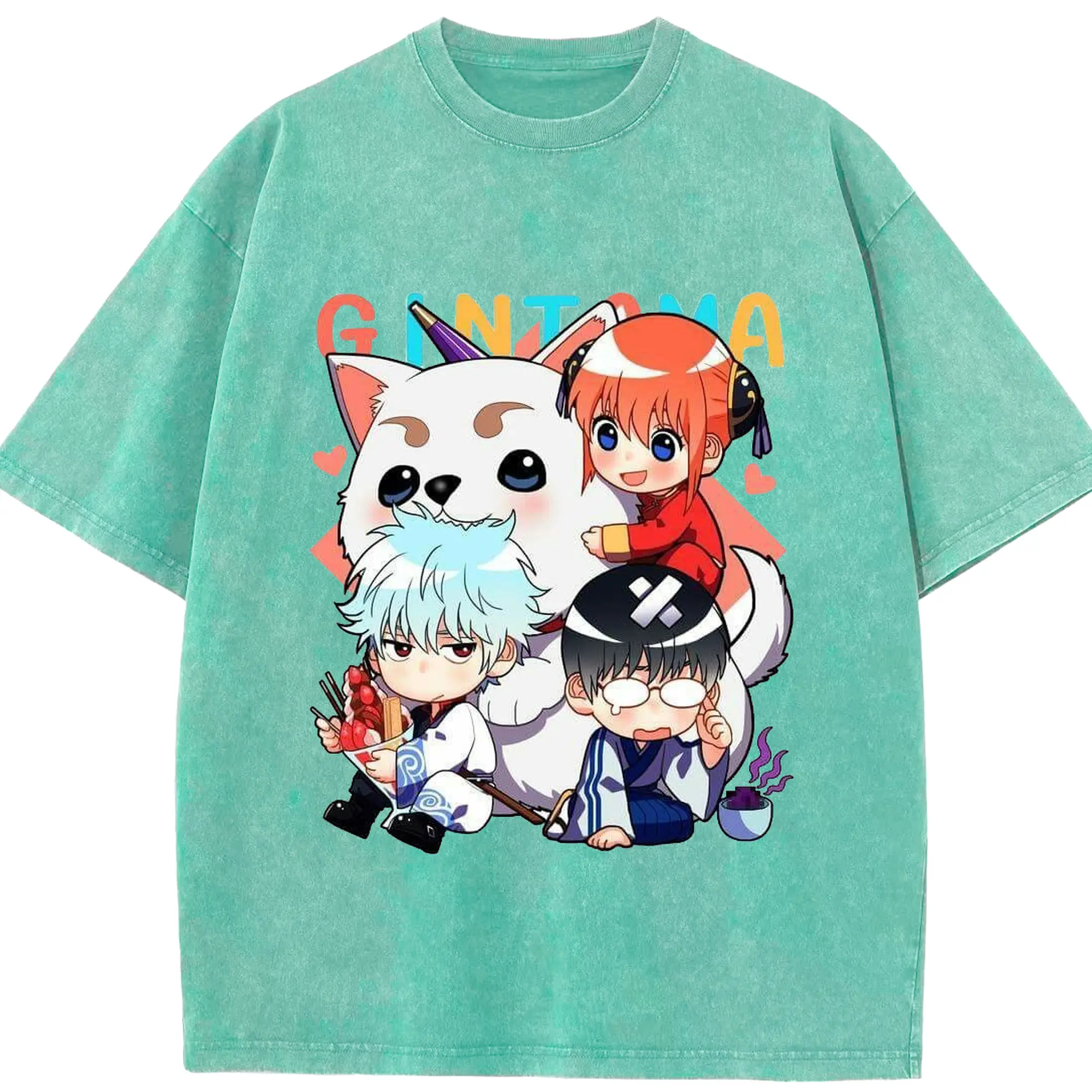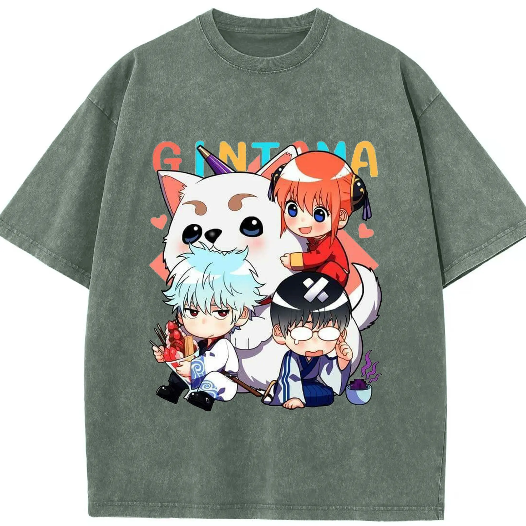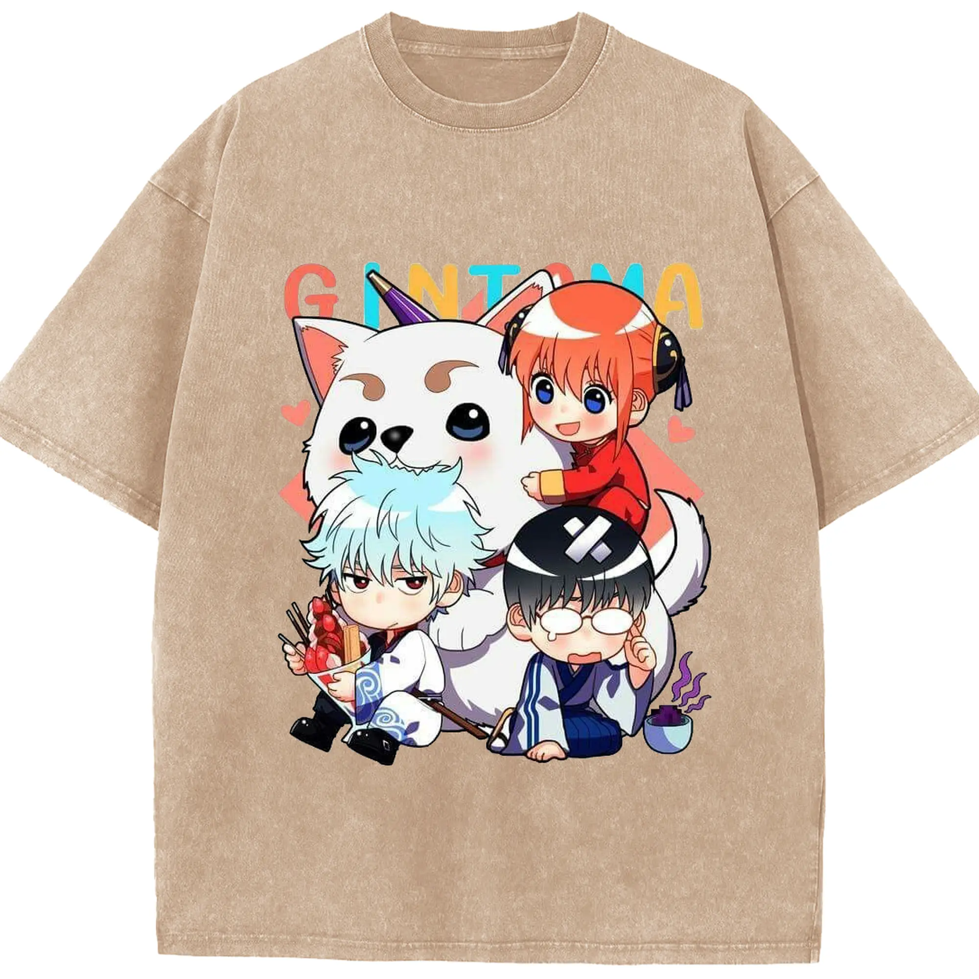 银魂 万事屋のもふもふ日記 - 綿100% 半袖Tシャツ ・ フロントプリント ・ 快適 通気性 ・ 日常使い 散歩 スポーツ用