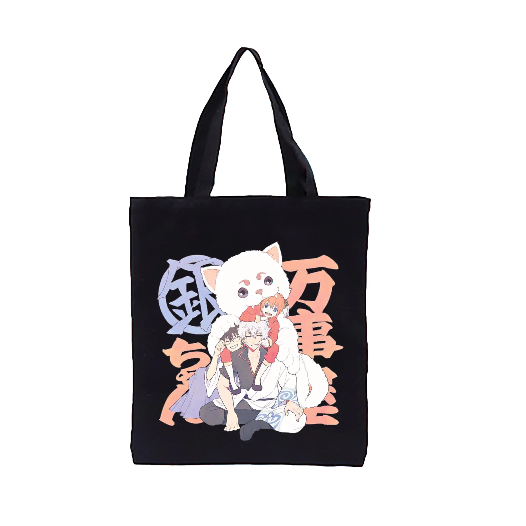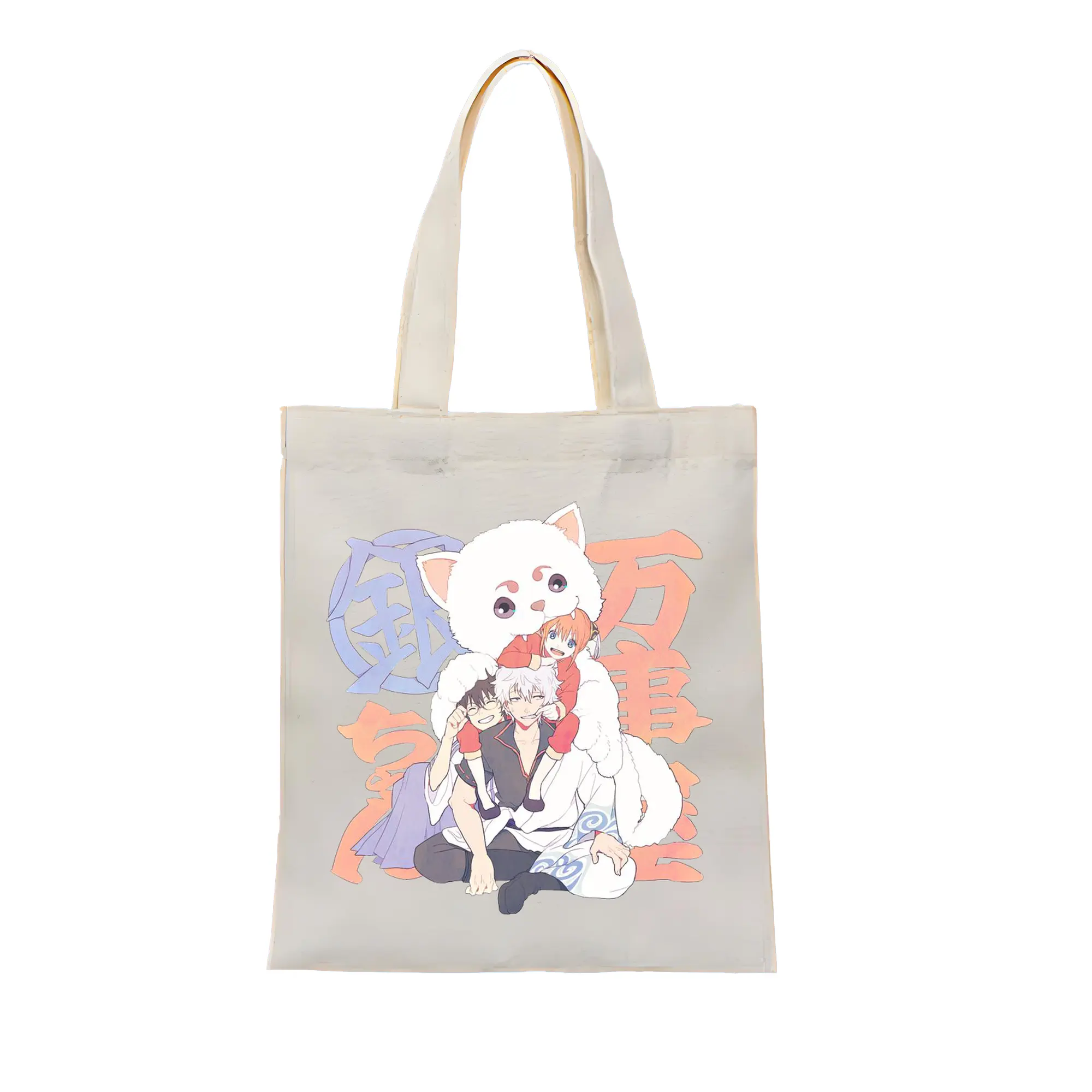 银魂 坂田銀時 定春 - 縦型キャンバス手提げバッグ(トートバッグ) ・ キャンバス素材 ・ ショッピング用 ・ 軽量 丈夫 お手入れ簡単
