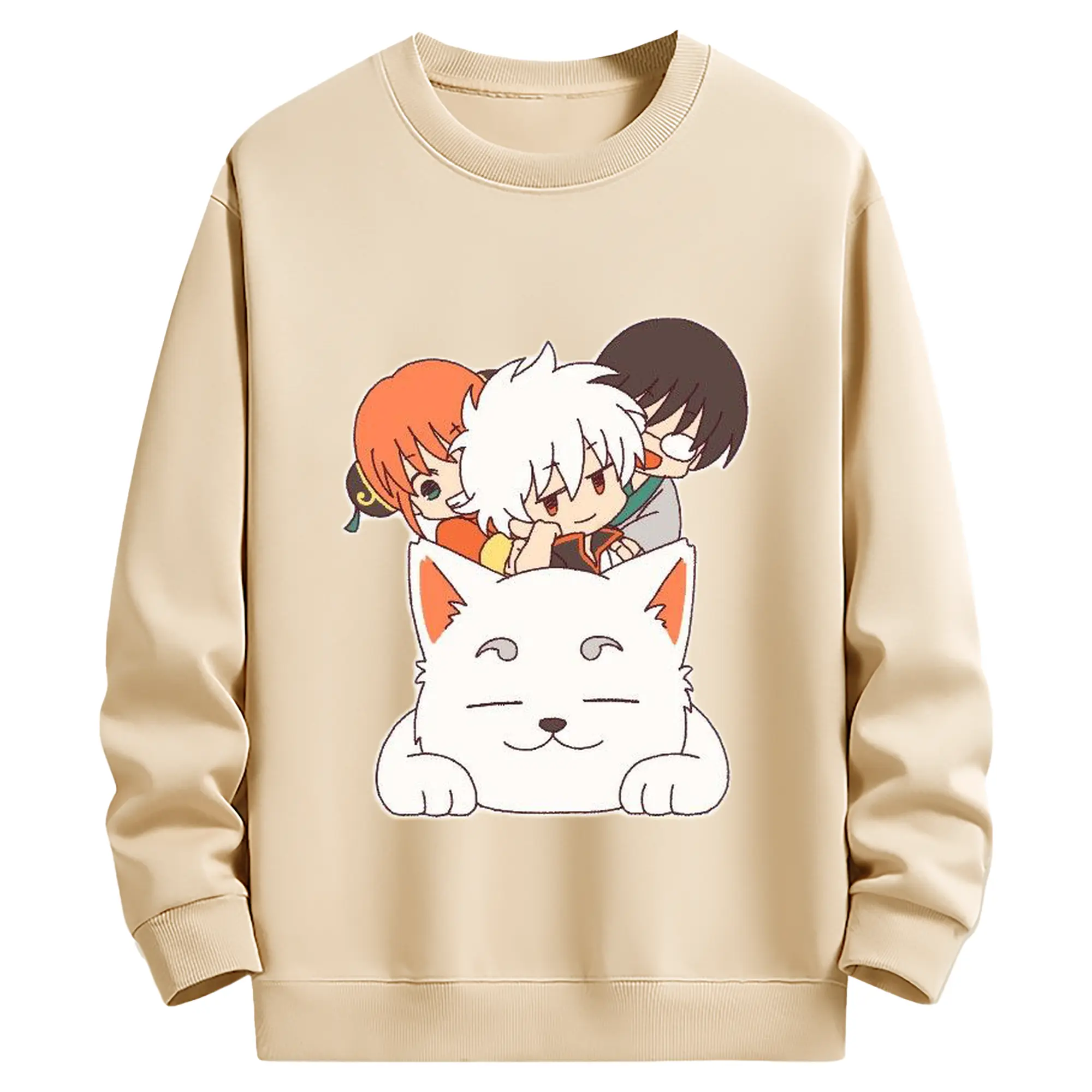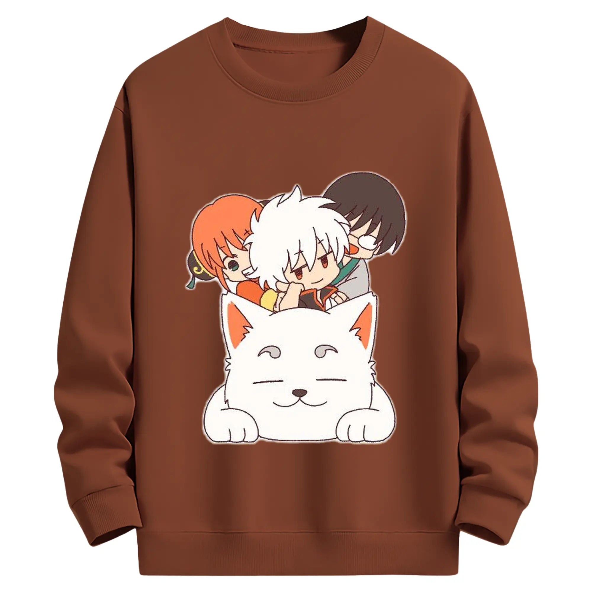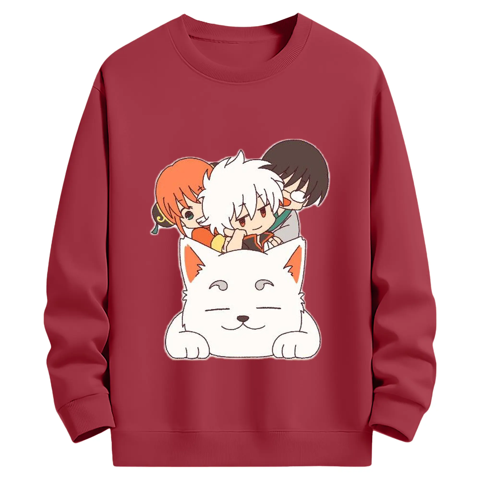 银魂 定春 ほっこり銀魂タイム - 綿100% 半袖Tシャツ ・ フロントプリント ・ 快適 通気性 ・ 日常使い 散歩 スポーツ用