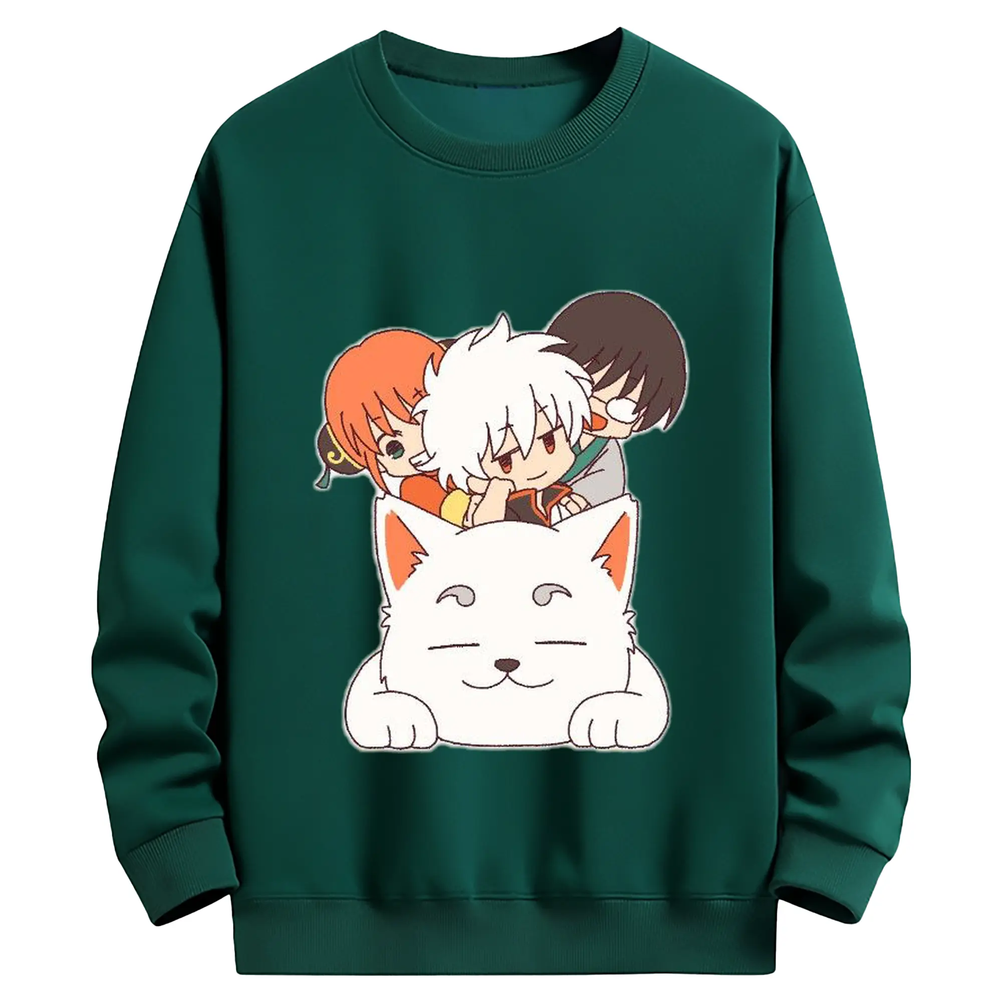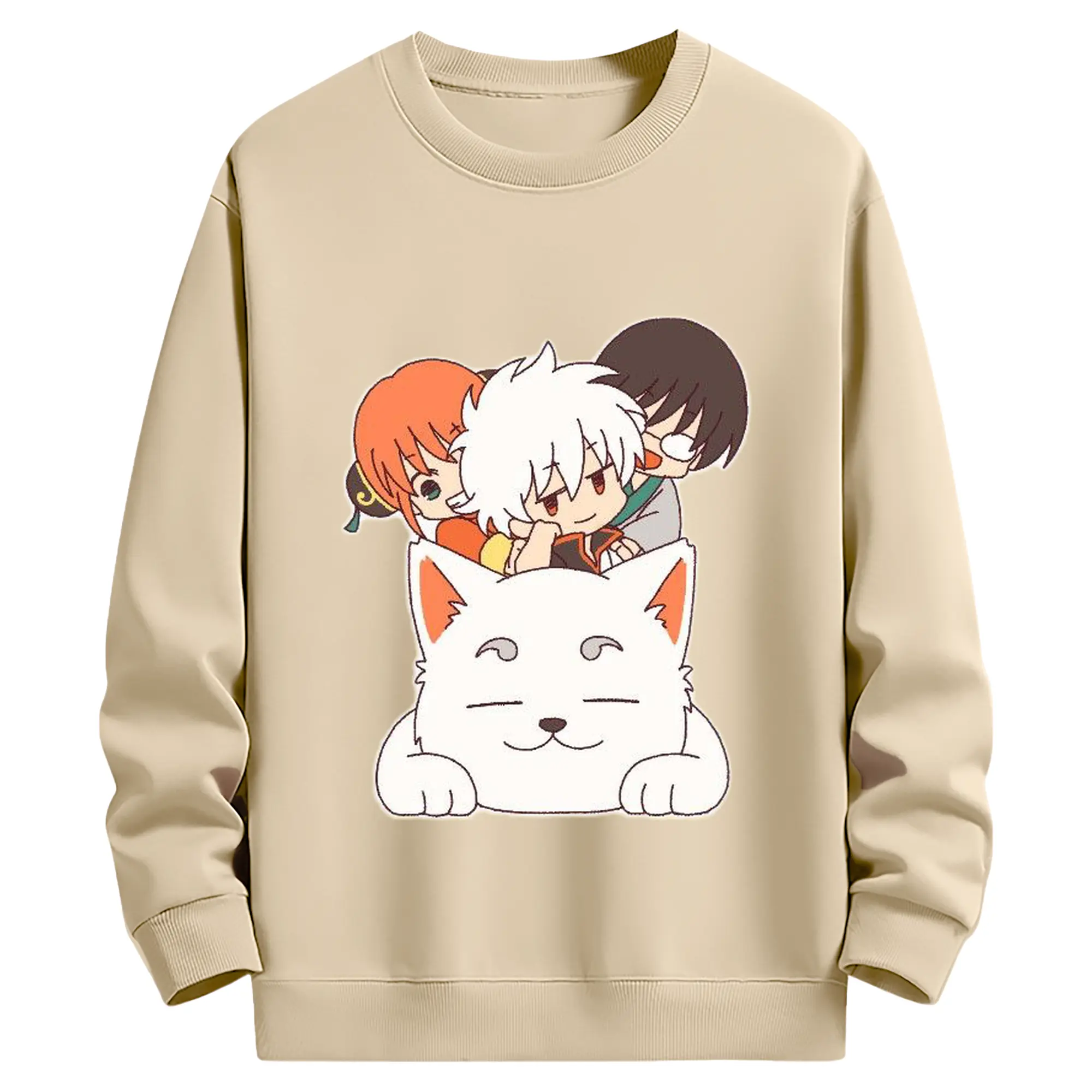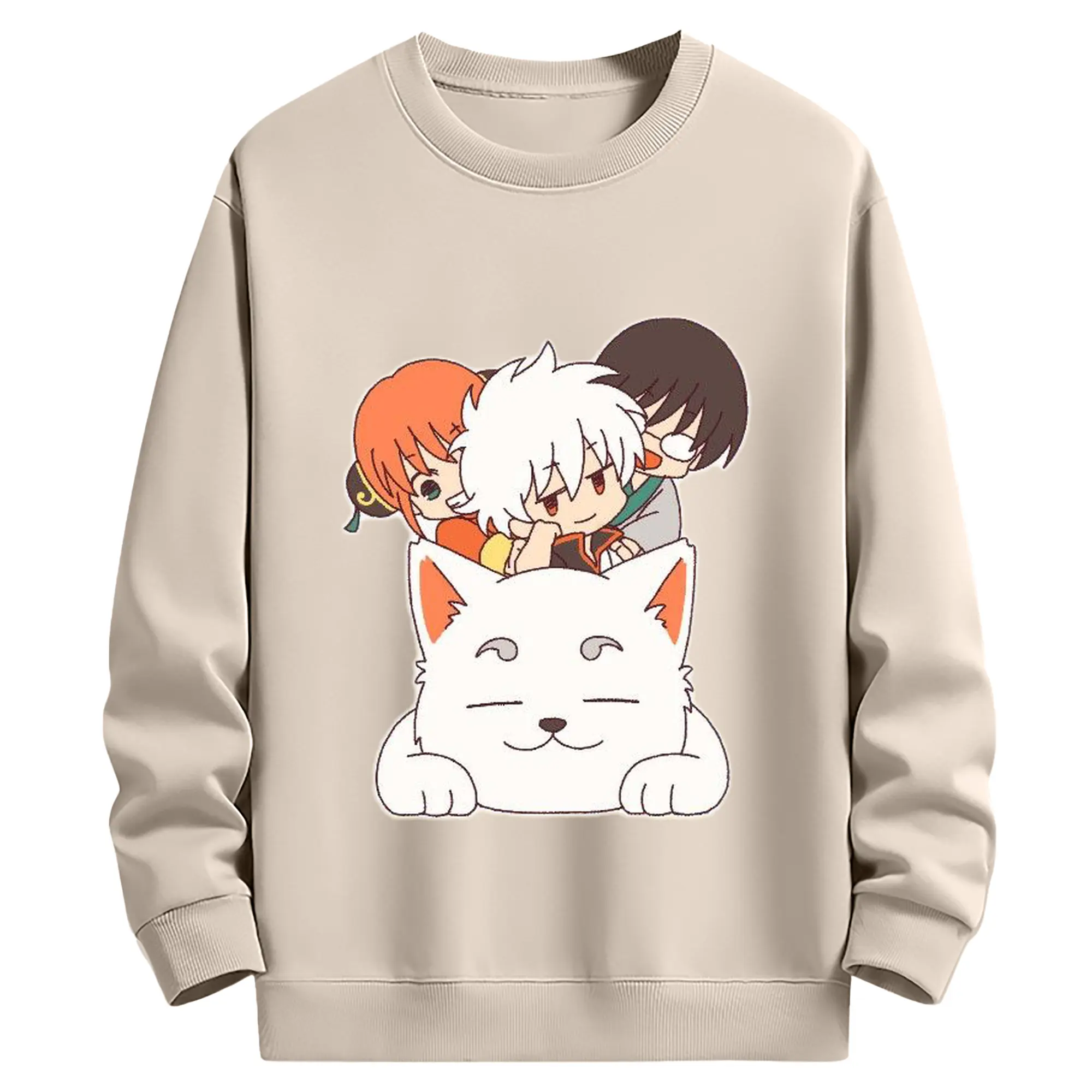 银魂 定春 ほっこり銀魂タイム - 綿100% 半袖Tシャツ ・ フロントプリント ・ 快適 通気性 ・ 日常使い 散歩 スポーツ用