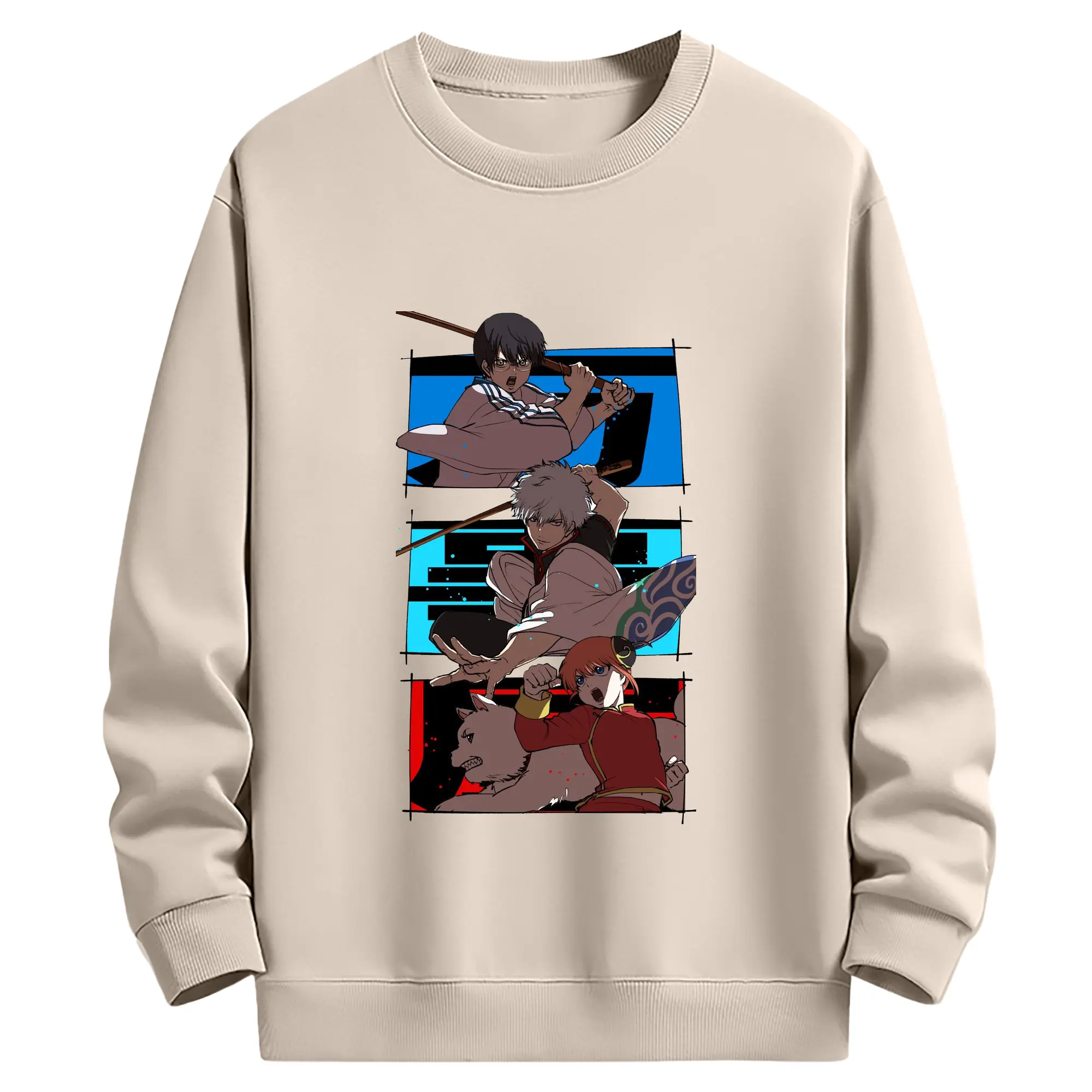银魂 銀時のドリンクタイム - 高品質 クルーネック スウェット ・ コットン59% ポリエステル41% ・ ユニセックス 長袖 トレーナー ・ カジュアル デイリー スポーツ 散歩用