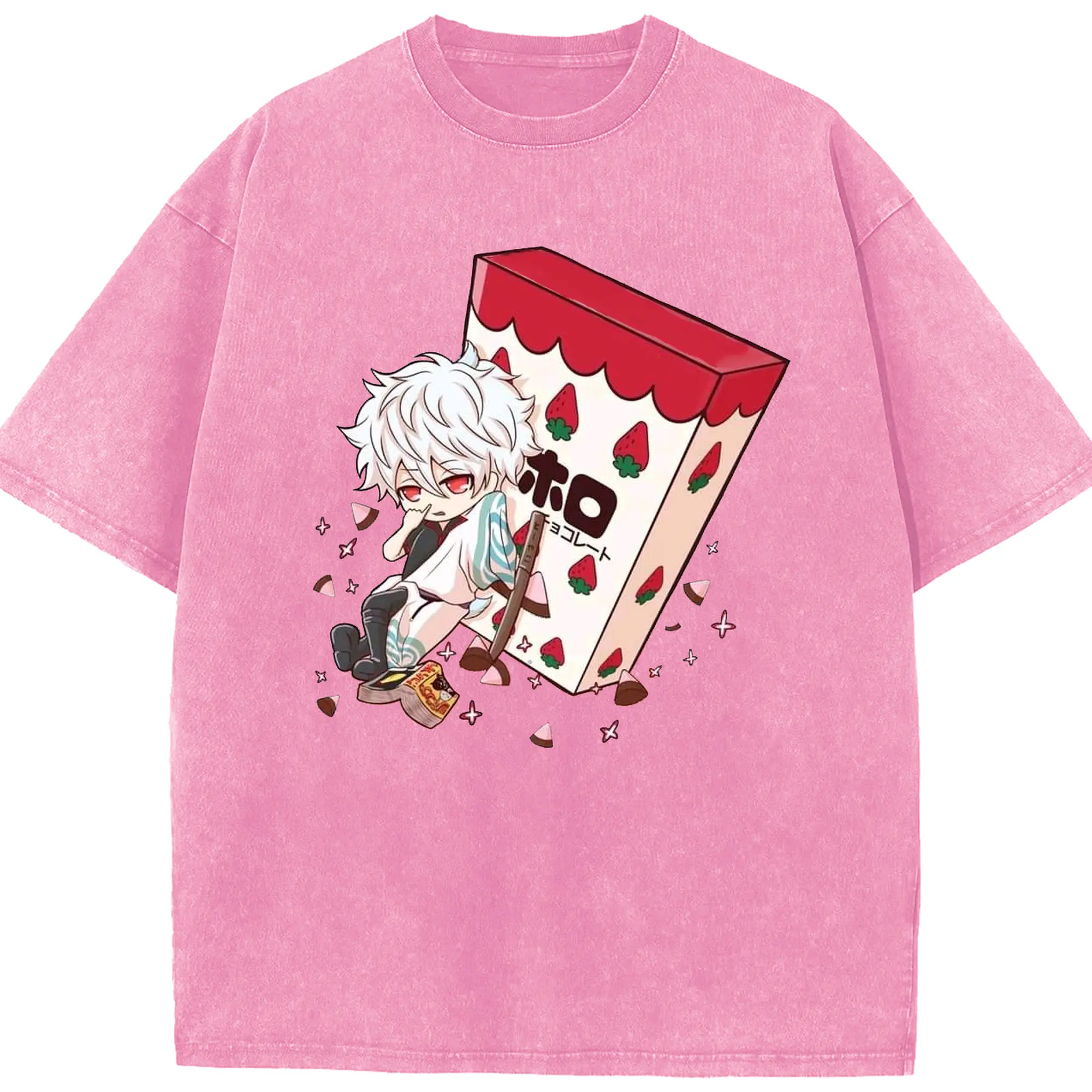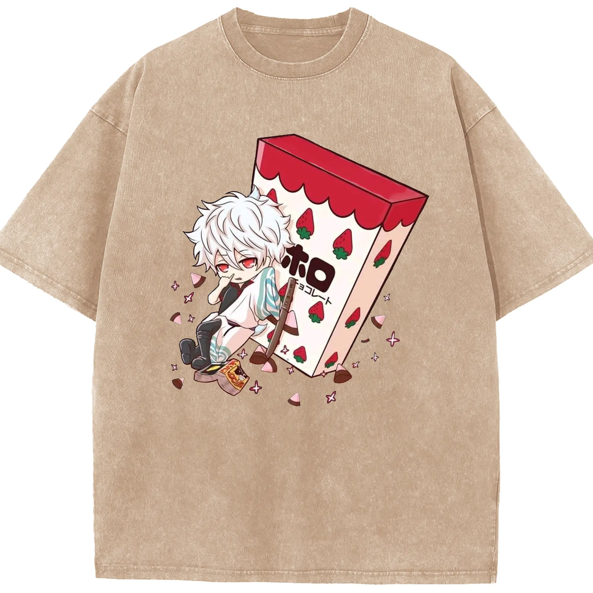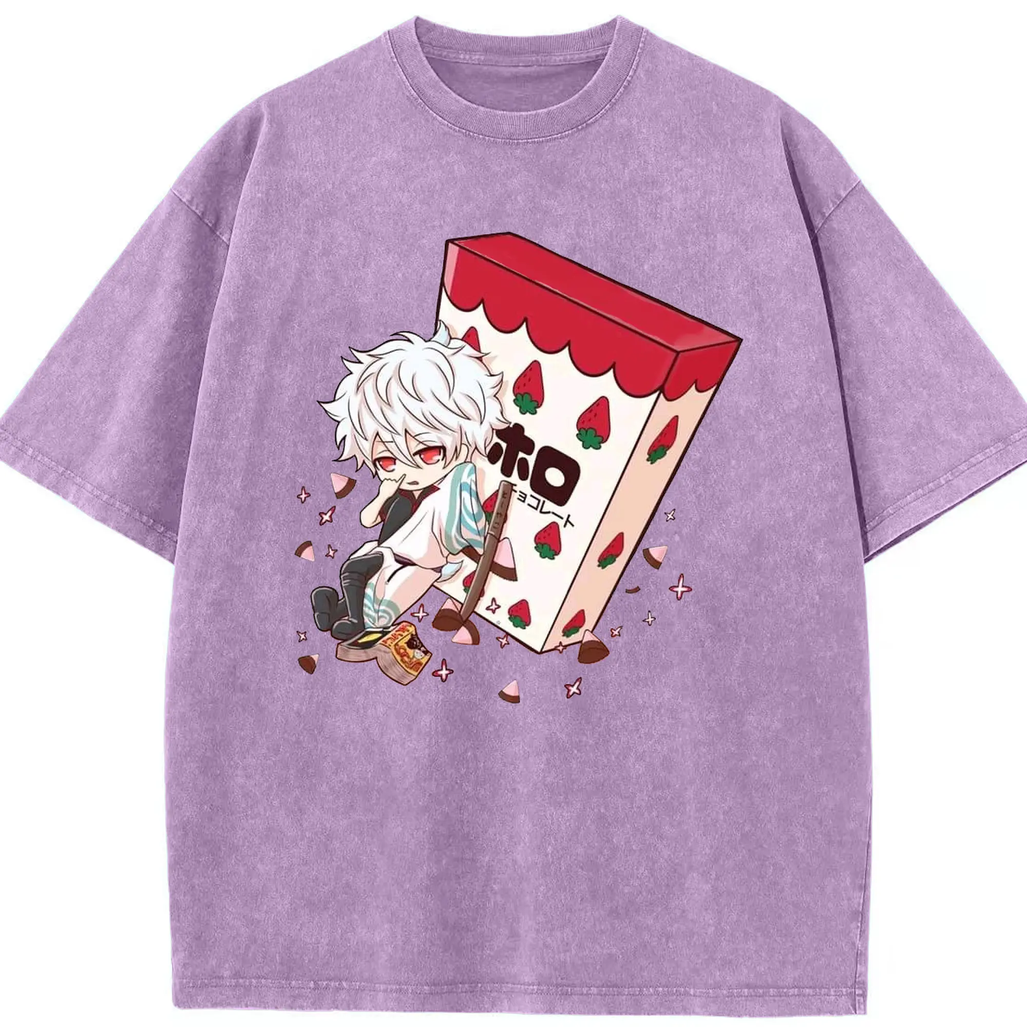 银魂 銀時おやつタイム - 綿100% 半袖Tシャツ ・ フロントプリント ・ 快適 通気性 ・ 日常使い 散歩 スポーツ用