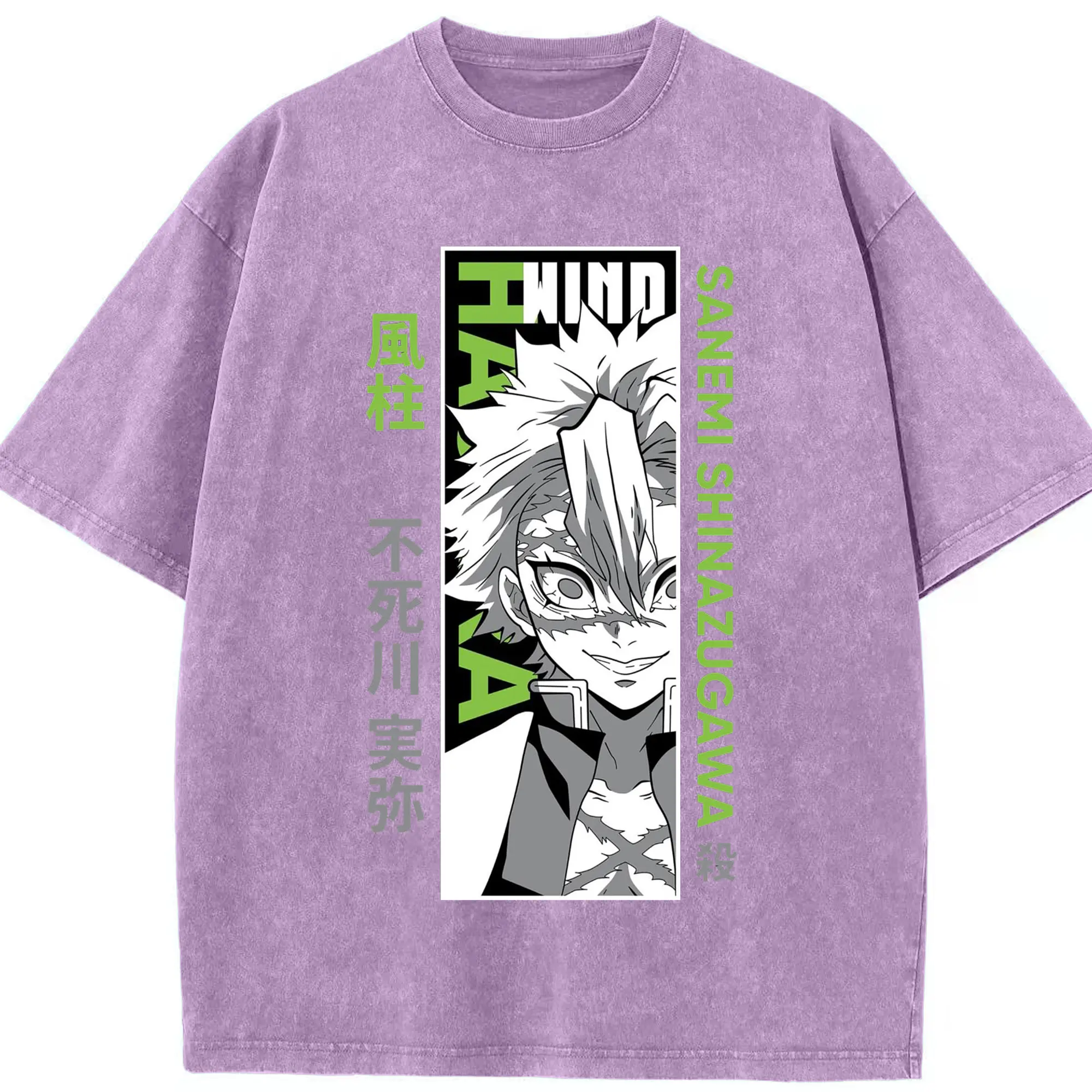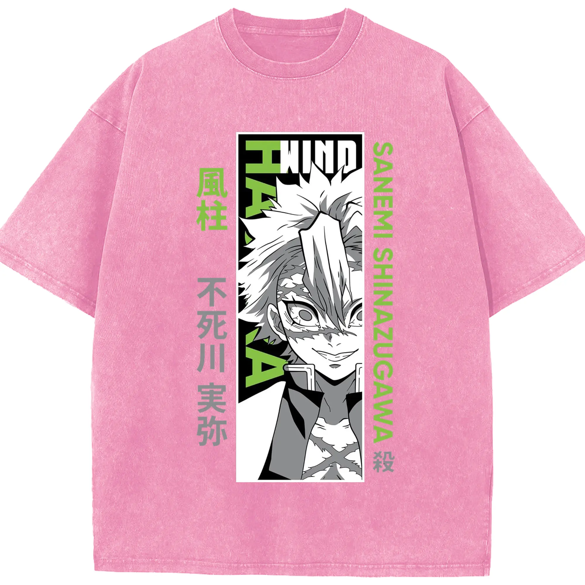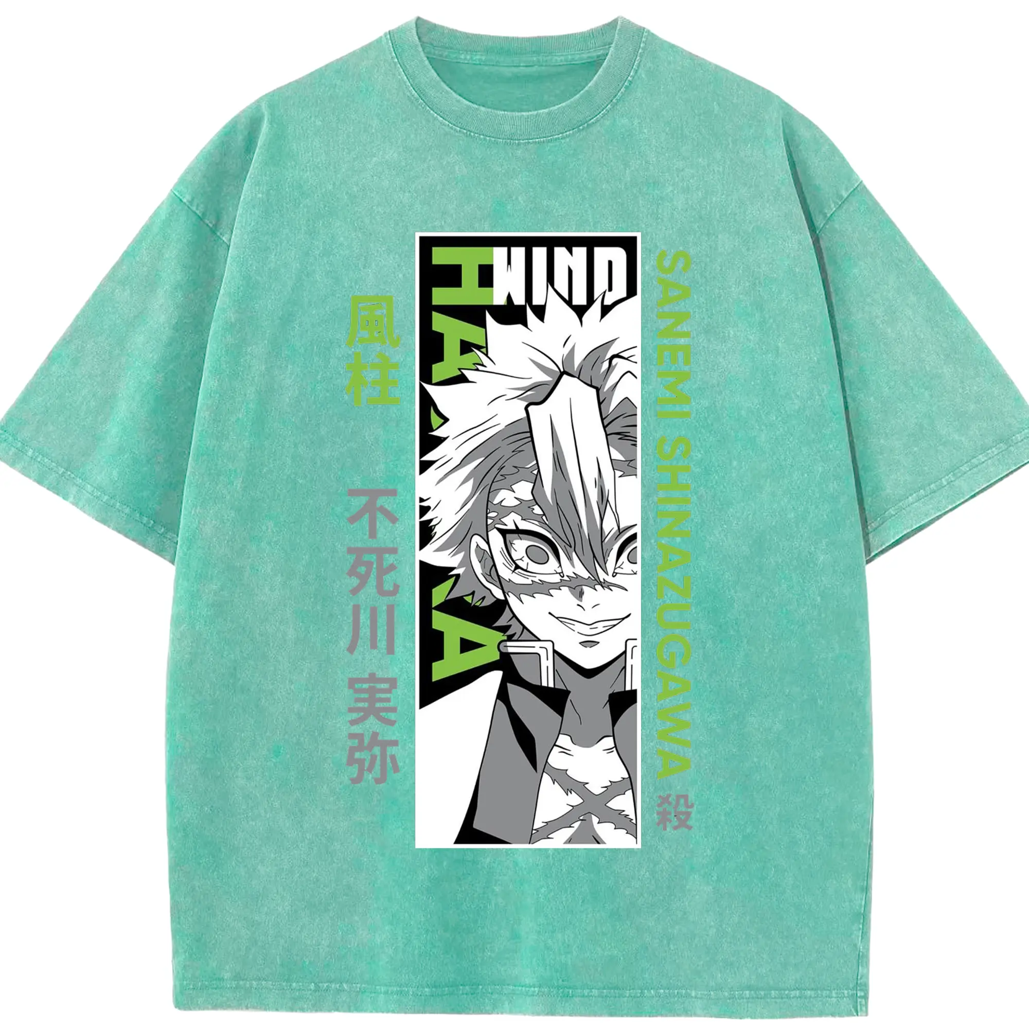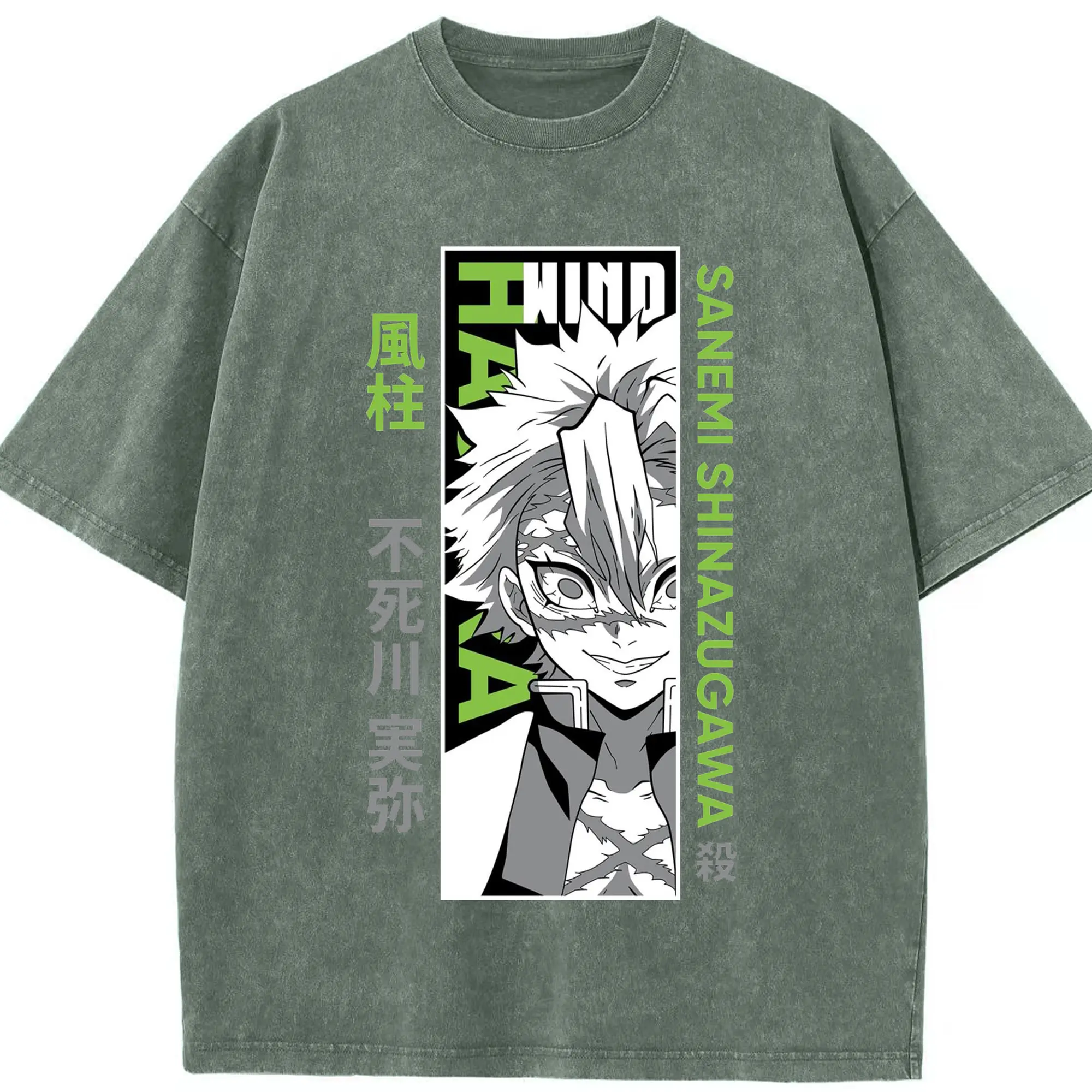 鬼滅の刃 不死川実弥 - 綿100% ヴィンテージ風 半袖Tシャツ ・ フロントプリント ・ 柔らか肌触り ・ 通気性 快適 ・ スポーツ カジュアル 外出用