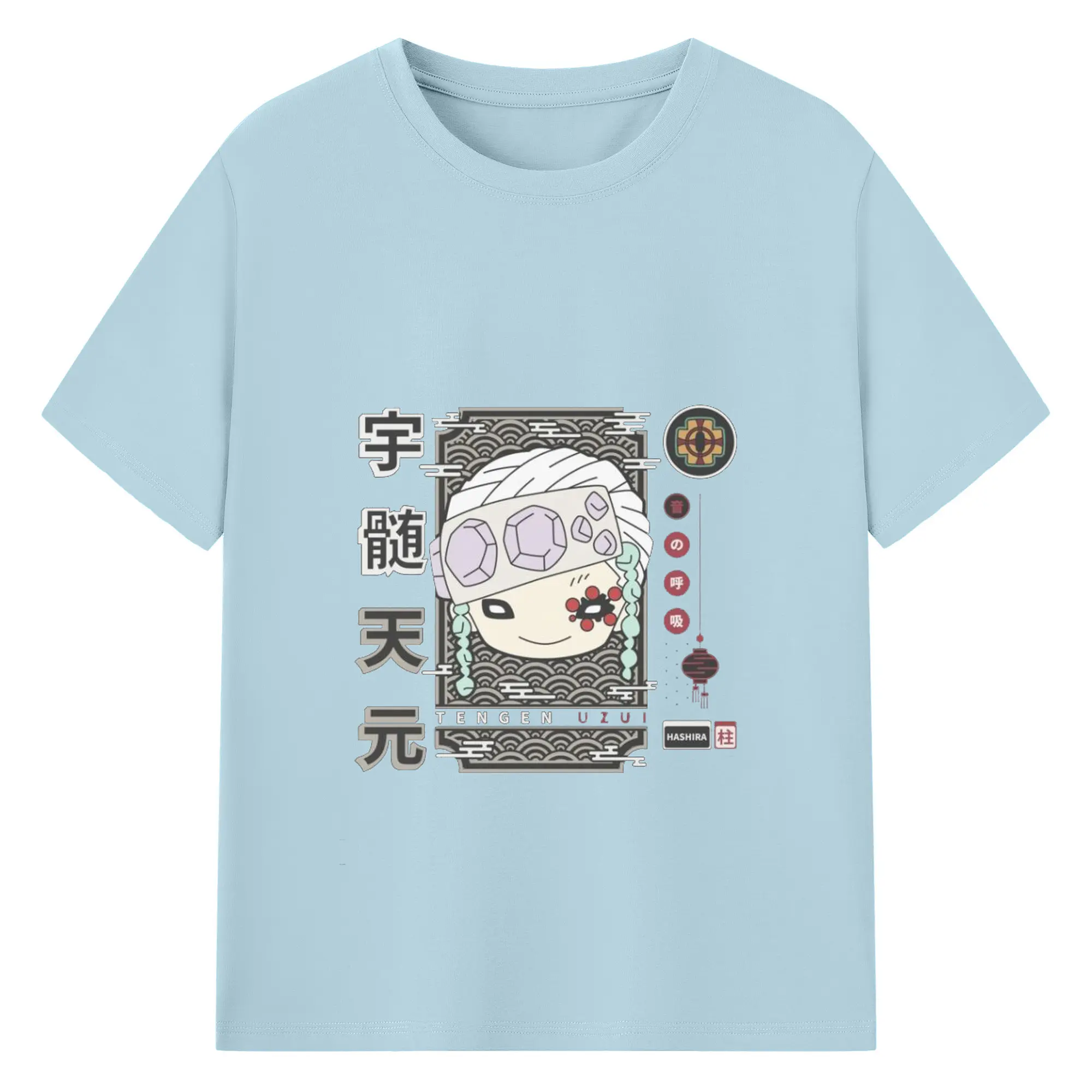 鬼滅の刃 宇髄天元 - 綿100% 半袖Tシャツ ・ フロントプリント ・ 快適 通気性 ・ 日常使い 散歩 スポーツ用