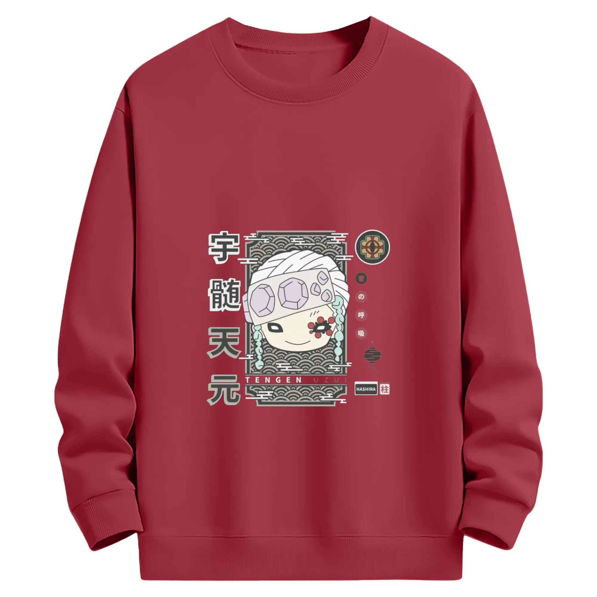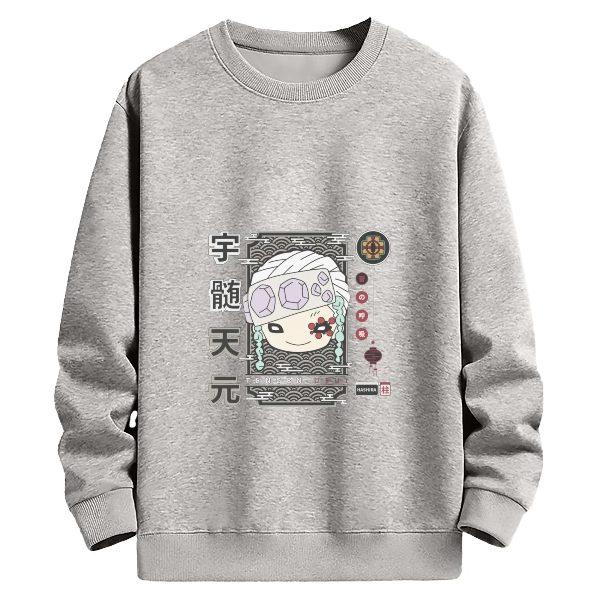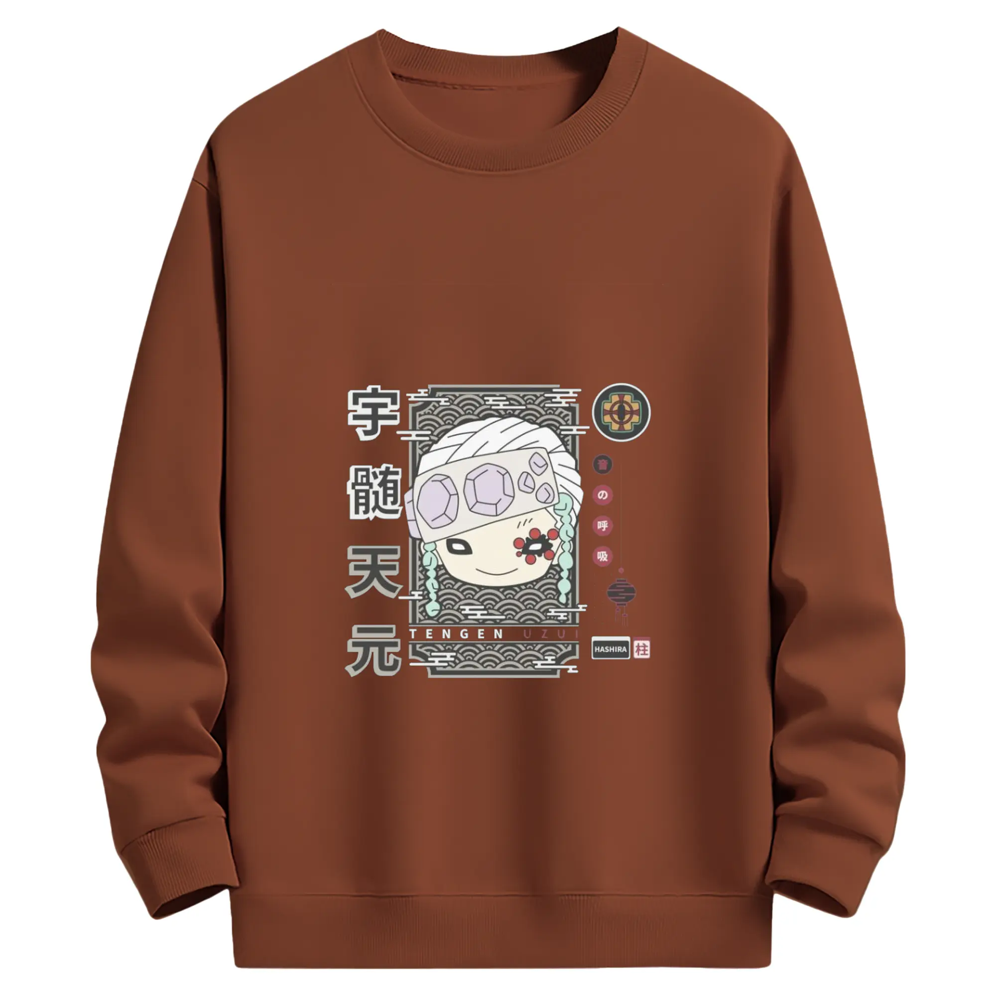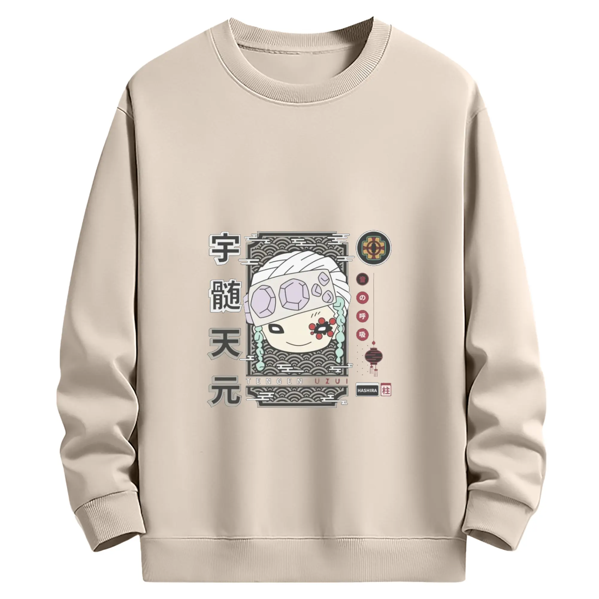 鬼滅の刃 宇髄天元 - 高品質 クルーネック スウェット ・ コットン59% ポリエステル41% ・ ユニセックス 長袖 トレーナー ・ カジュアル デイリー スポーツ 散歩用