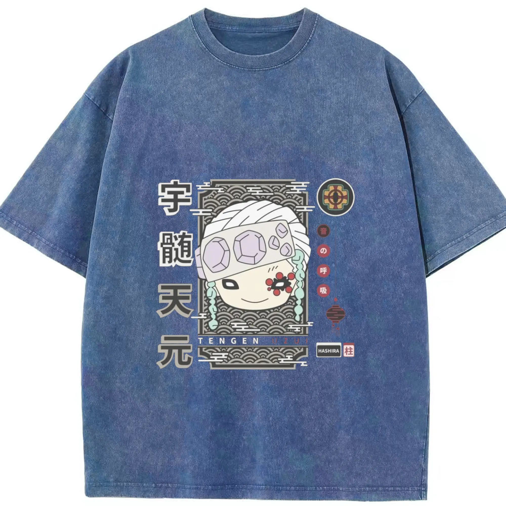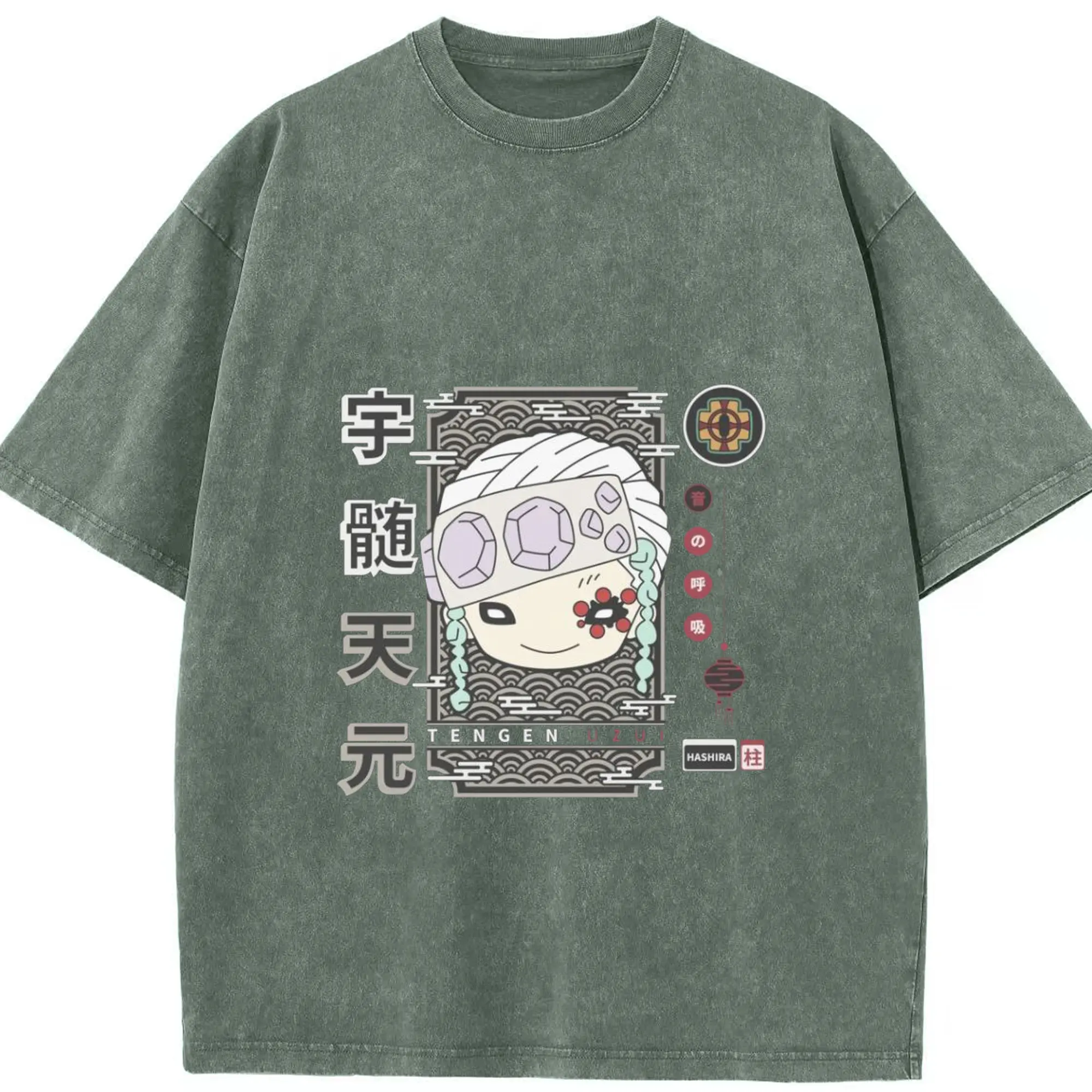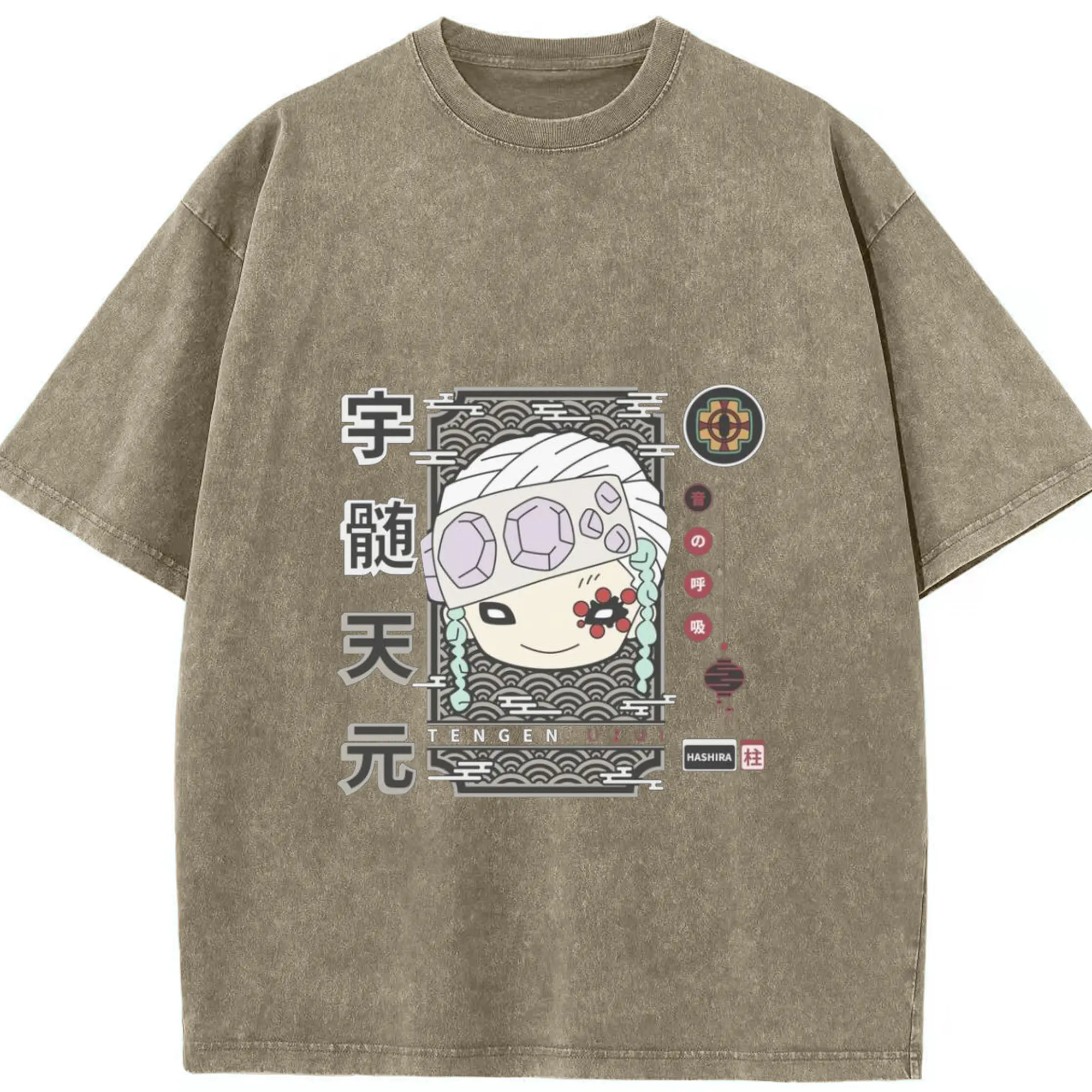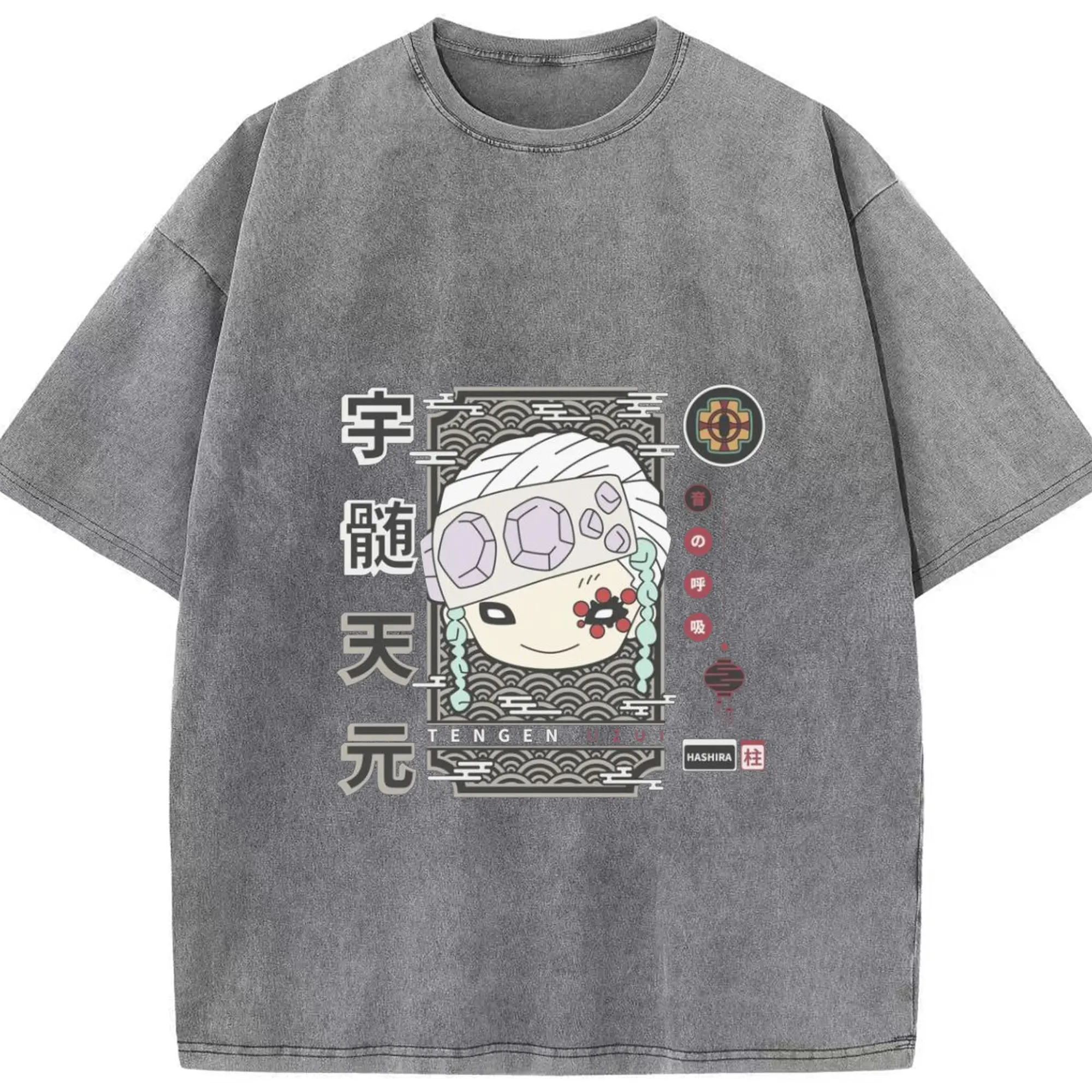 鬼滅の刃 宇髄天元 - 綿100% ヴィンテージ風 半袖Tシャツ ・ フロントプリント ・ 柔らか肌触り ・ 通気性 快適 ・ スポーツ カジュアル 外出用