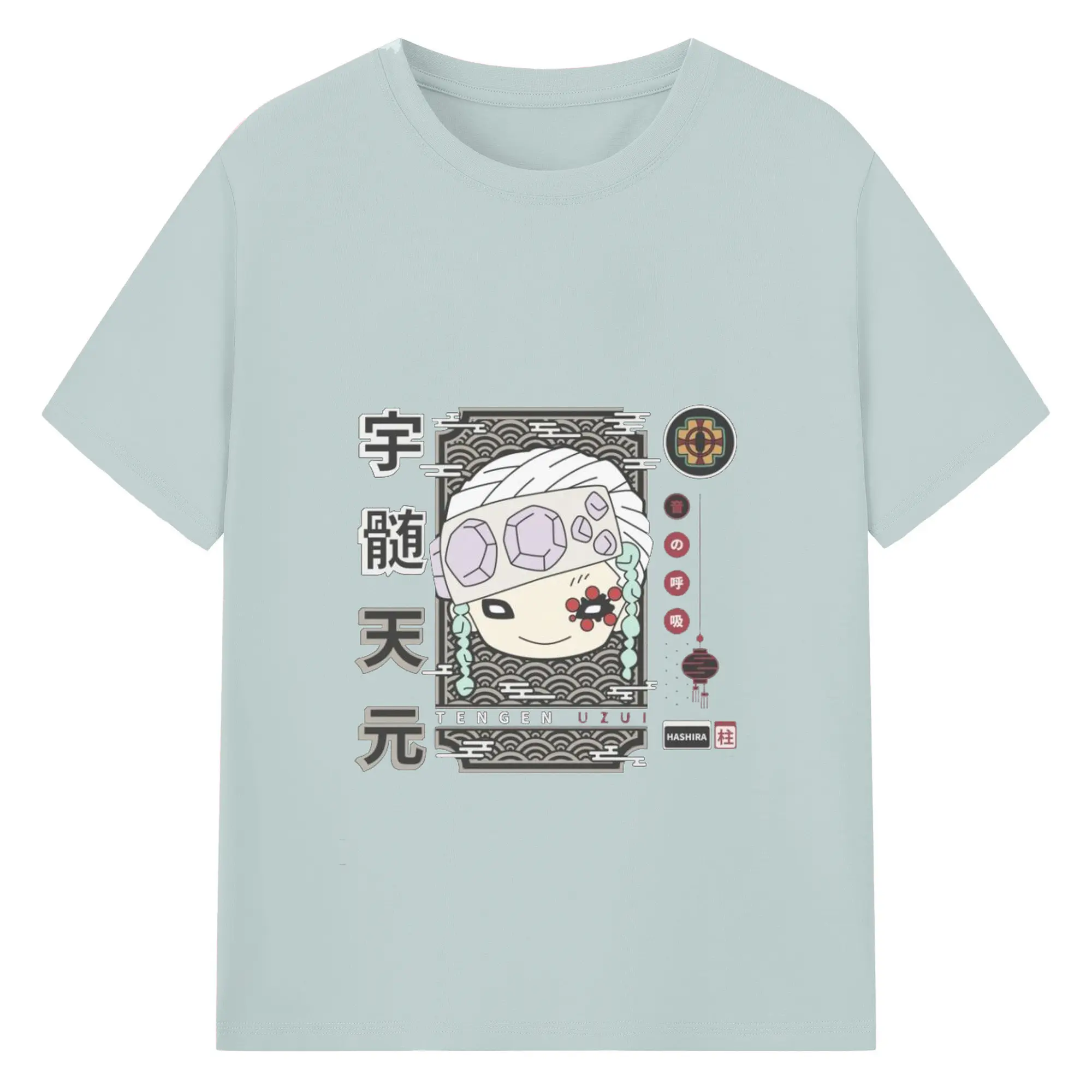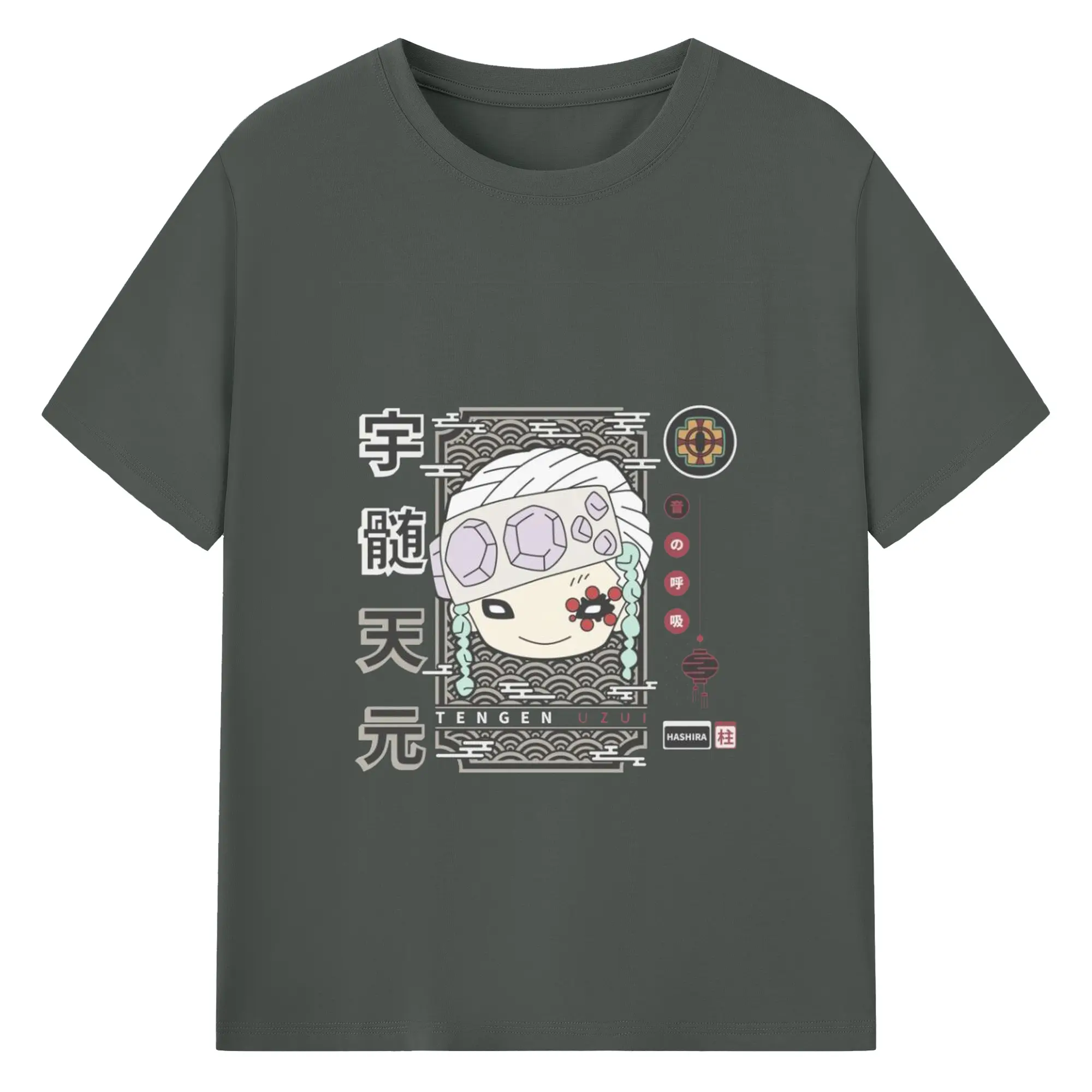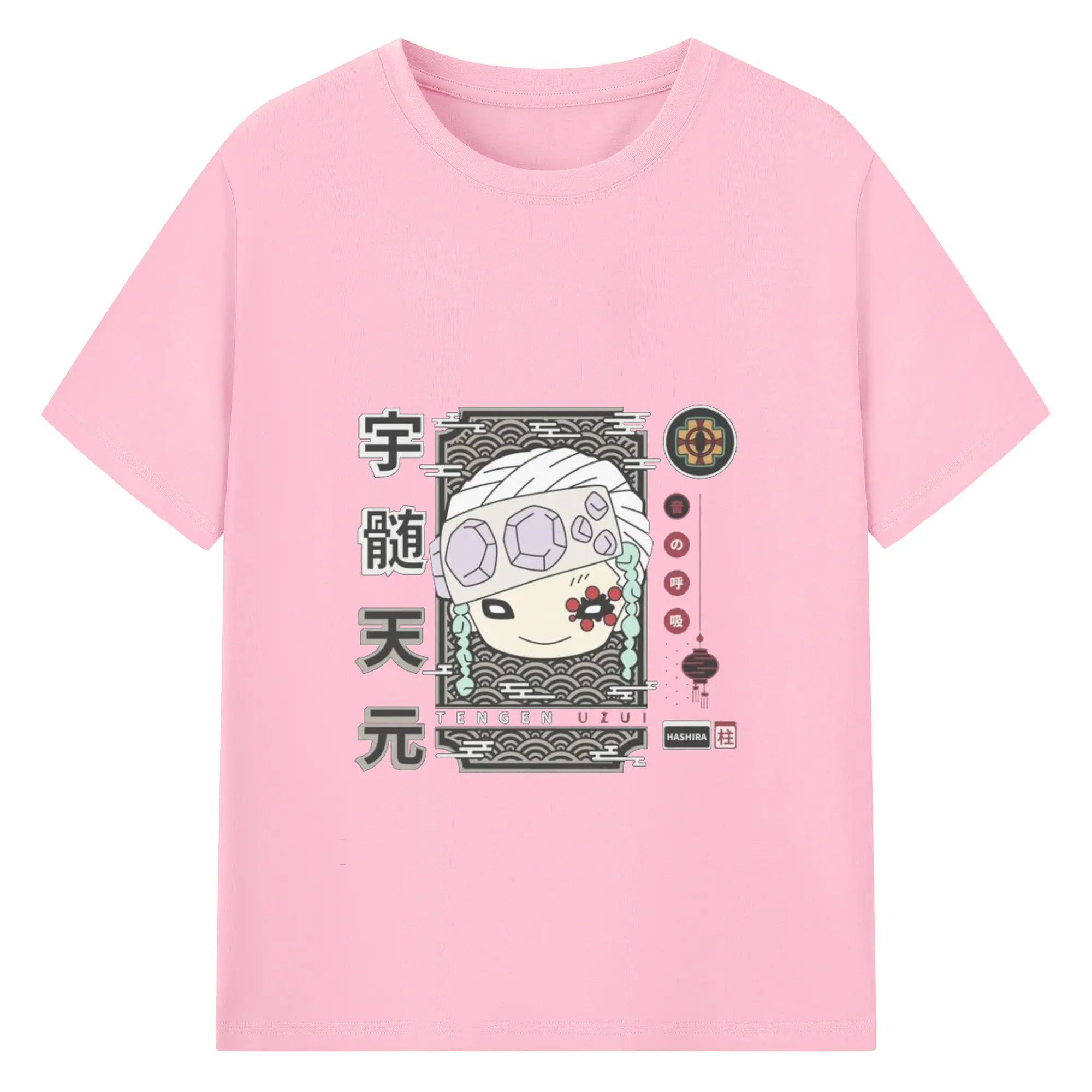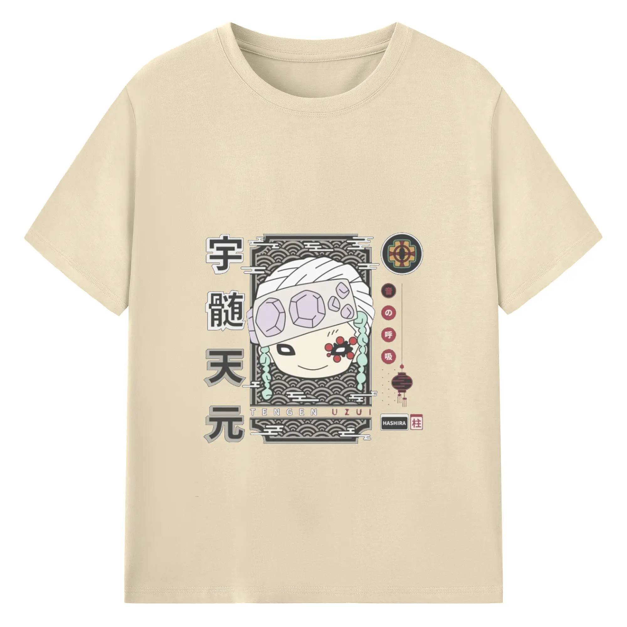 鬼滅の刃 宇髄天元 - 綿100% 半袖Tシャツ ・ フロントプリント ・ 快適 通気性 ・ 日常使い 散歩 スポーツ用