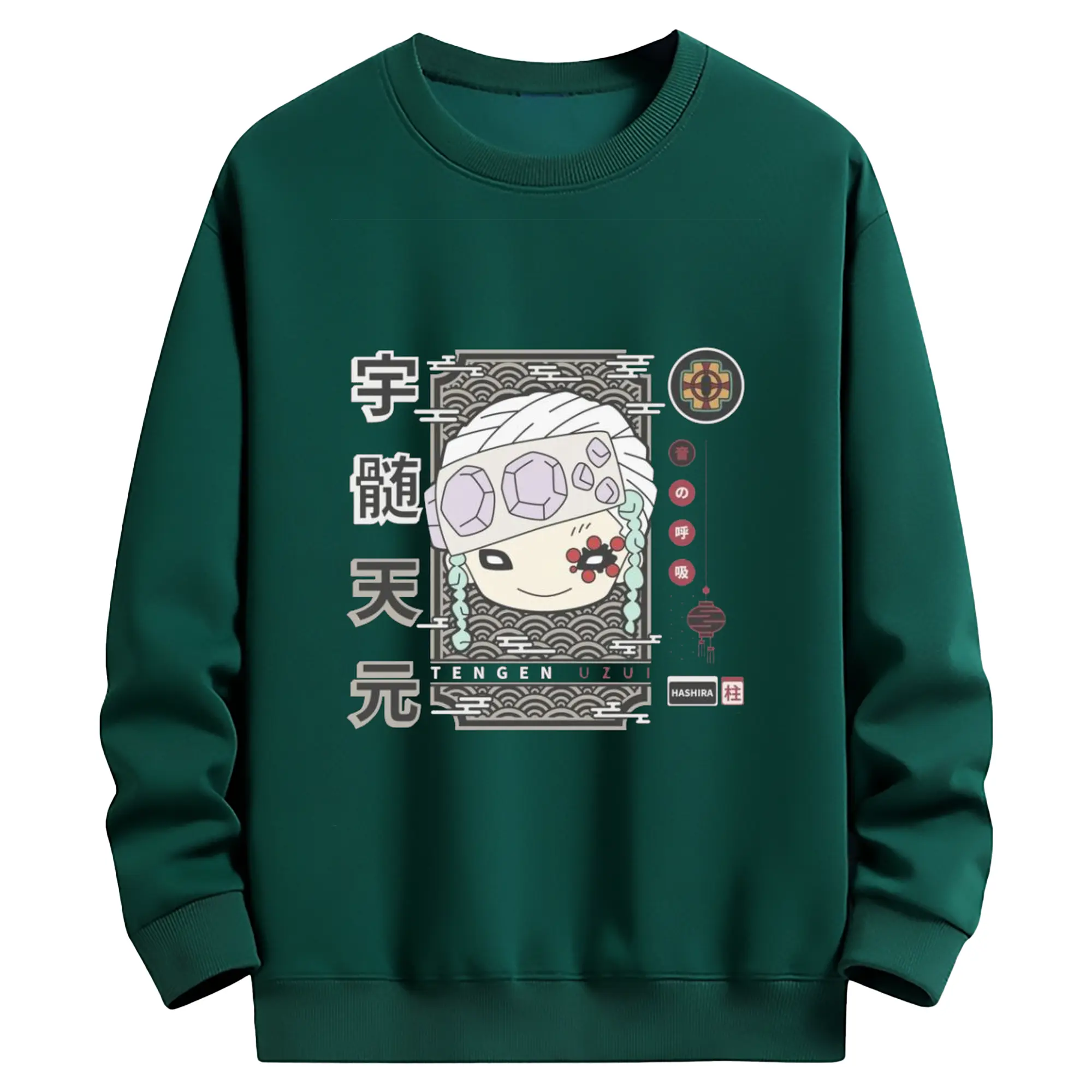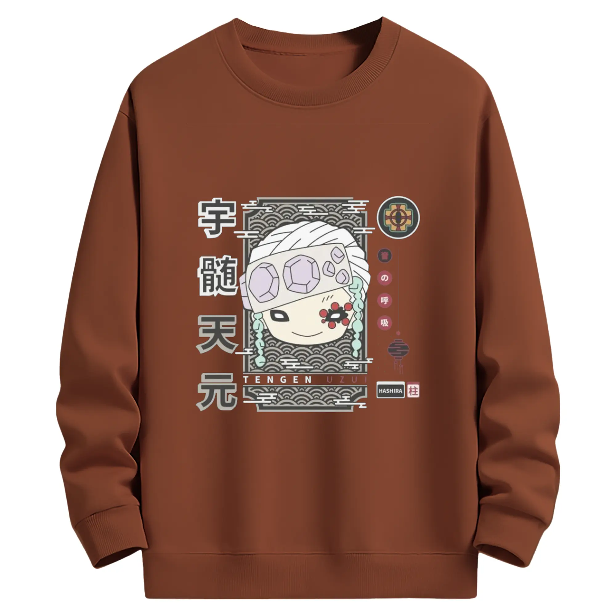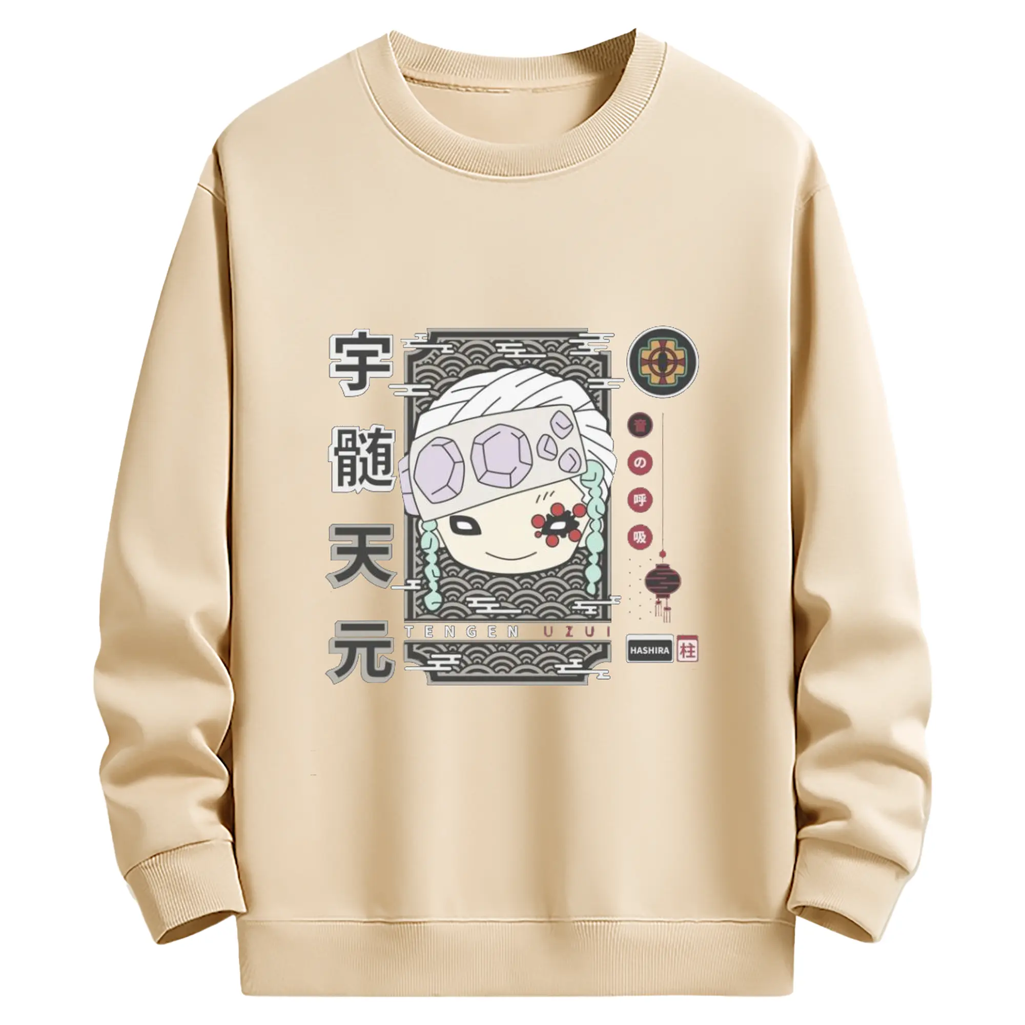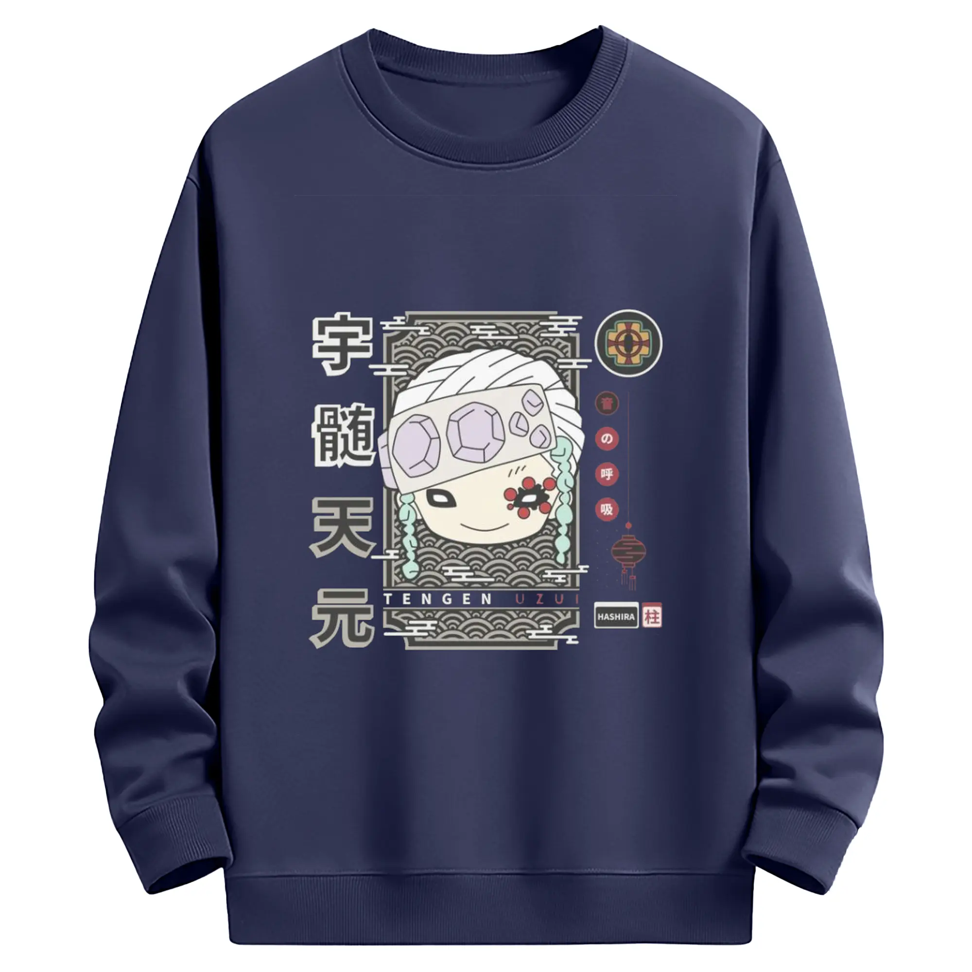 鬼滅の刃 宇髄天元 - 高品質 クルーネック スウェット ・ コットン59% ポリエステル41% ・ ユニセックス 長袖 トレーナー ・ カジュアル デイリー スポーツ 散歩用