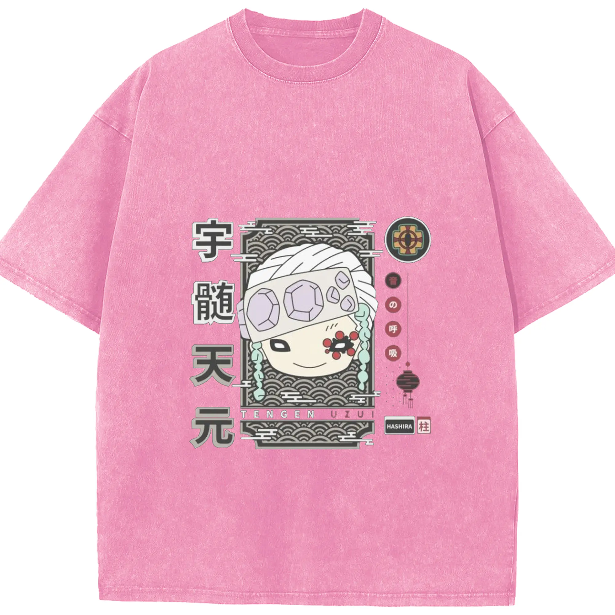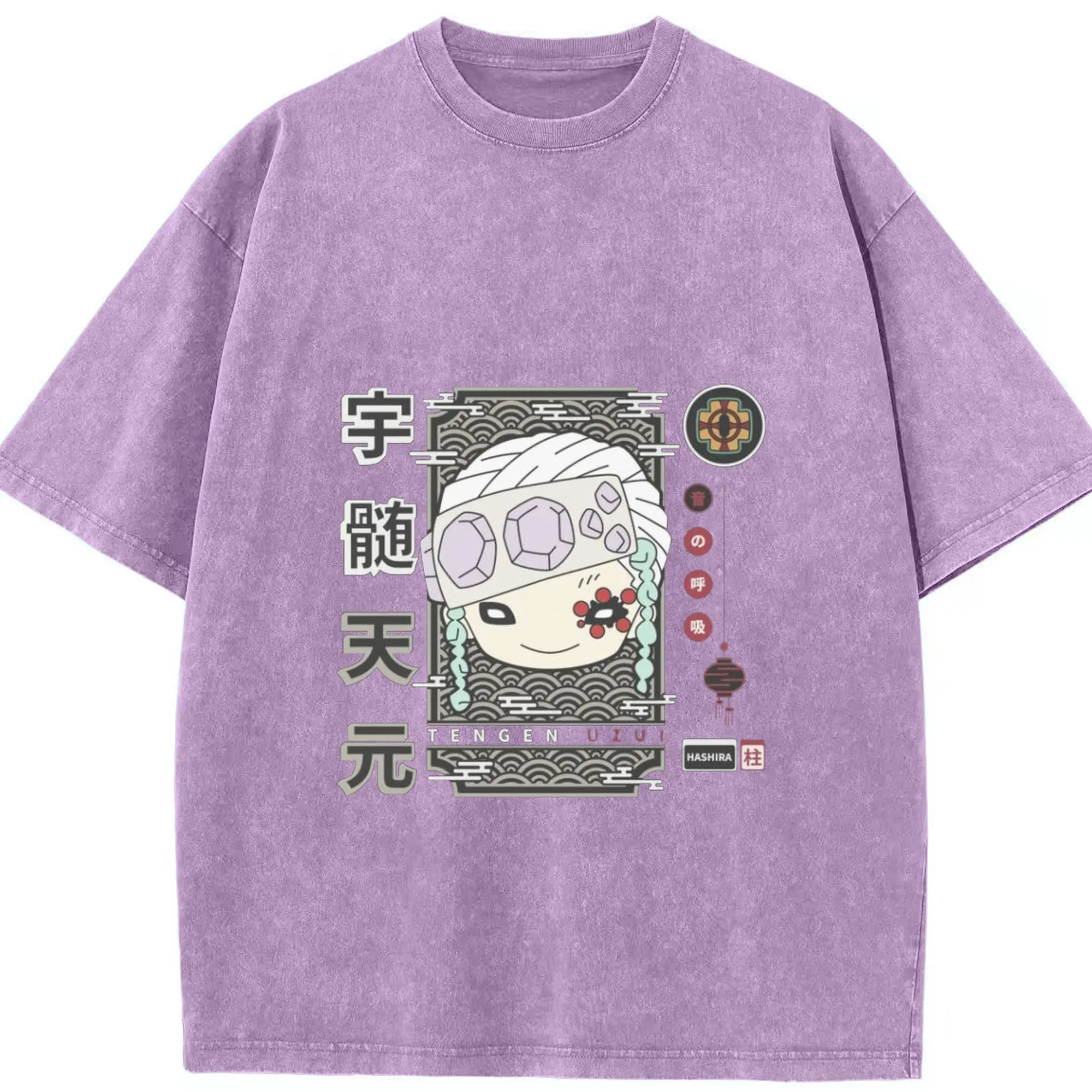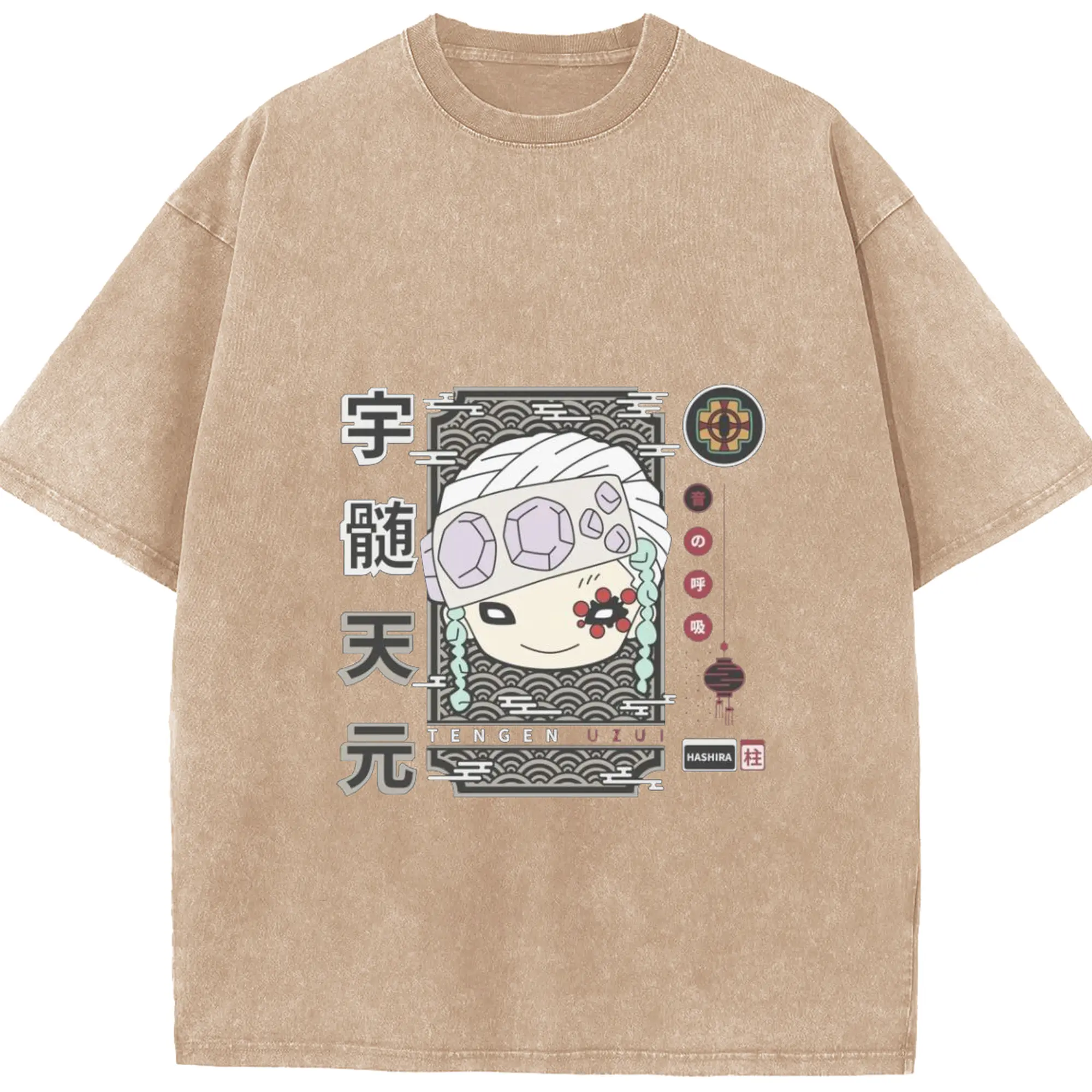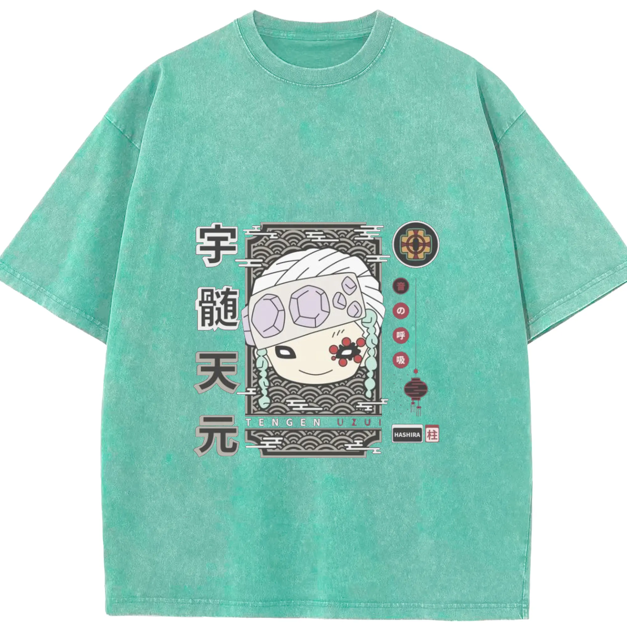 鬼滅の刃 宇髄天元 - 綿100% ヴィンテージ風 半袖Tシャツ ・ フロントプリント ・ 柔らか肌触り ・ 通気性 快適 ・ スポーツ カジュアル 外出用