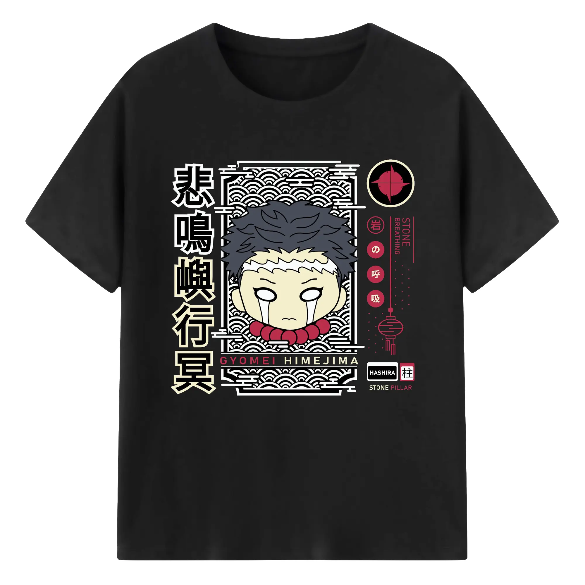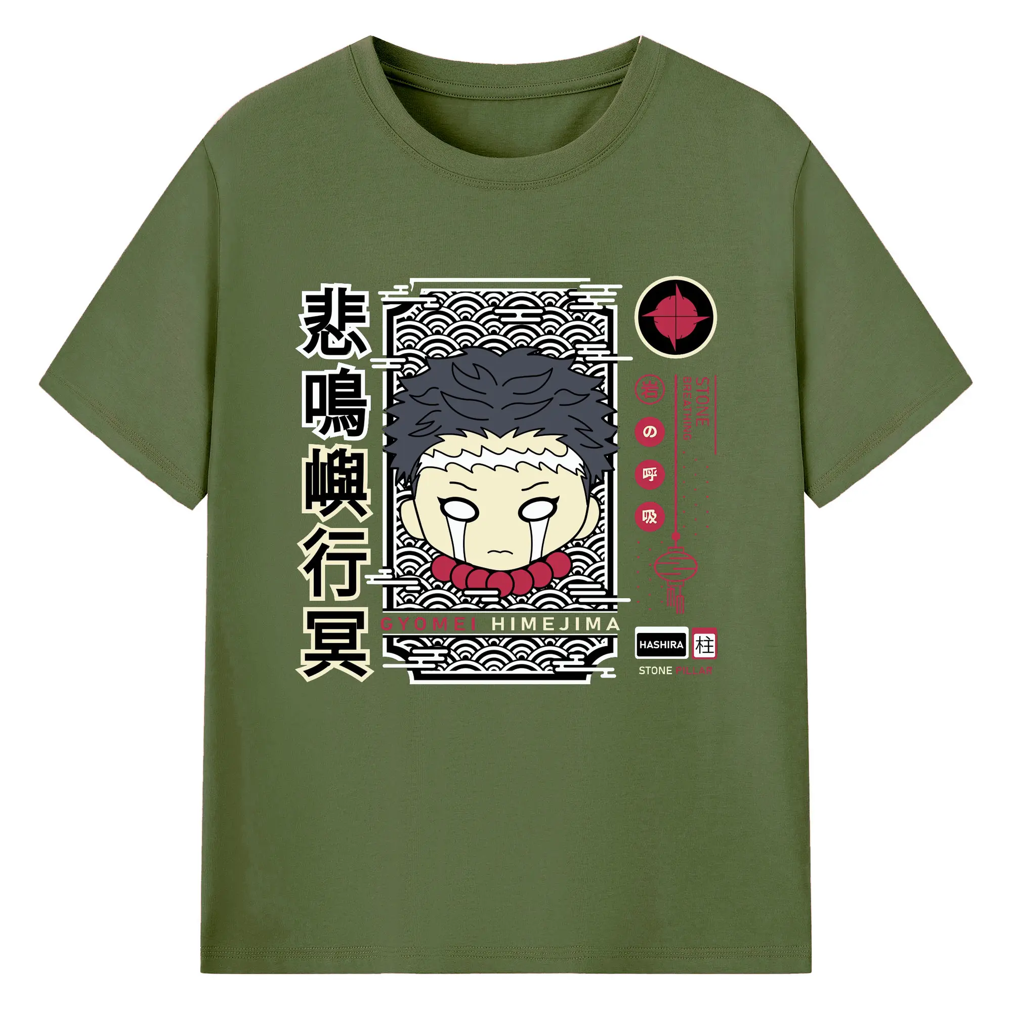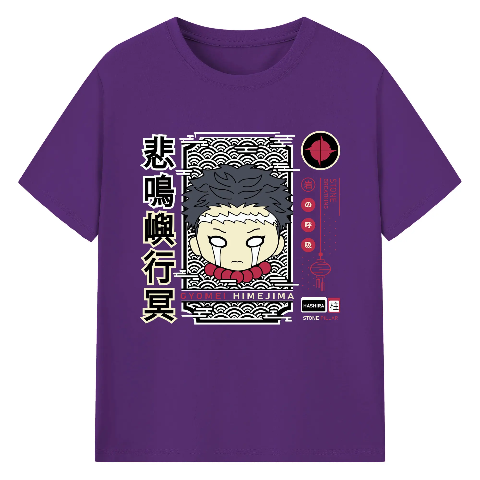 鬼滅の刃 悲鳴嶼行冥 - 綿100% 半袖Tシャツ ・ フロントプリント ・ 快適 通気性 ・ 日常使い 散歩 スポーツ用
