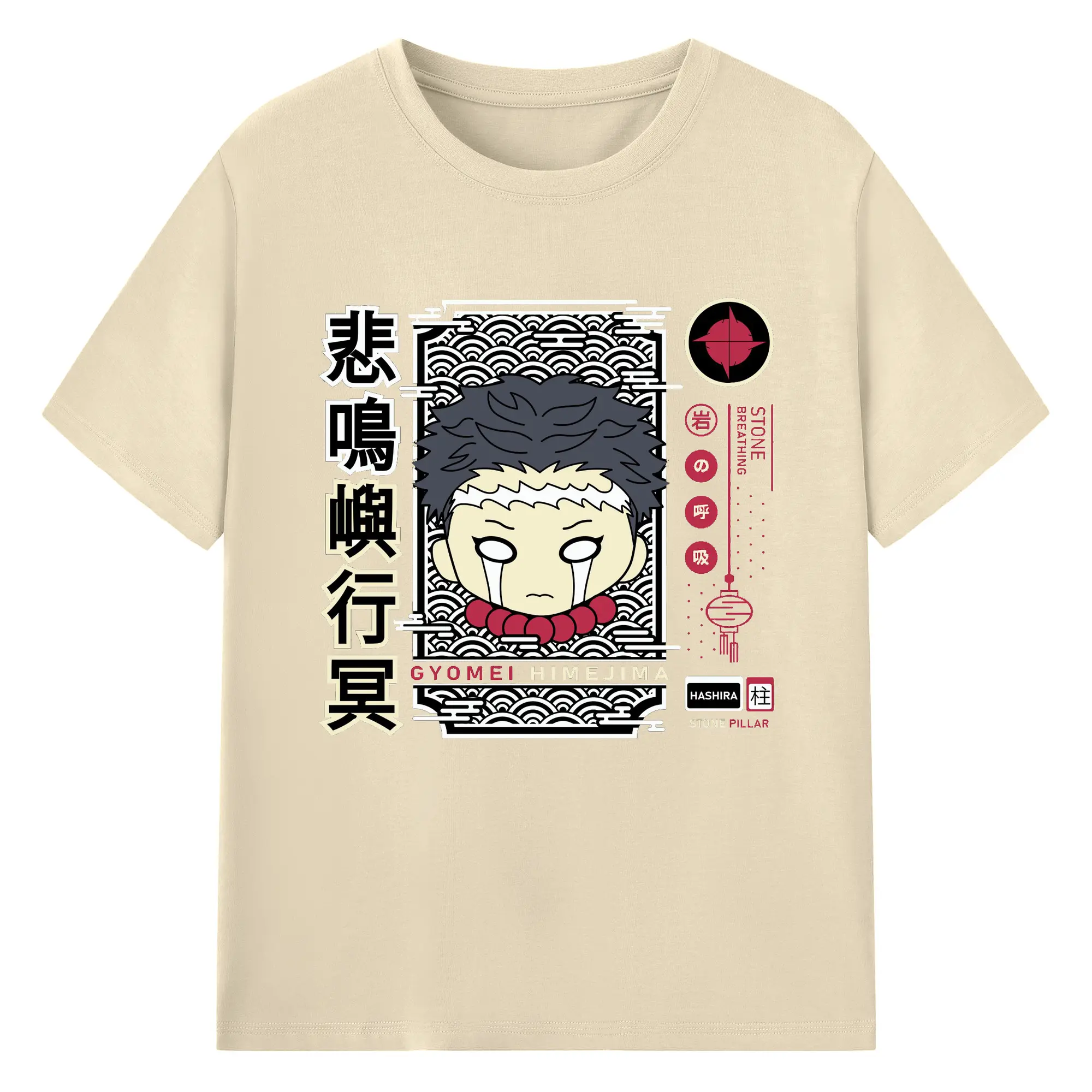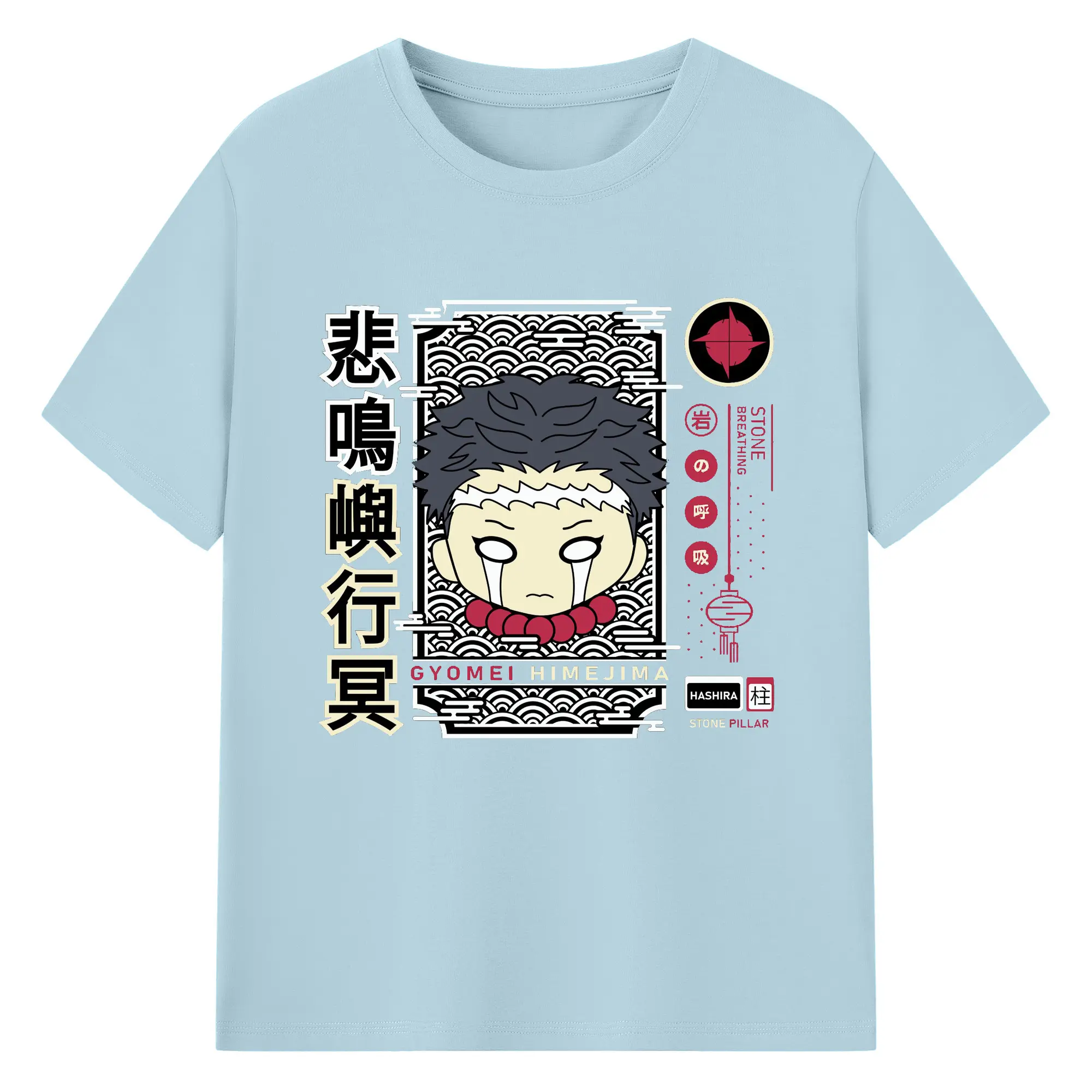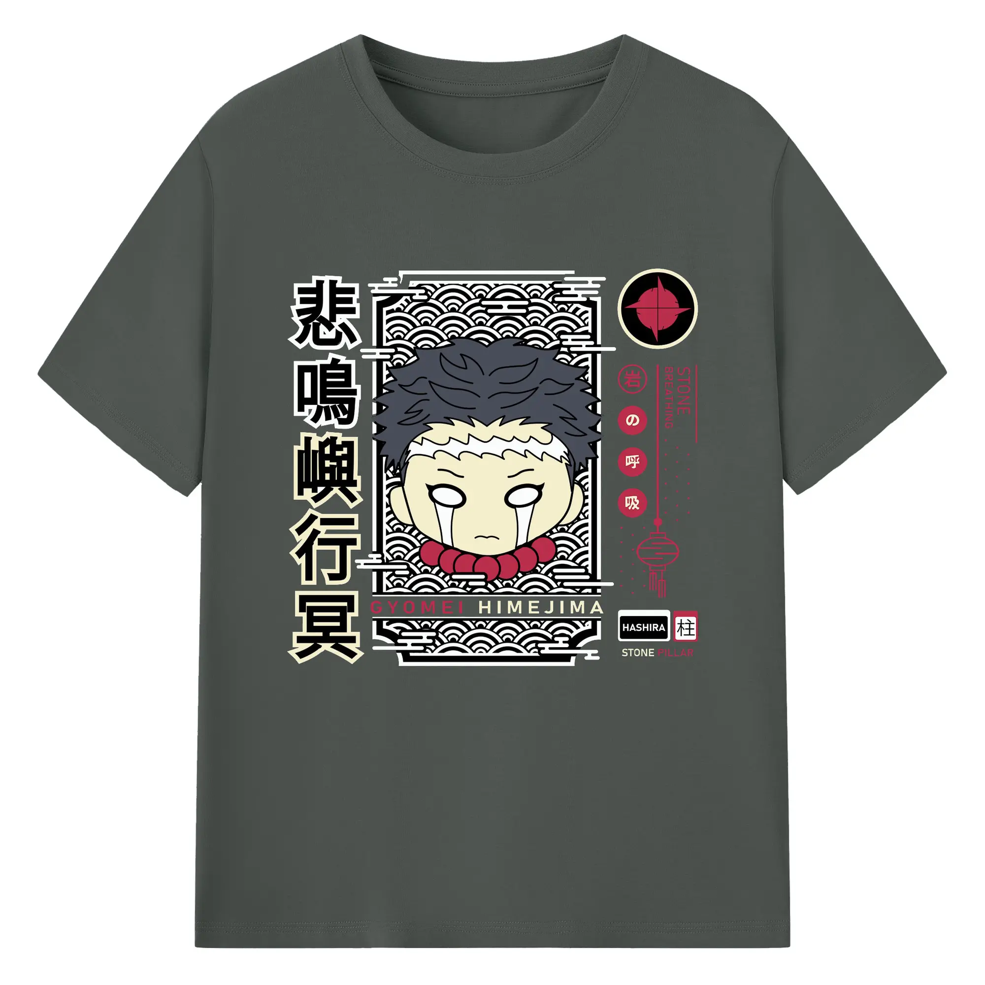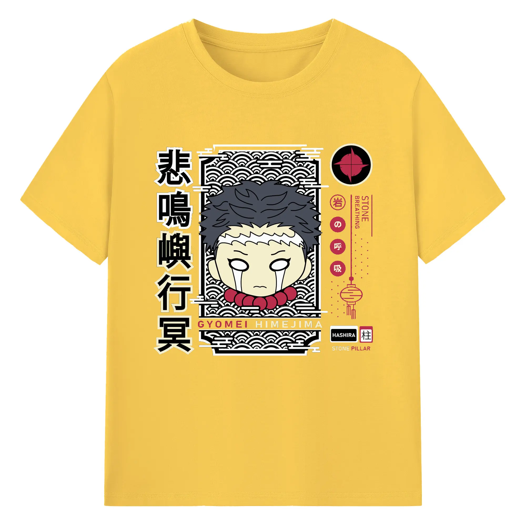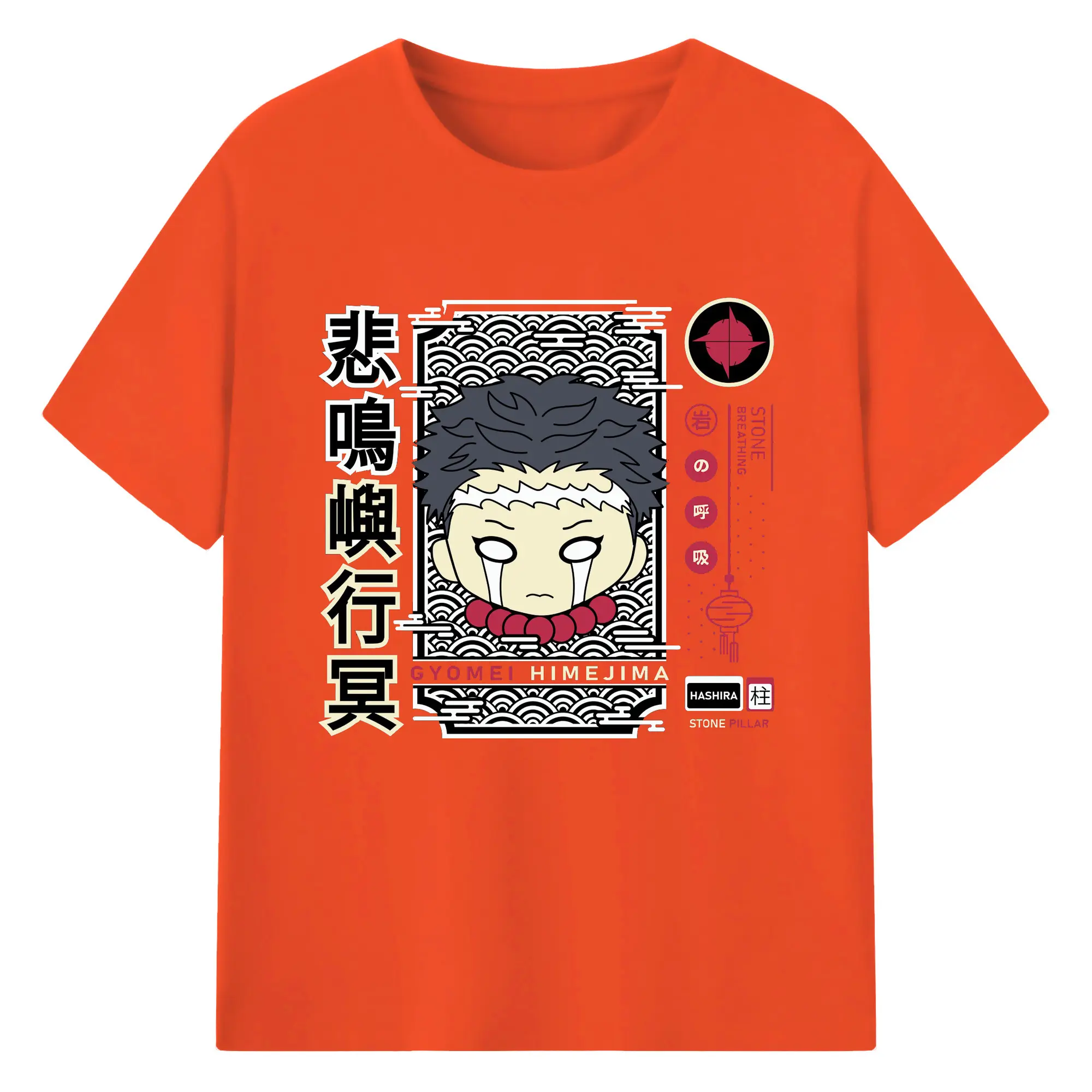 鬼滅の刃 悲鳴嶼行冥 - 綿100% 半袖Tシャツ ・ フロントプリント ・ 快適 通気性 ・ 日常使い 散歩 スポーツ用