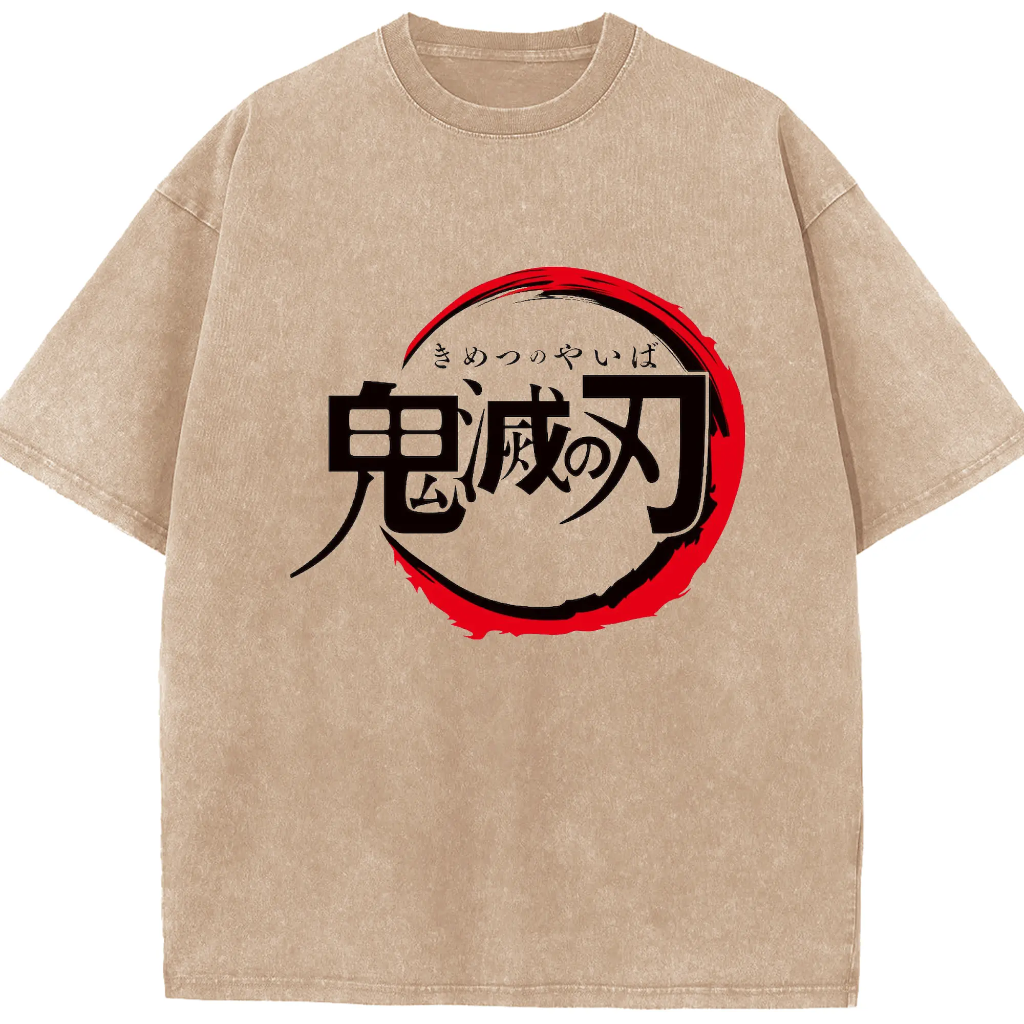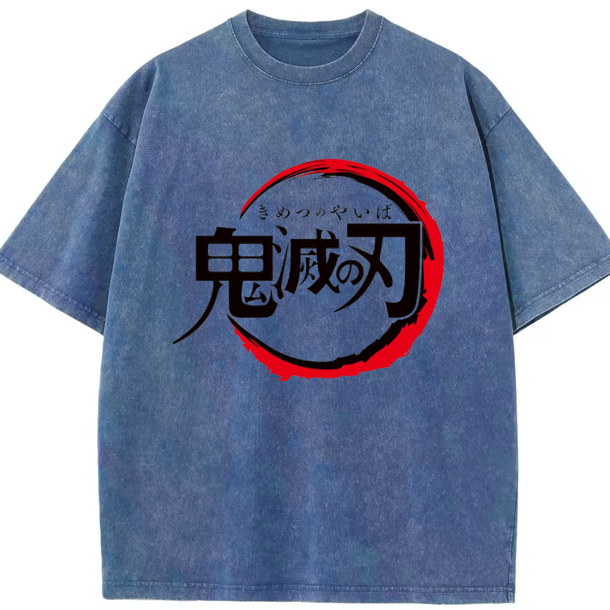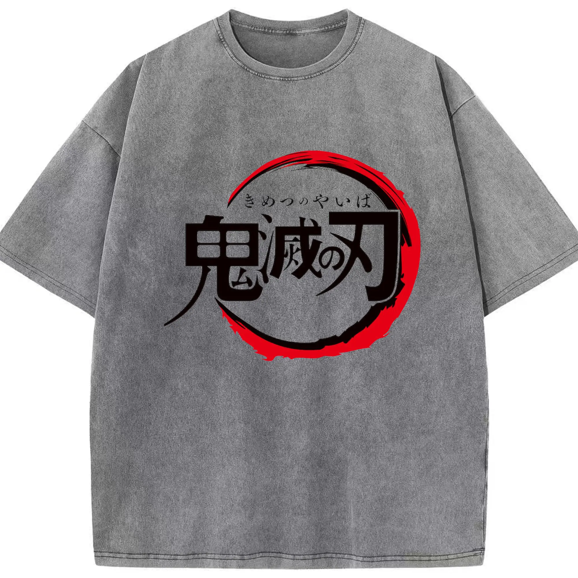 鬼滅の刃 シンプルロゴ - 綿100% ヴィンテージ風 半袖Tシャツ ・ フロントプリント ・ 柔らか肌触り ・ 通気性 快適 ・ スポーツ カジュアル 外出用