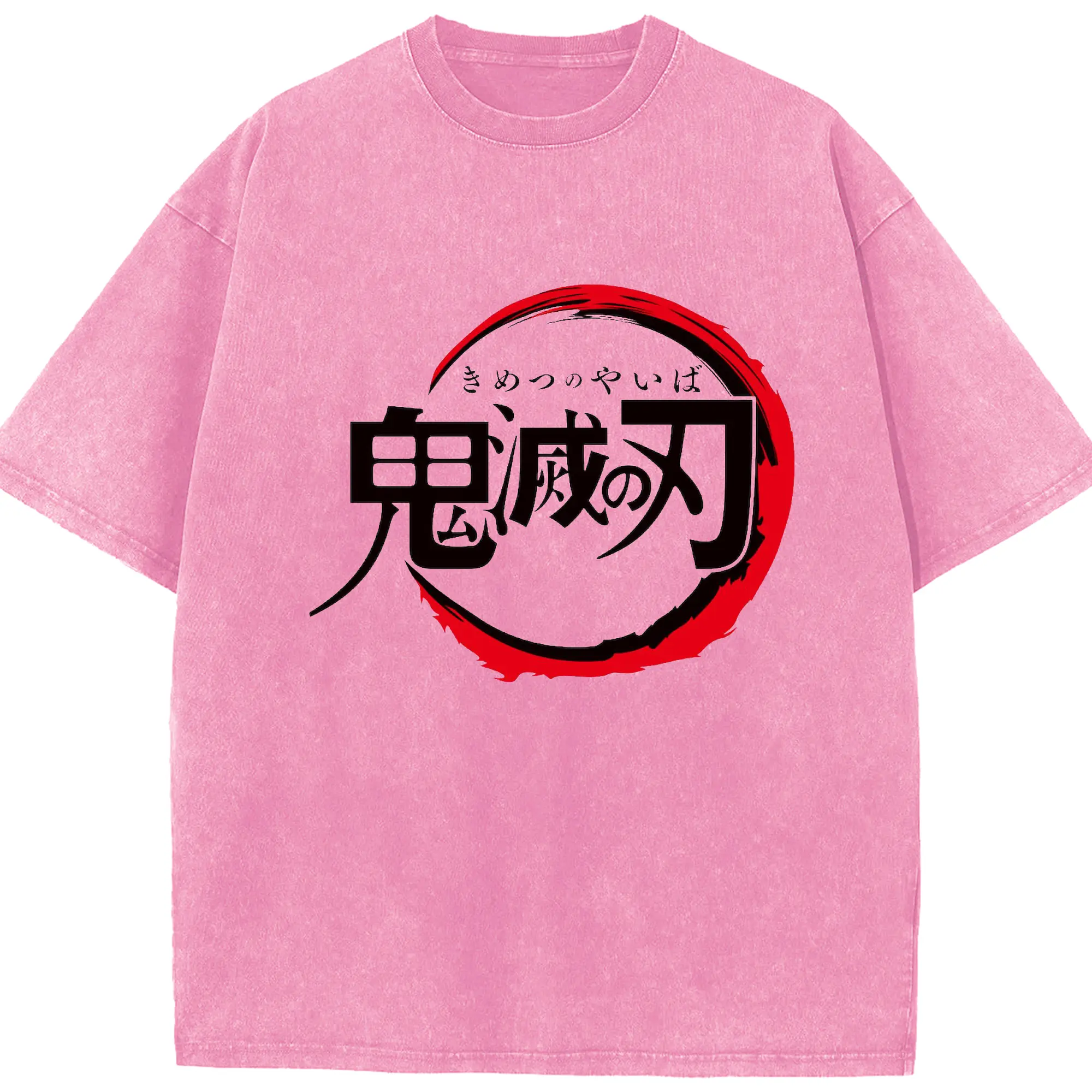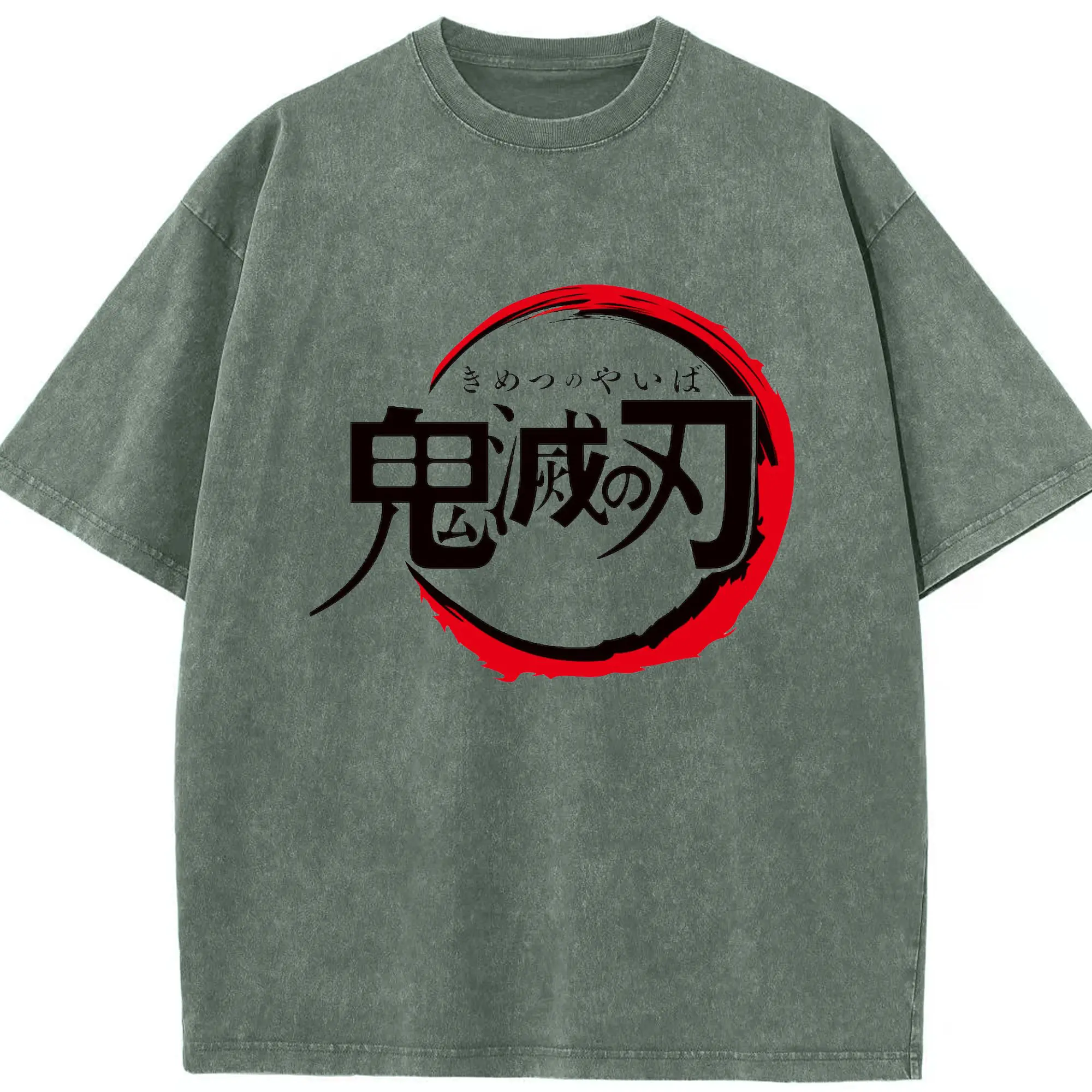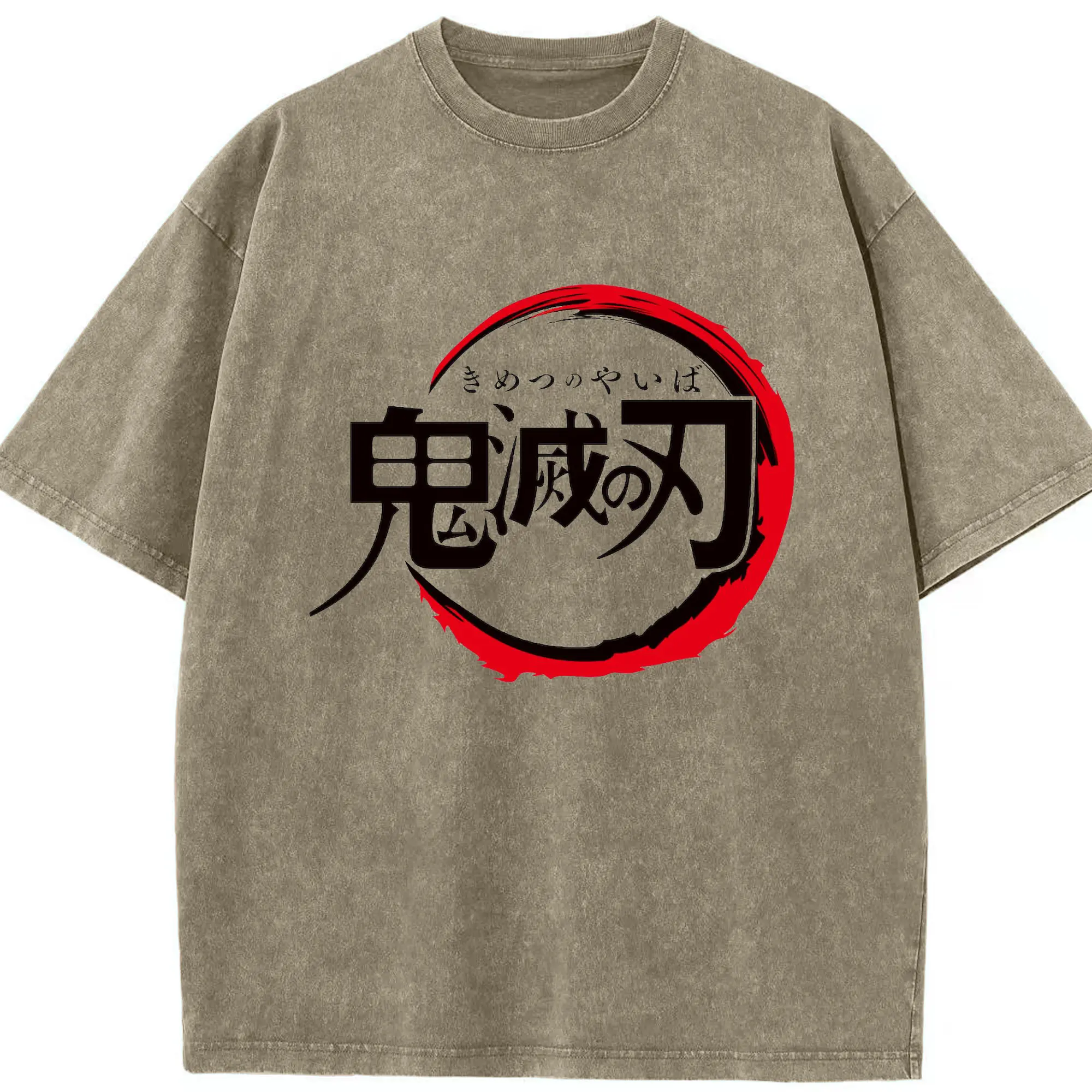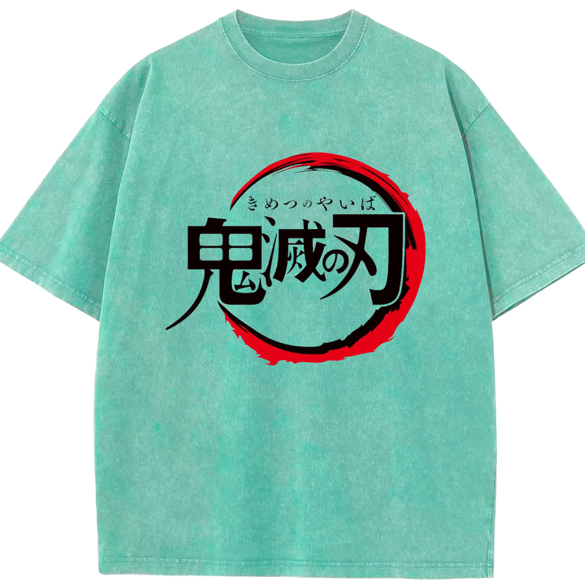 鬼滅の刃 シンプルロゴ - 綿100% ヴィンテージ風 半袖Tシャツ ・ フロントプリント ・ 柔らか肌触り ・ 通気性 快適 ・ スポーツ カジュアル 外出用